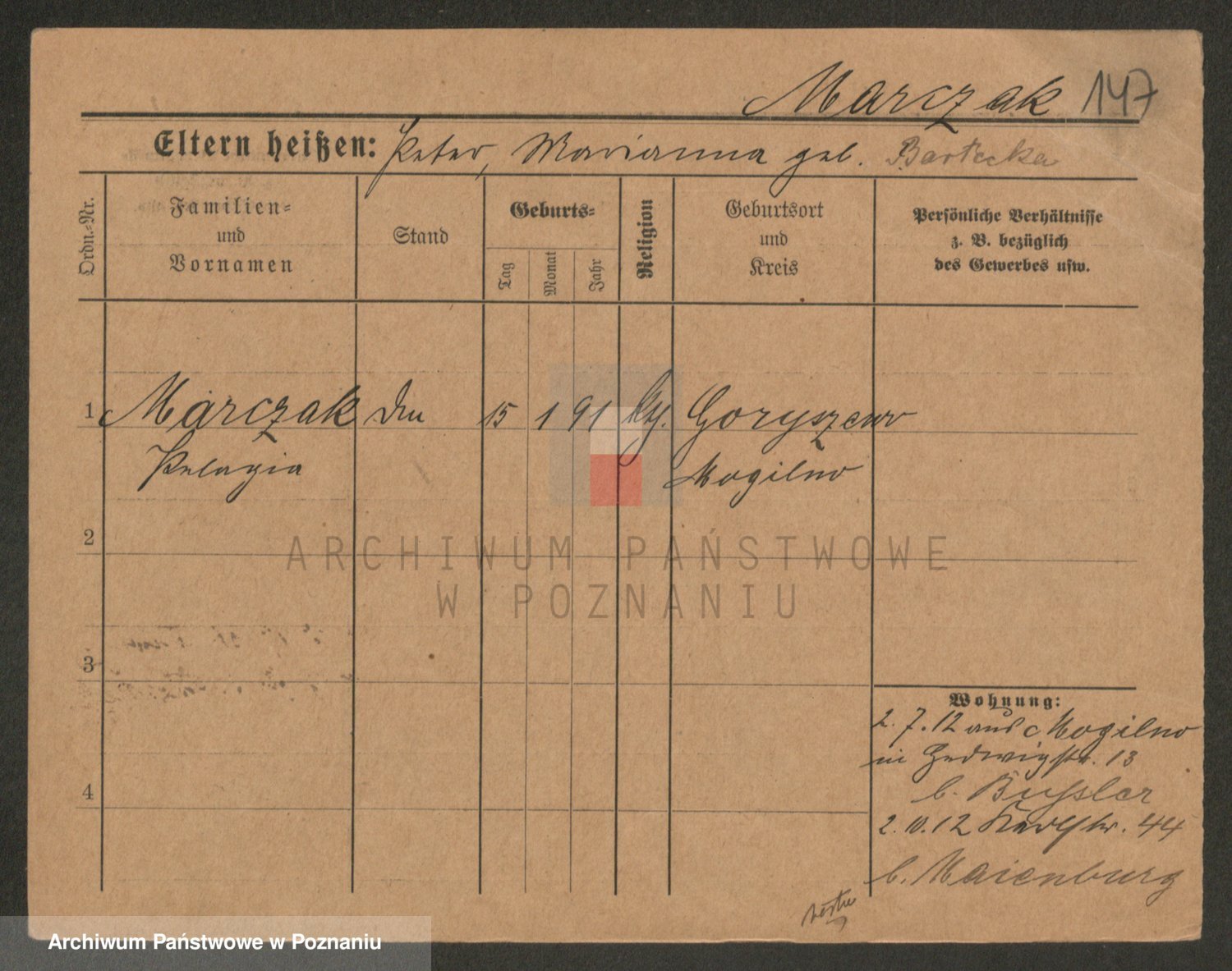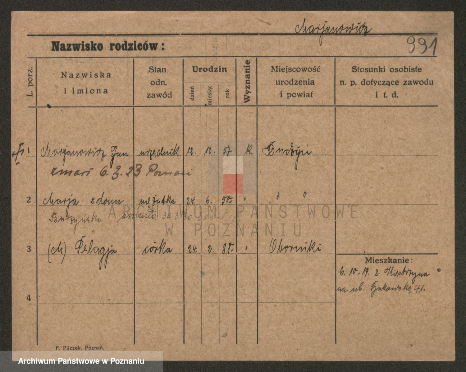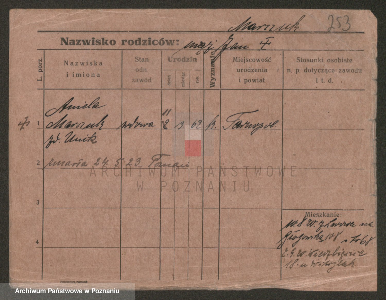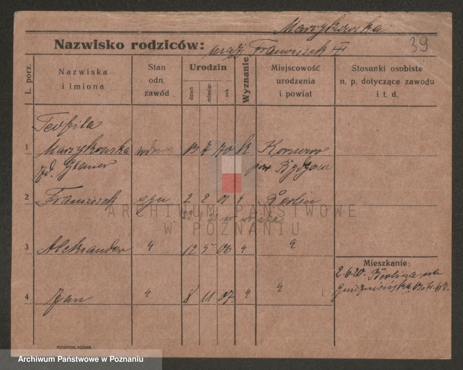 Marzykowska zd.Glemer, Teofila