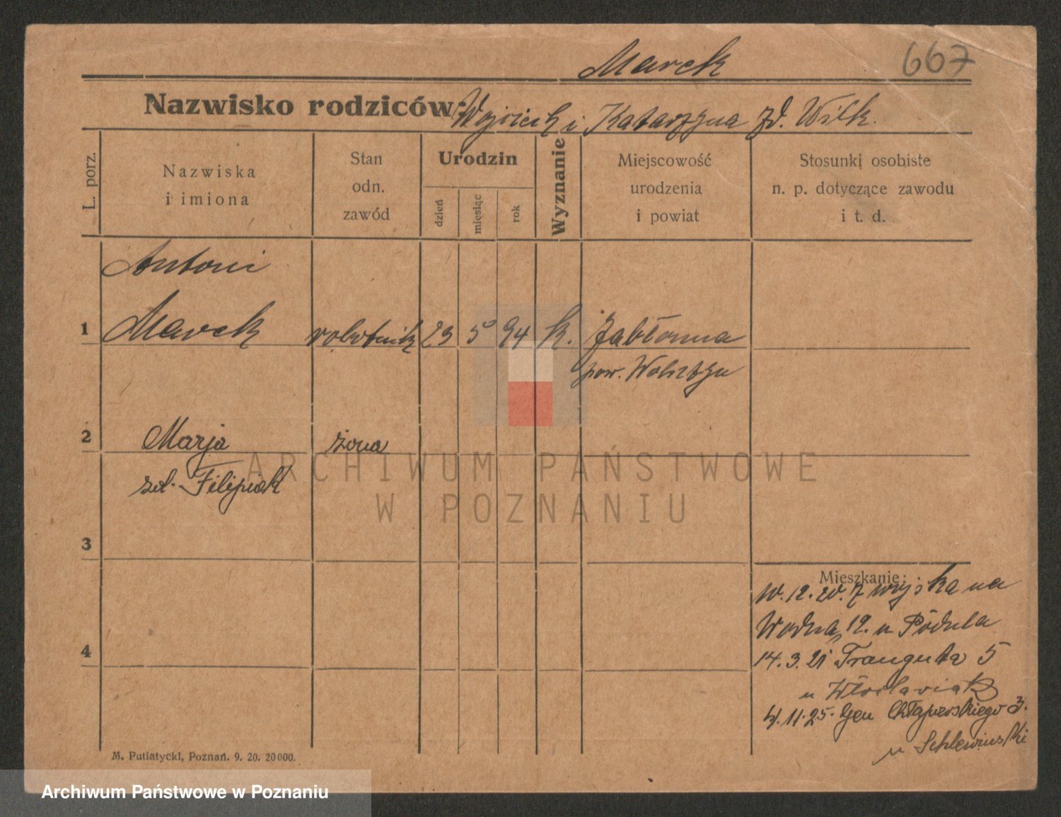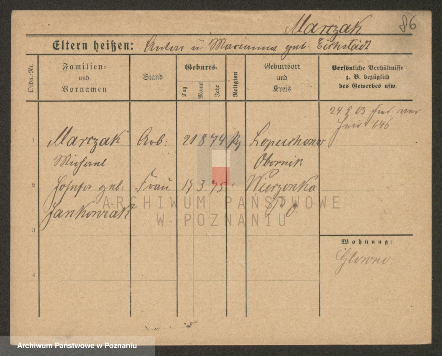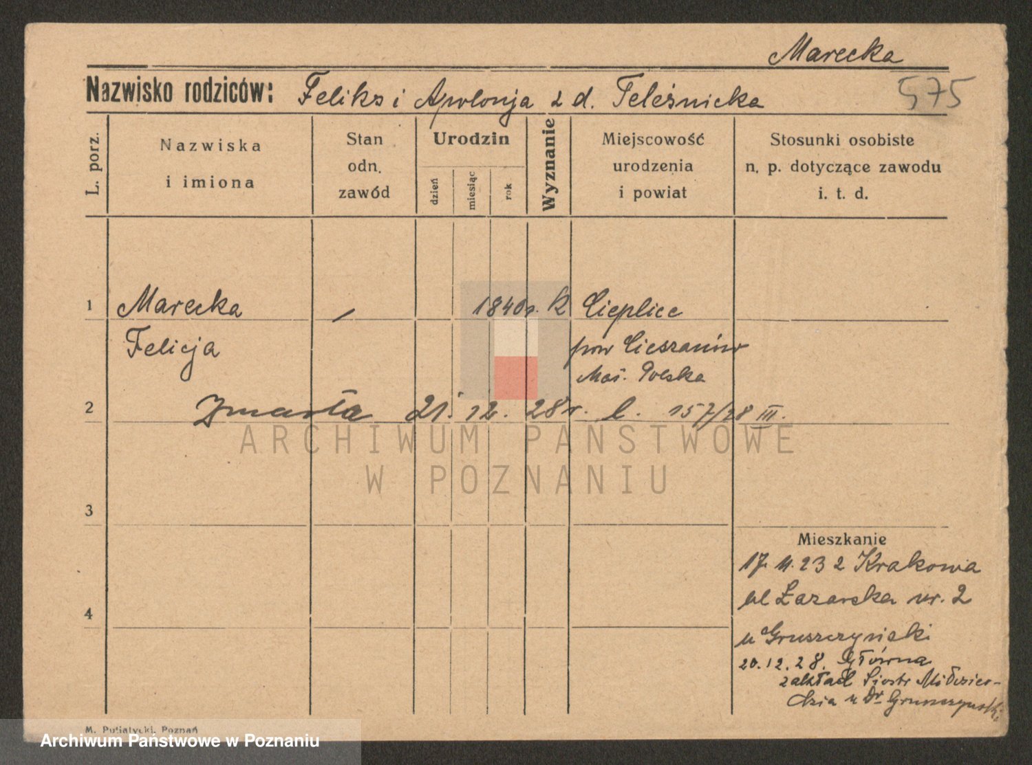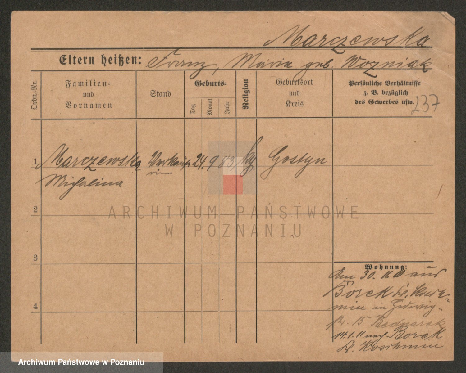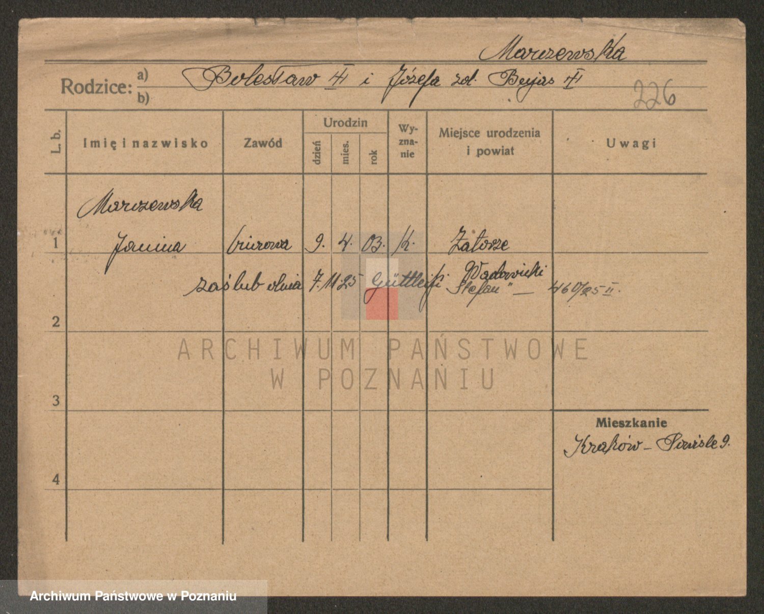 Marzykowska zd.Glemer, Teofila