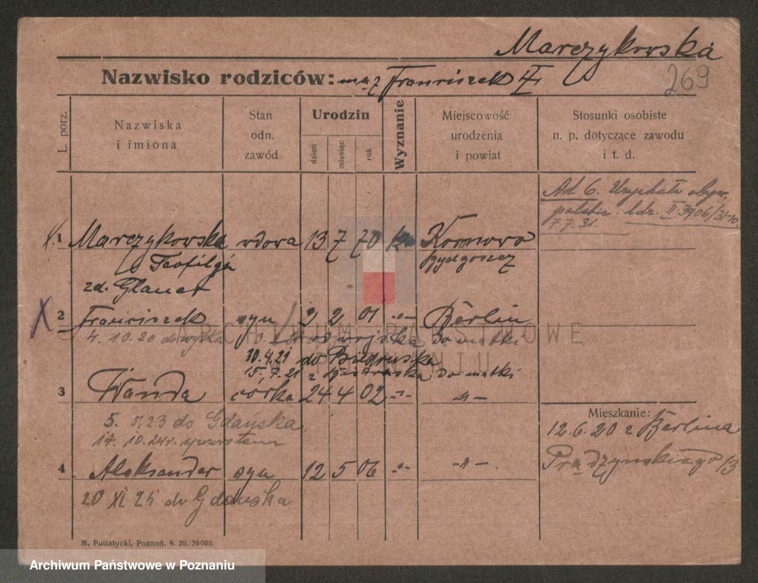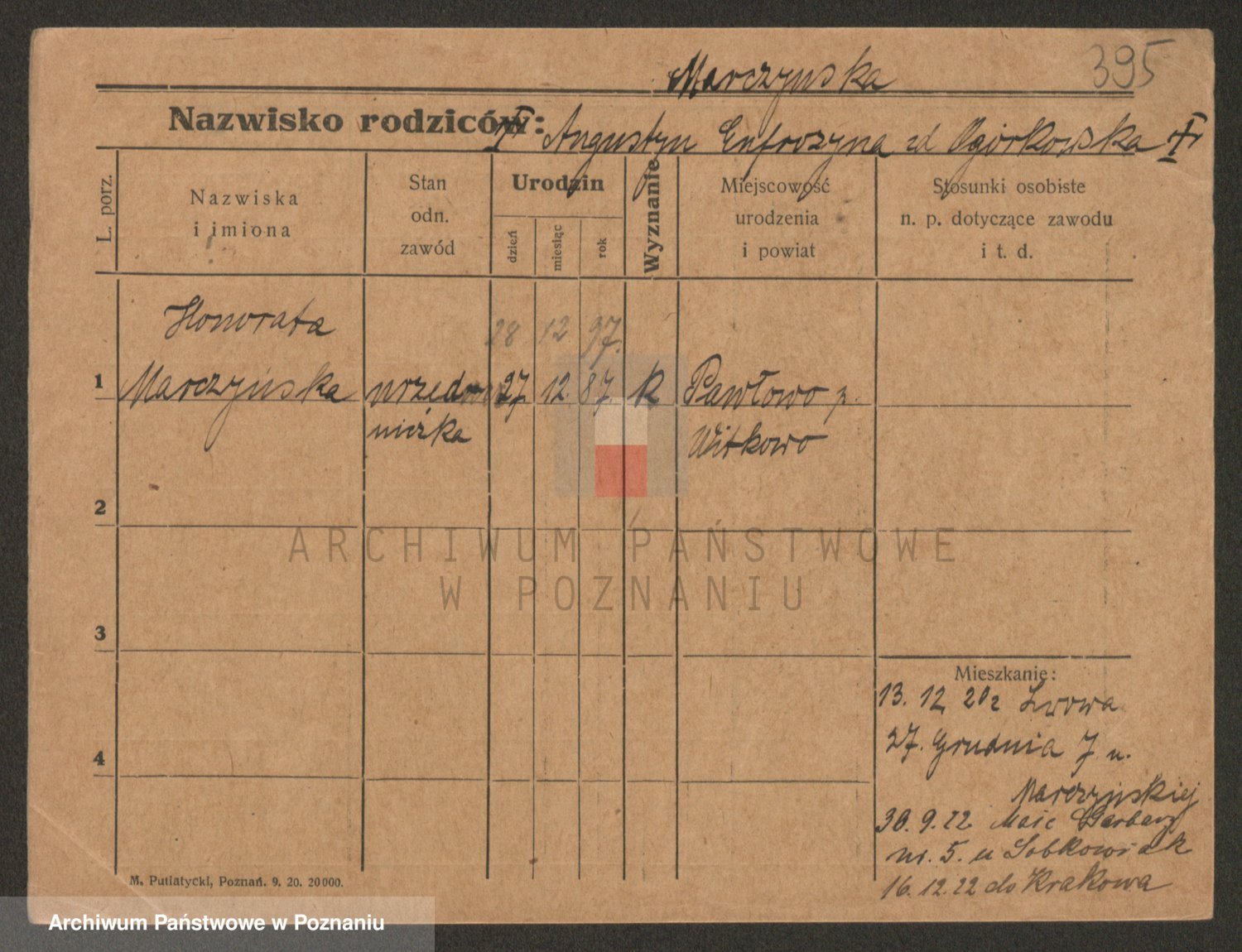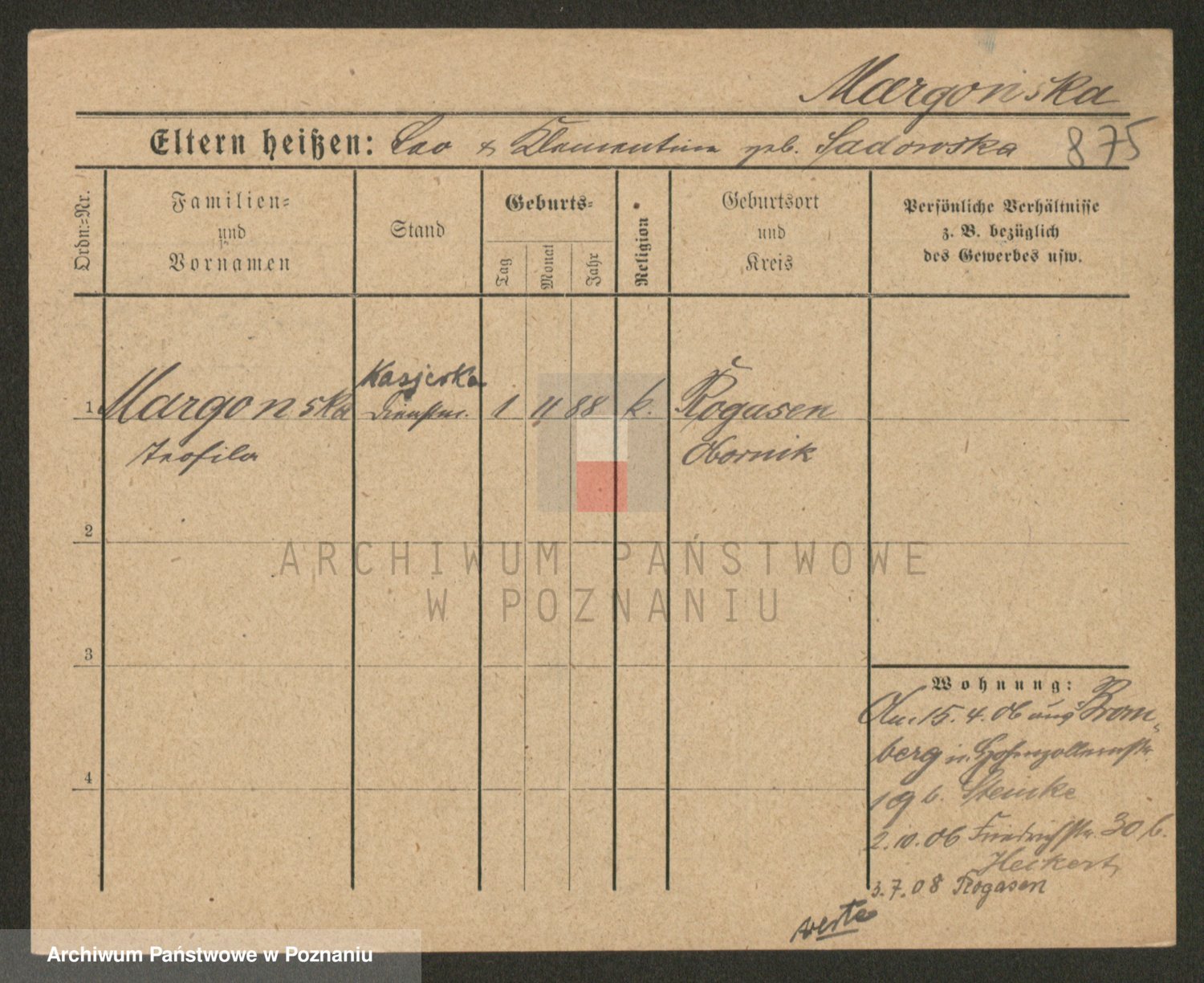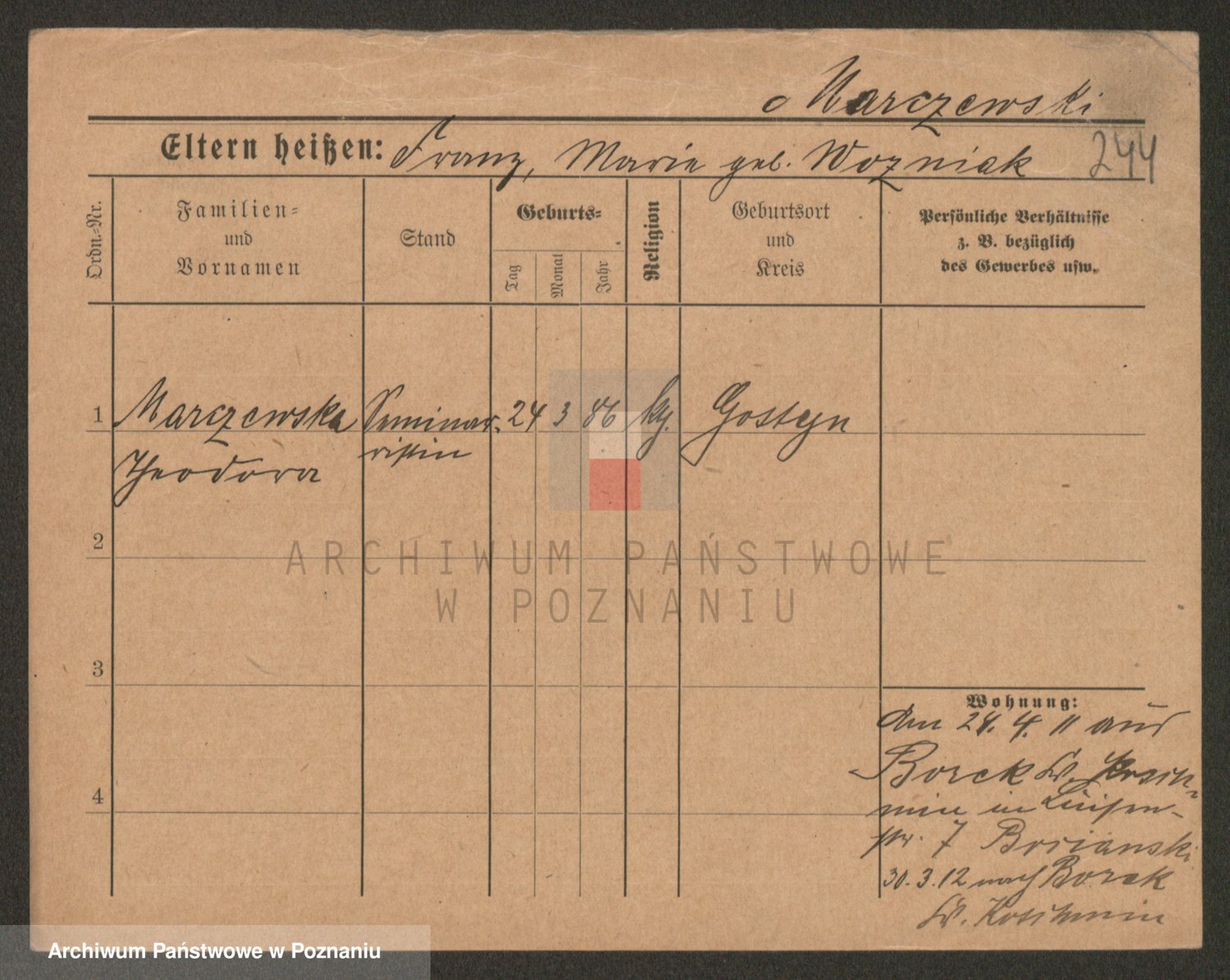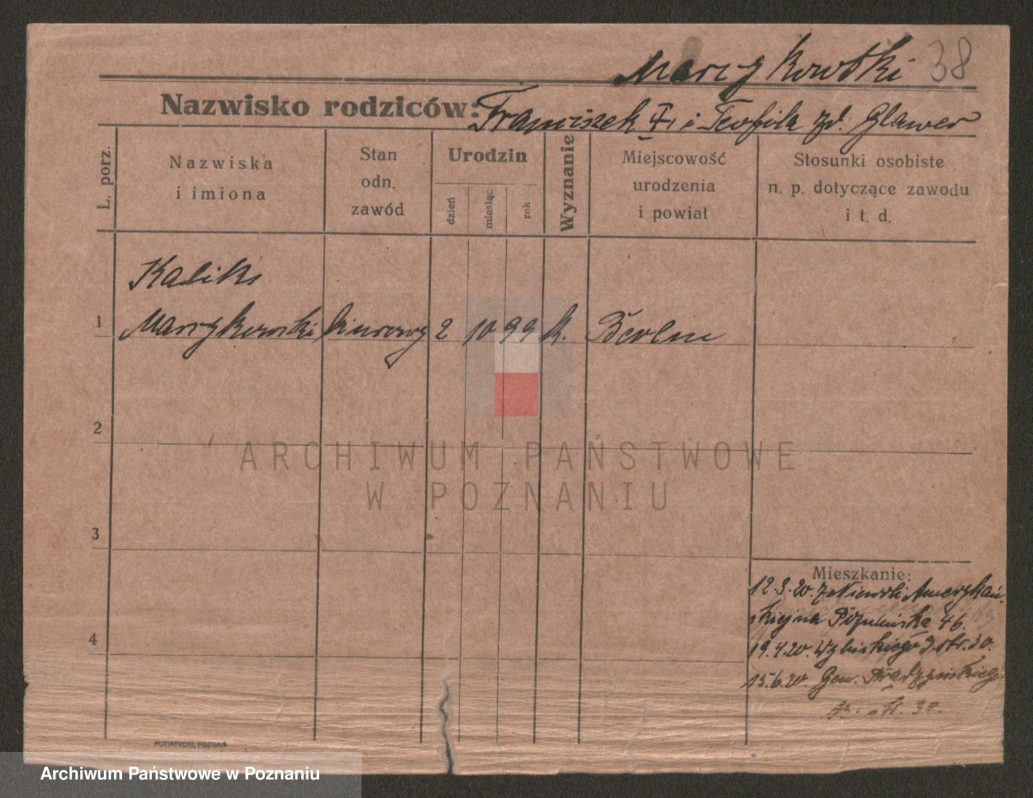 Marzykowska zd.Glemer, Teofila