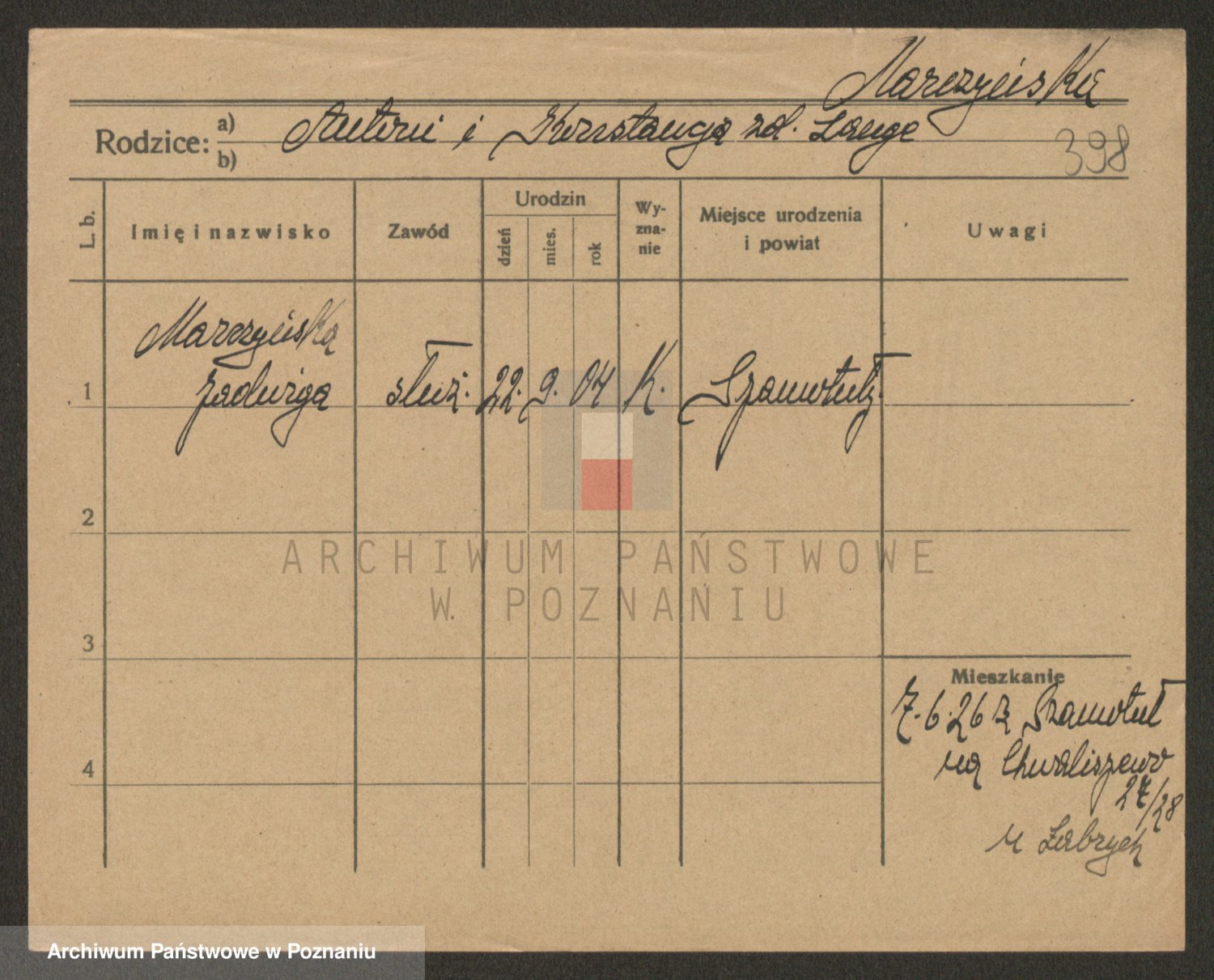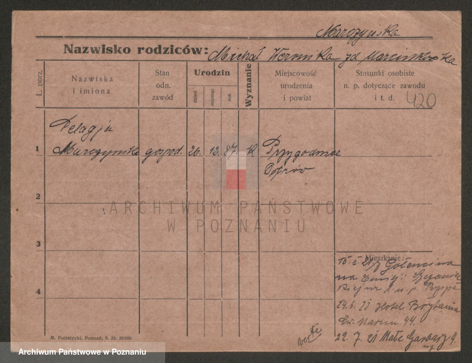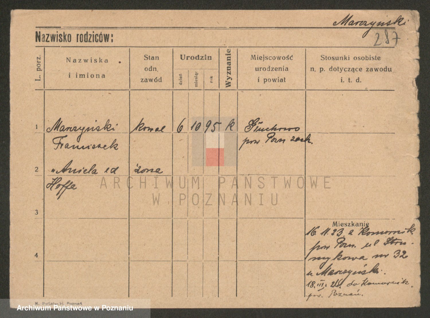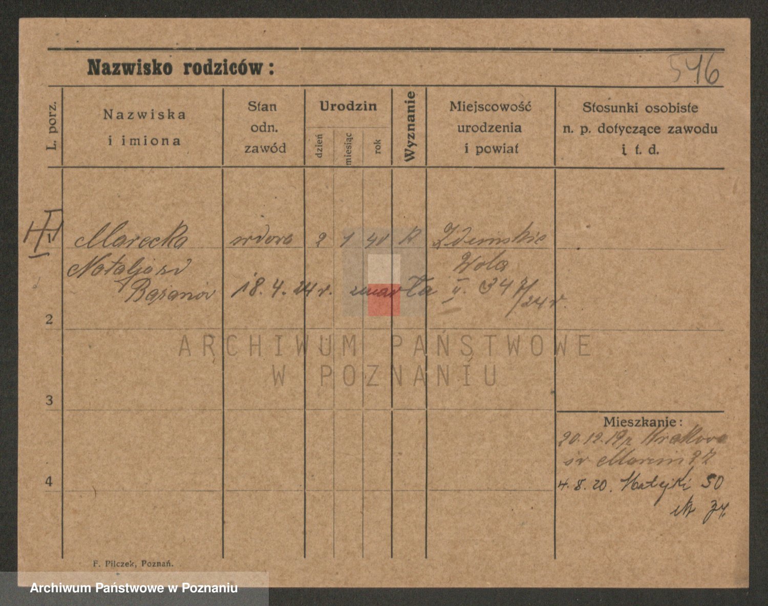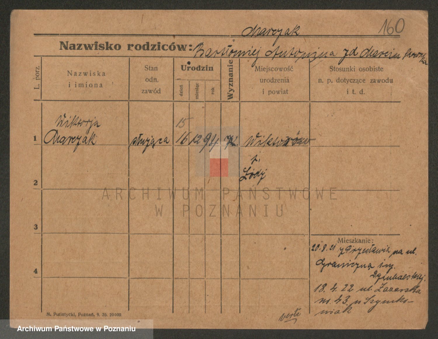 Marzykowska zd.Glemer, Teofila