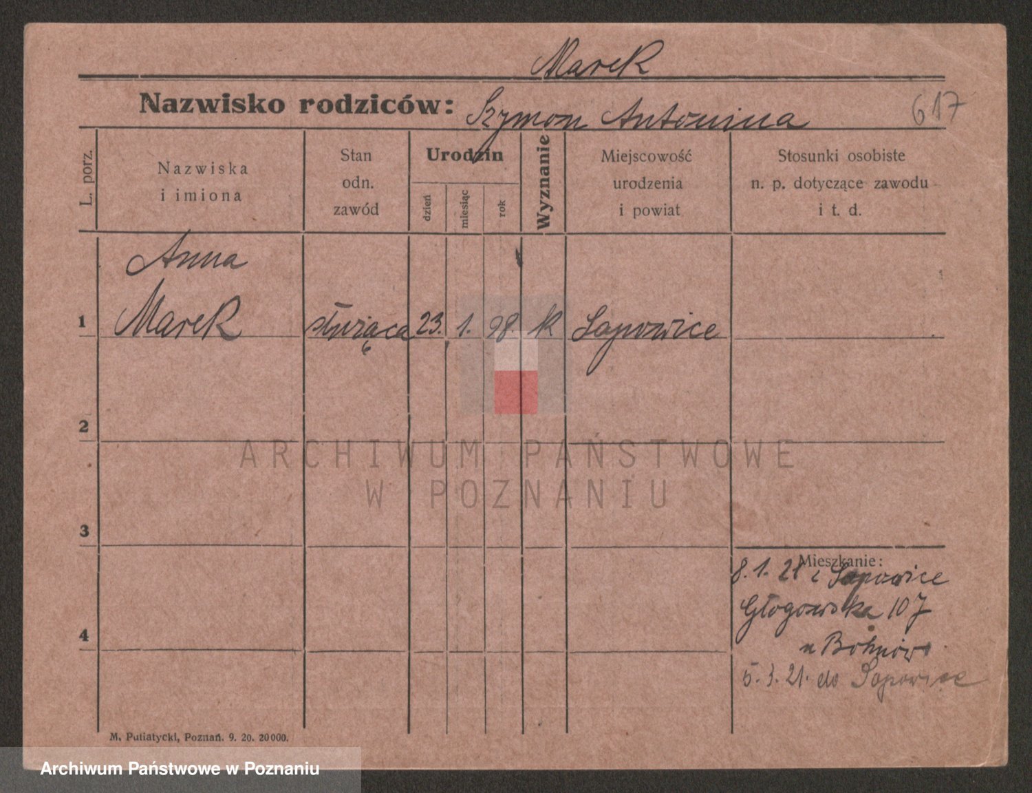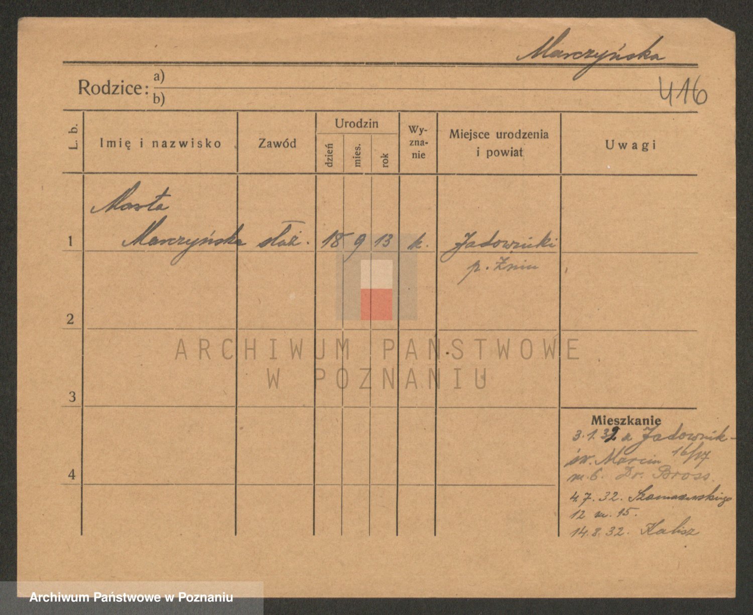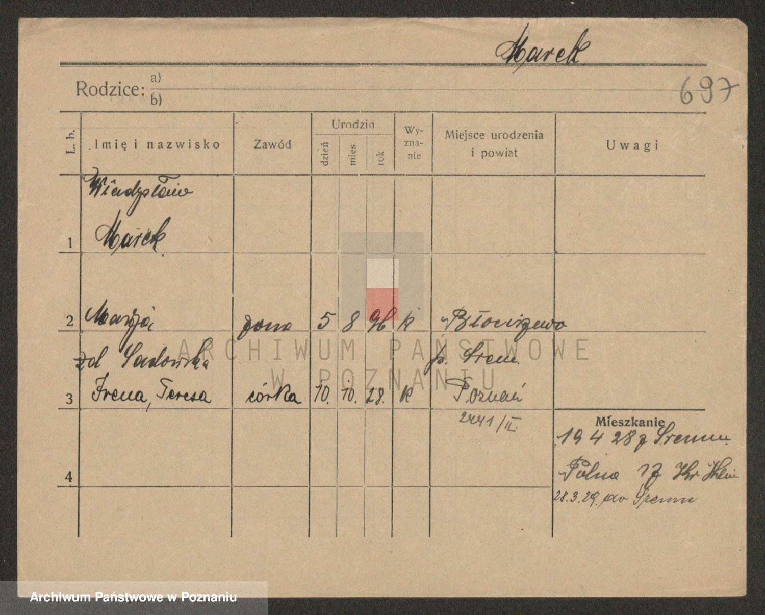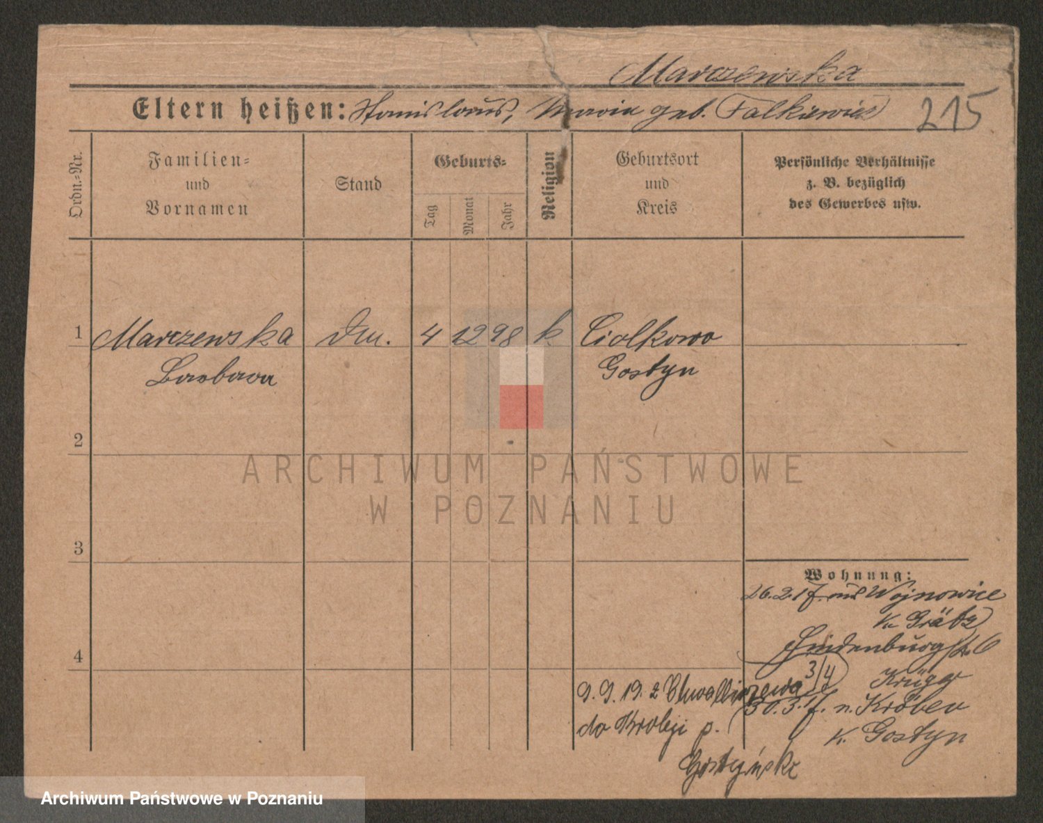 Marzykowska zd.Glemer, Teofila