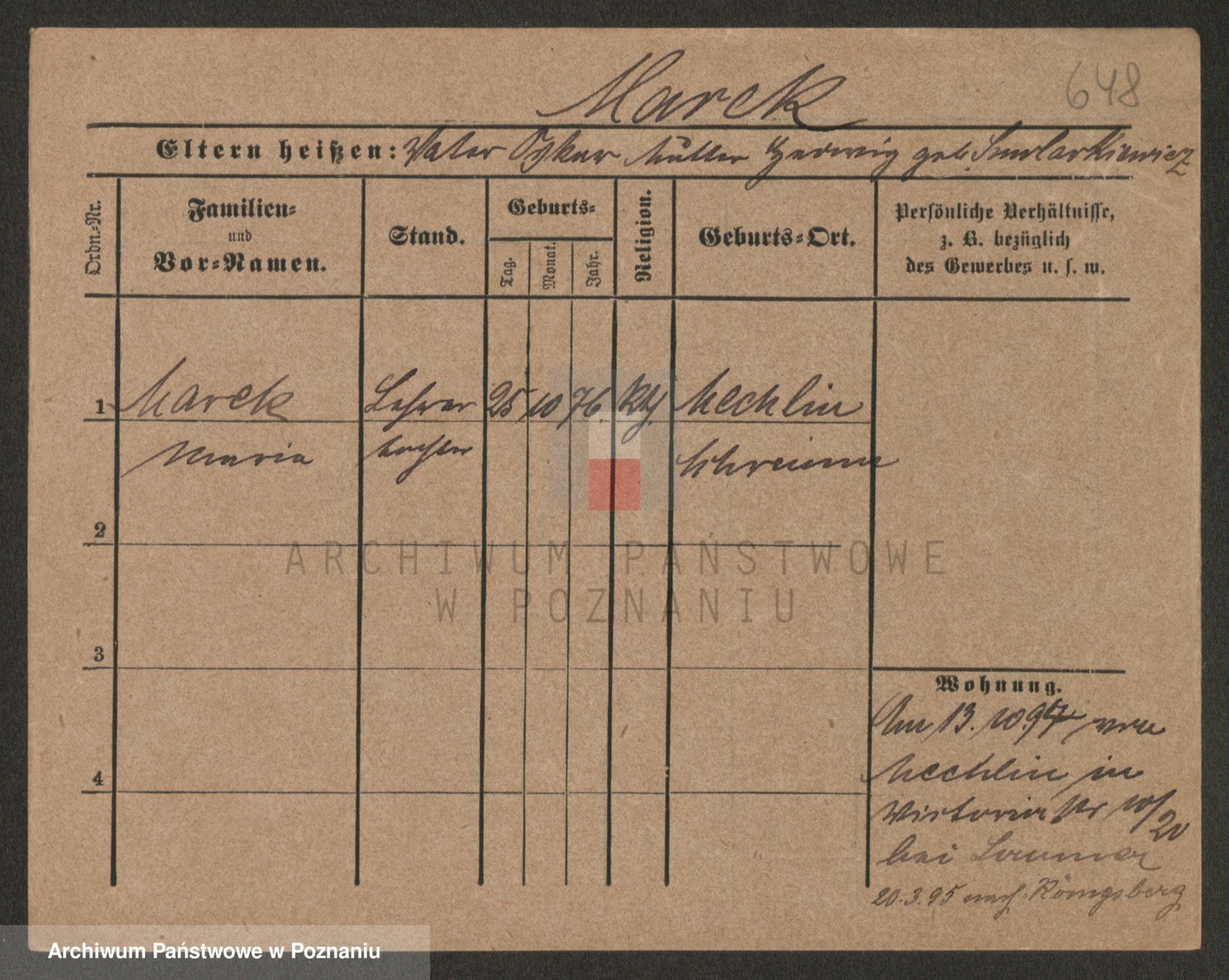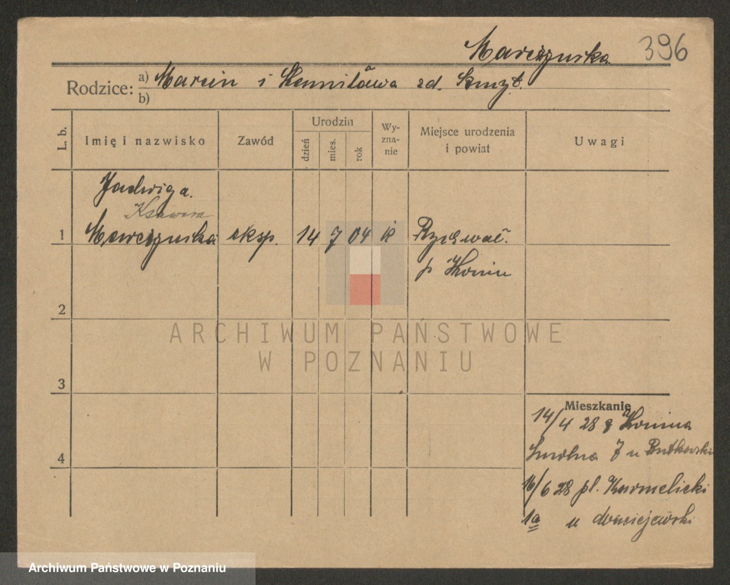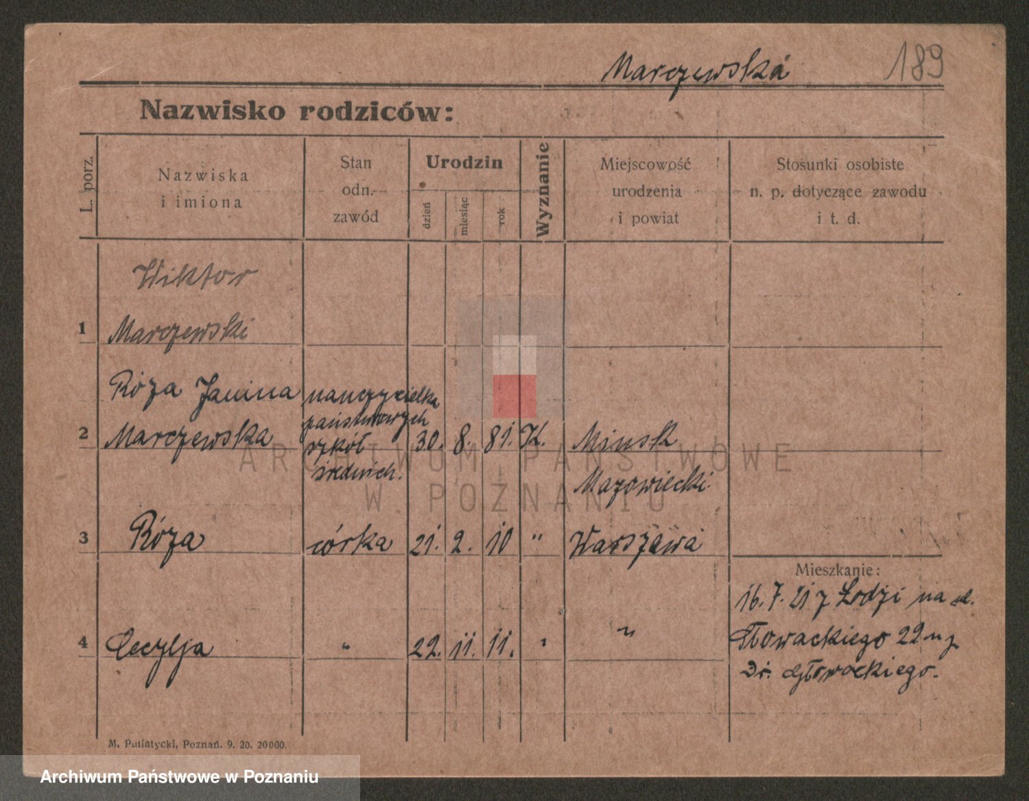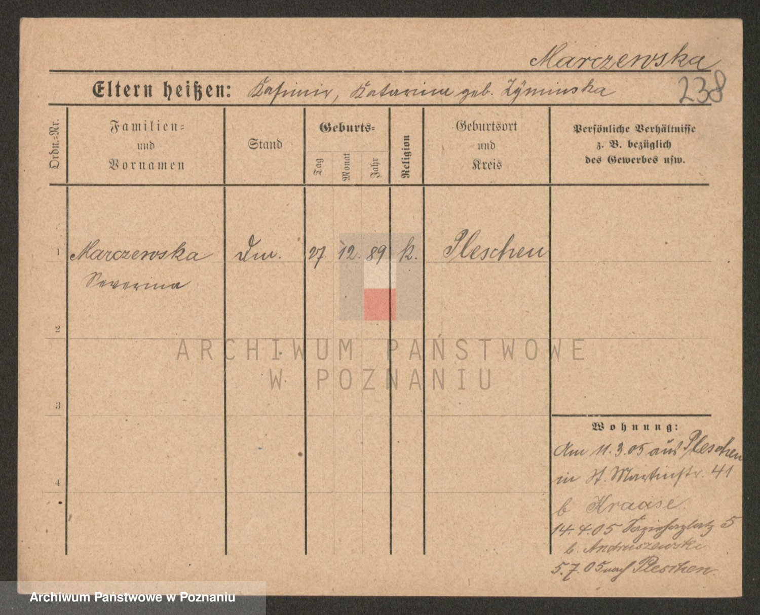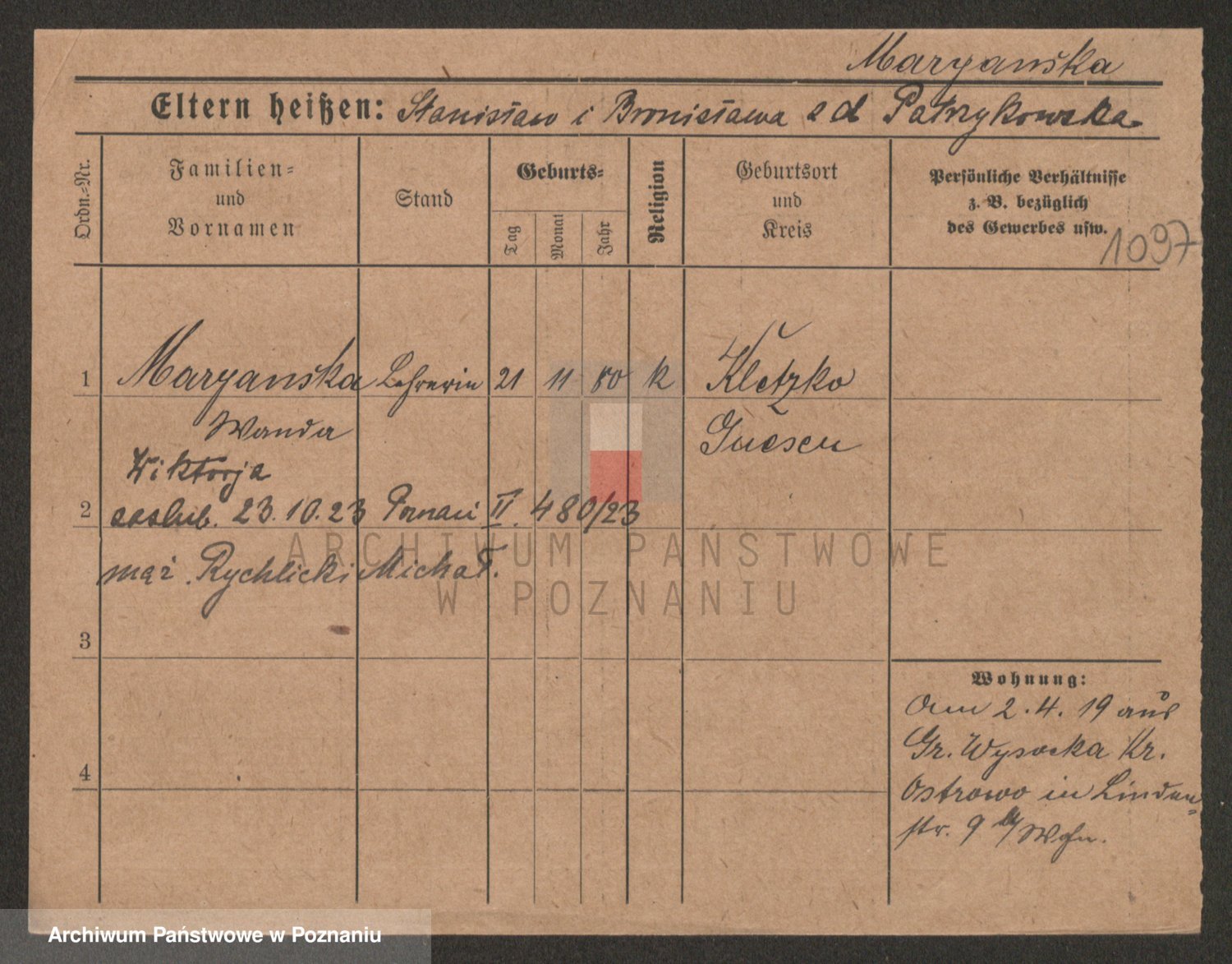 Marzykowska zd.Glemer, Teofila