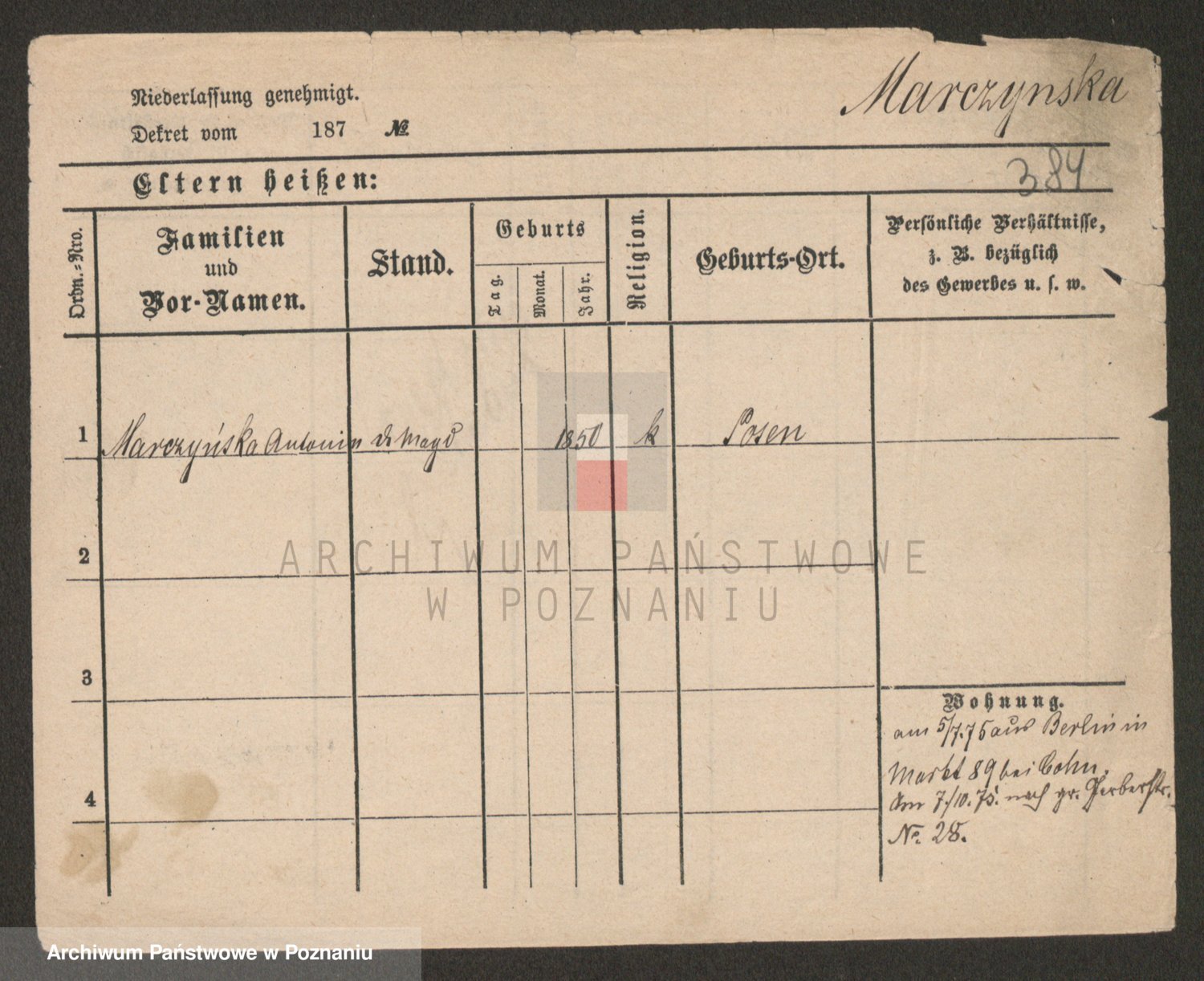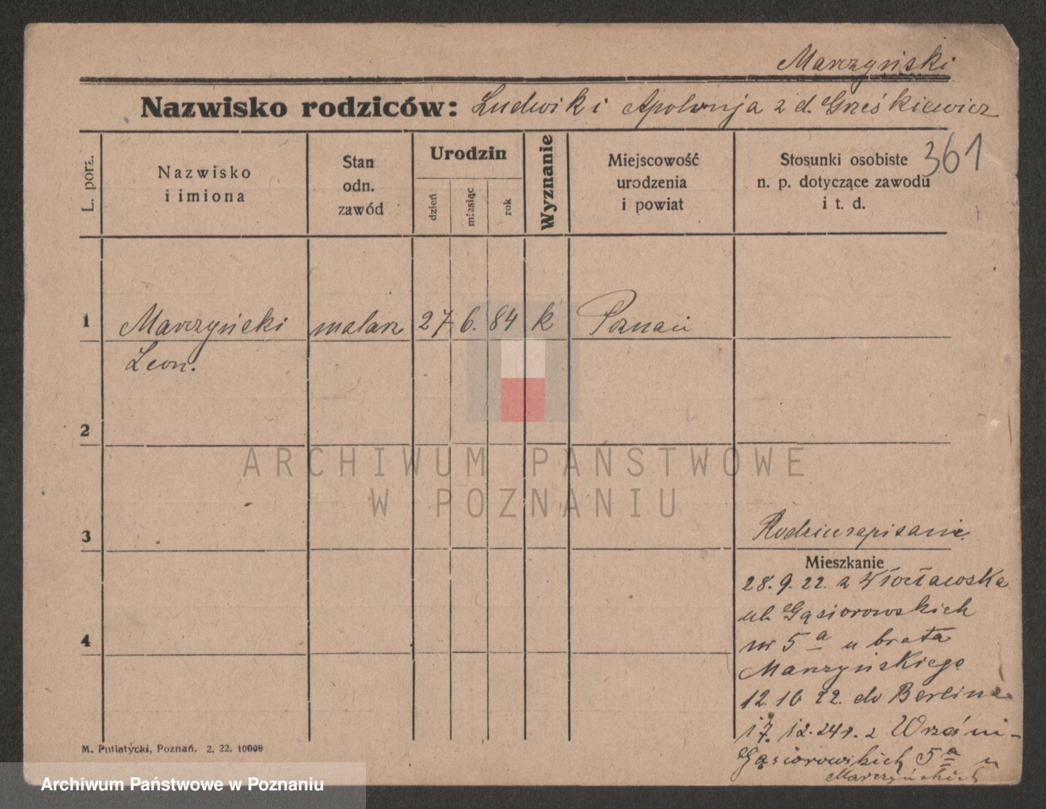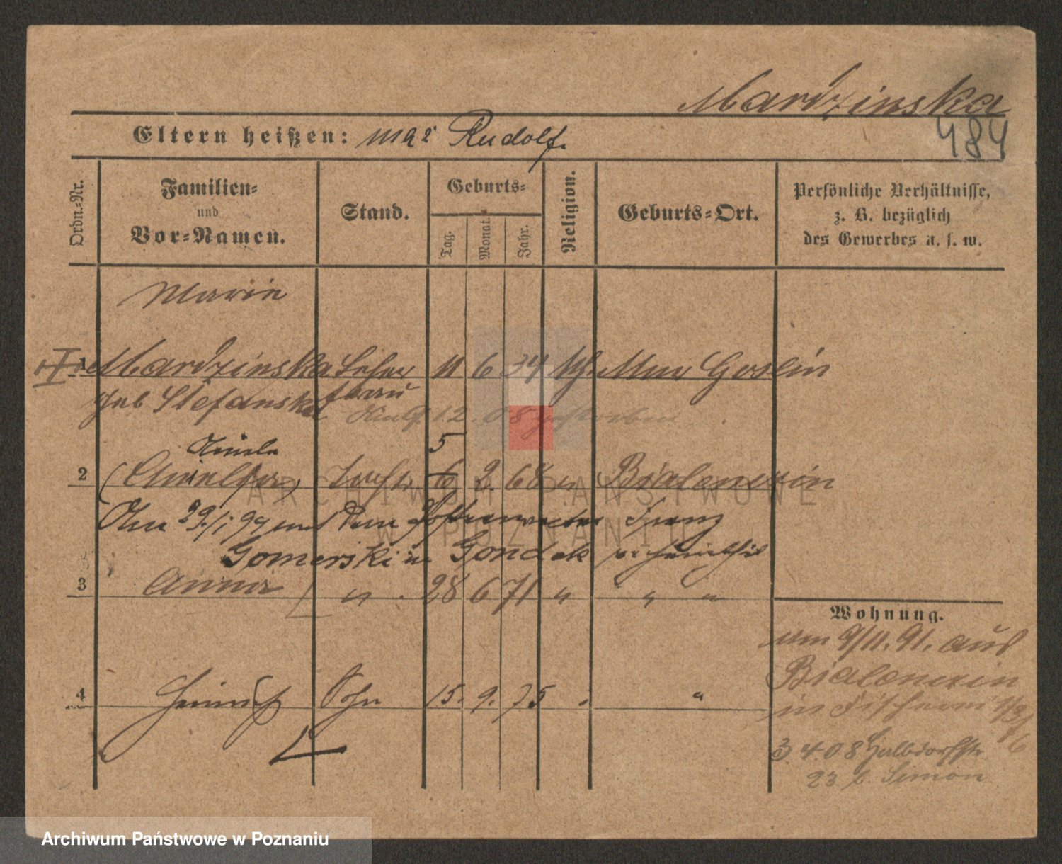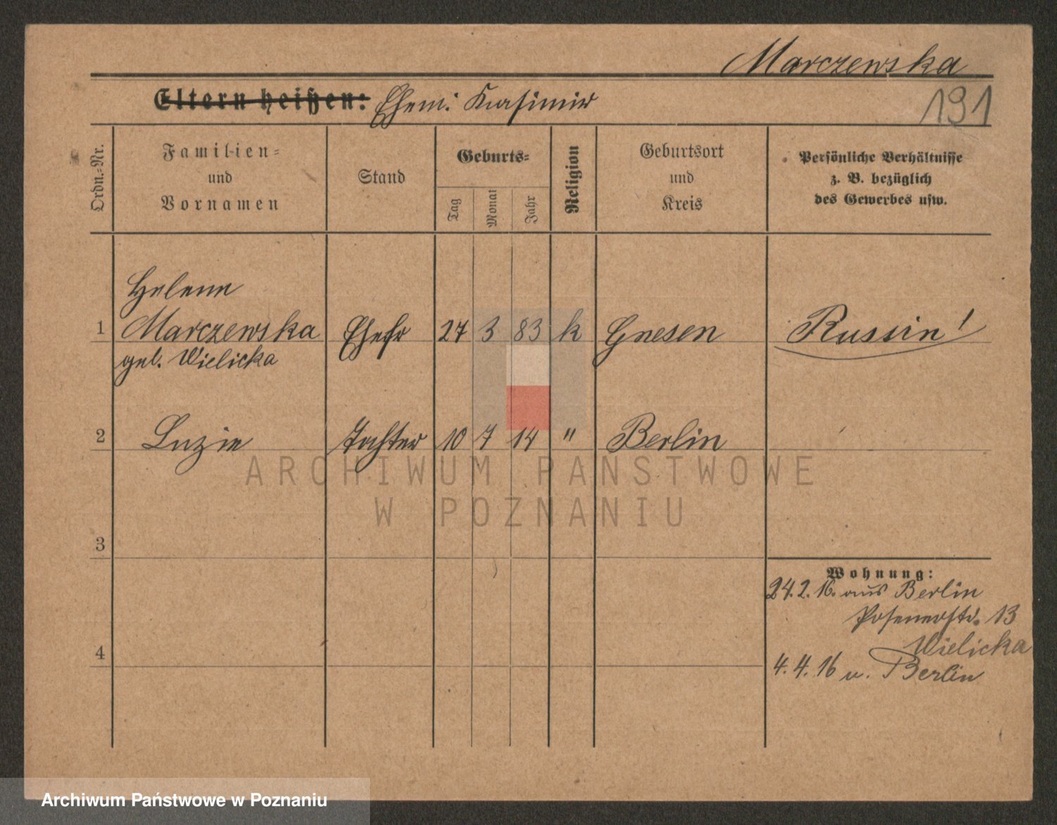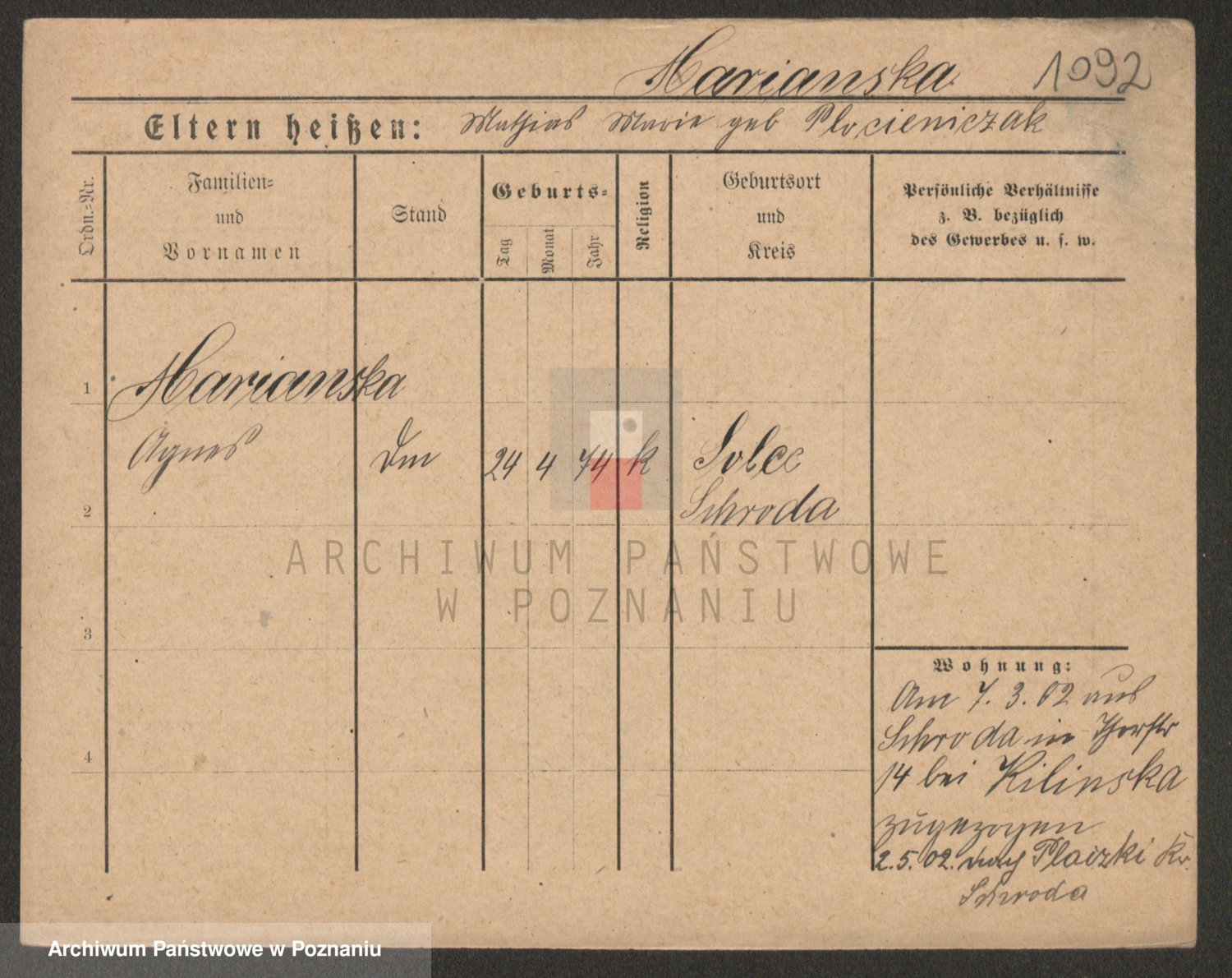 Marzykowska zd.Glemer, Teofila