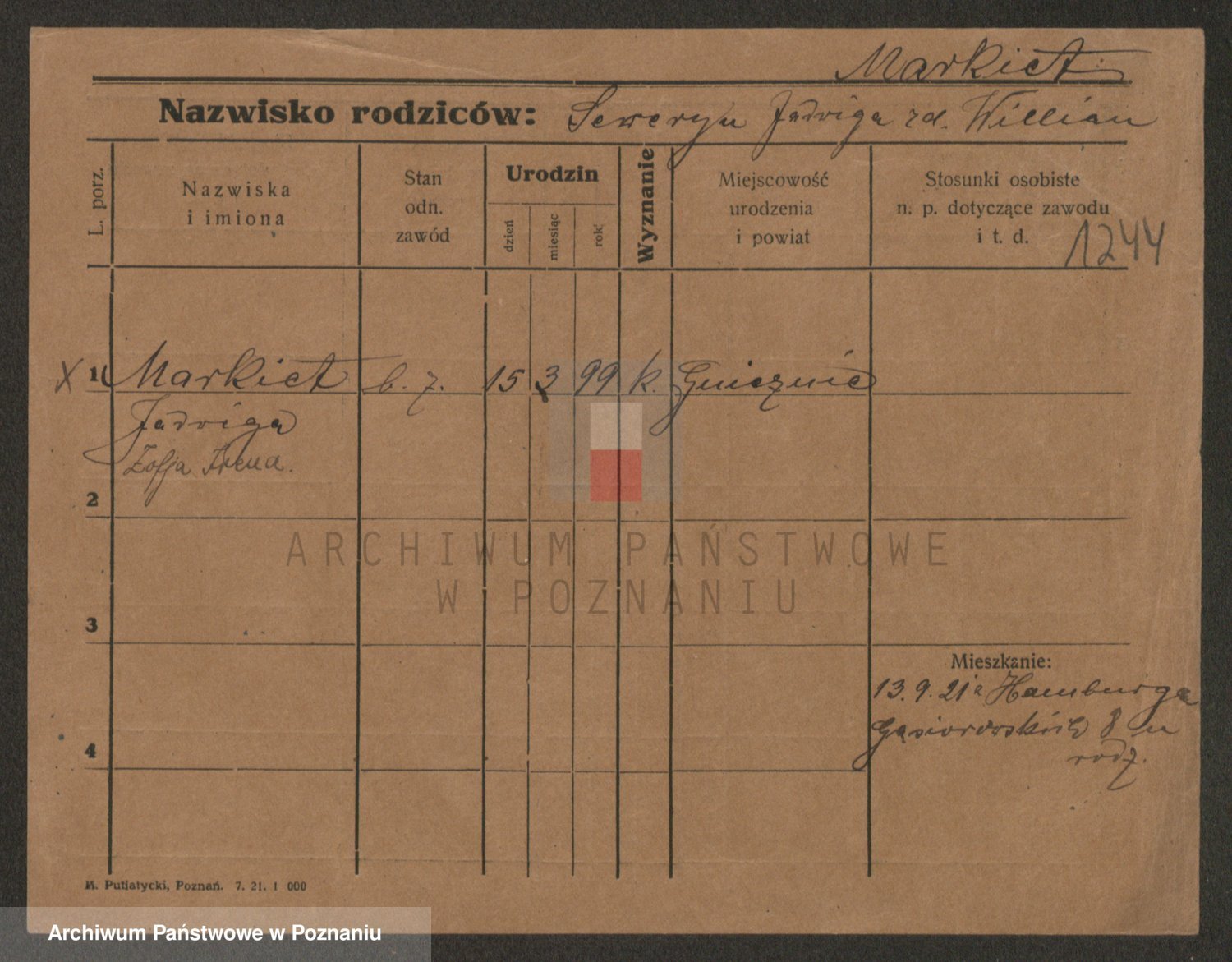 Markiet zd. Wiliam, Jadwiga
