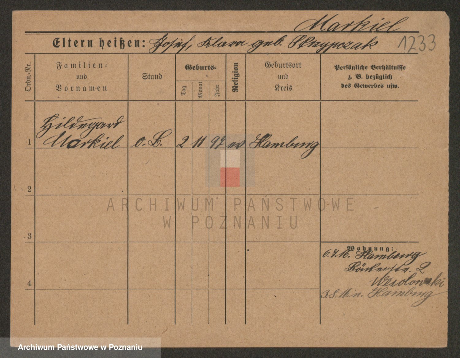 Markiel zd. Skrzypczak, Klara Mathilde