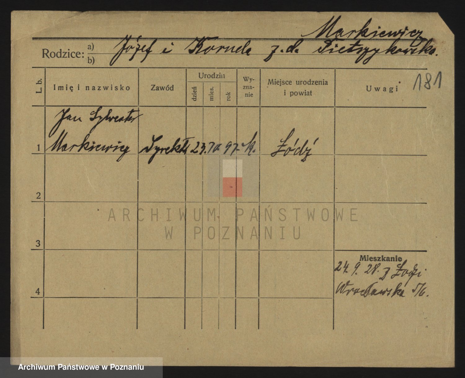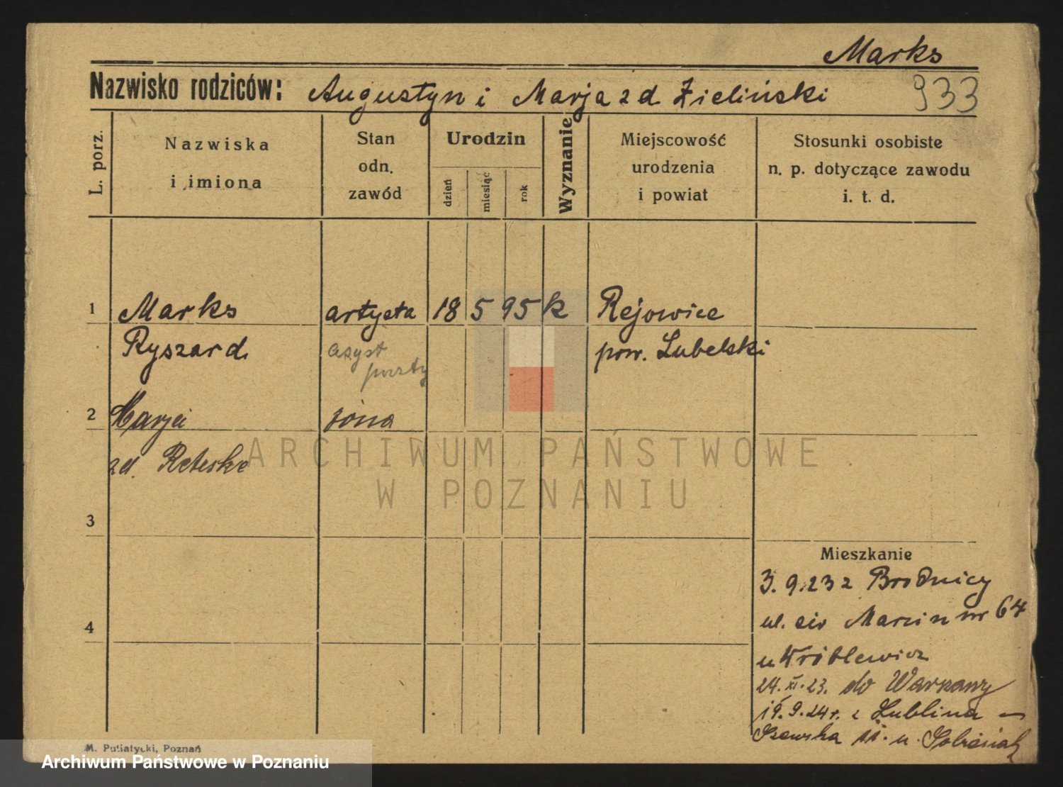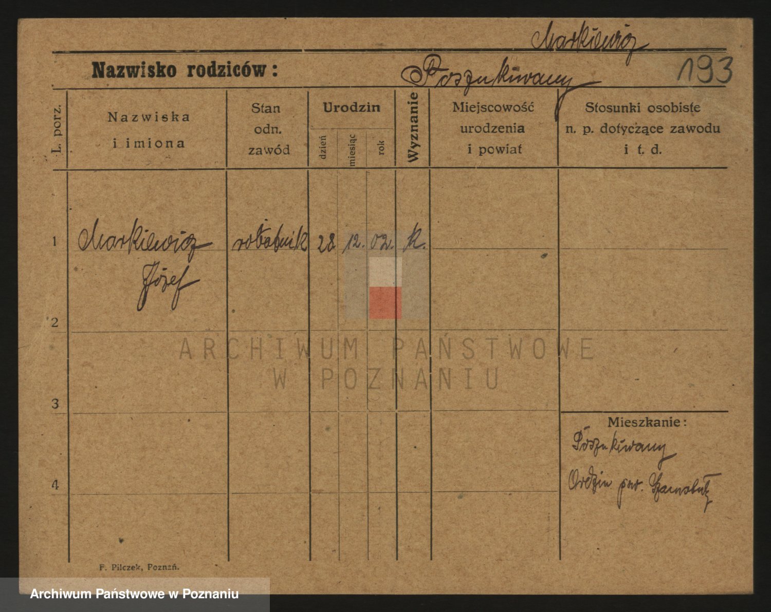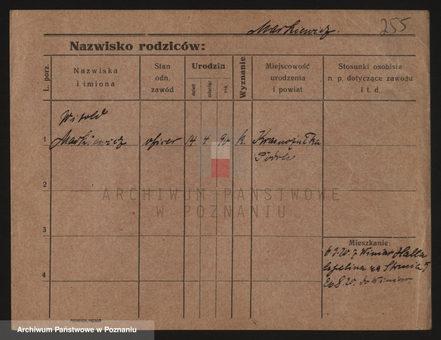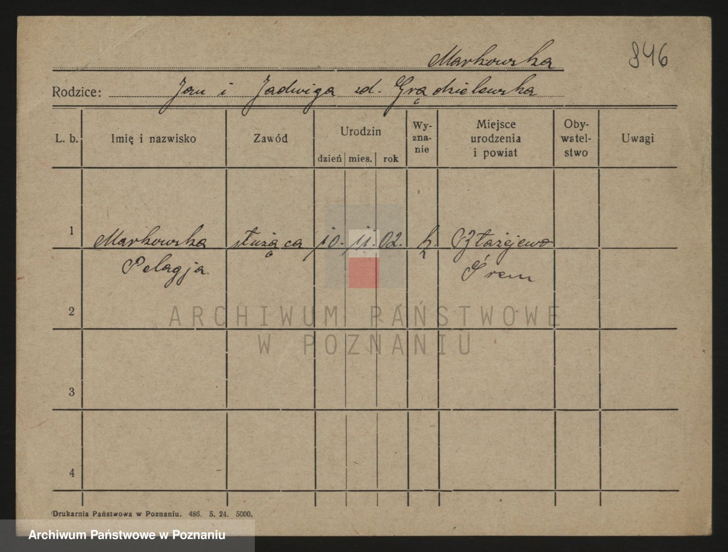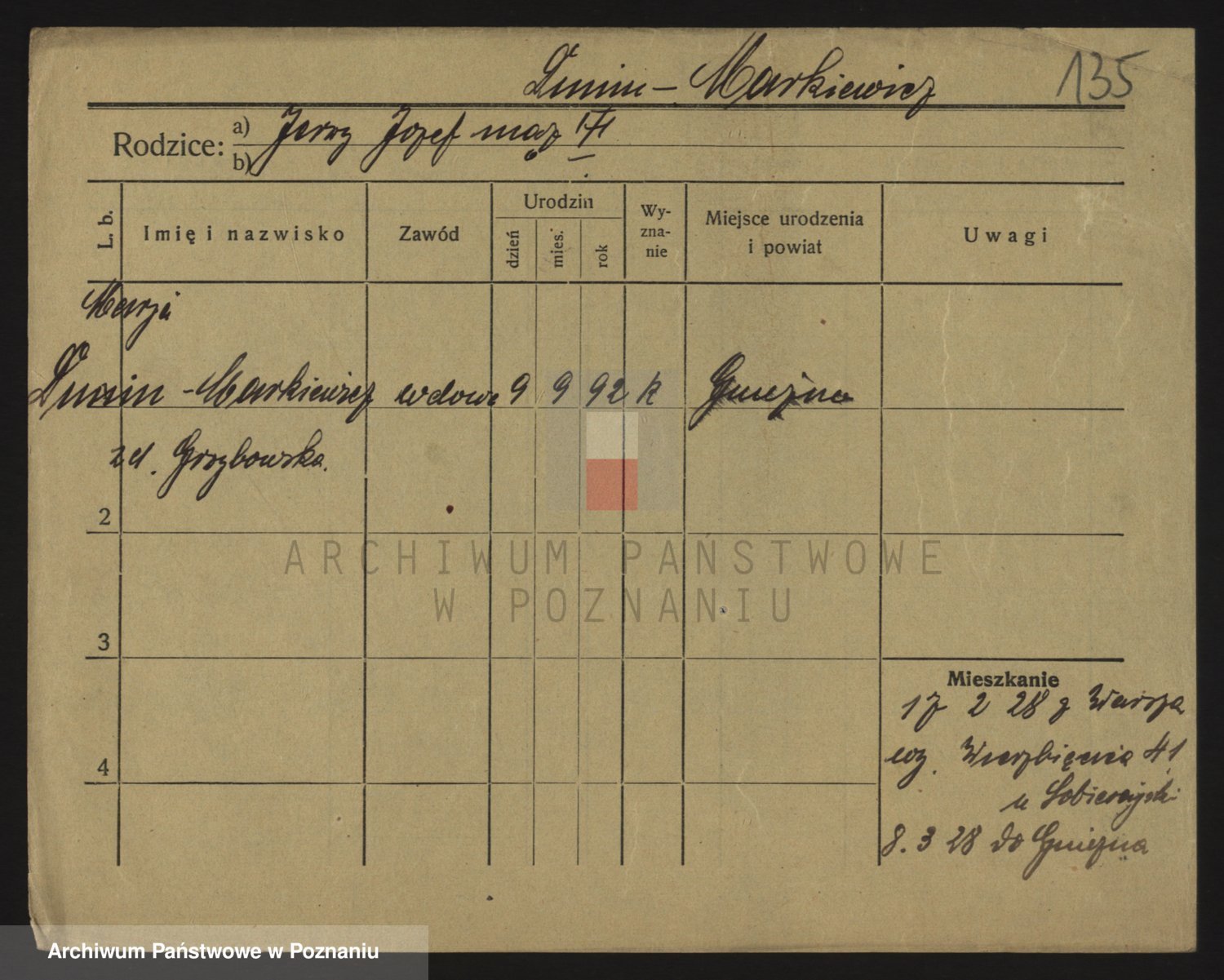 Podgląd karty osobowej dostępny jest po kliknięciu na nazwisko lub ikonkę karty. Można dokonywać powiększenia (ikony na górze) lub przechodzić między kolejnymi skanami (strzałki po bokach).