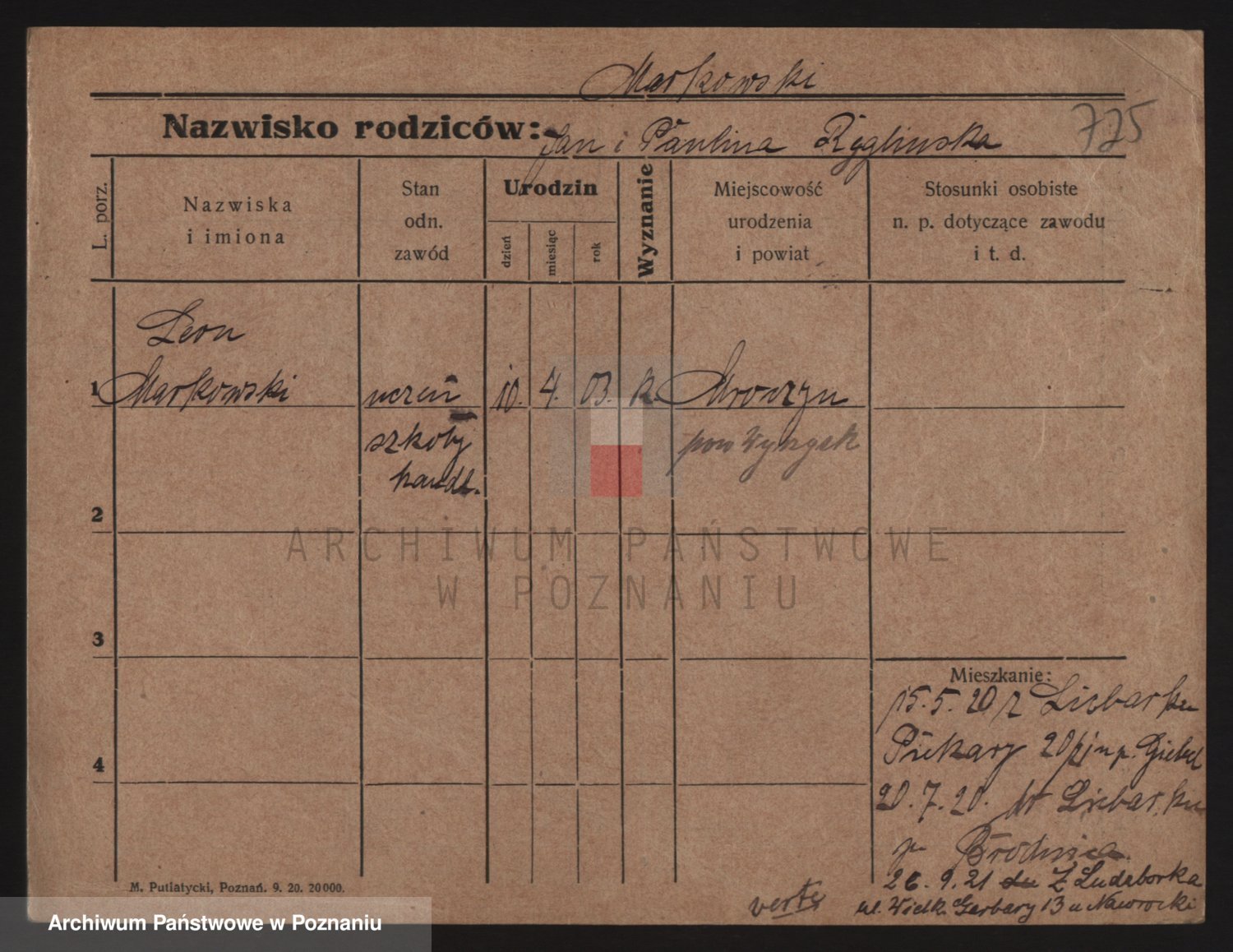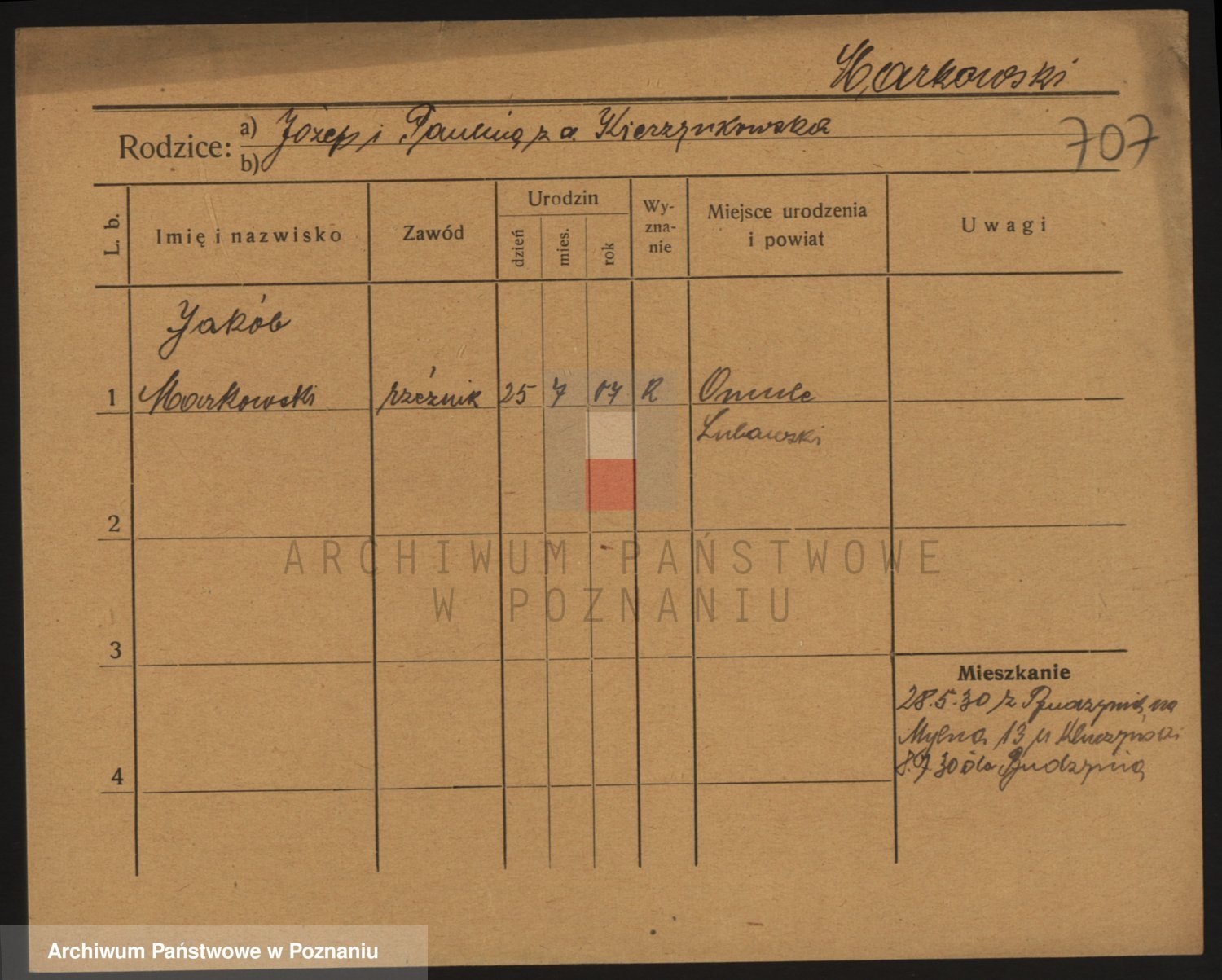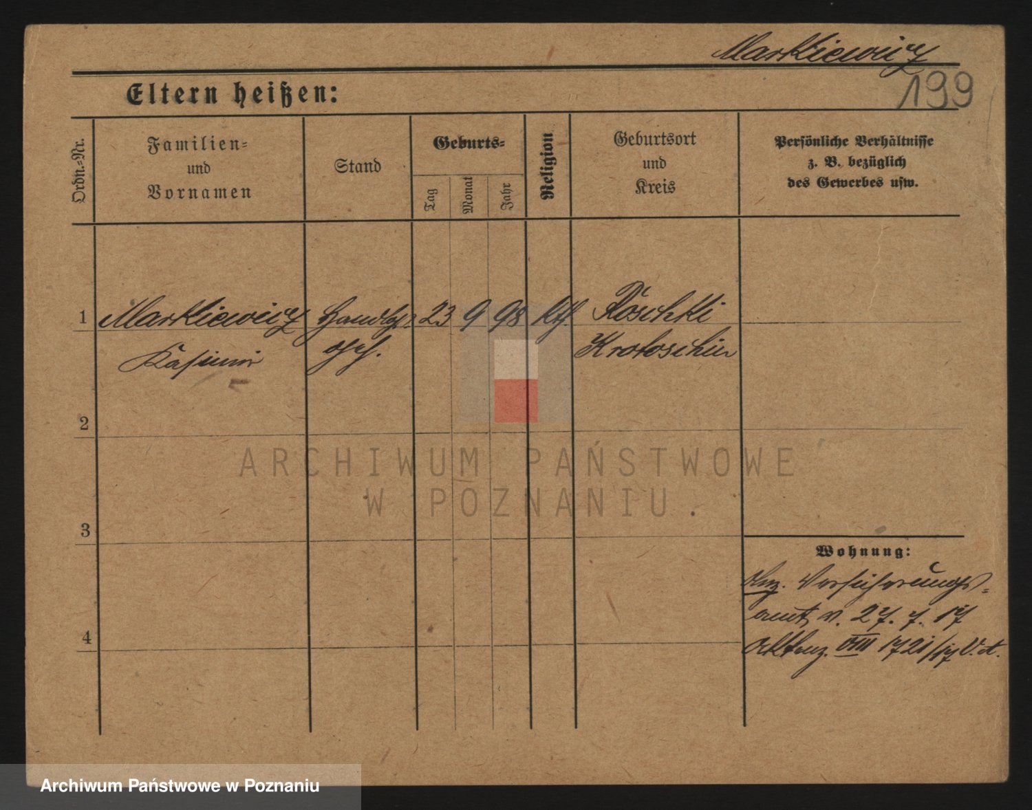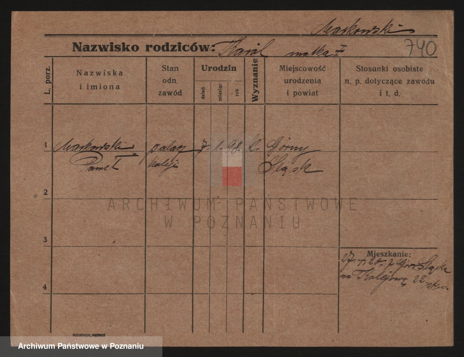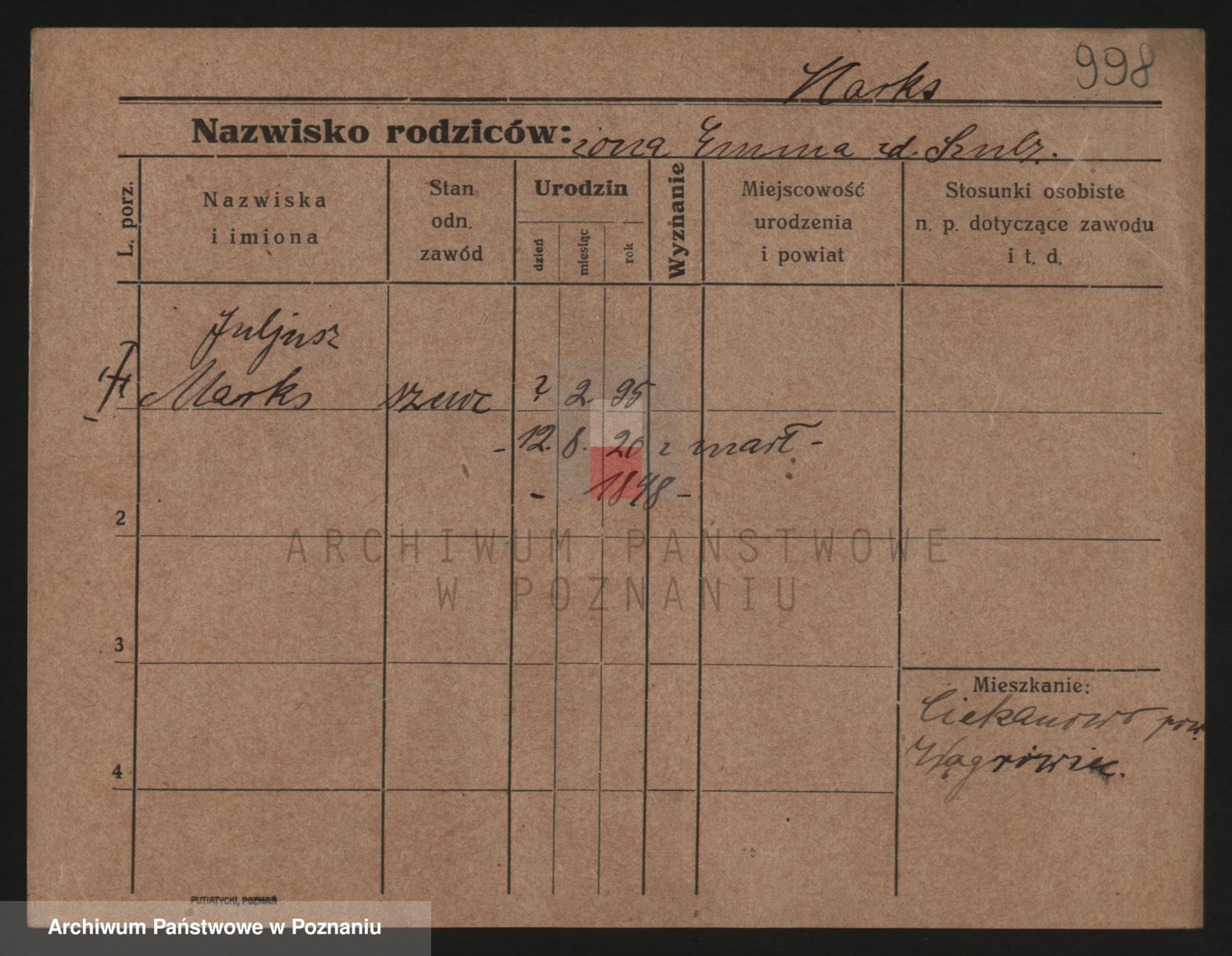 Podgląd karty osobowej dostępny jest po kliknięciu na nazwisko lub ikonkę karty. Można dokonywać powiększenia (ikony na górze) lub przechodzić między kolejnymi skanami (strzałki po bokach).