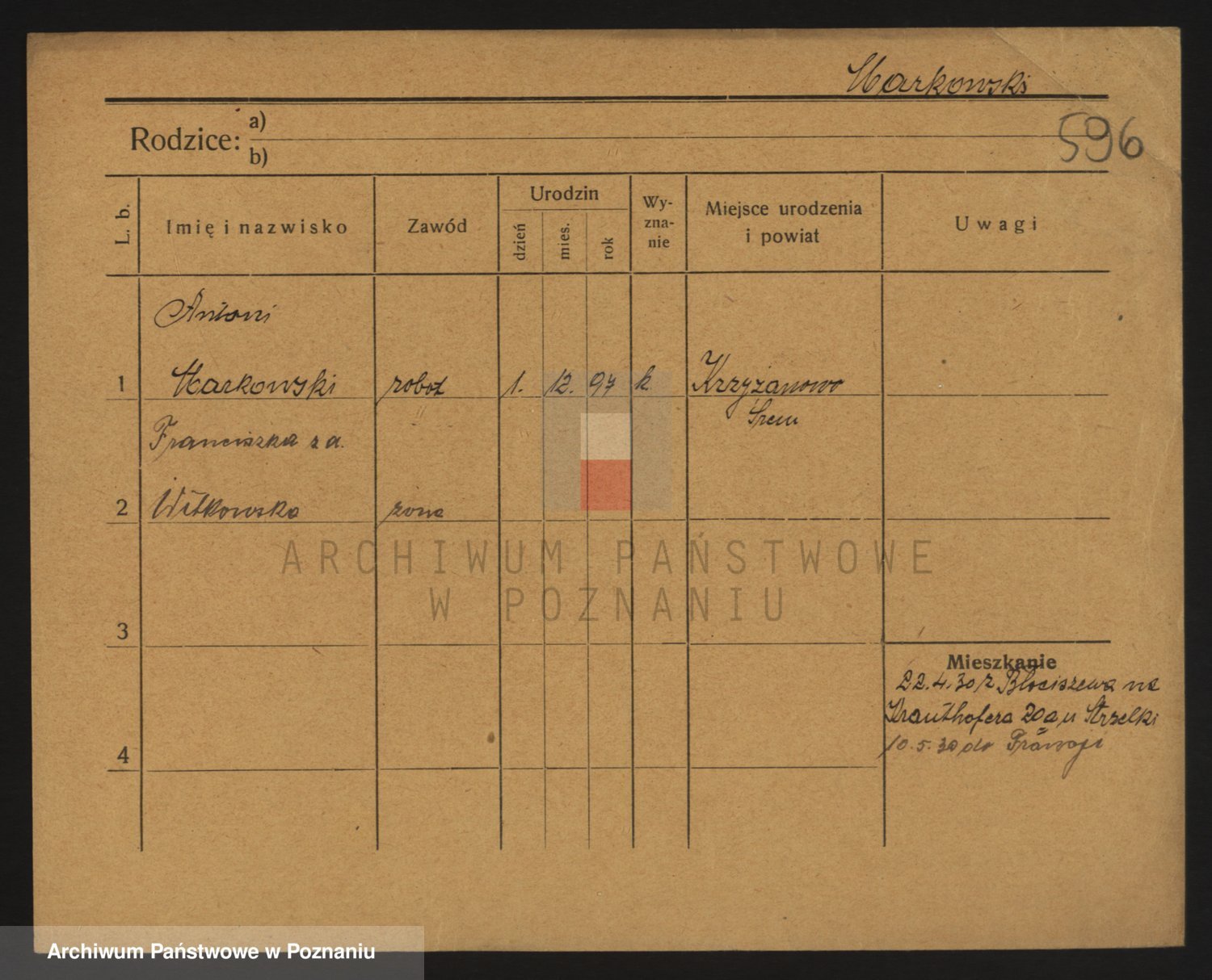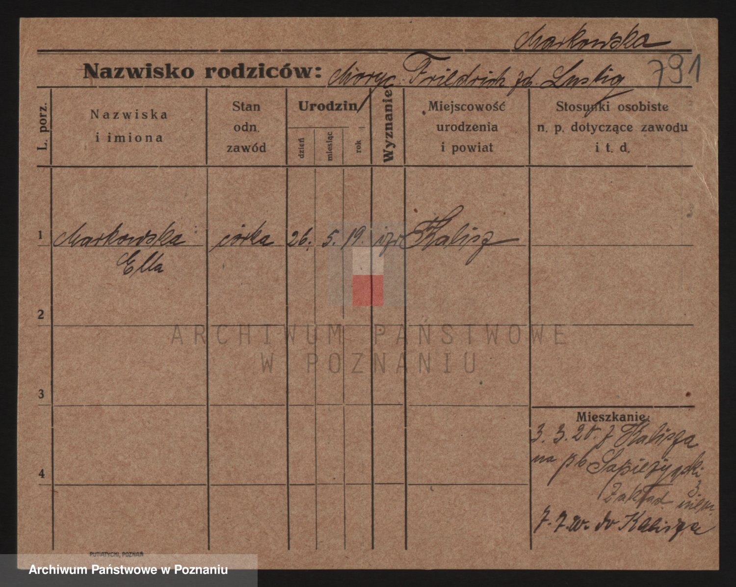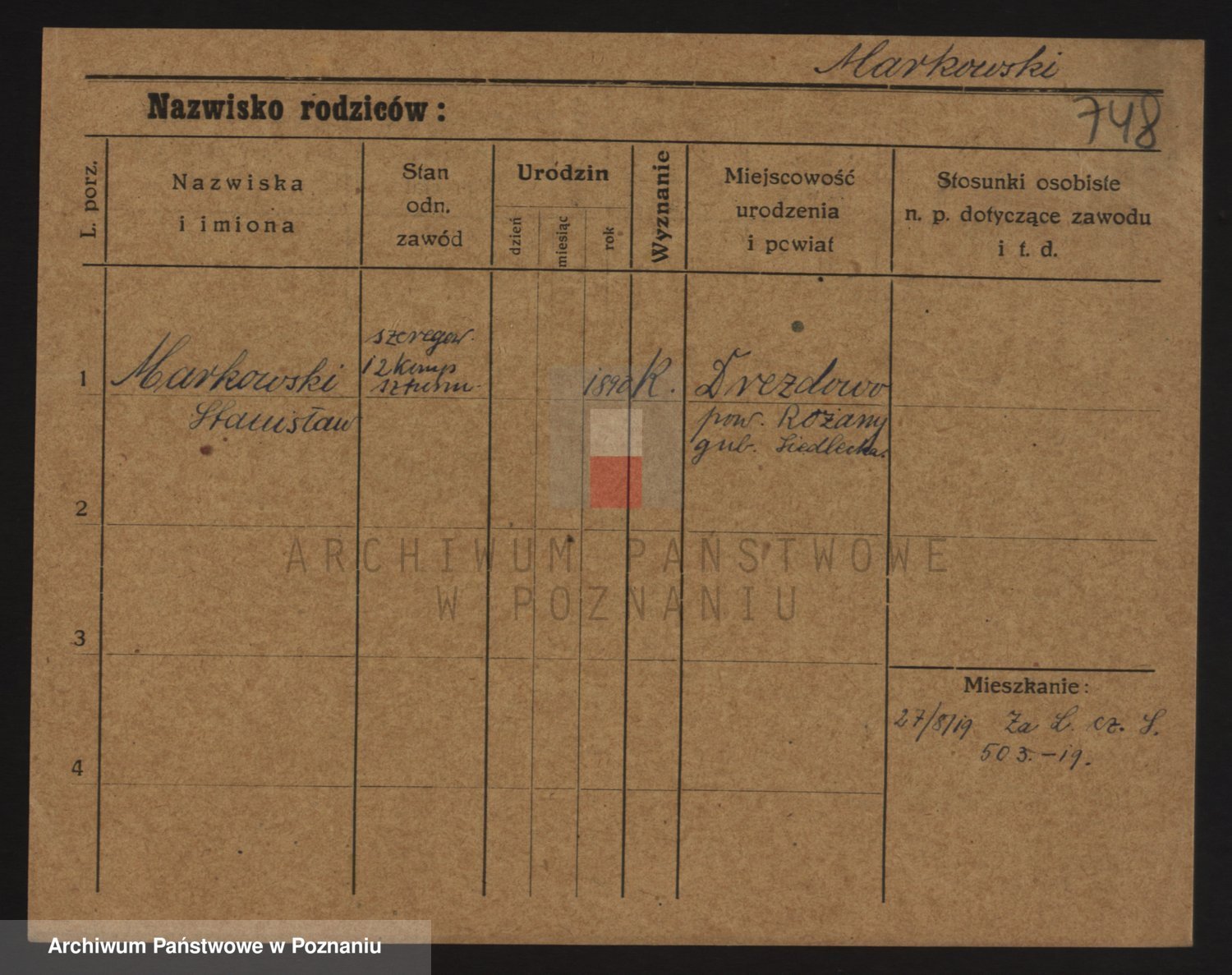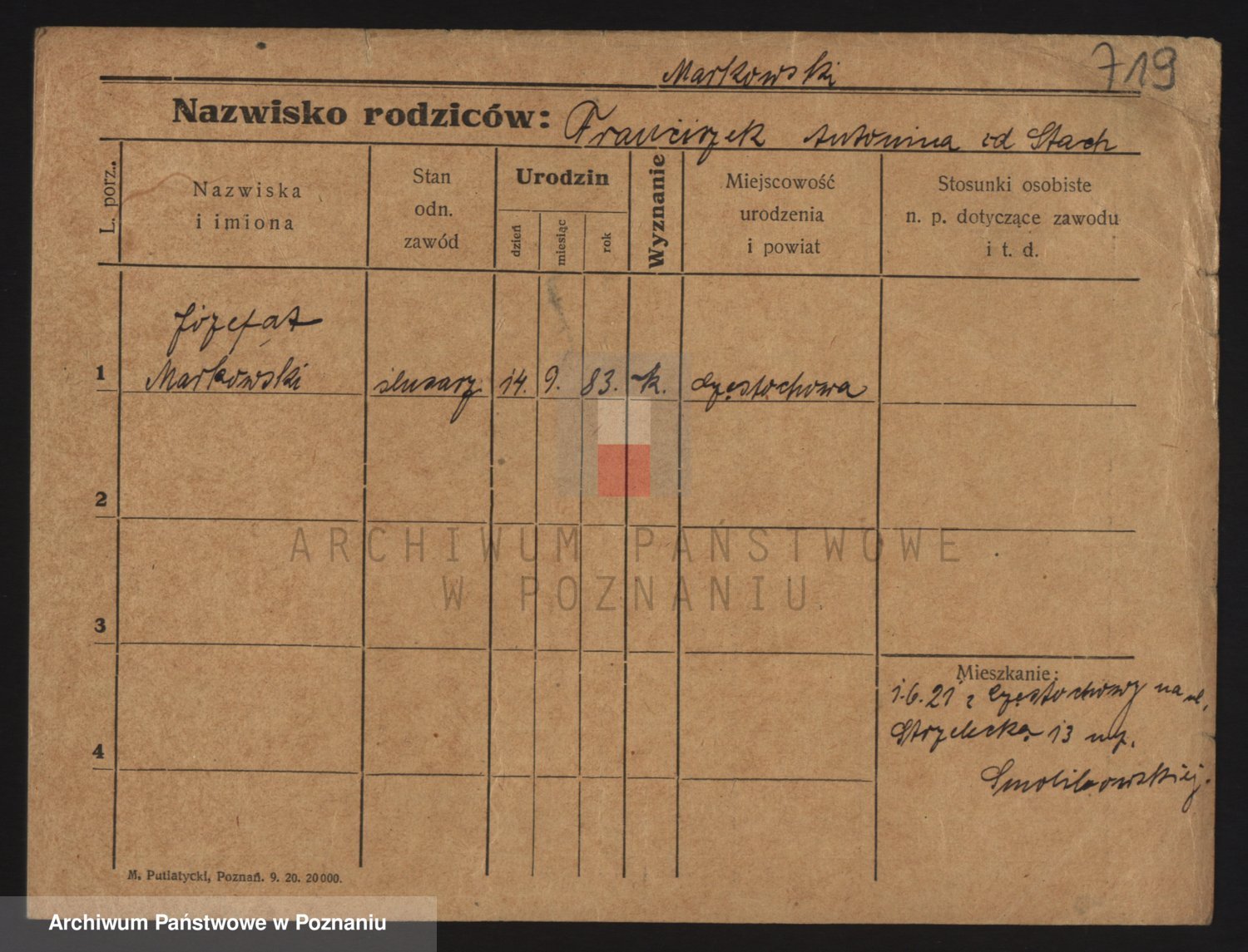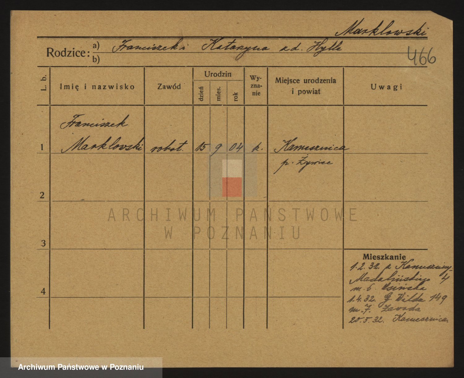 Podgląd karty osobowej dostępny jest po kliknięciu na nazwisko lub ikonkę karty. Można dokonywać powiększenia (ikony na górze) lub przechodzić między kolejnymi skanami (strzałki po bokach).