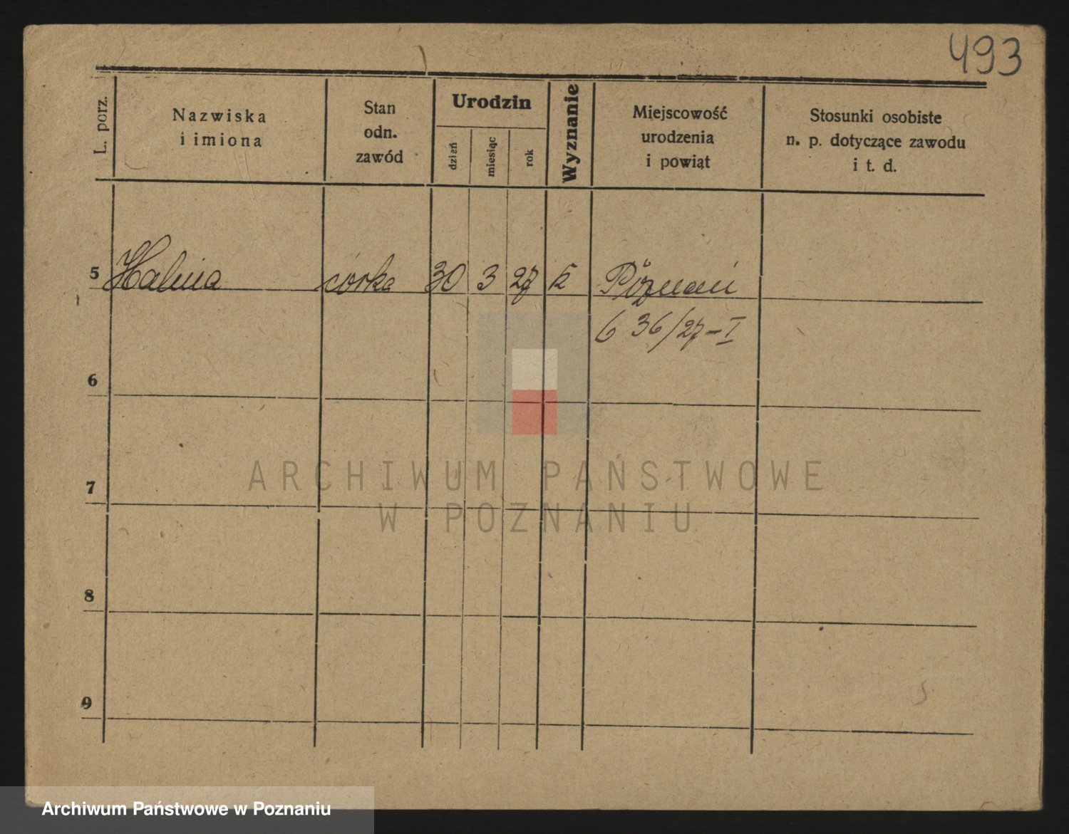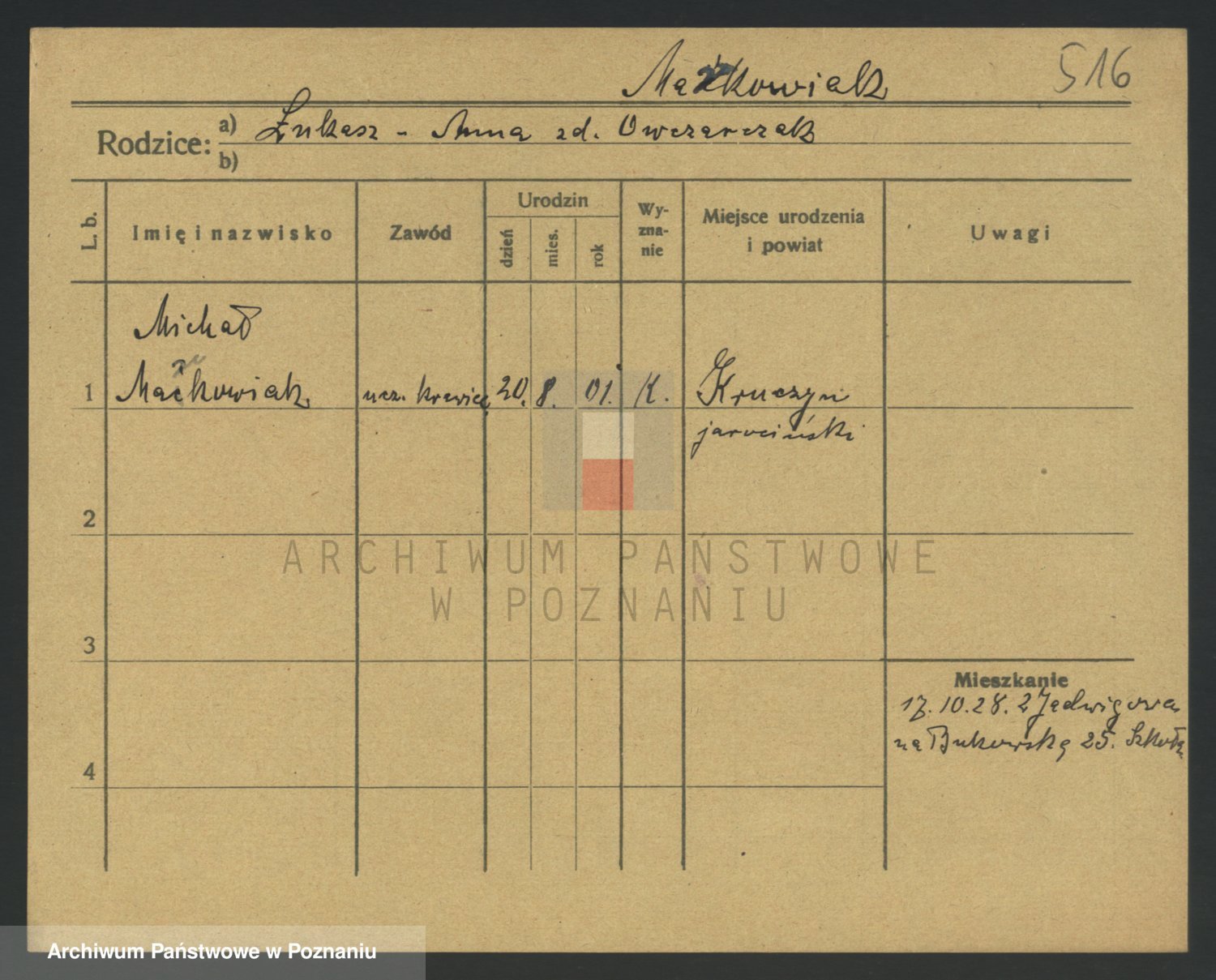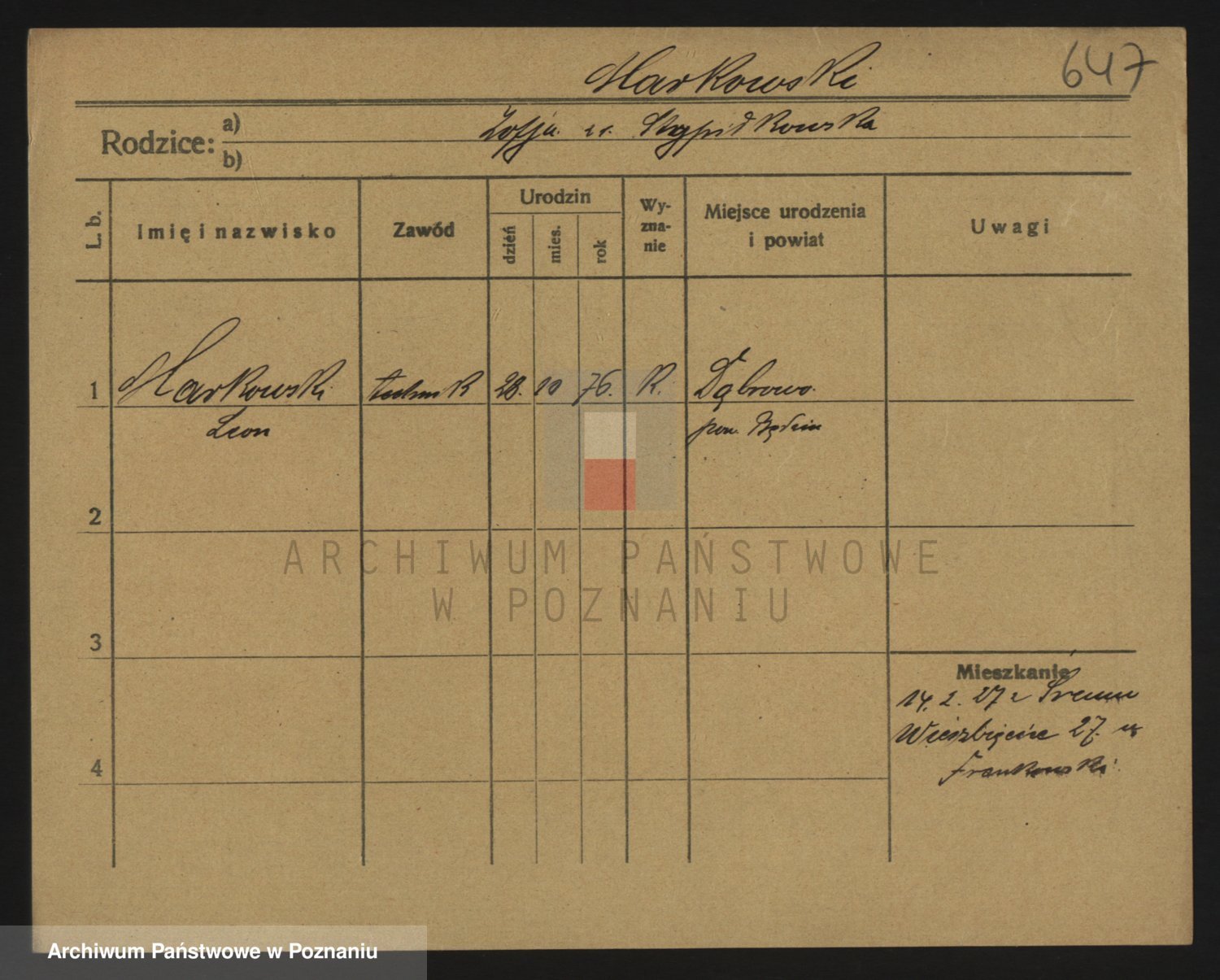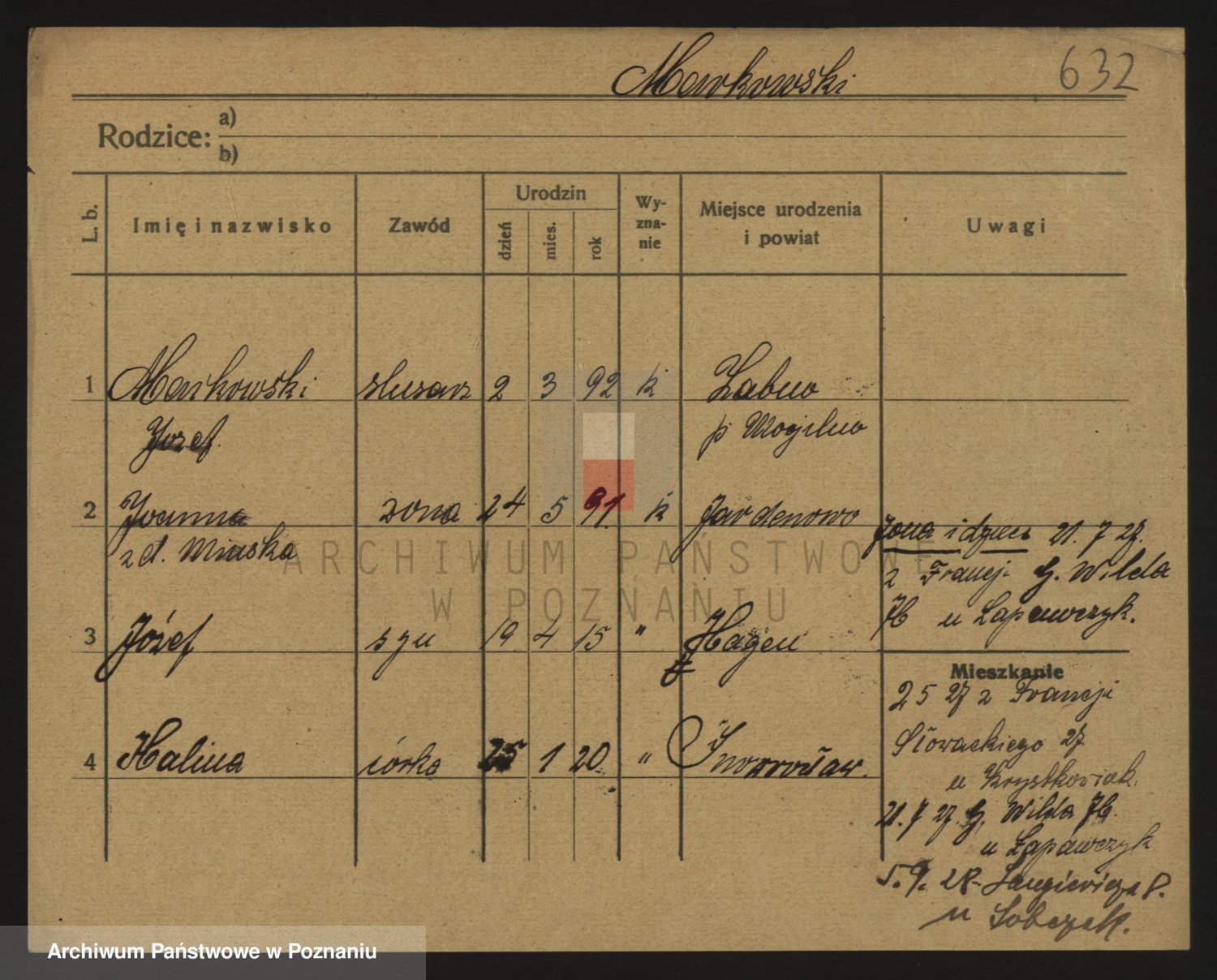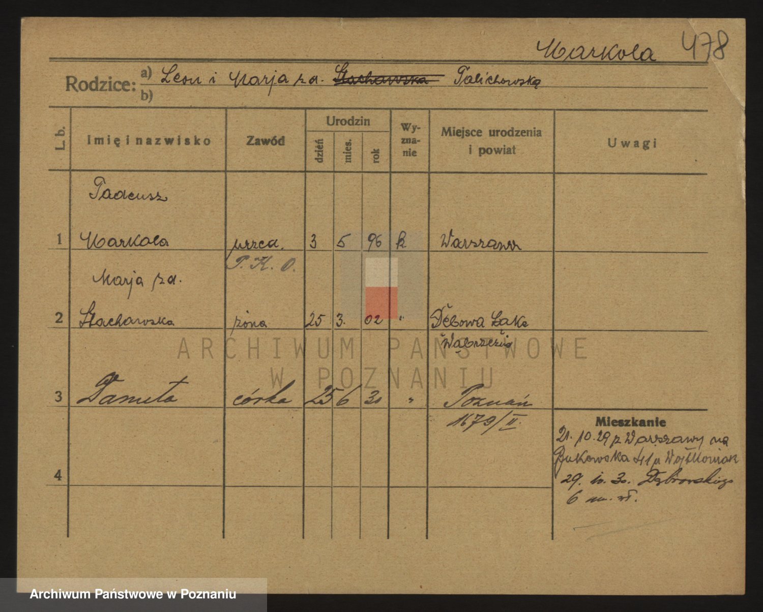 Podgląd karty osobowej dostępny jest po kliknięciu na nazwisko lub ikonkę karty. Można dokonywać powiększenia (ikony na górze) lub przechodzić między kolejnymi skanami (strzałki po bokach).