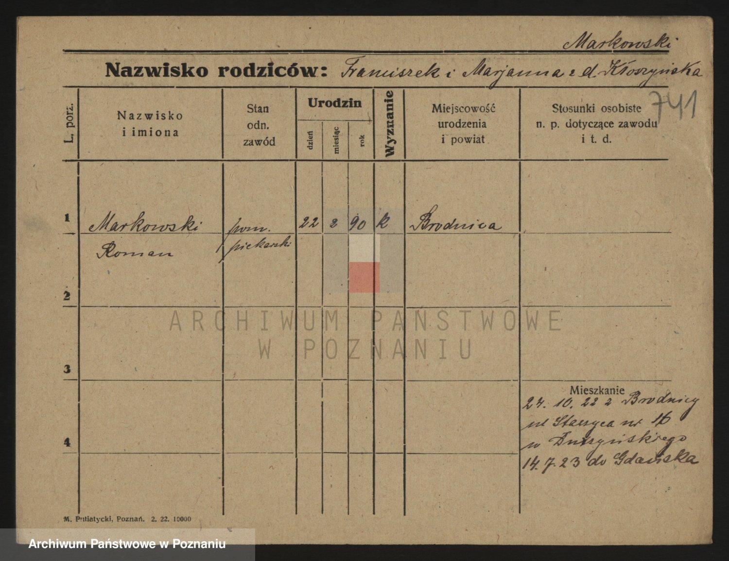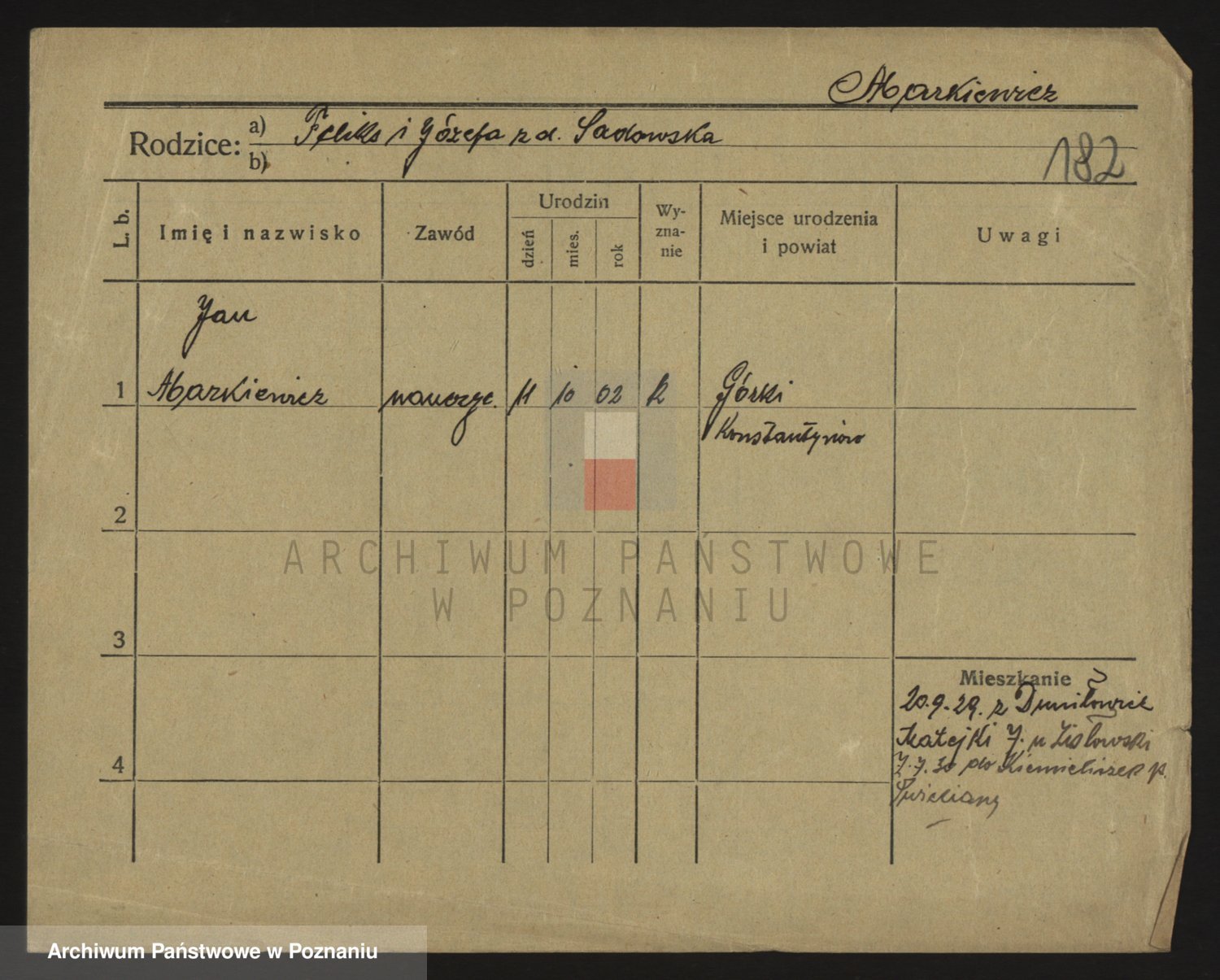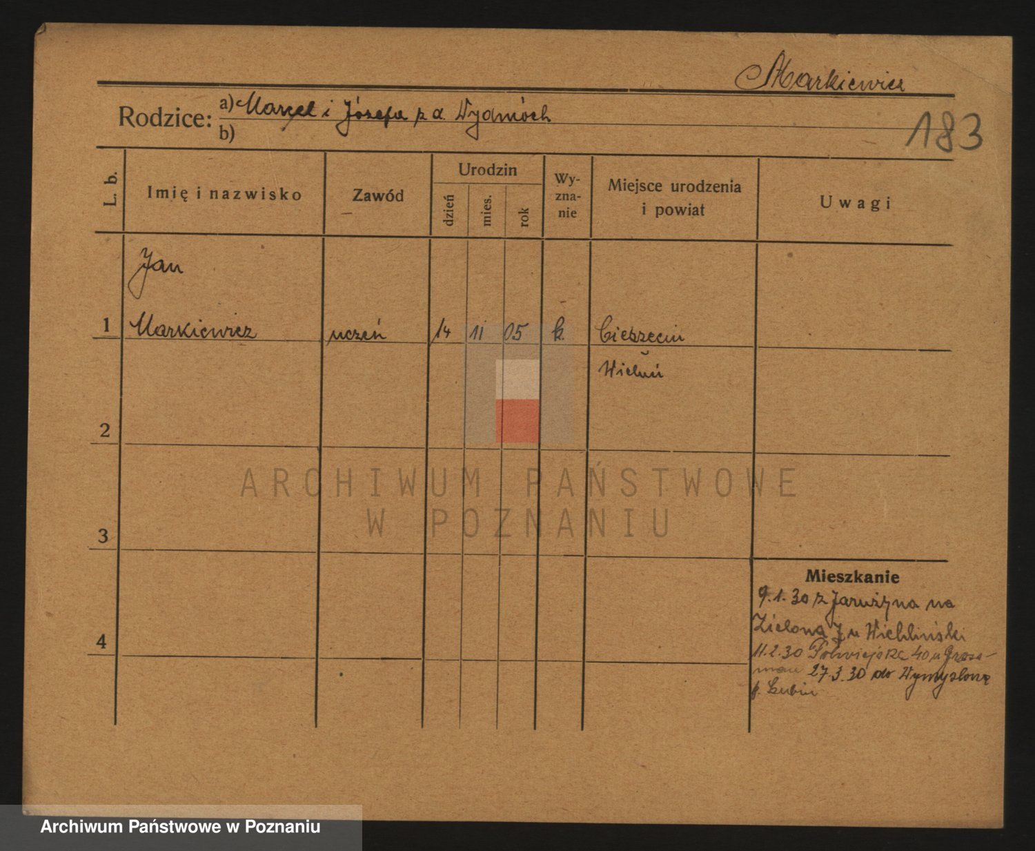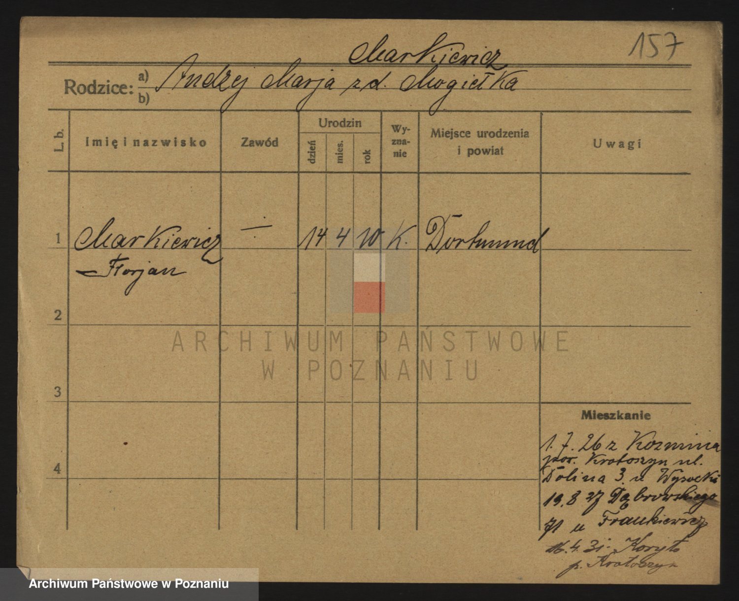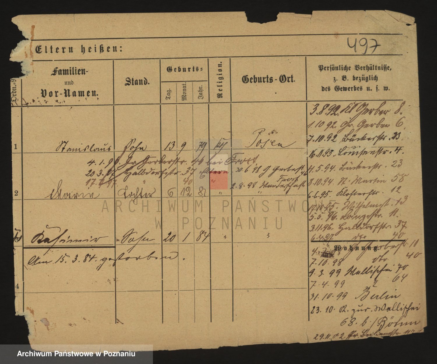 Podgląd karty osobowej dostępny jest po kliknięciu na nazwisko lub ikonkę karty. Można dokonywać powiększenia (ikony na górze) lub przechodzić między kolejnymi skanami (strzałki po bokach).