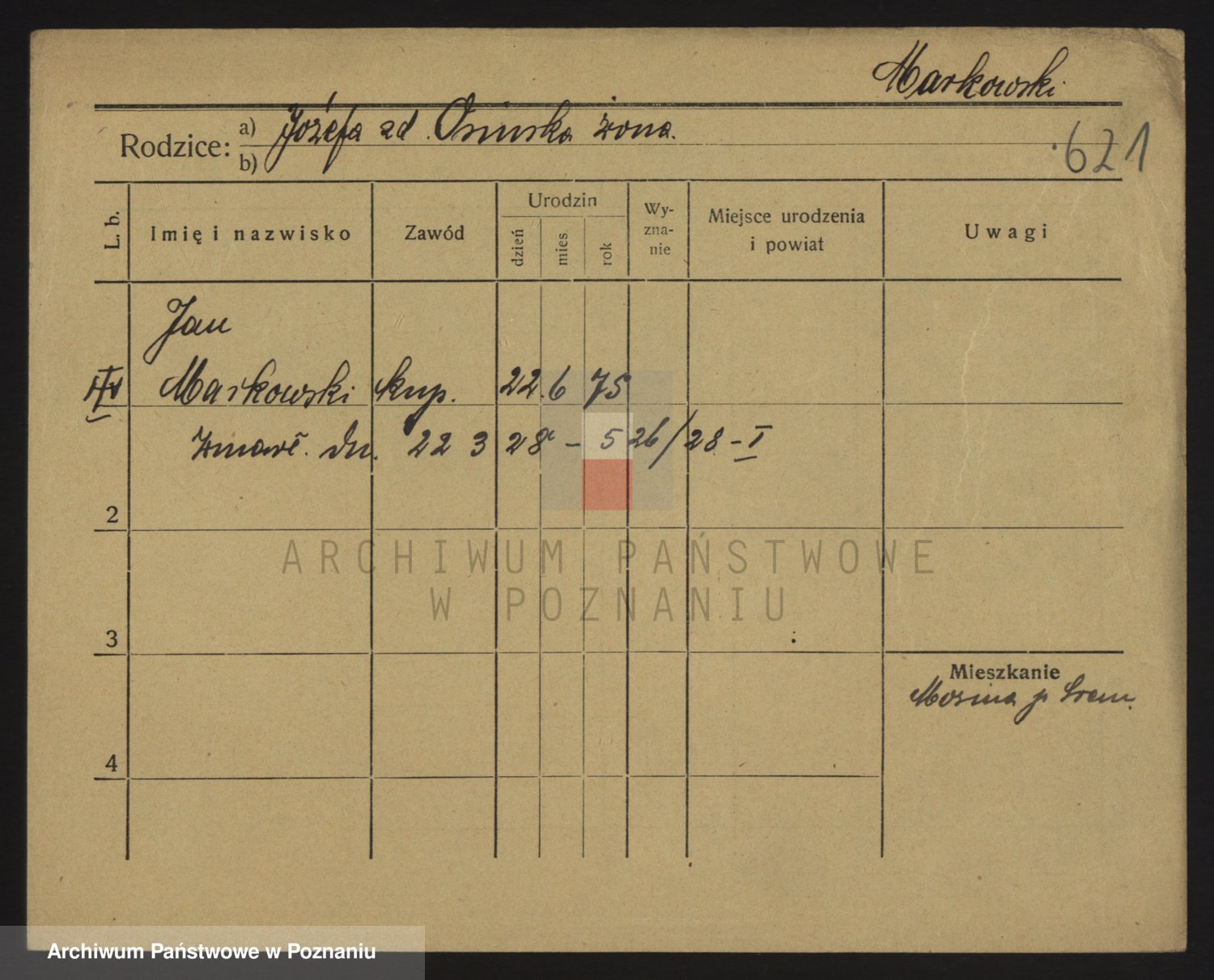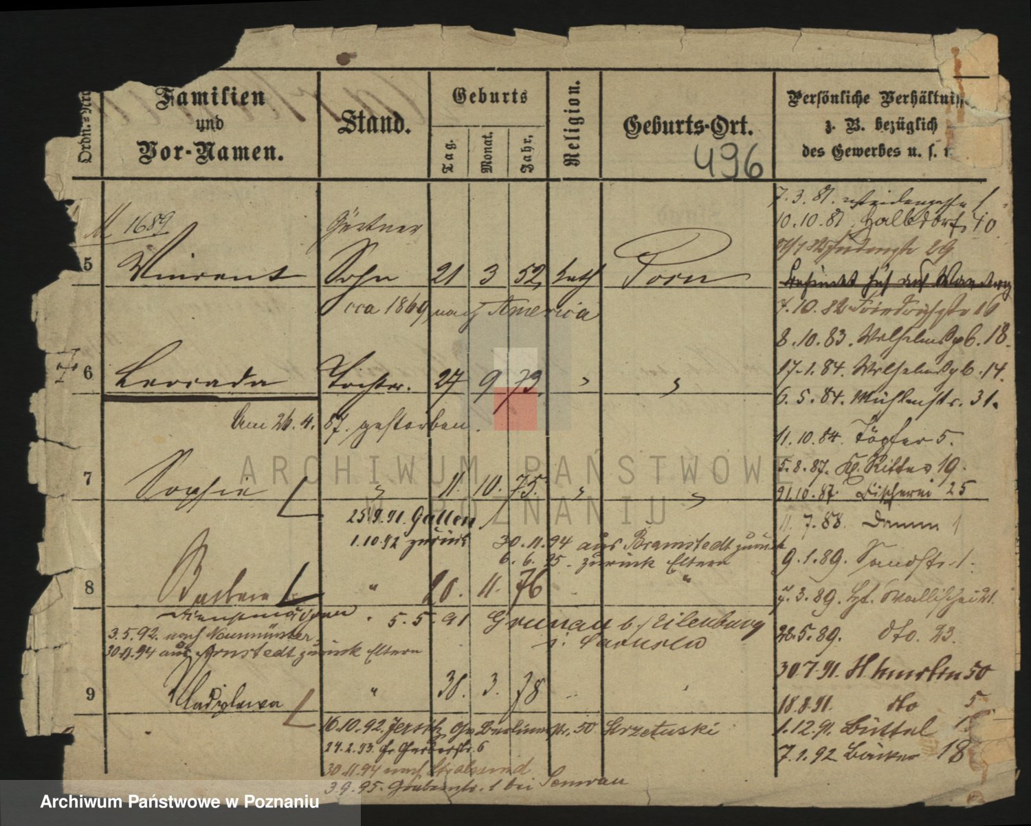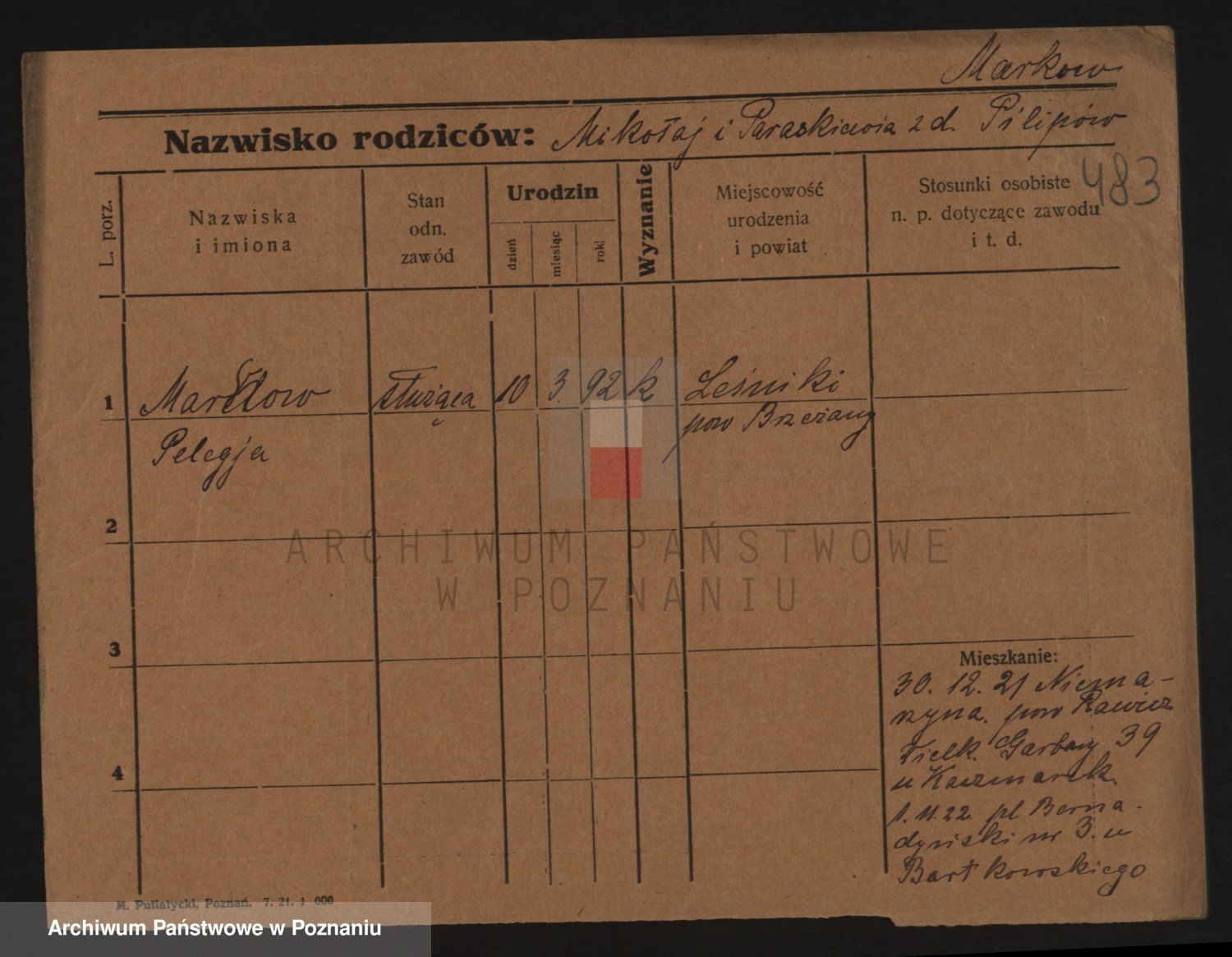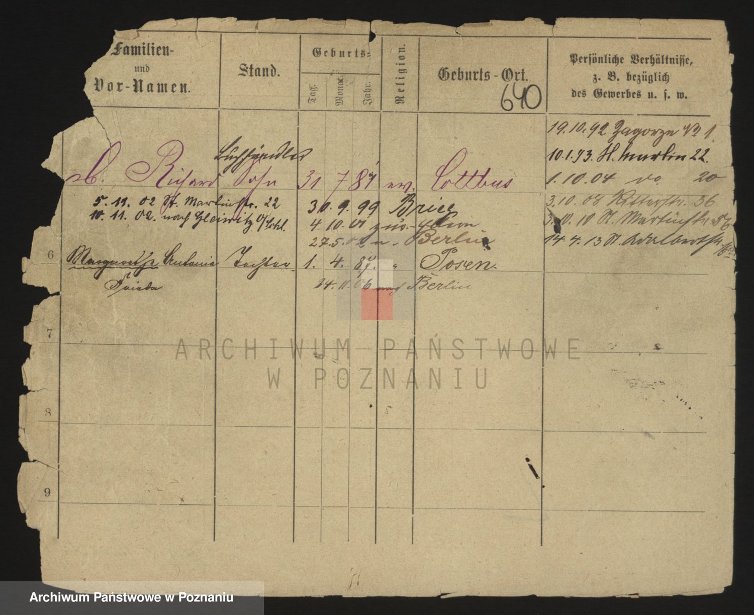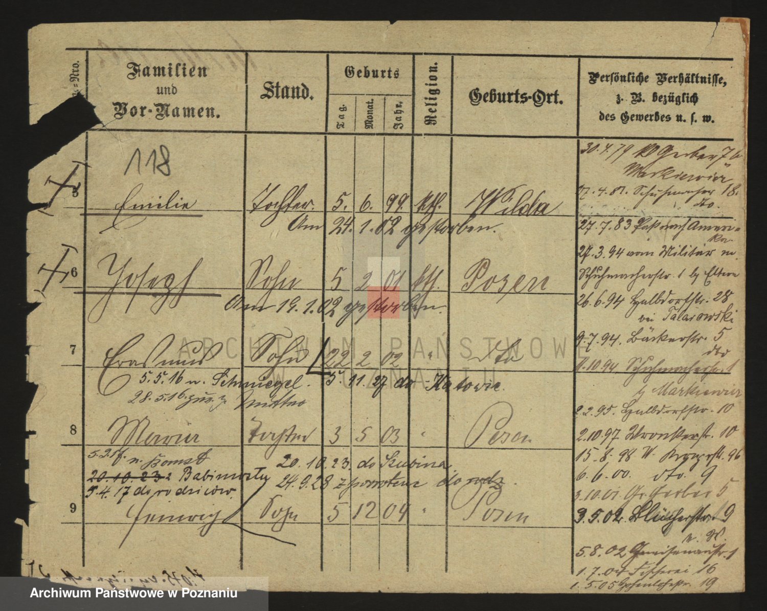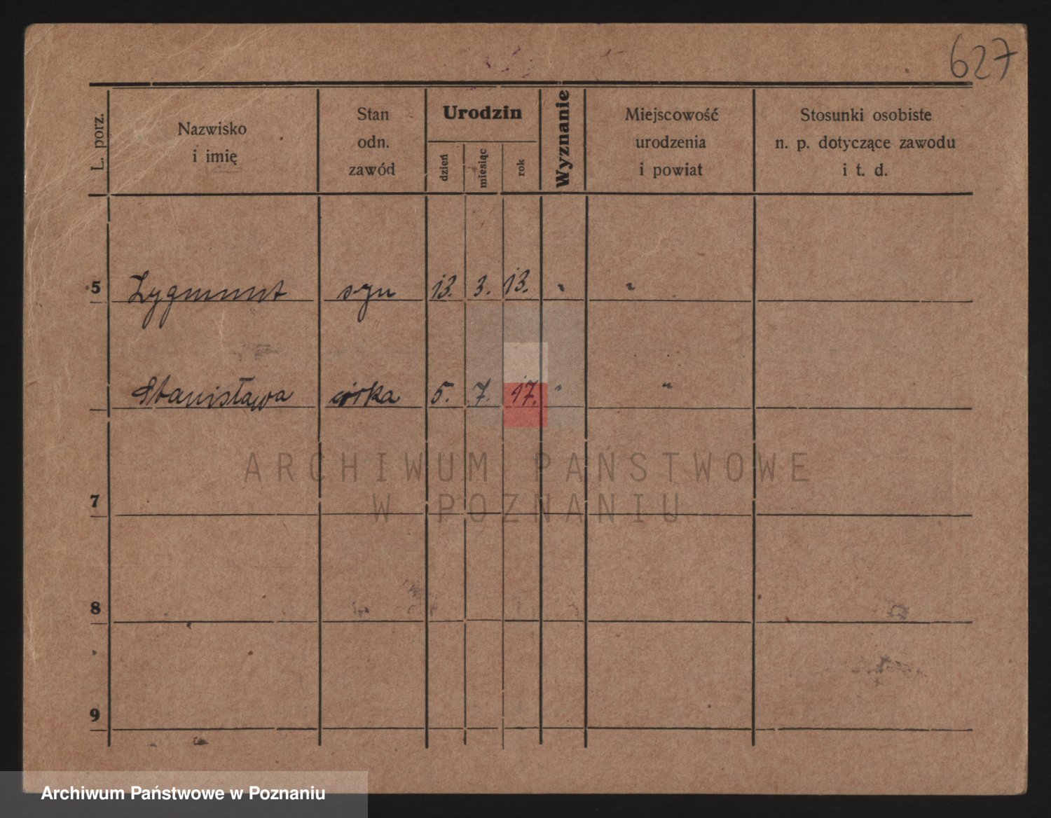 Podgląd karty osobowej dostępny jest po kliknięciu na nazwisko lub ikonkę karty. Można dokonywać powiększenia (ikony na górze) lub przechodzić między kolejnymi skanami (strzałki po bokach).