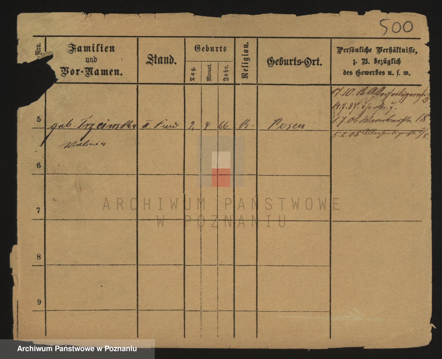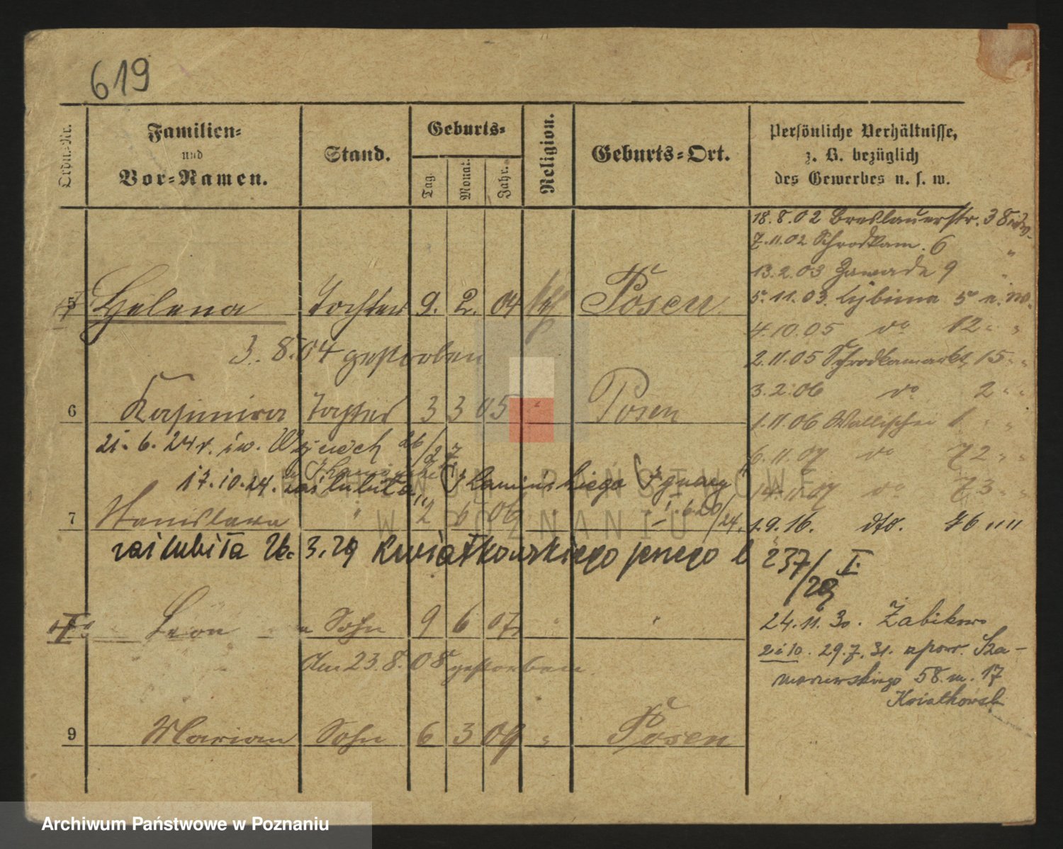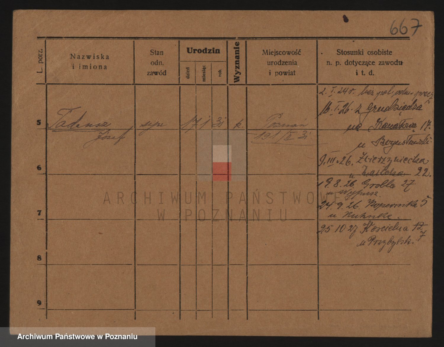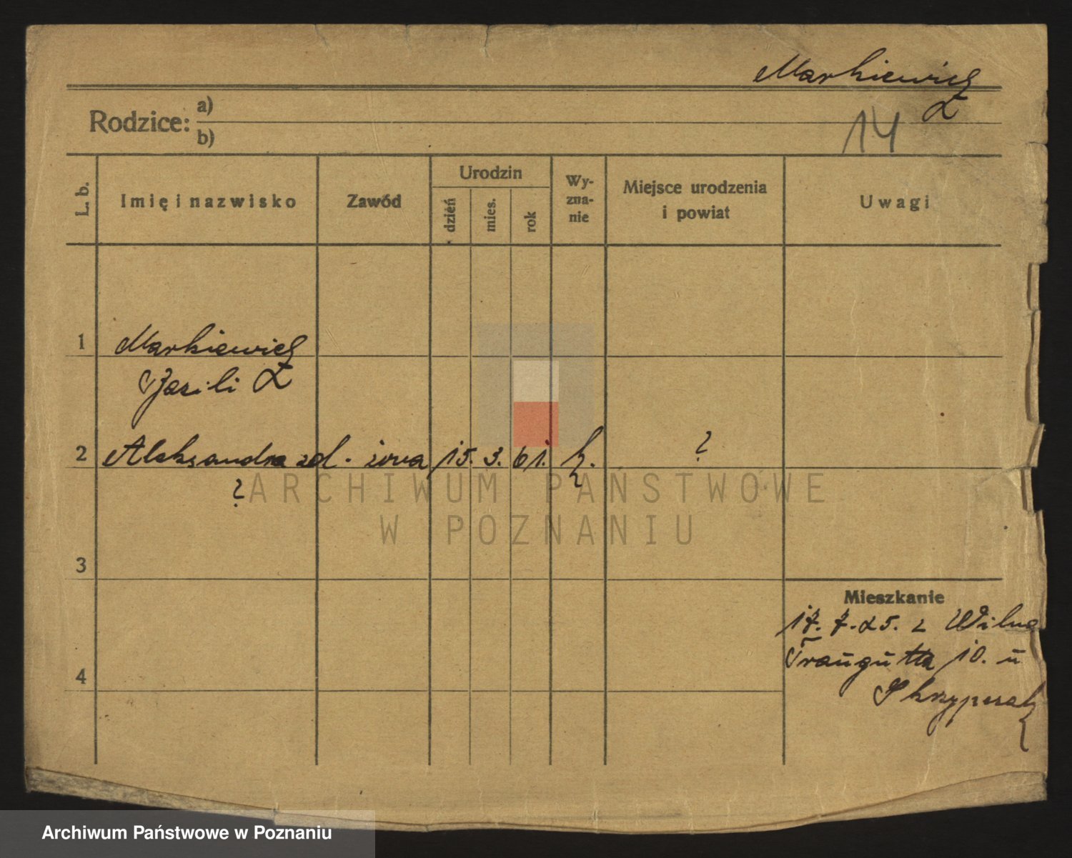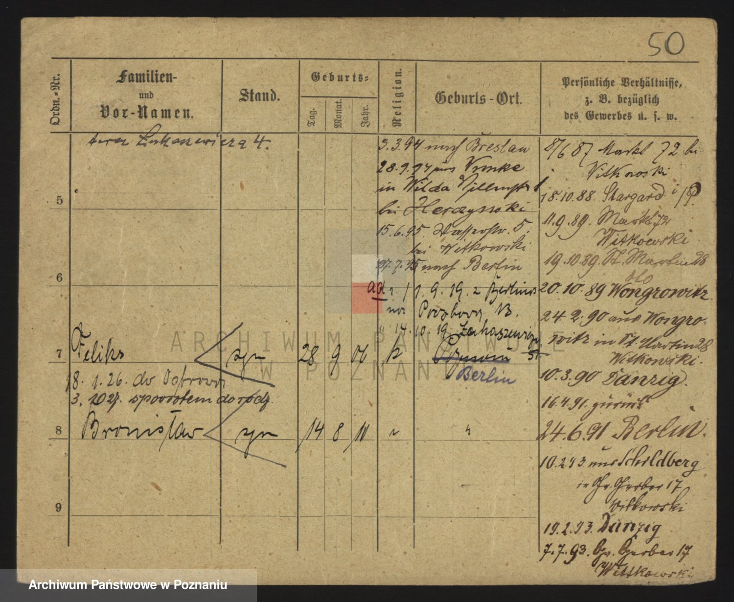 Podgląd karty osobowej dostępny jest po kliknięciu na nazwisko lub ikonkę karty. Można dokonywać powiększenia (ikony na górze) lub przechodzić między kolejnymi skanami (strzałki po bokach).