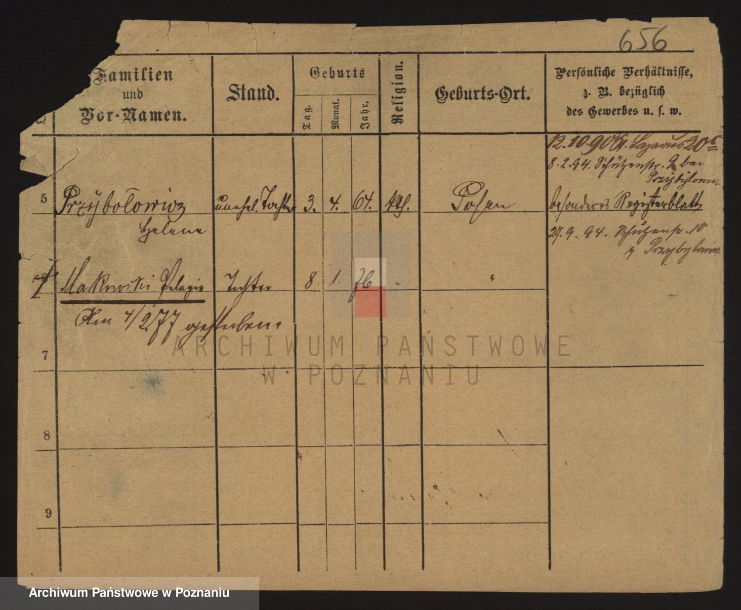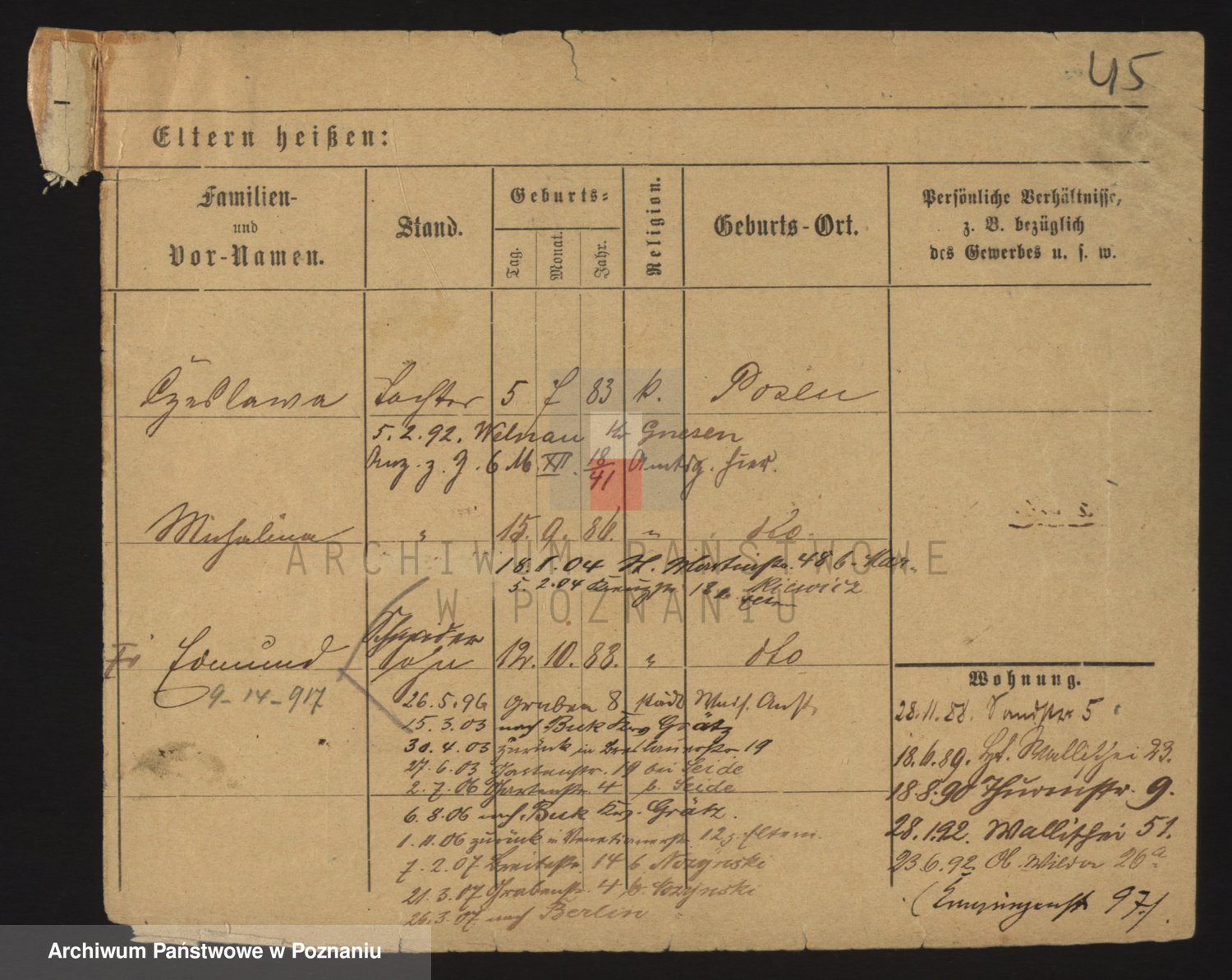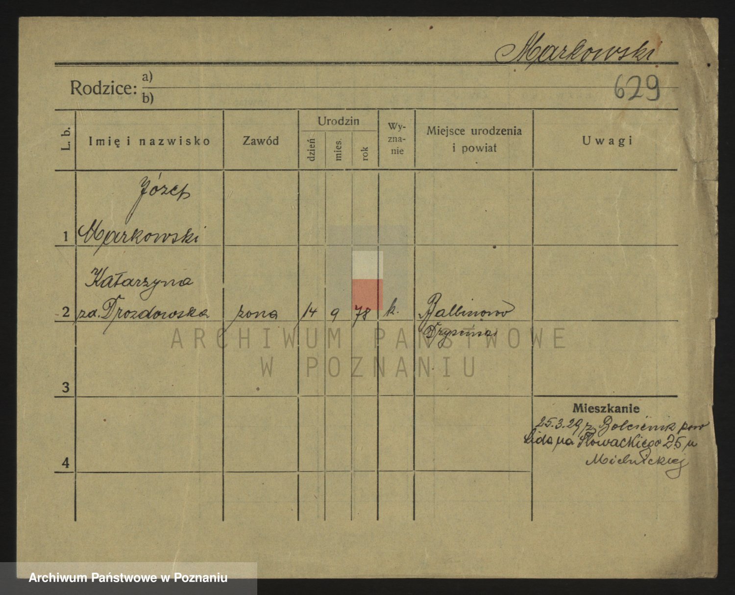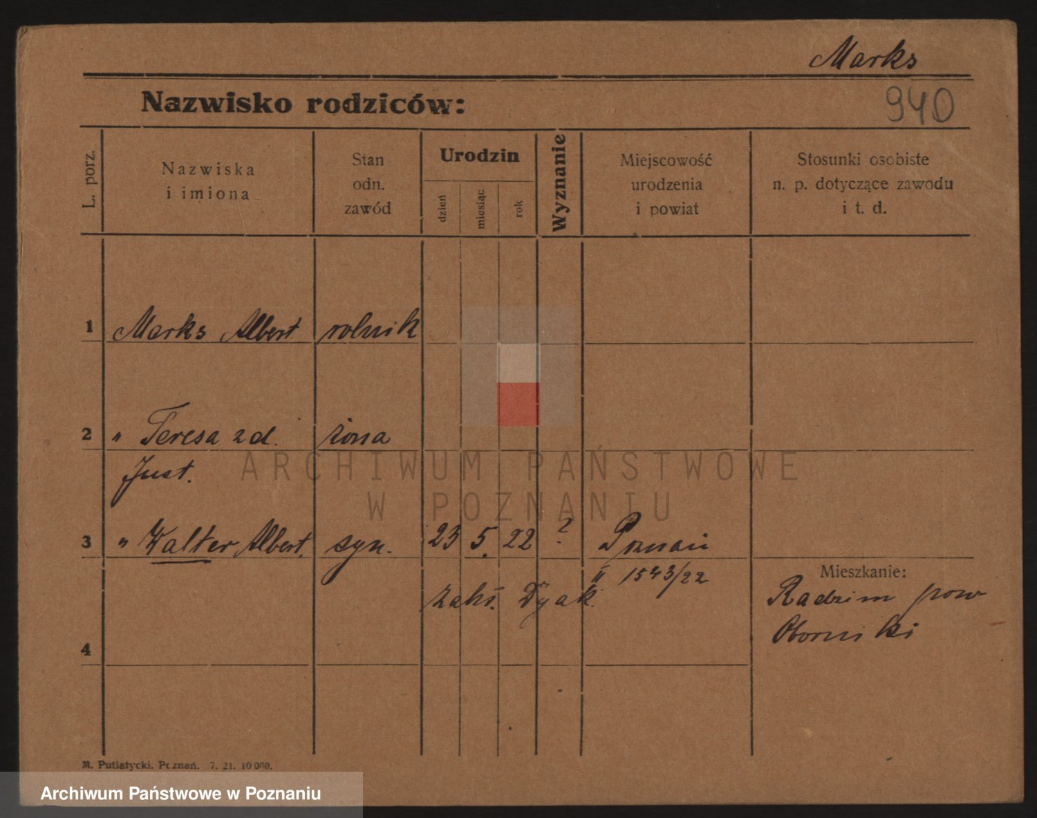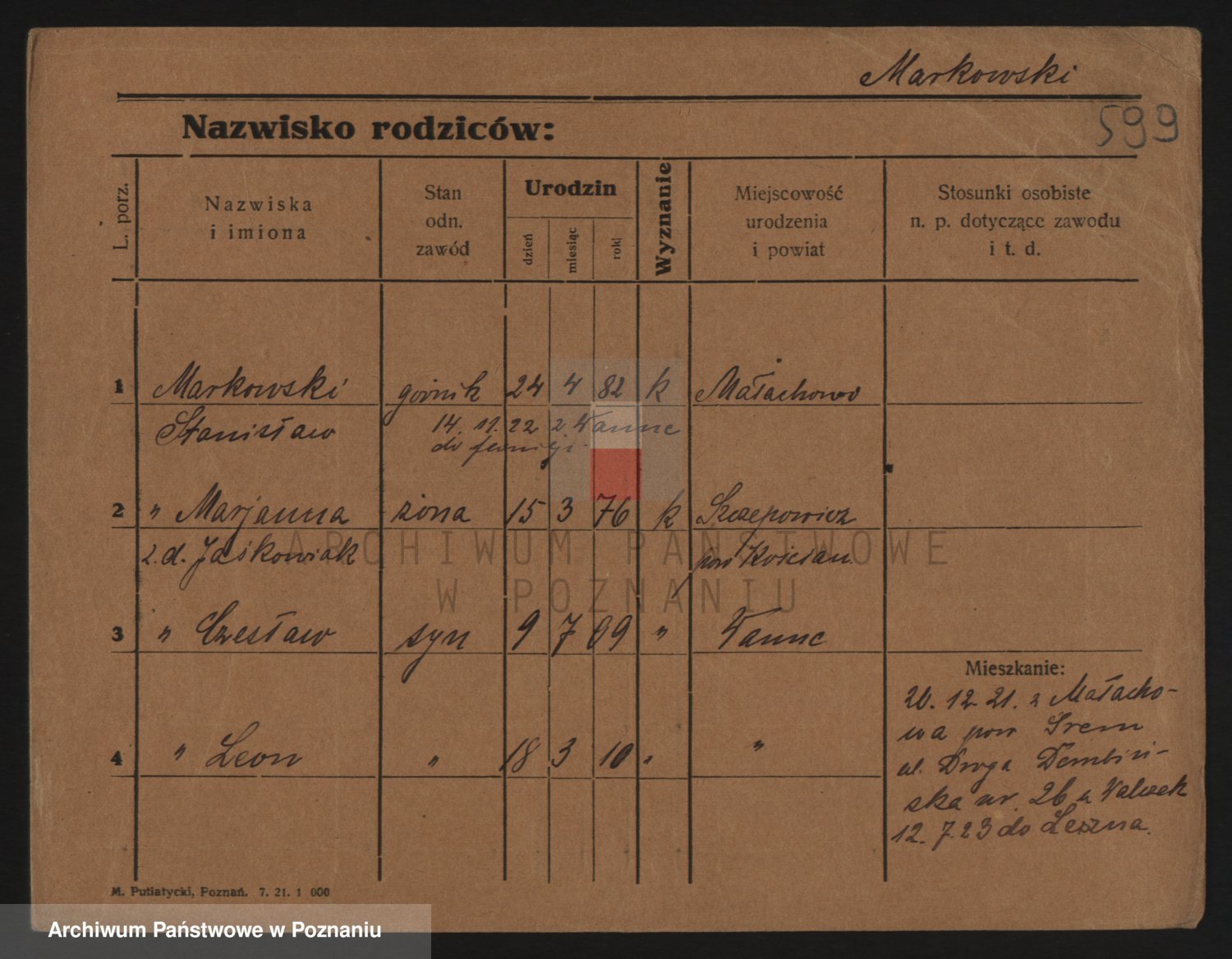 Podgląd karty osobowej dostępny jest po kliknięciu na nazwisko lub ikonkę karty. Można dokonywać powiększenia (ikony na górze) lub przechodzić między kolejnymi skanami (strzałki po bokach).