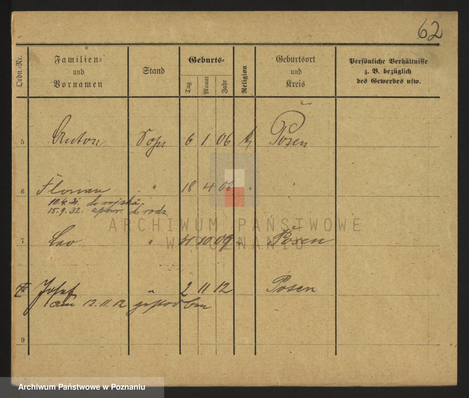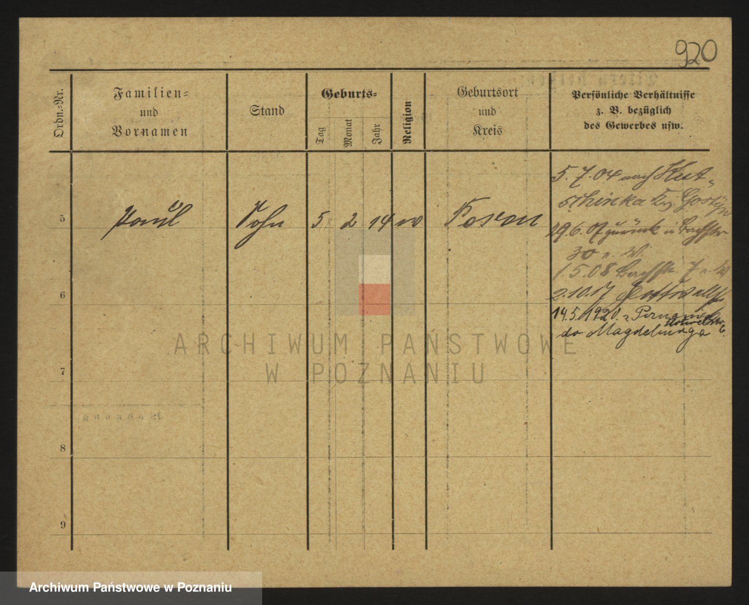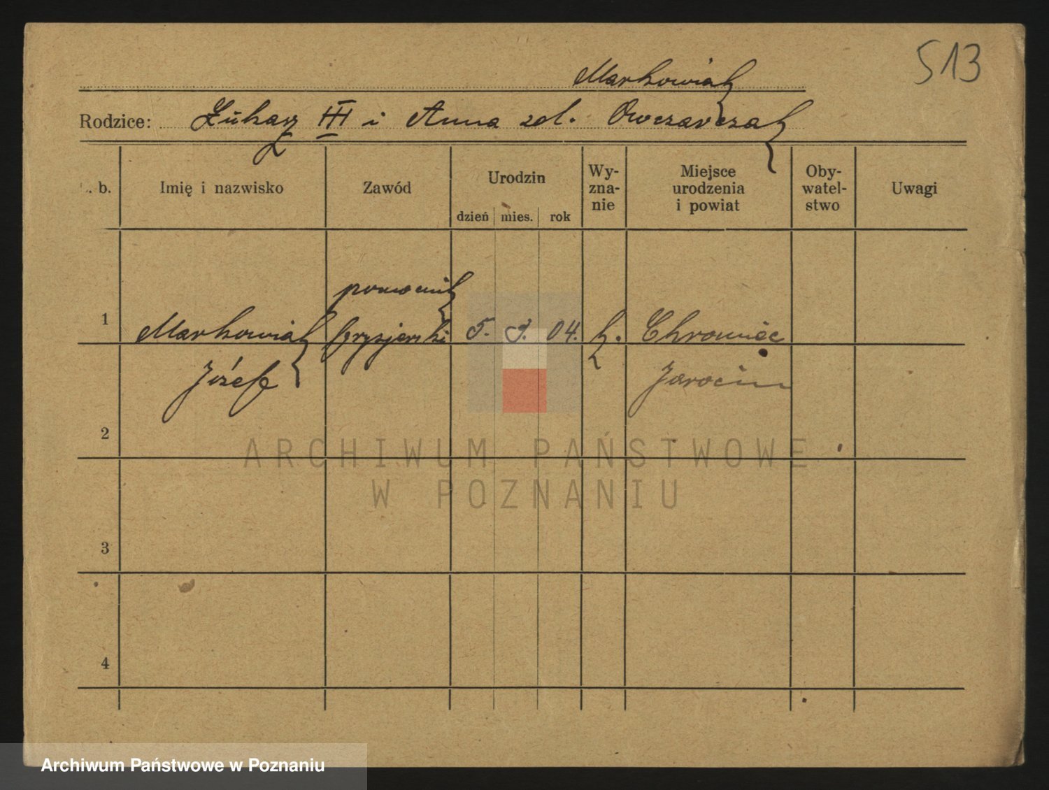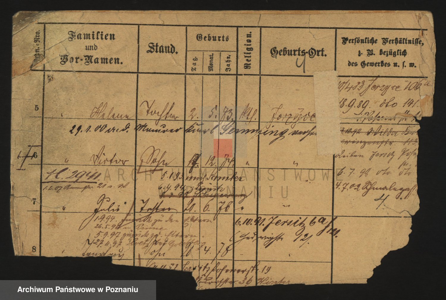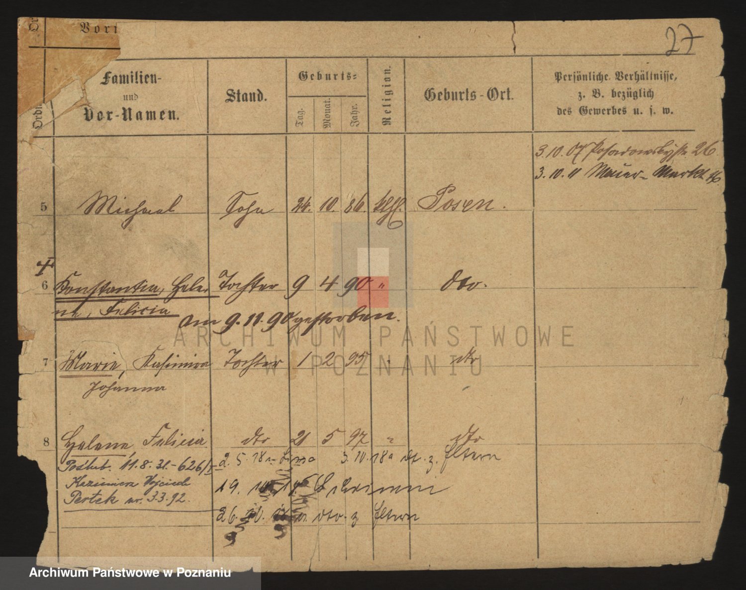 Podgląd karty osobowej dostępny jest po kliknięciu na nazwisko lub ikonkę karty. Można dokonywać powiększenia (ikony na górze) lub przechodzić między kolejnymi skanami (strzałki po bokach).