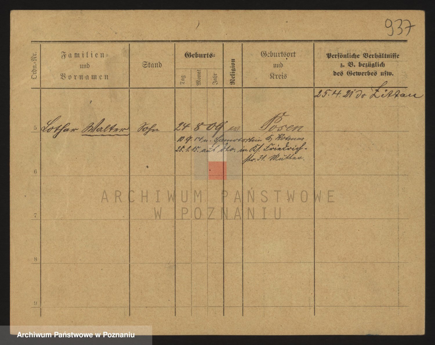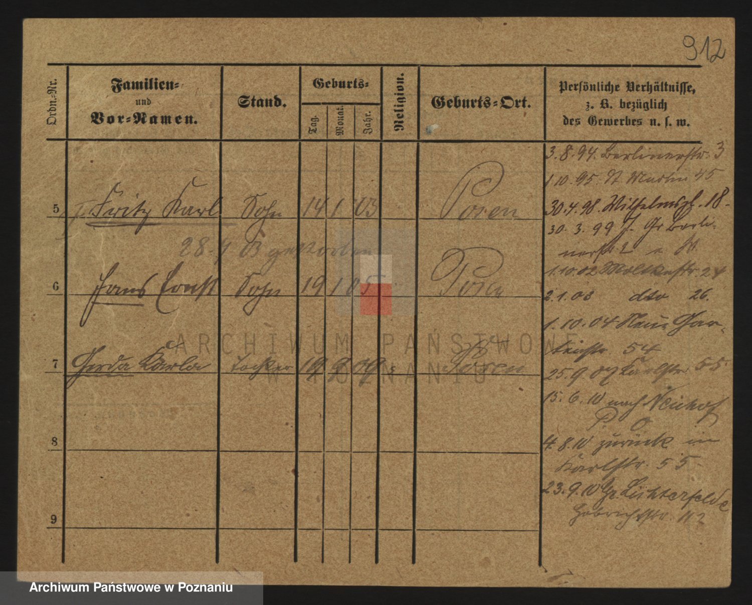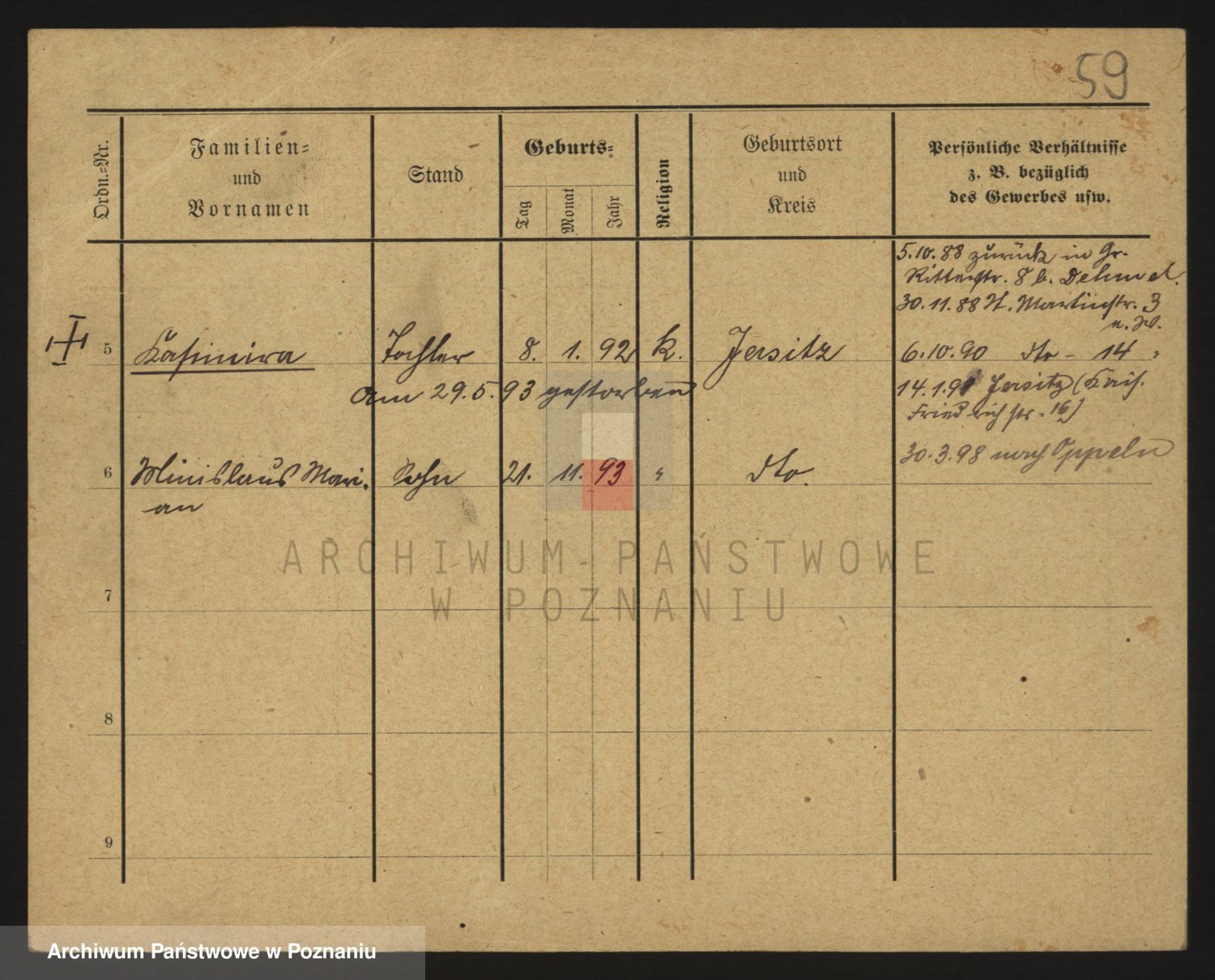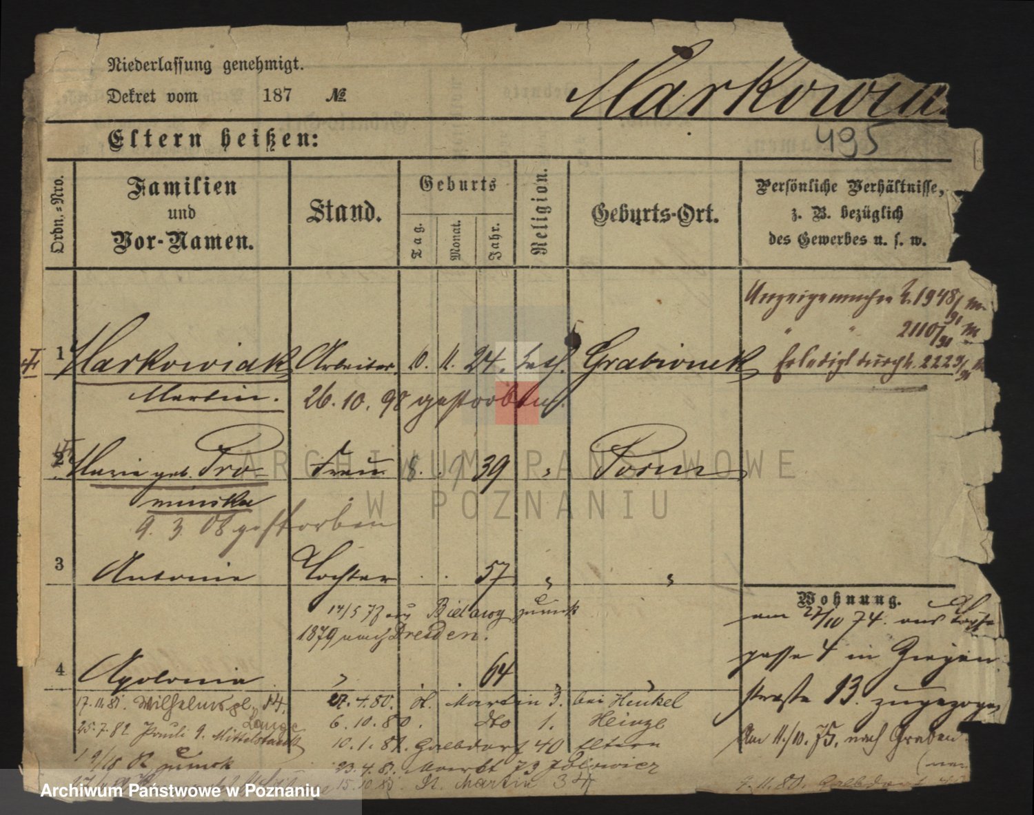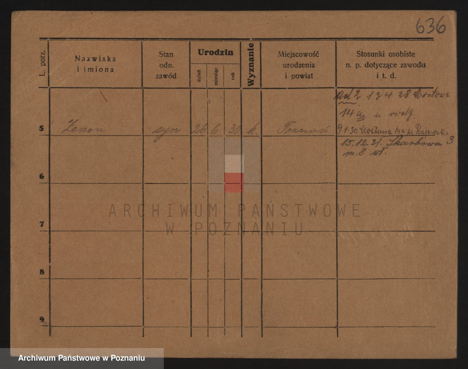 Podgląd karty osobowej dostępny jest po kliknięciu na nazwisko lub ikonkę karty. Można dokonywać powiększenia (ikony na górze) lub przechodzić między kolejnymi skanami (strzałki po bokach).