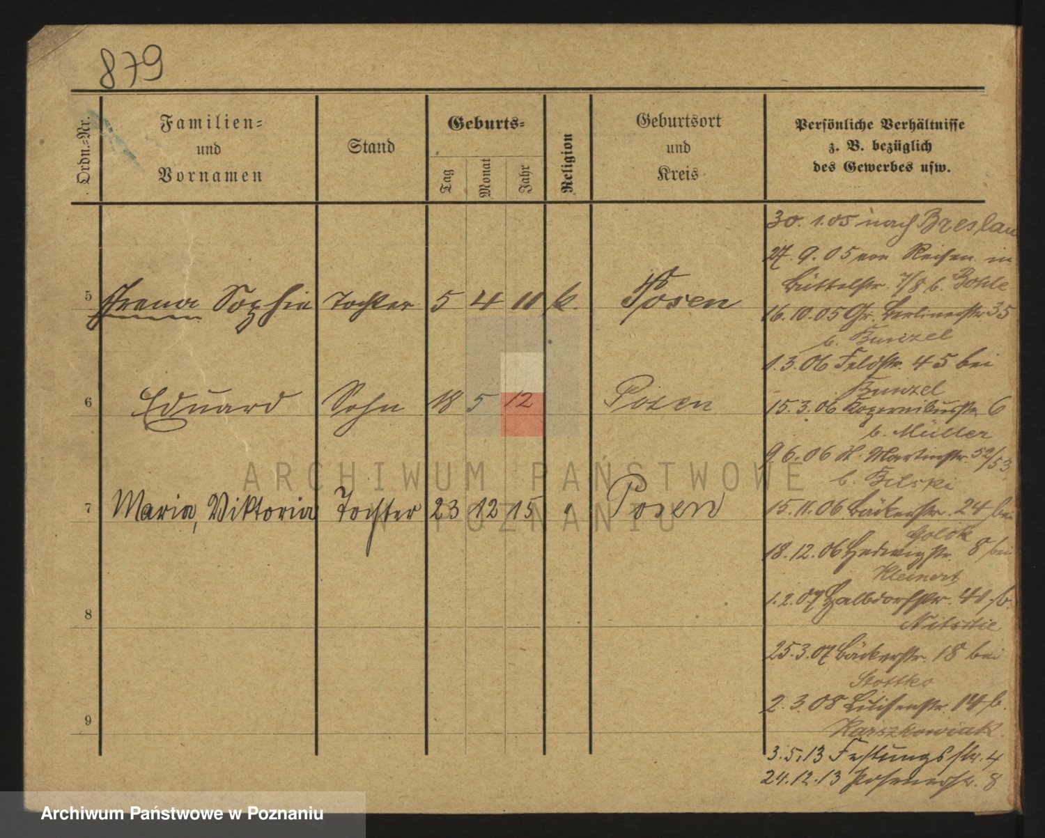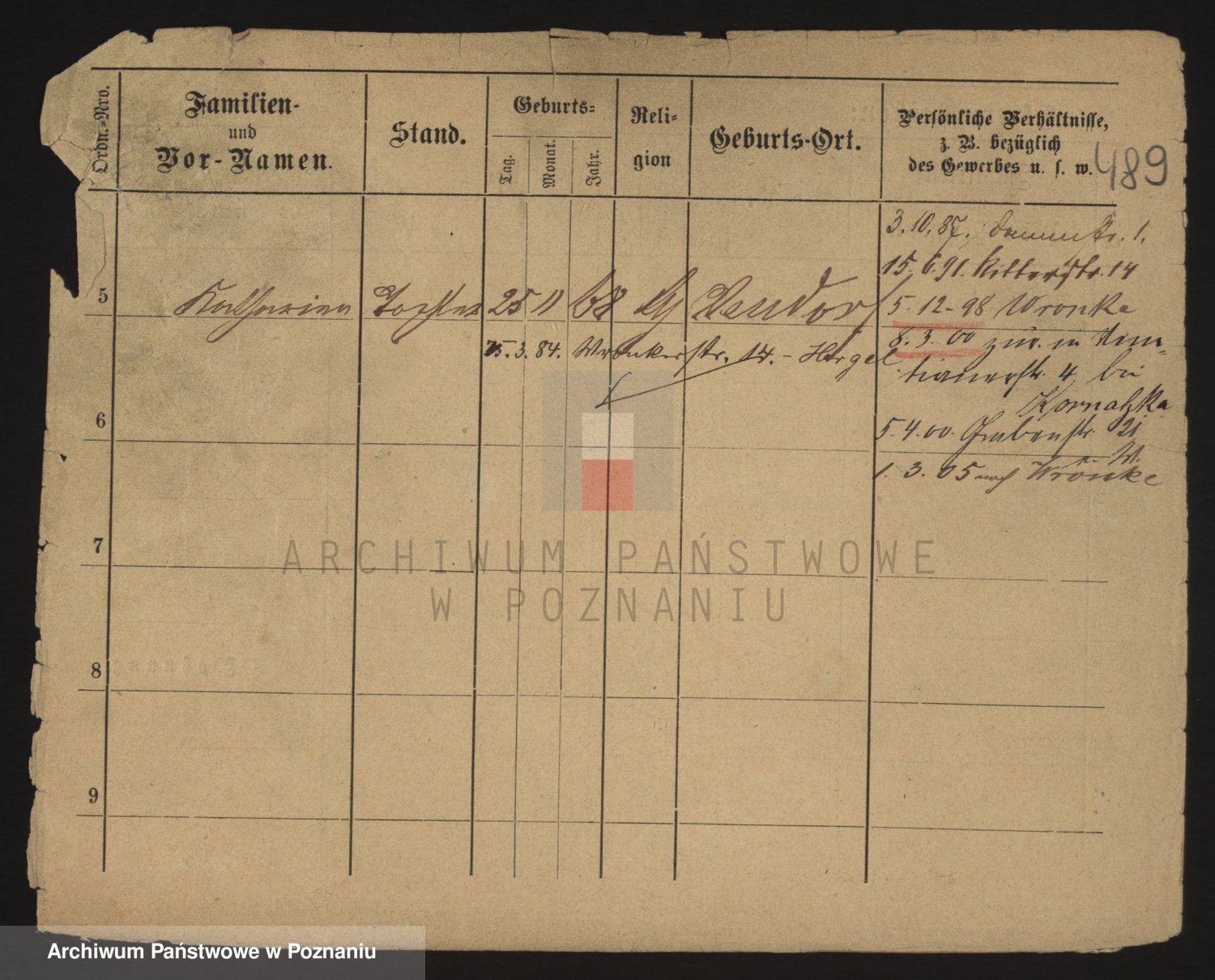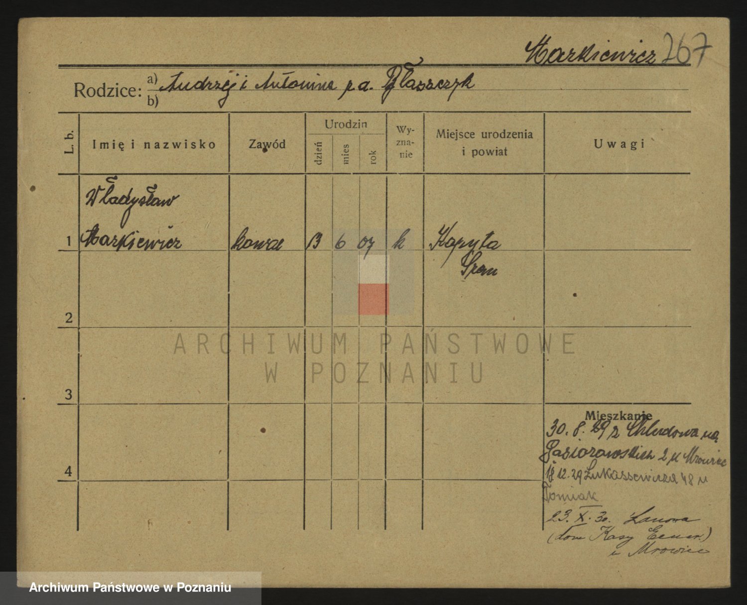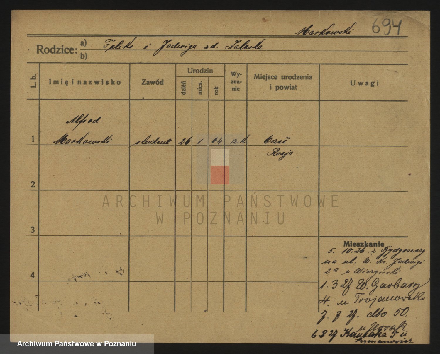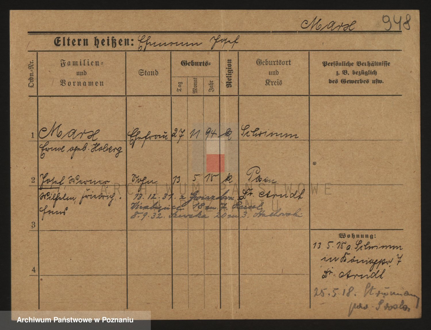 Podgląd karty osobowej dostępny jest po kliknięciu na nazwisko lub ikonkę karty. Można dokonywać powiększenia (ikony na górze) lub przechodzić między kolejnymi skanami (strzałki po bokach).