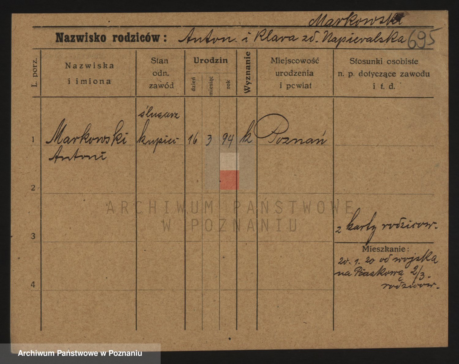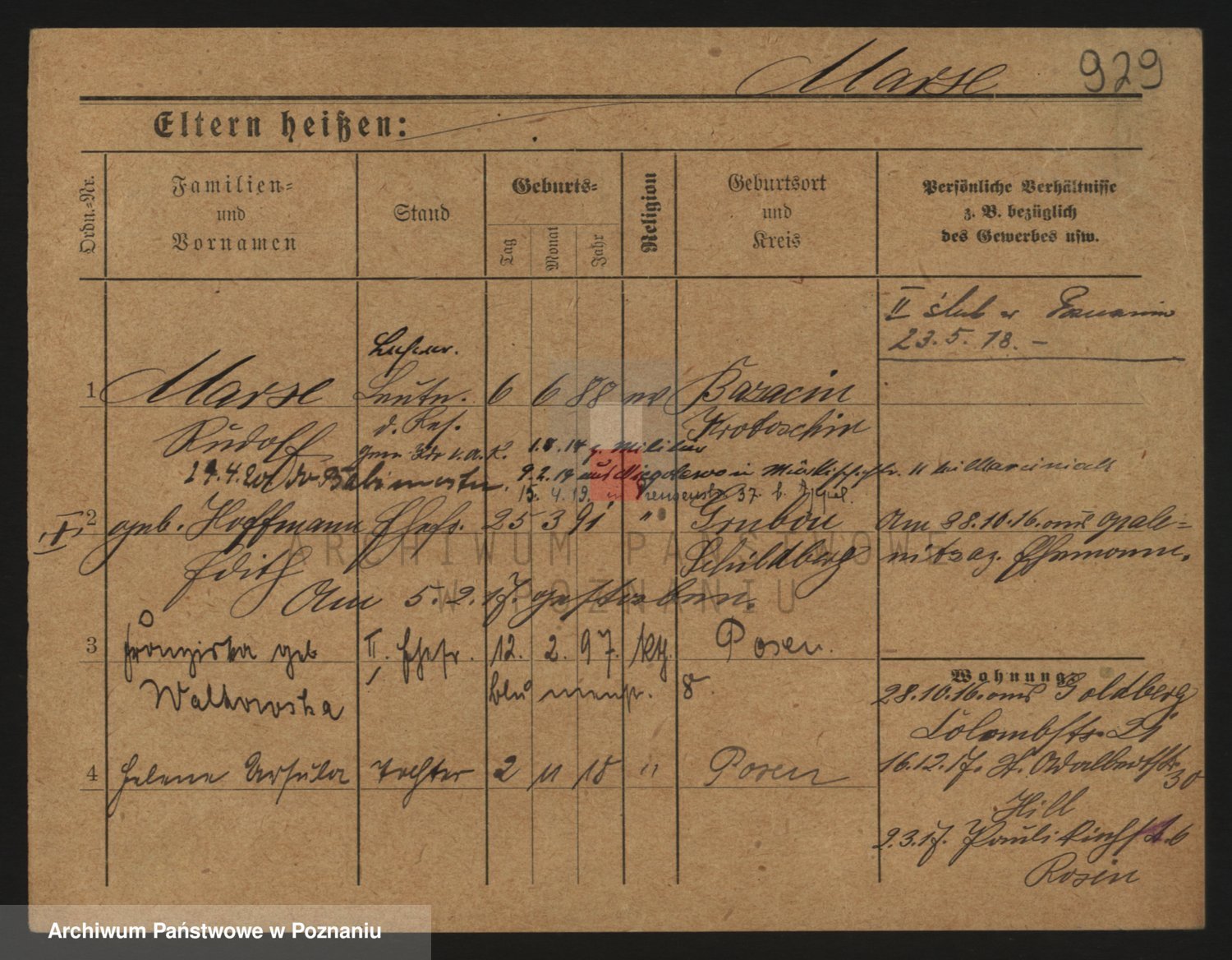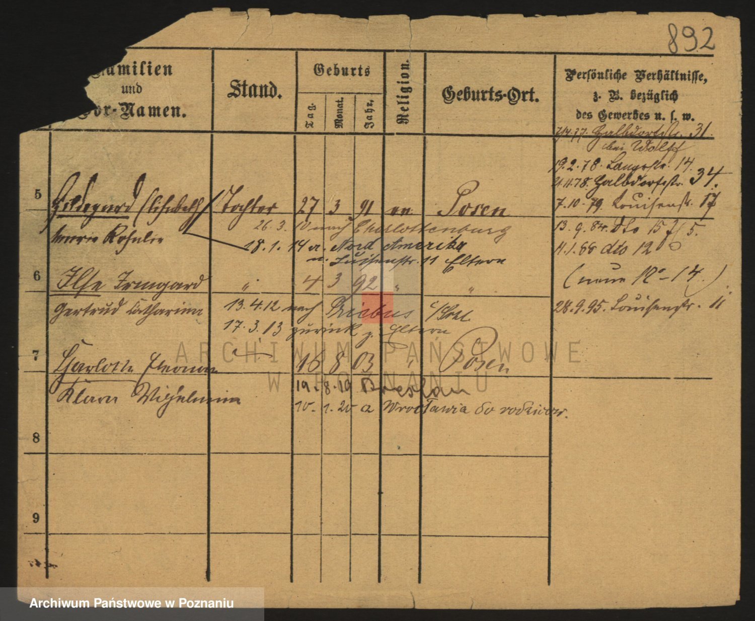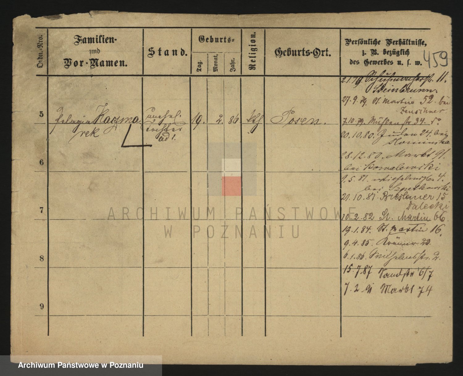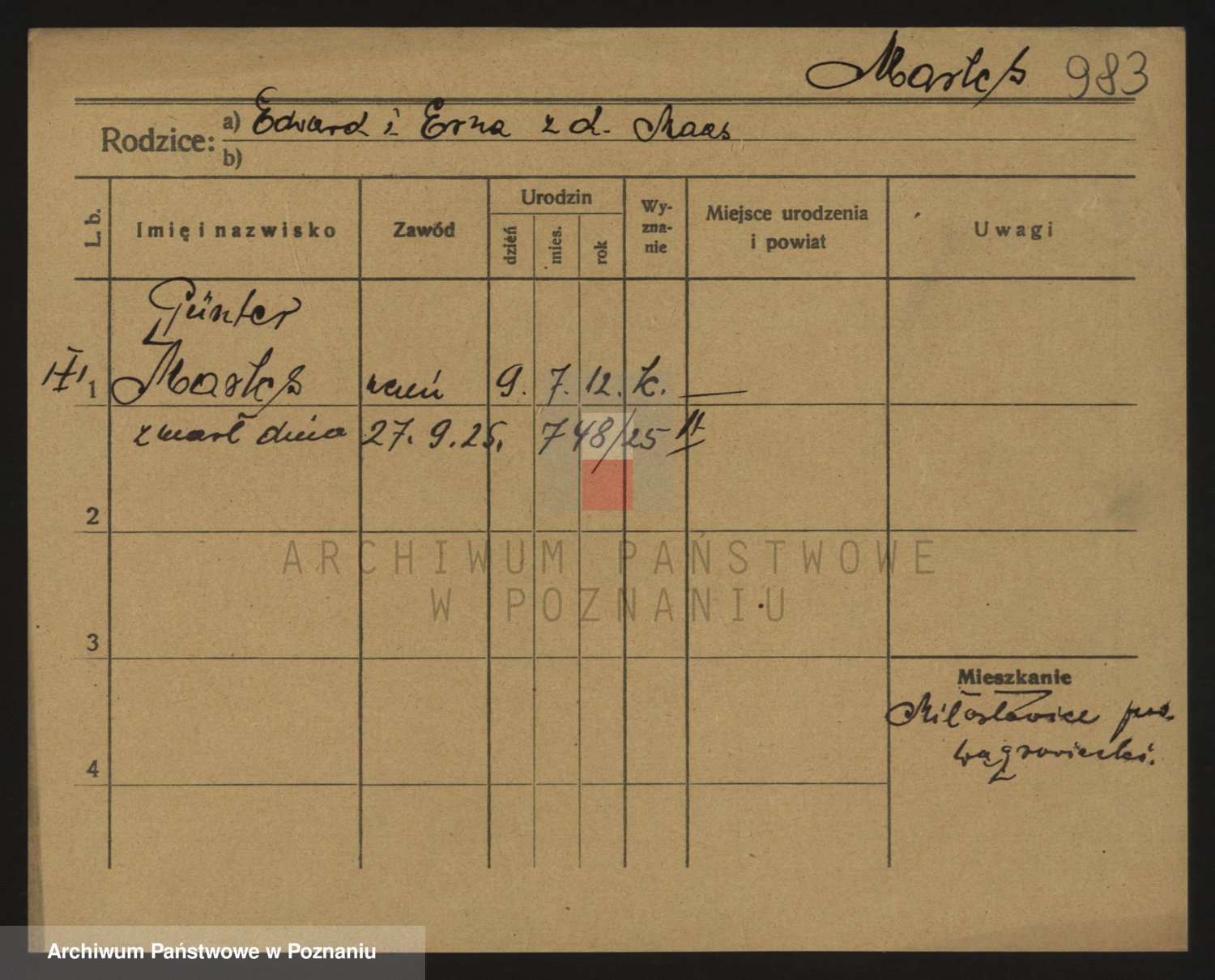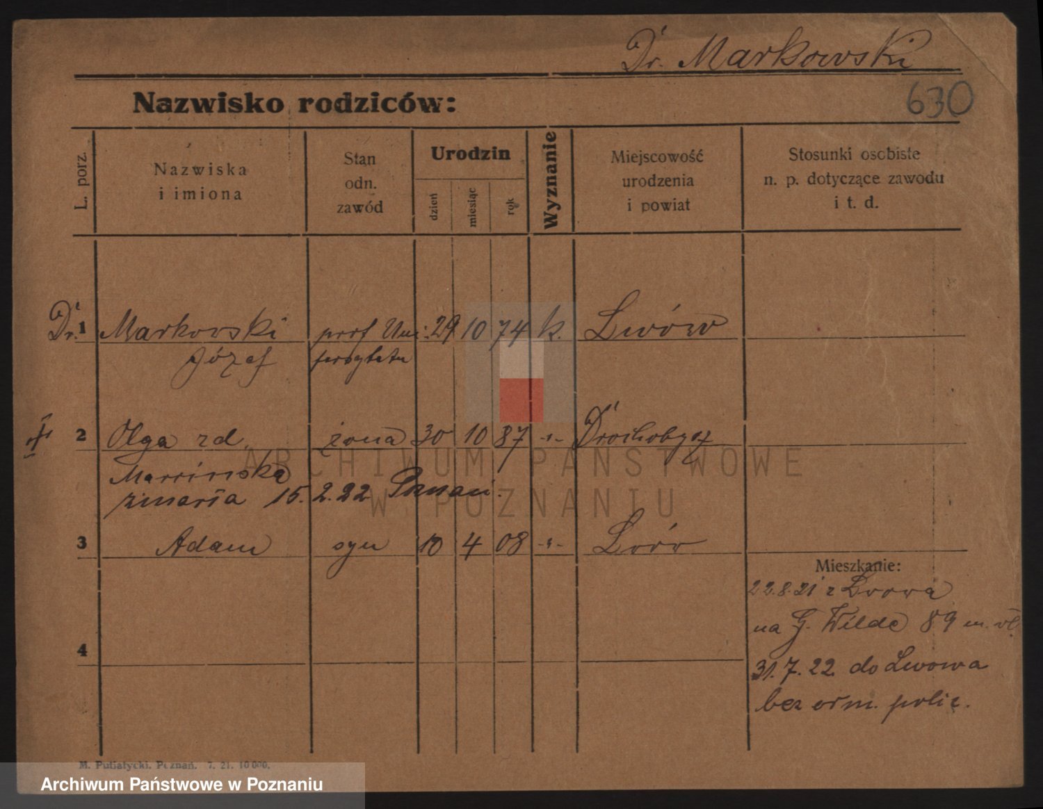 Podgląd karty osobowej dostępny jest po kliknięciu na nazwisko lub ikonkę karty. Można dokonywać powiększenia (ikony na górze) lub przechodzić między kolejnymi skanami (strzałki po bokach).