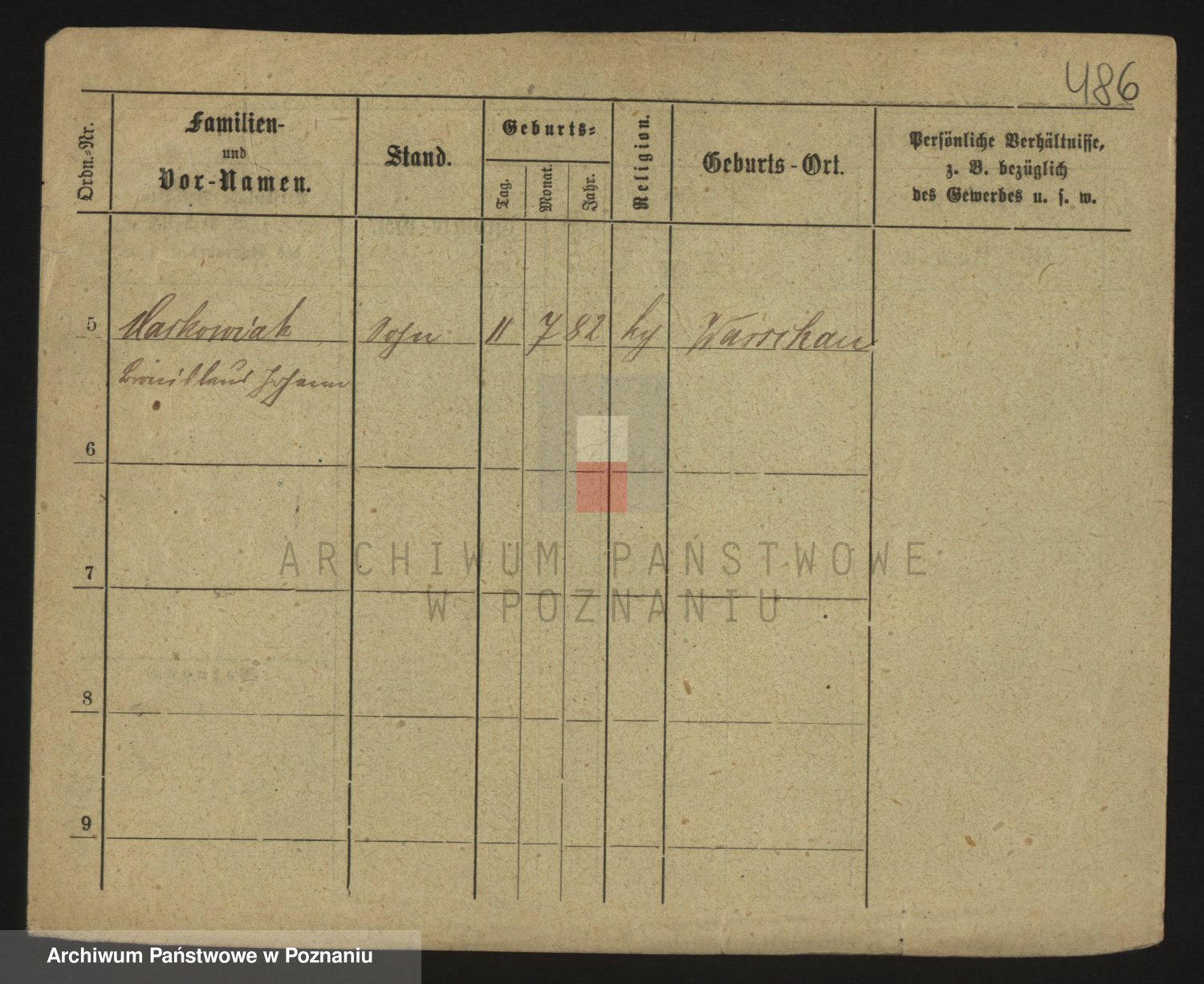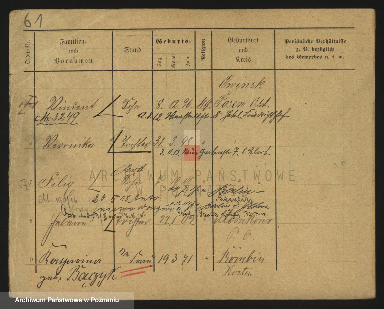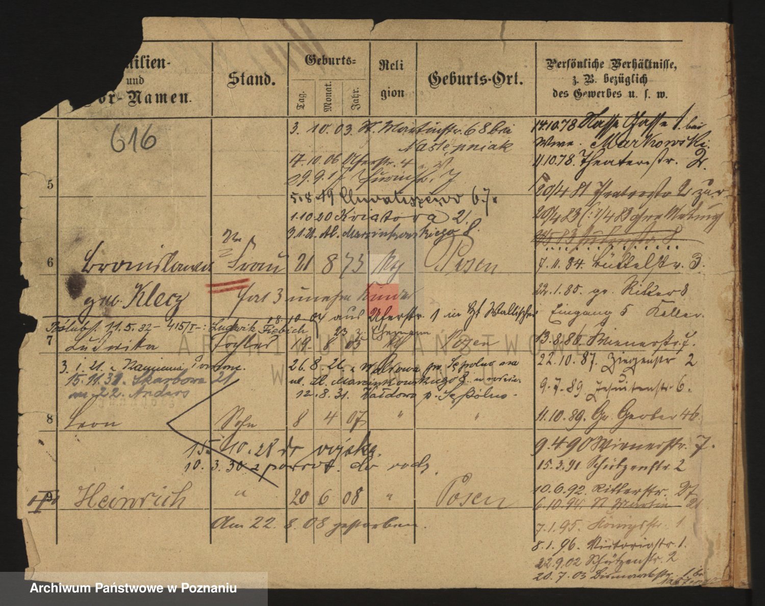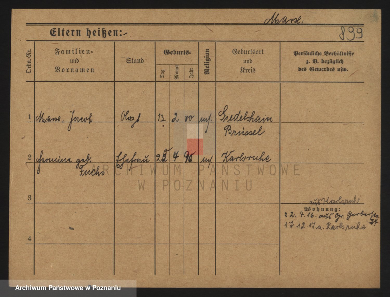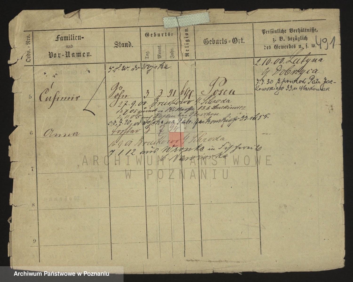 Podgląd karty osobowej dostępny jest po kliknięciu na nazwisko lub ikonkę karty. Można dokonywać powiększenia (ikony na górze) lub przechodzić między kolejnymi skanami (strzałki po bokach).