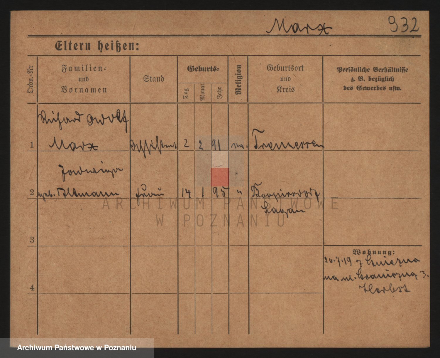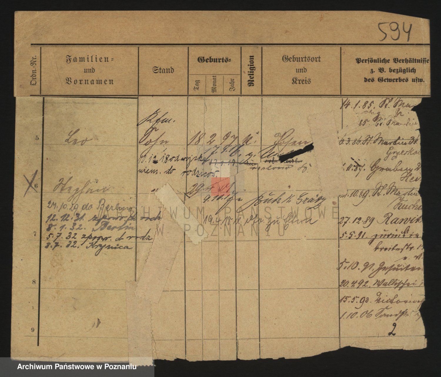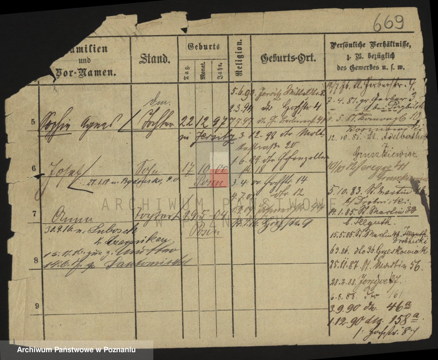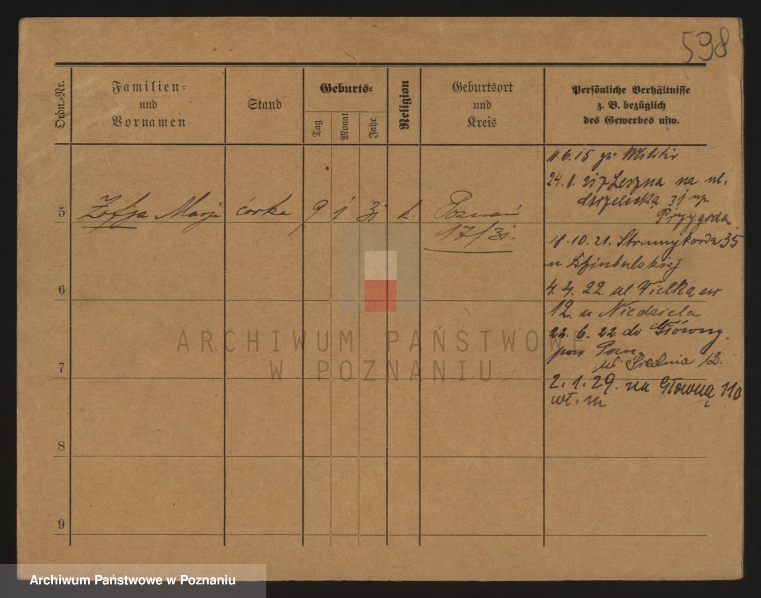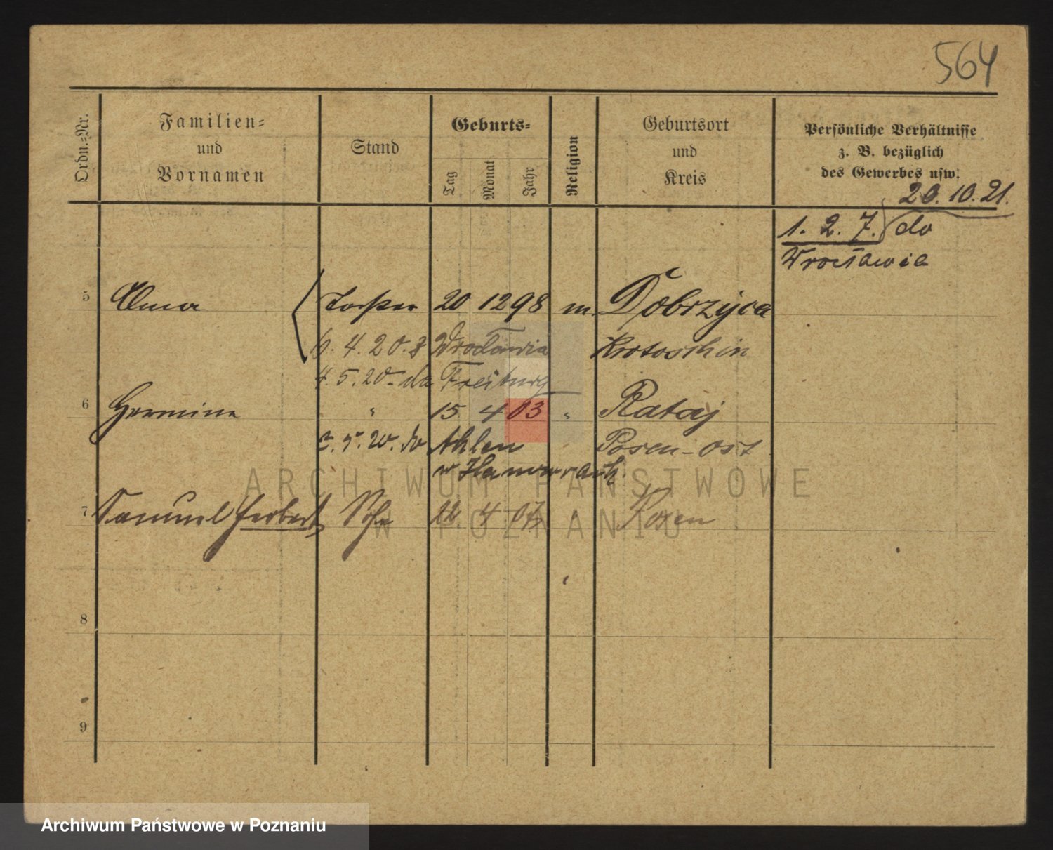 Podgląd karty osobowej dostępny jest po kliknięciu na nazwisko lub ikonkę karty. Można dokonywać powiększenia (ikony na górze) lub przechodzić między kolejnymi skanami (strzałki po bokach).