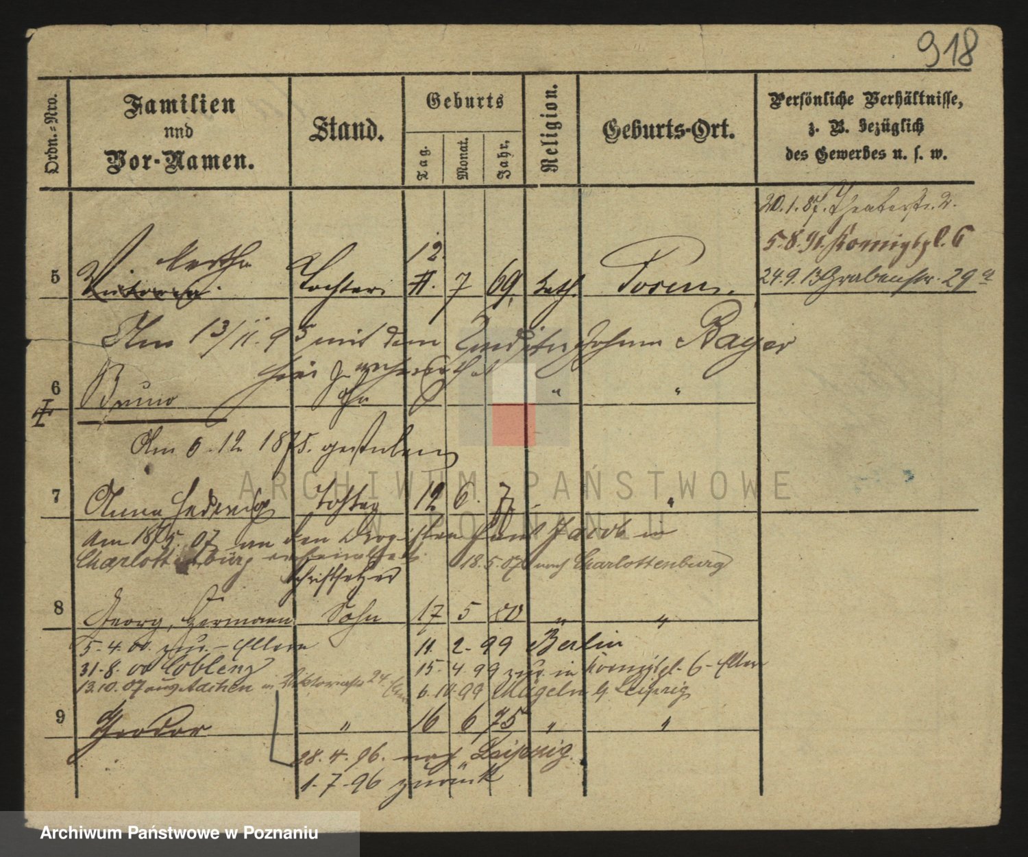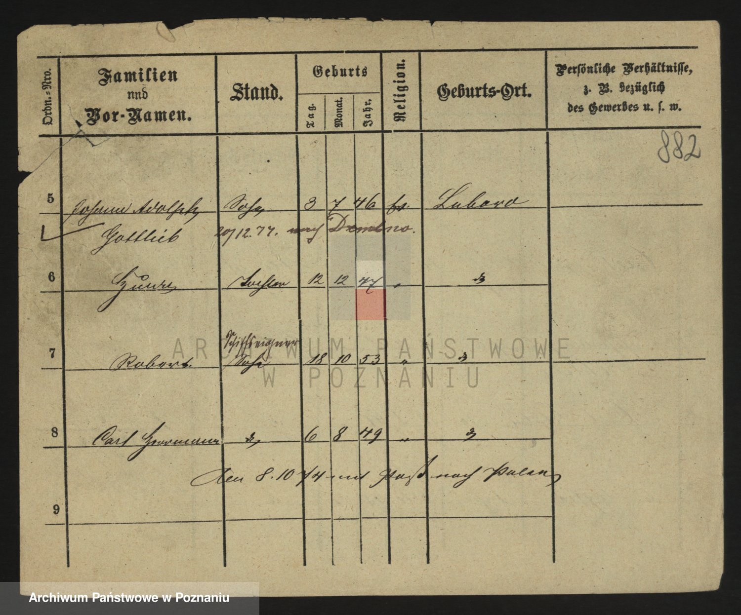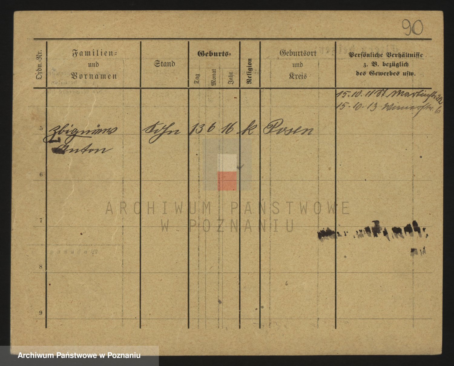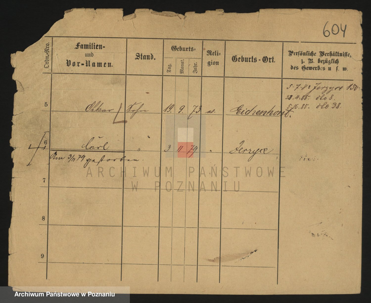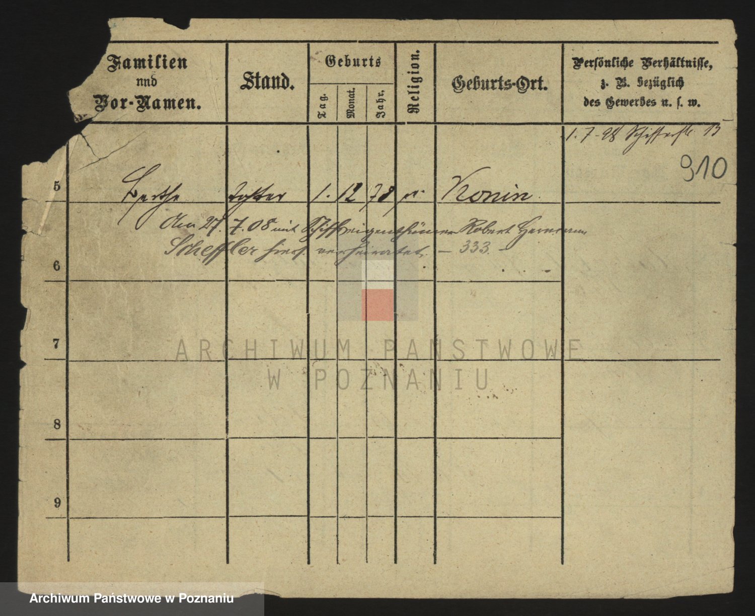 Podgląd karty osobowej dostępny jest po kliknięciu na nazwisko lub ikonkę karty. Można dokonywać powiększenia (ikony na górze) lub przechodzić między kolejnymi skanami (strzałki po bokach).