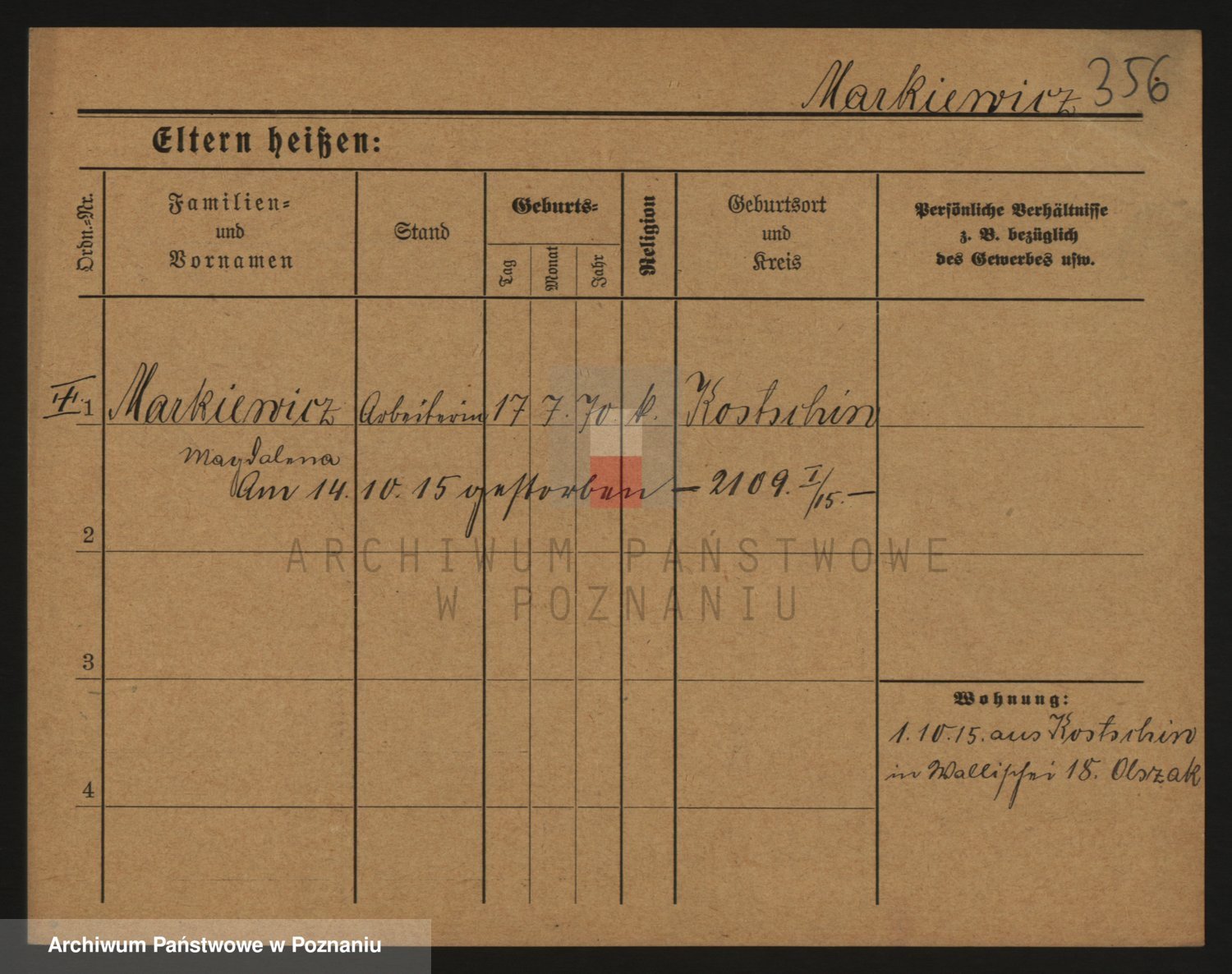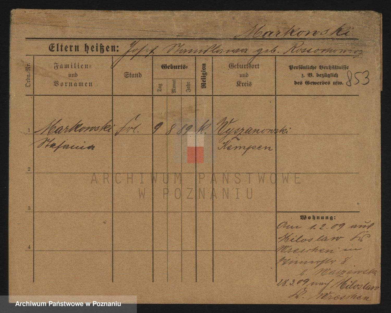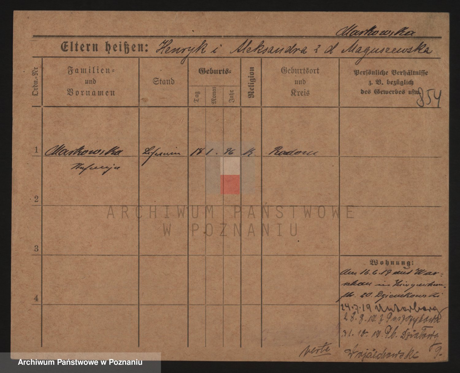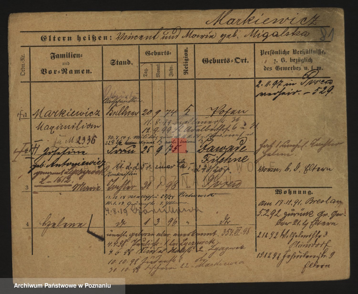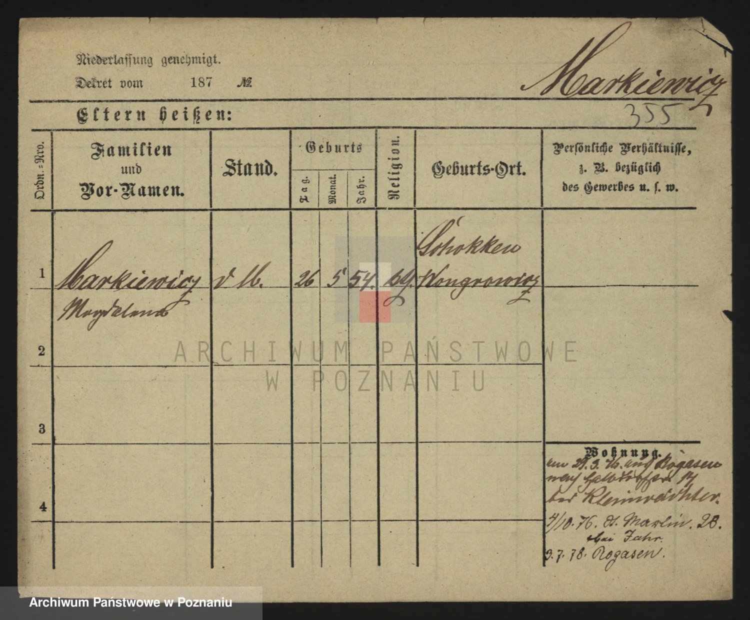 Markiewicz zd. Kopinska Iv. Schmidt IIv. Lonc, Magdalene