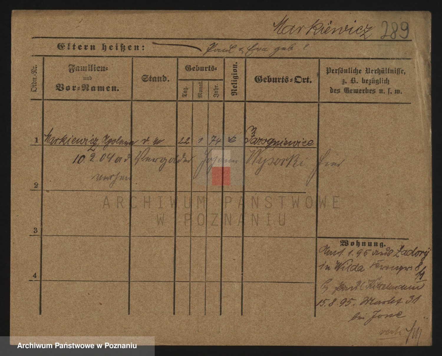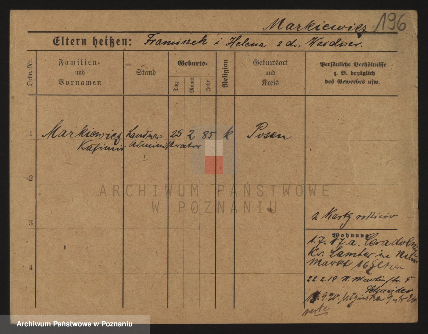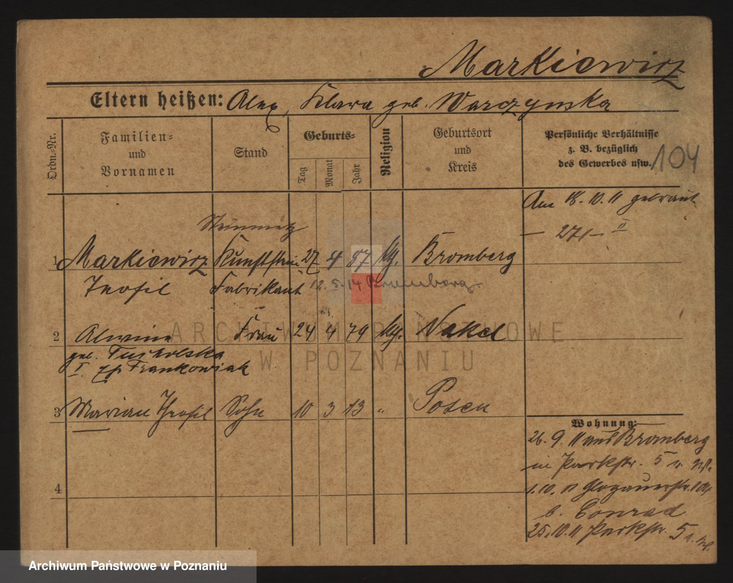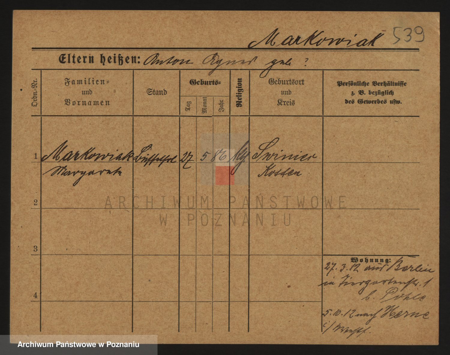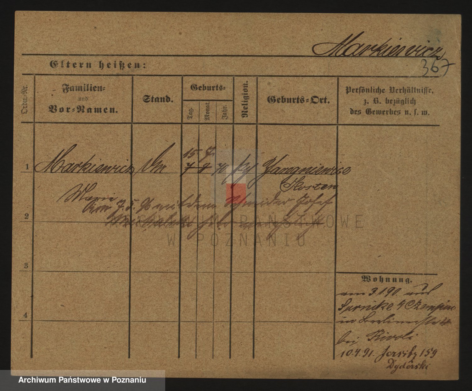 Markiewicz zd. Kopinska Iv. Schmidt IIv. Lonc, Magdalene