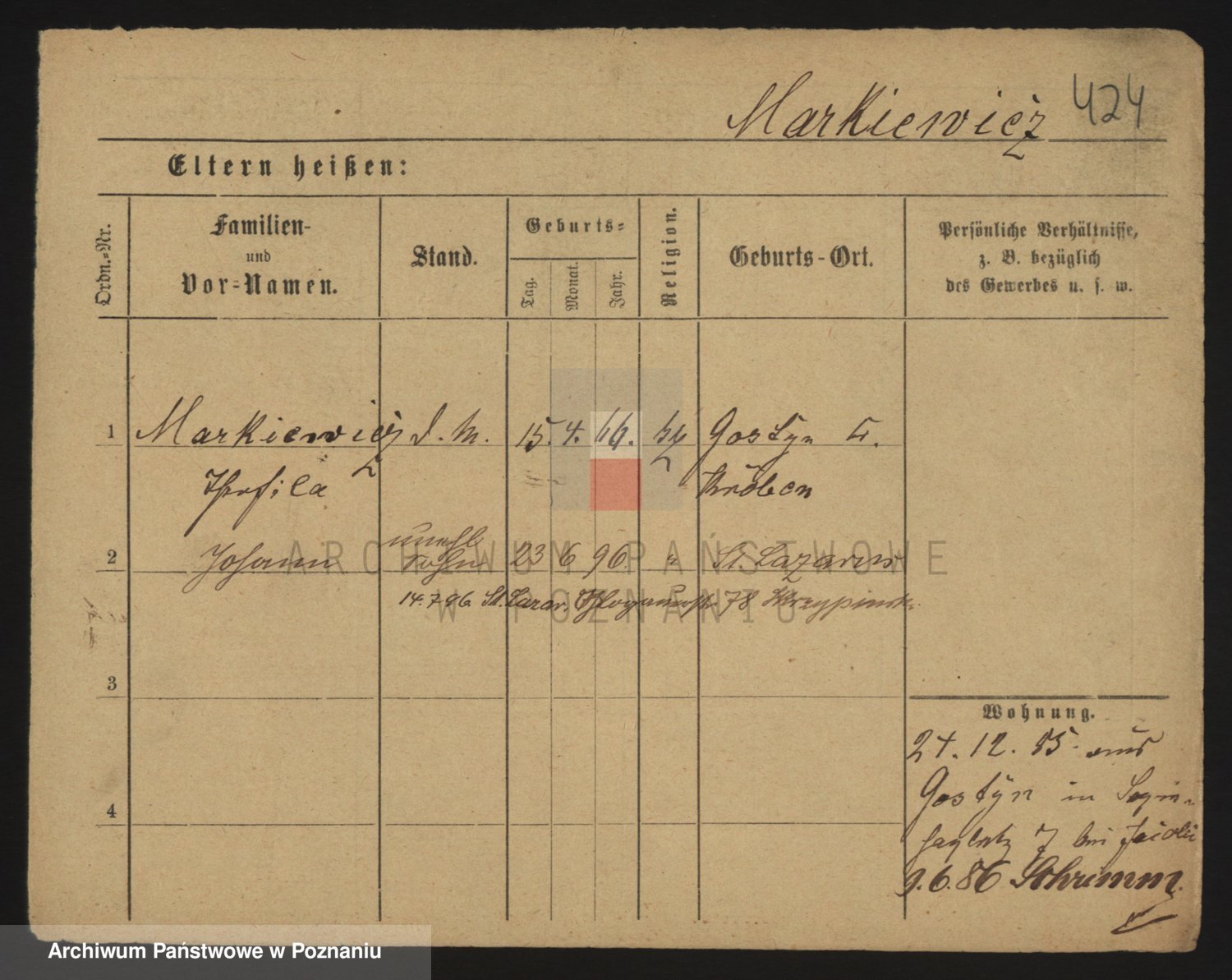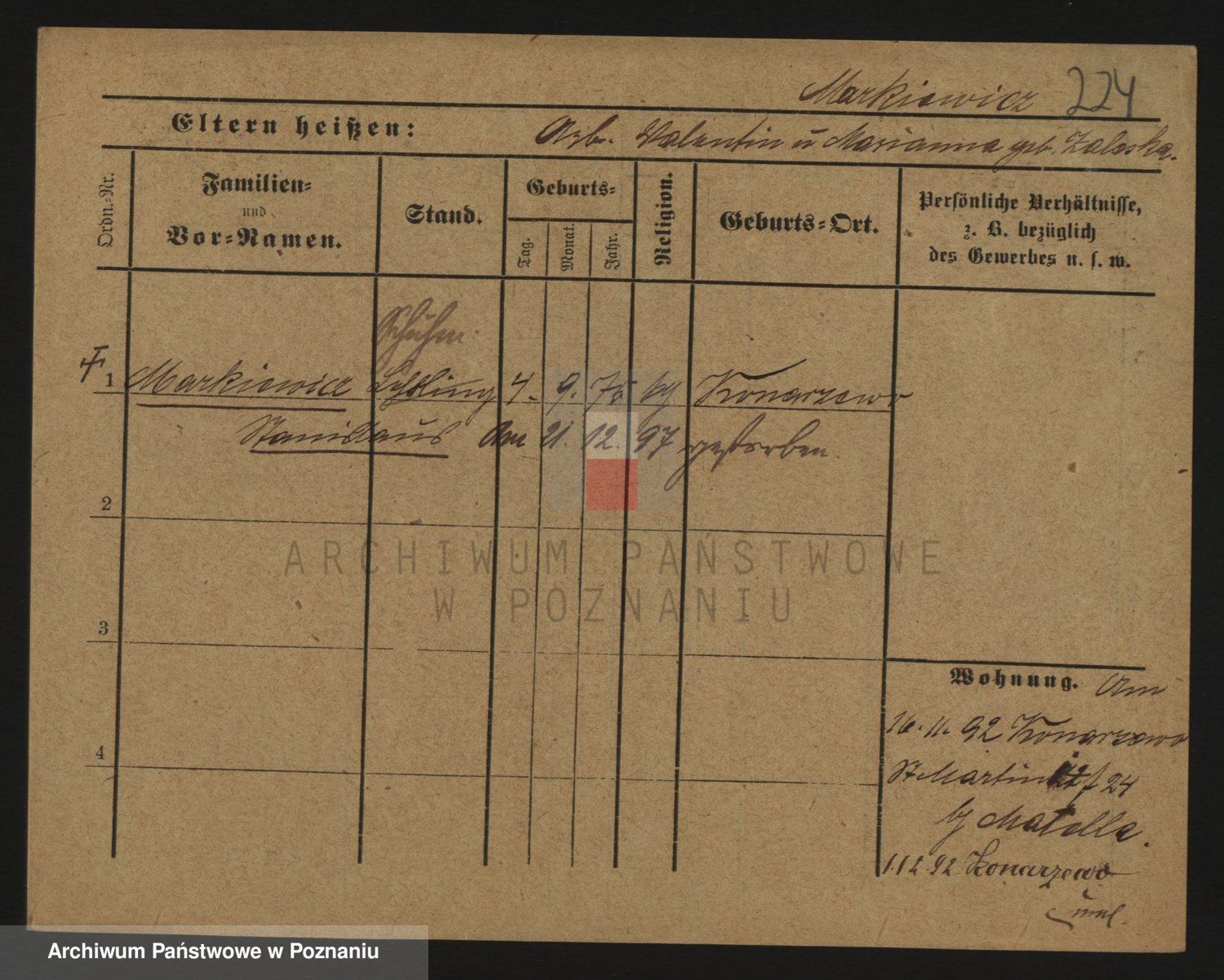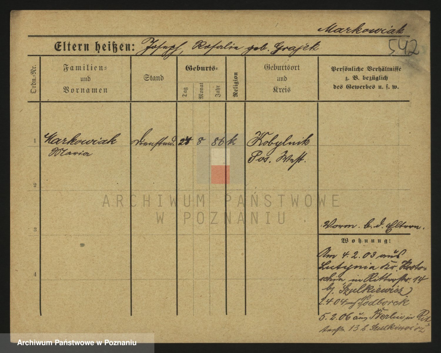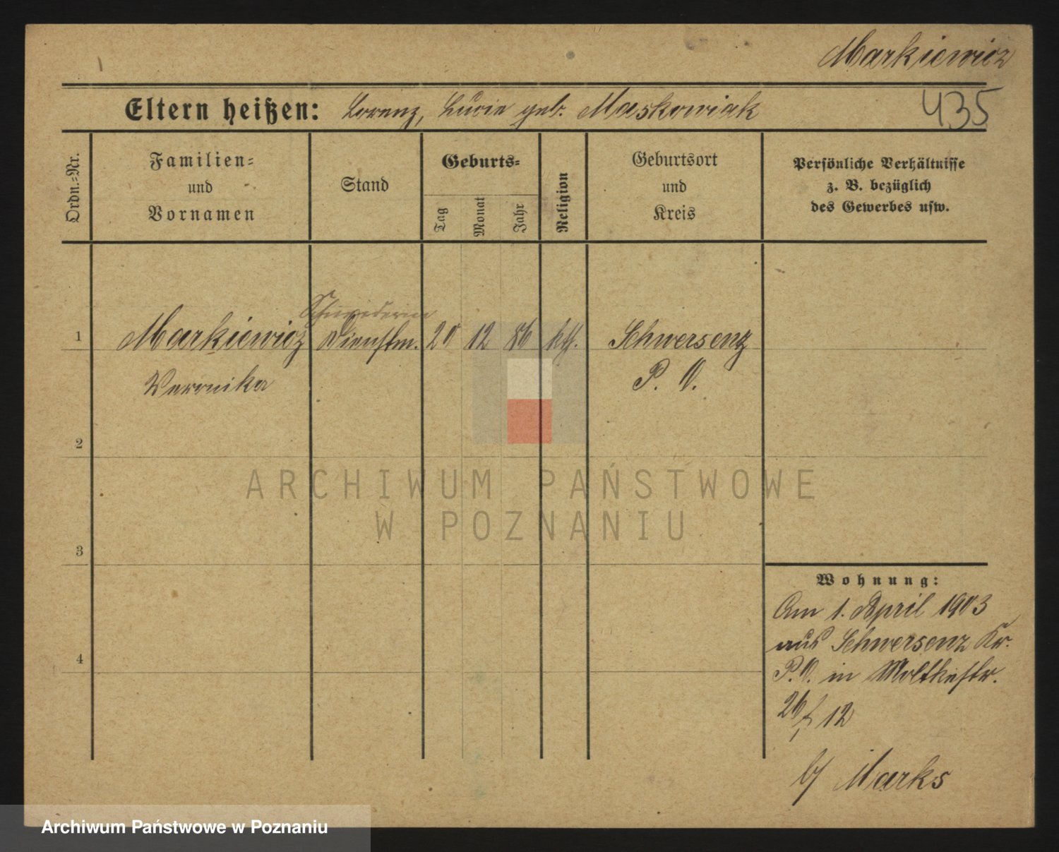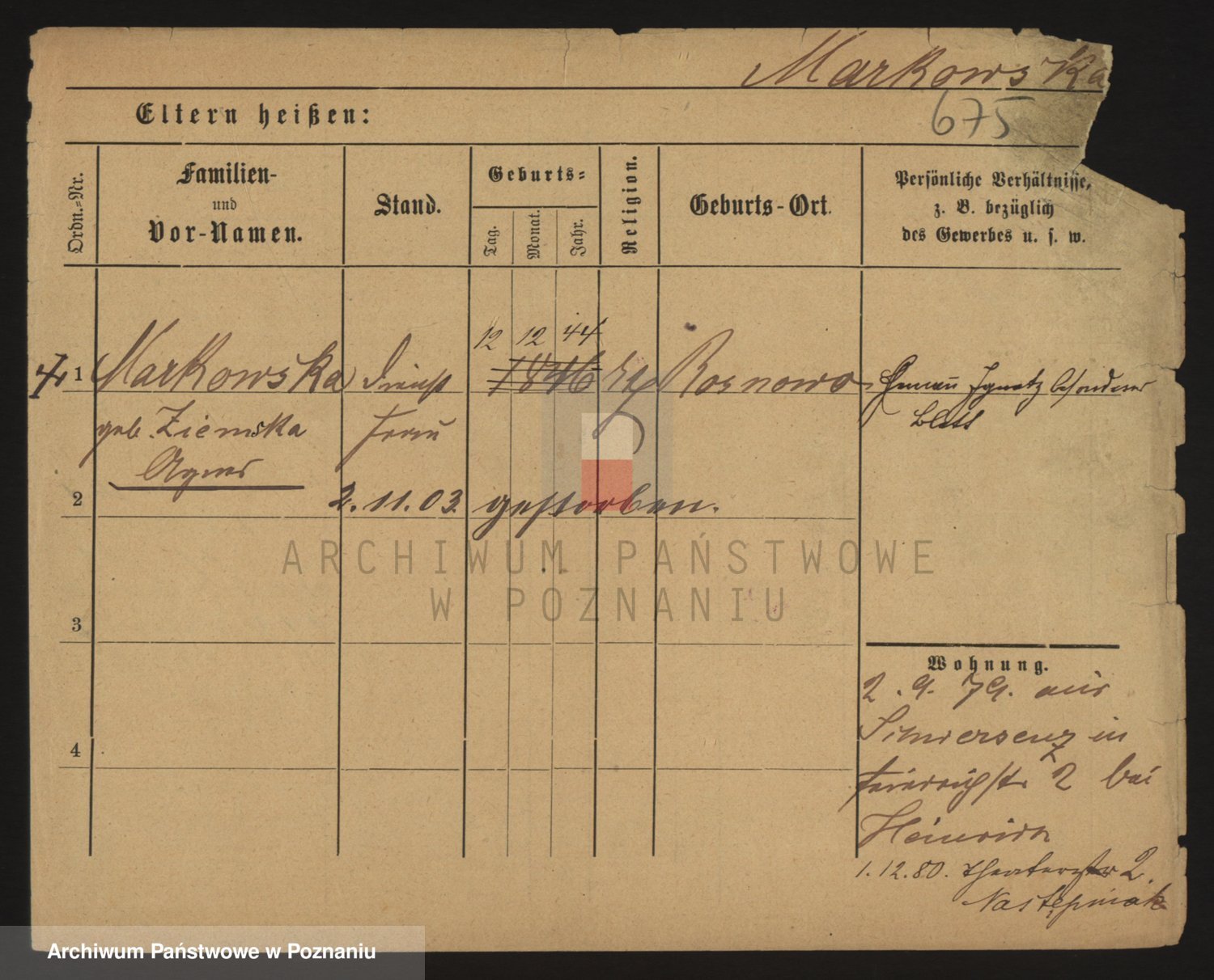 Markiewicz zd. Kopinska Iv. Schmidt IIv. Lonc, Magdalene