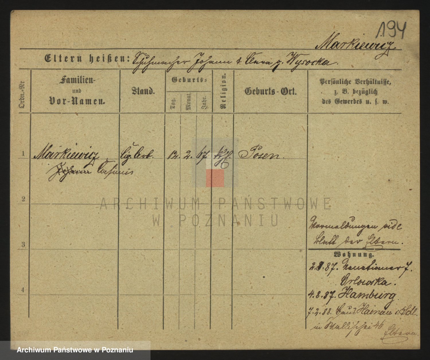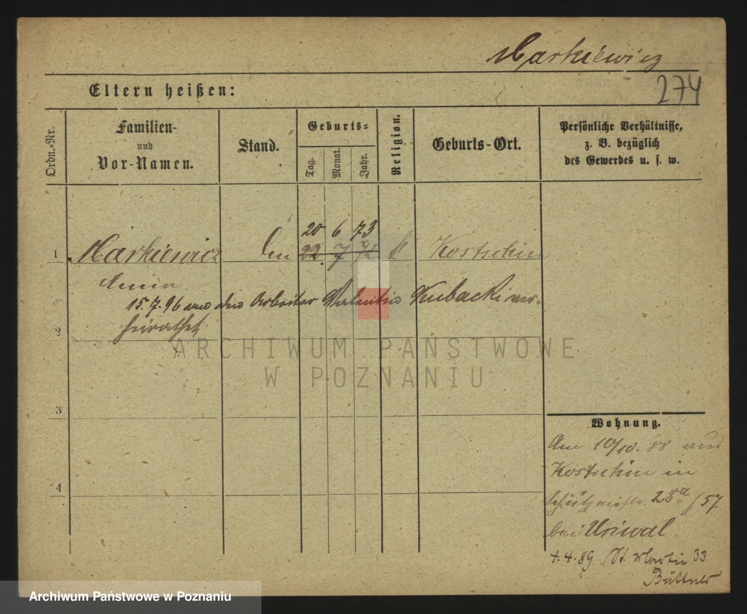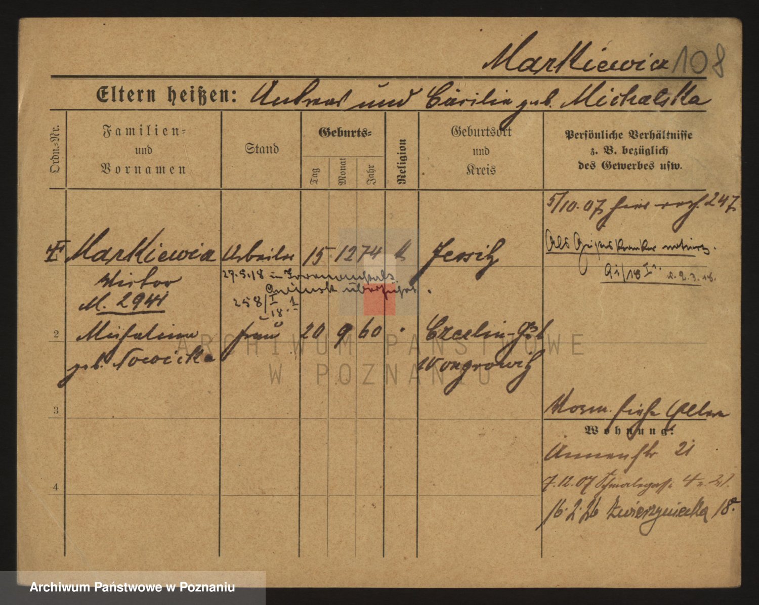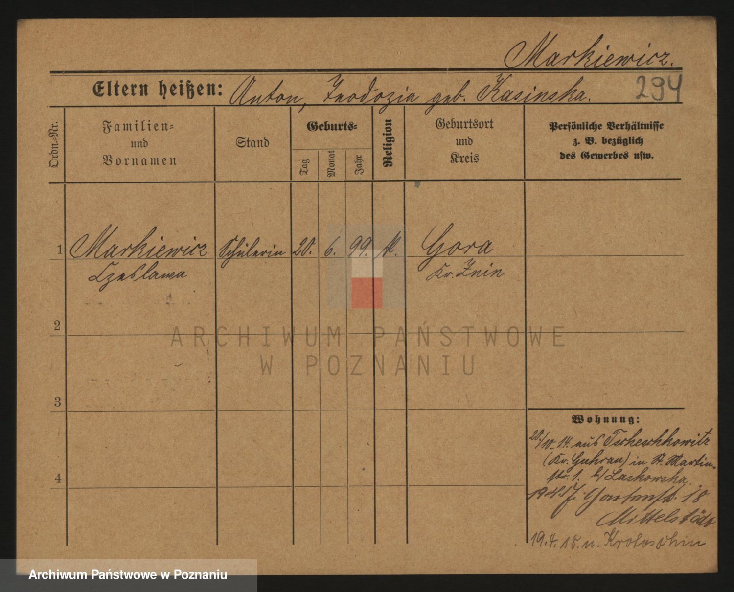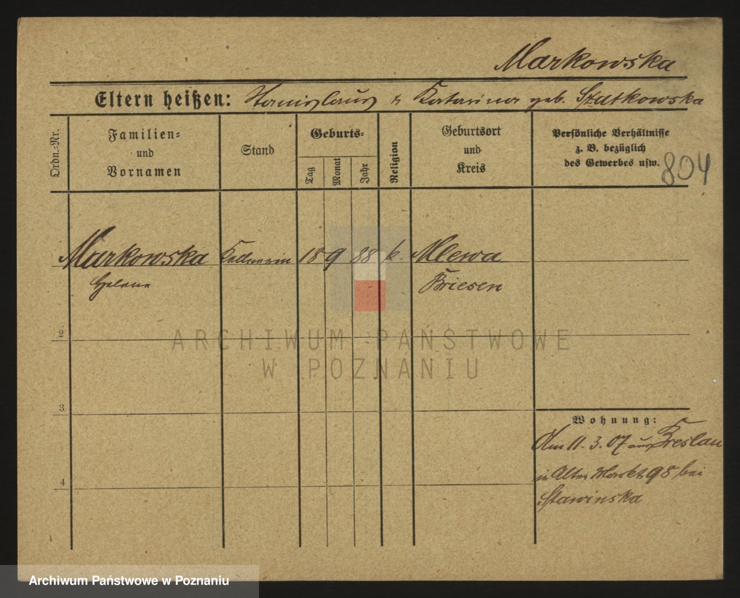Markiewicz zd. Kopinska Iv. Schmidt IIv. Lonc, Magdalene