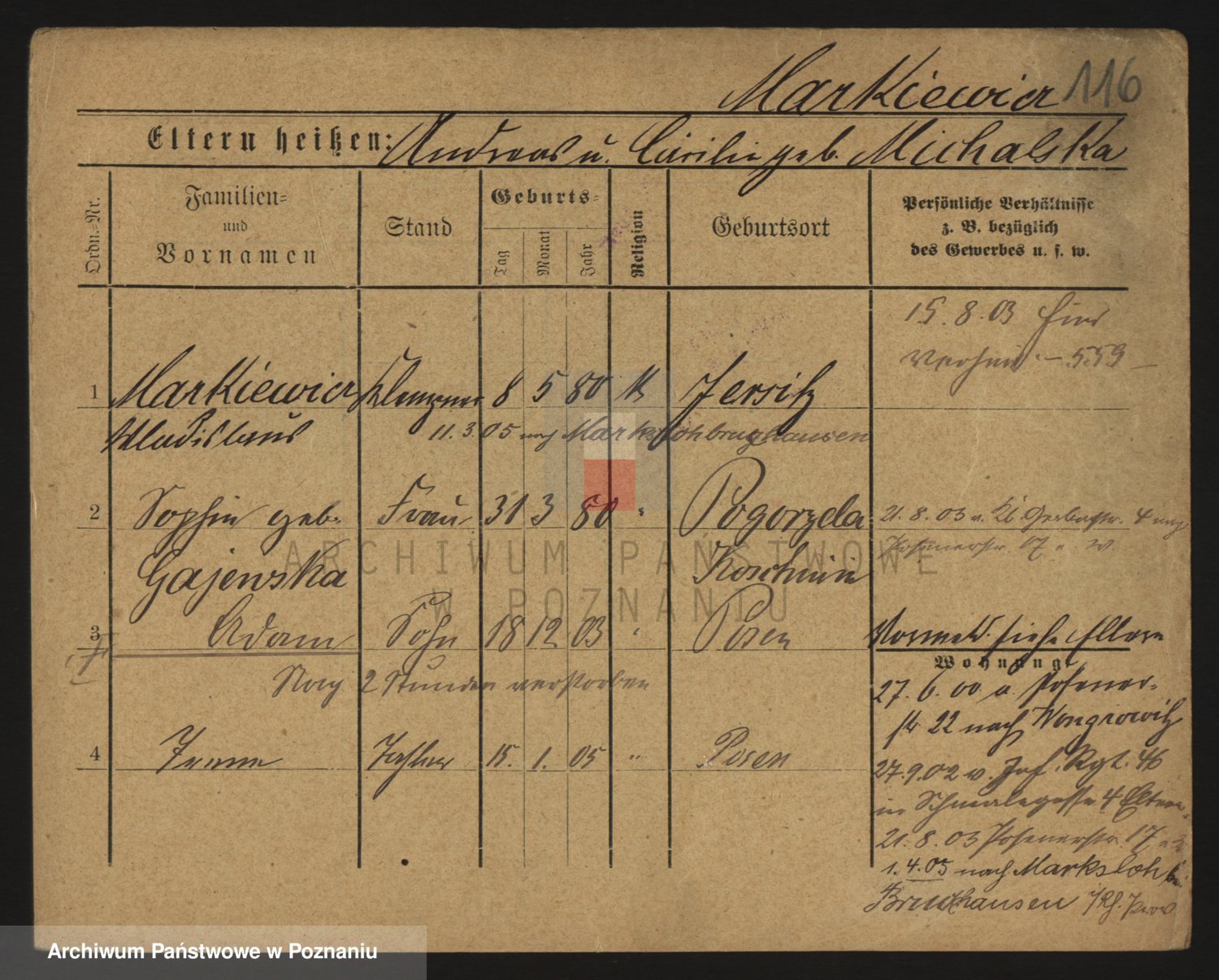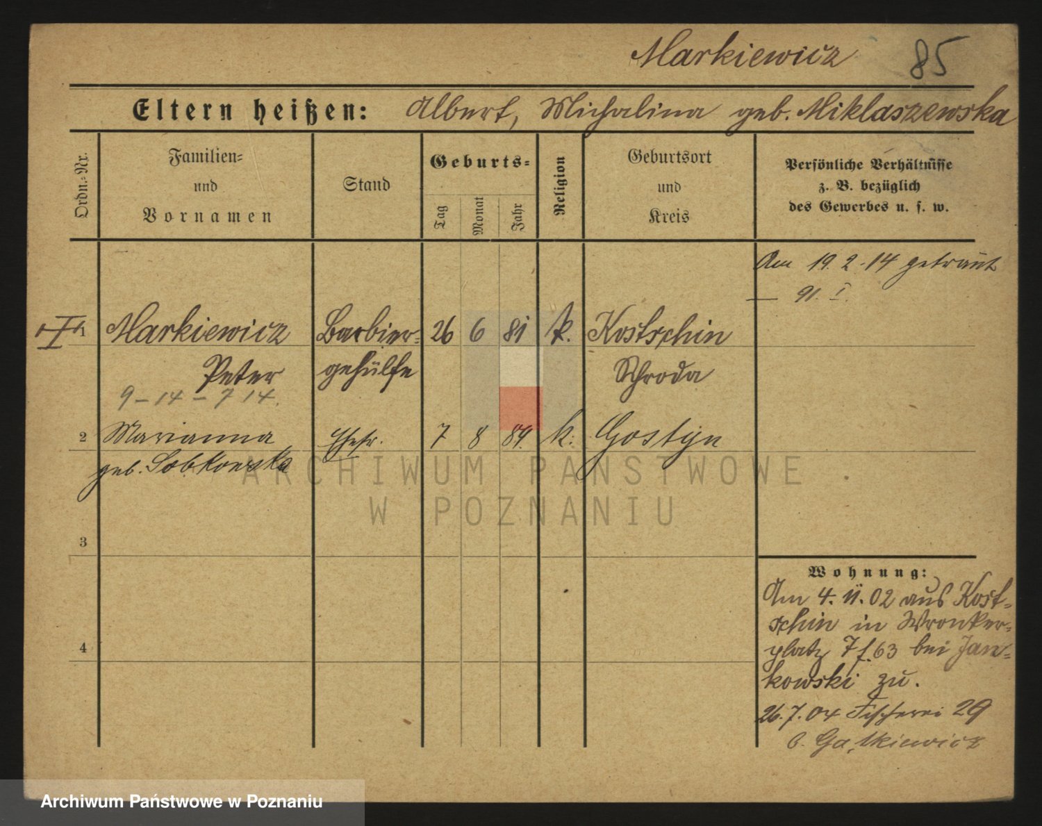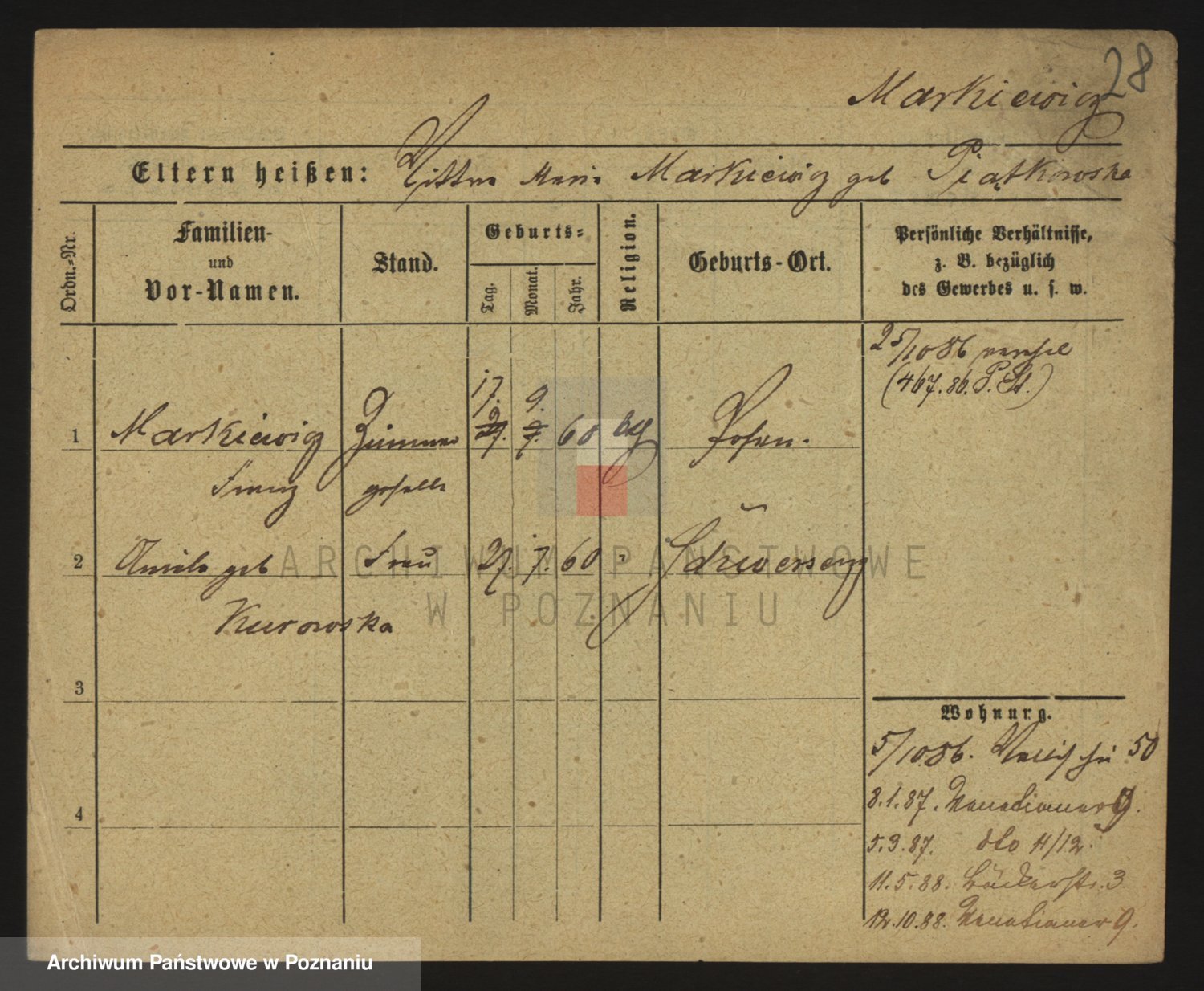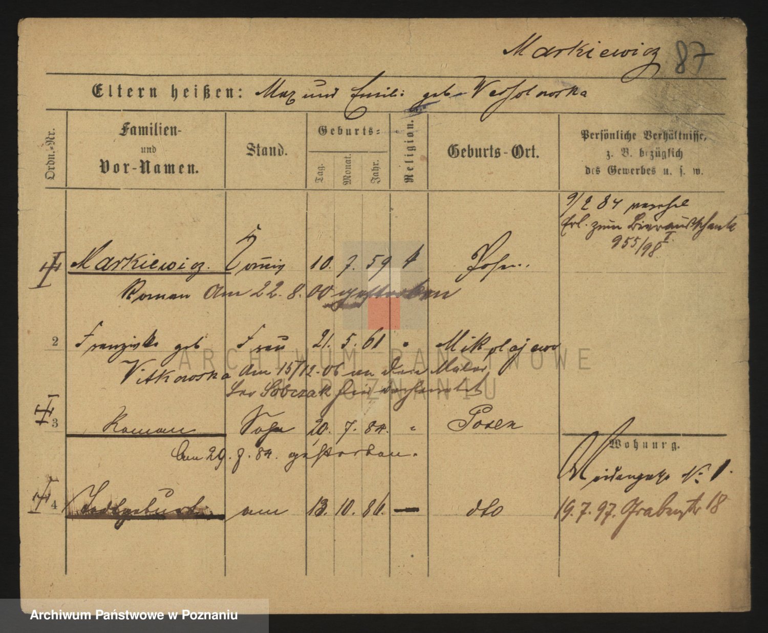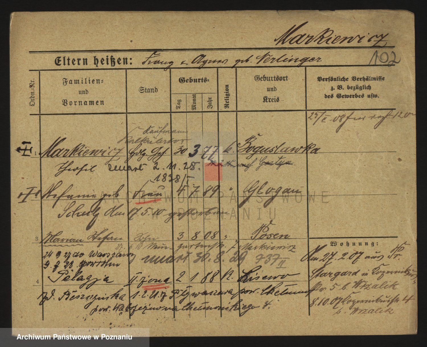 Markiewicz zd. Kopinska Iv. Schmidt IIv. Lonc, Magdalene