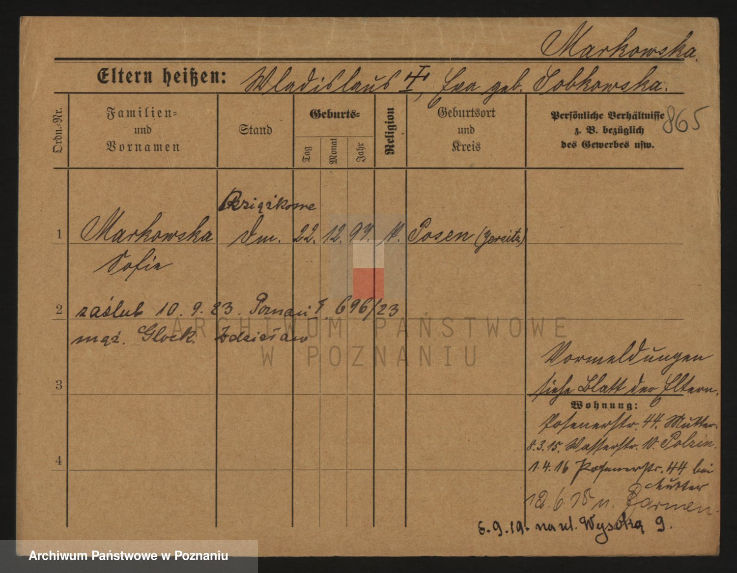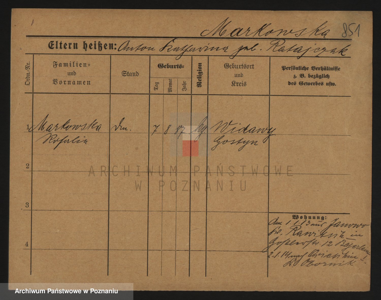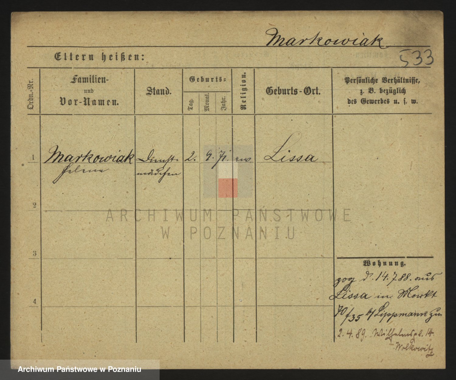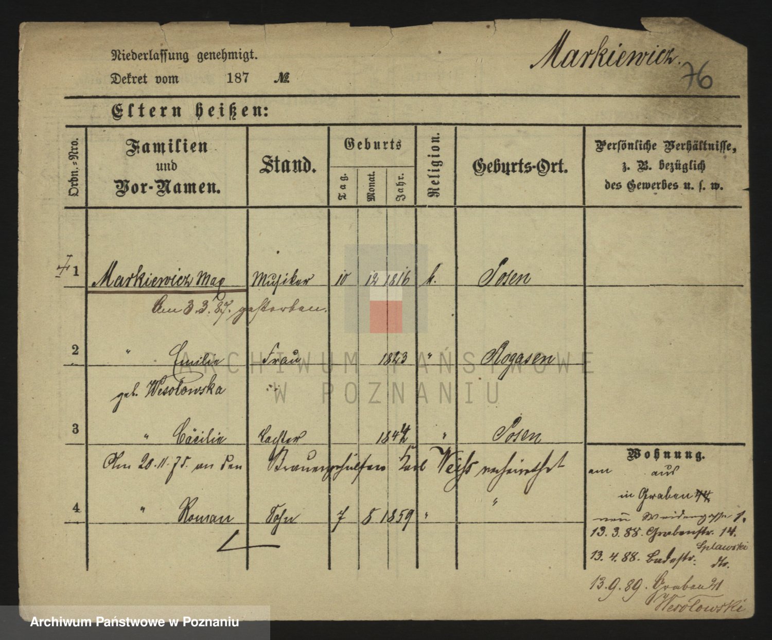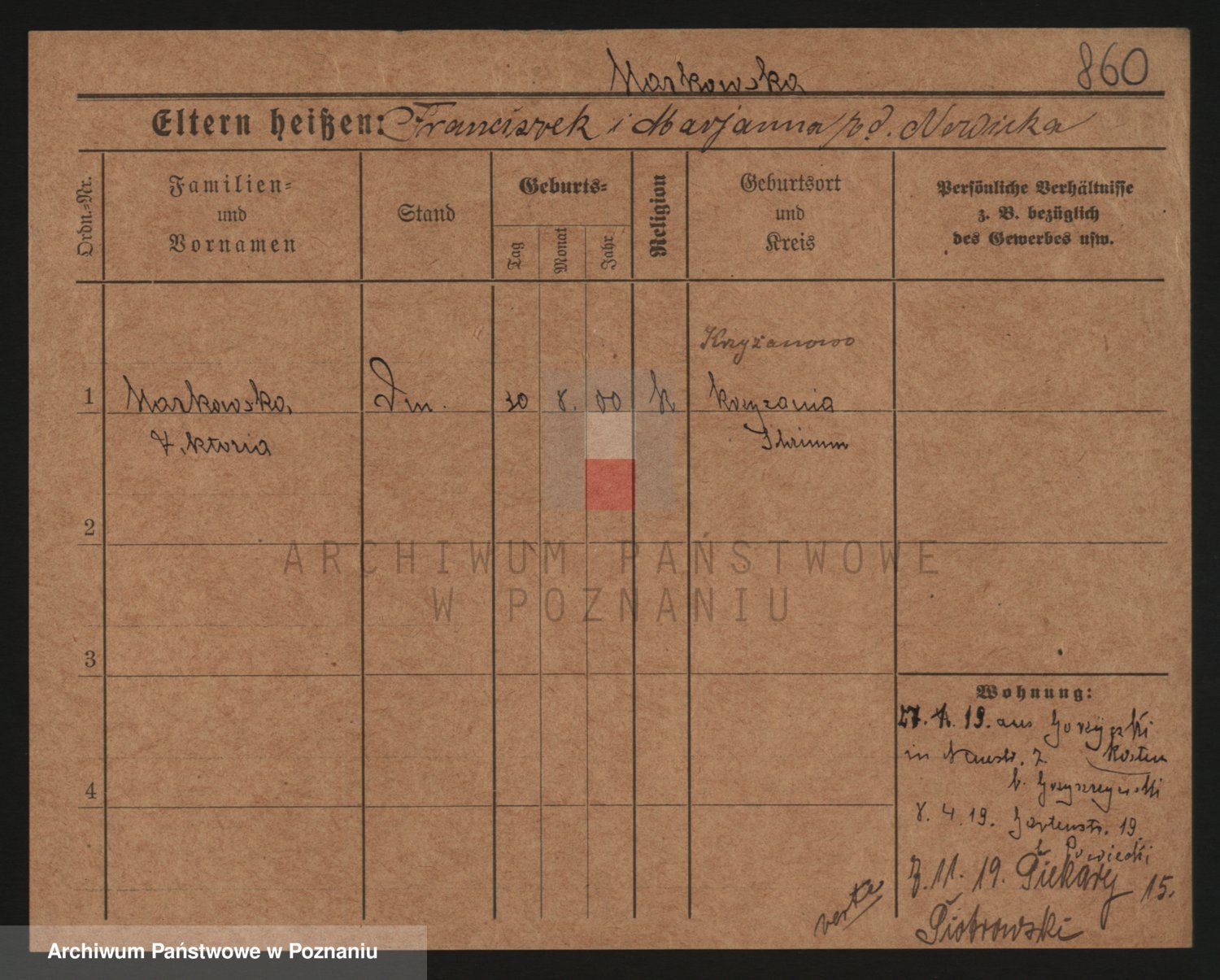 Markiewicz zd. Kopinska Iv. Schmidt IIv. Lonc, Magdalene