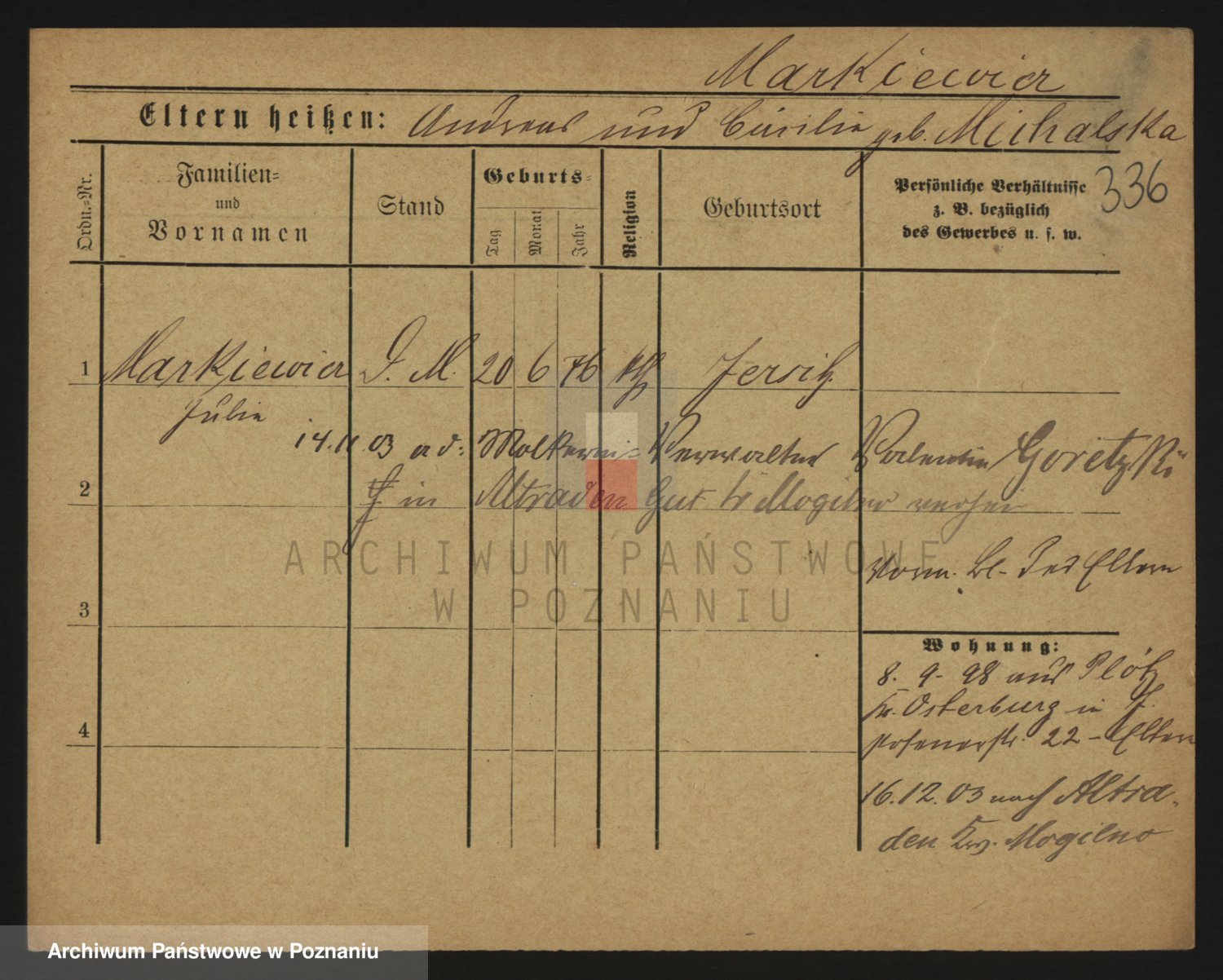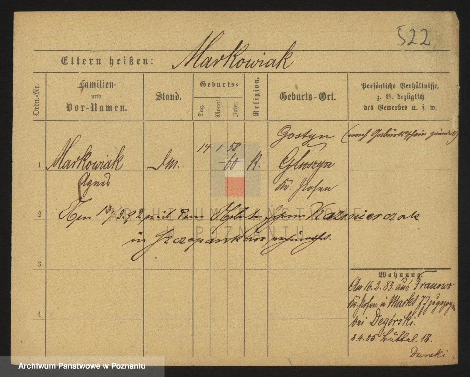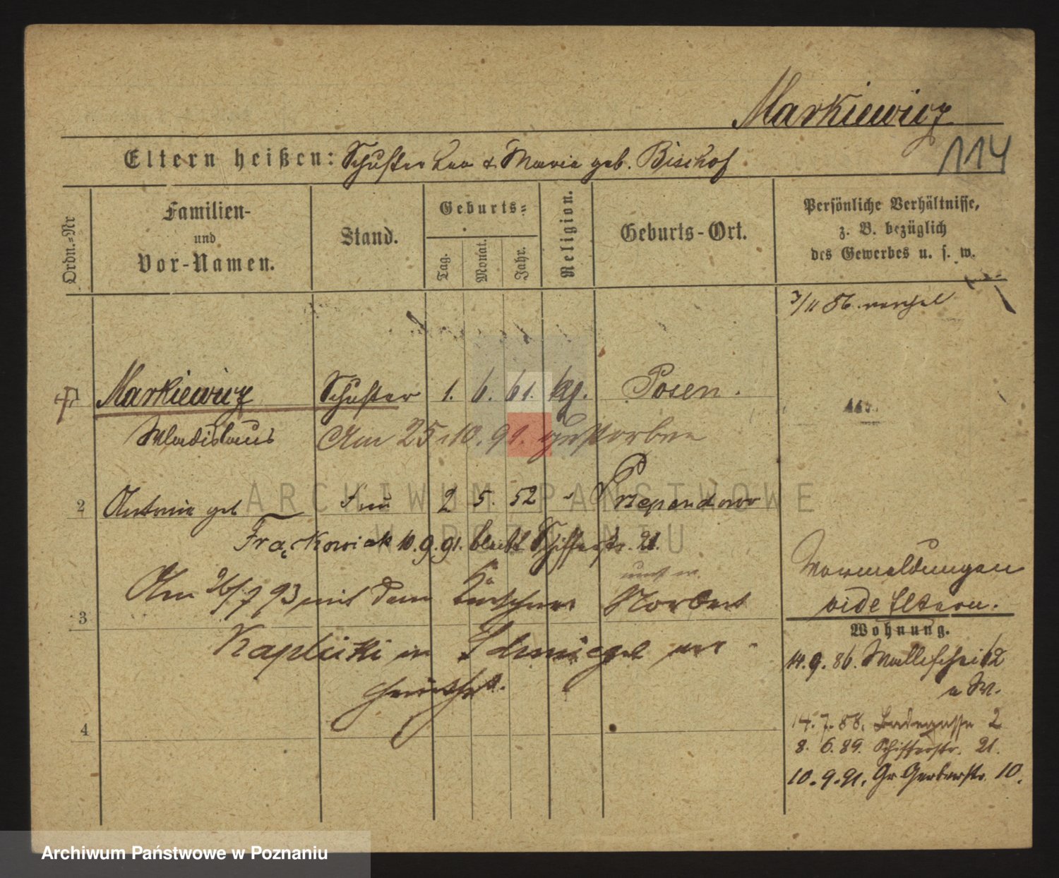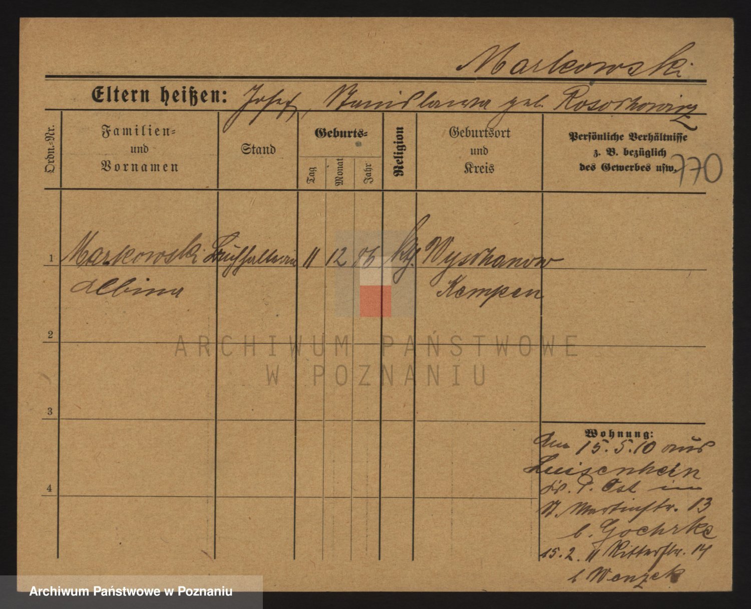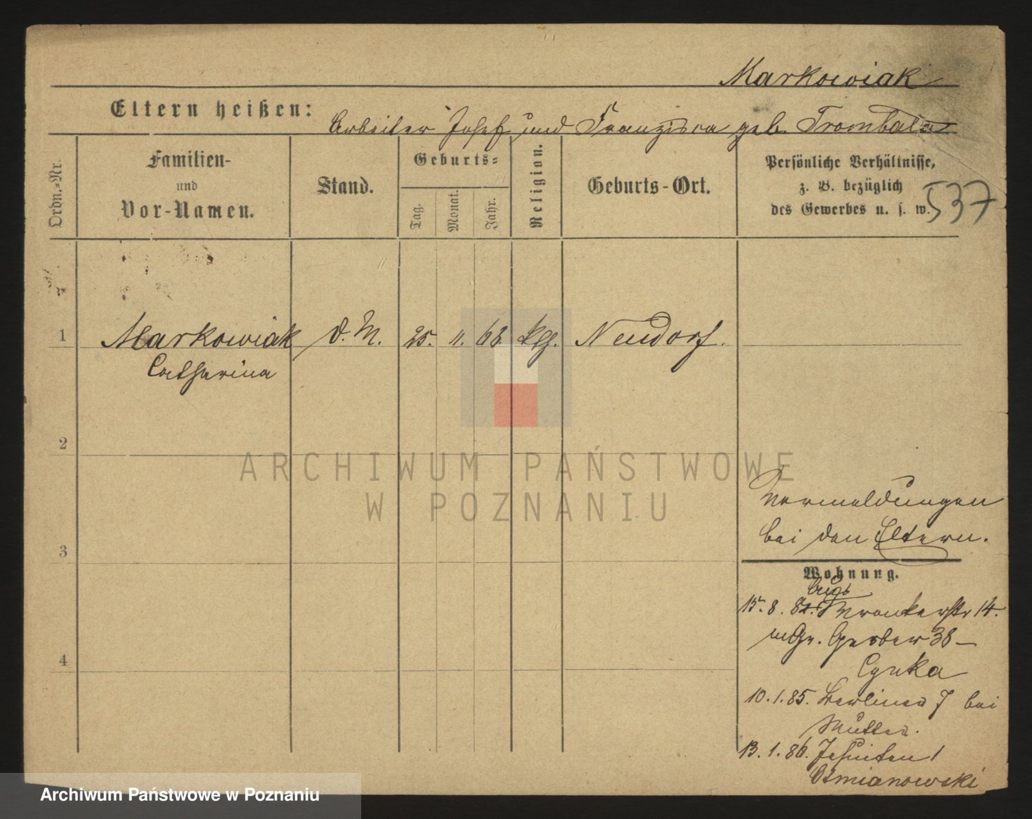 Markiewicz zd. Kopinska Iv. Schmidt IIv. Lonc, Magdalene
