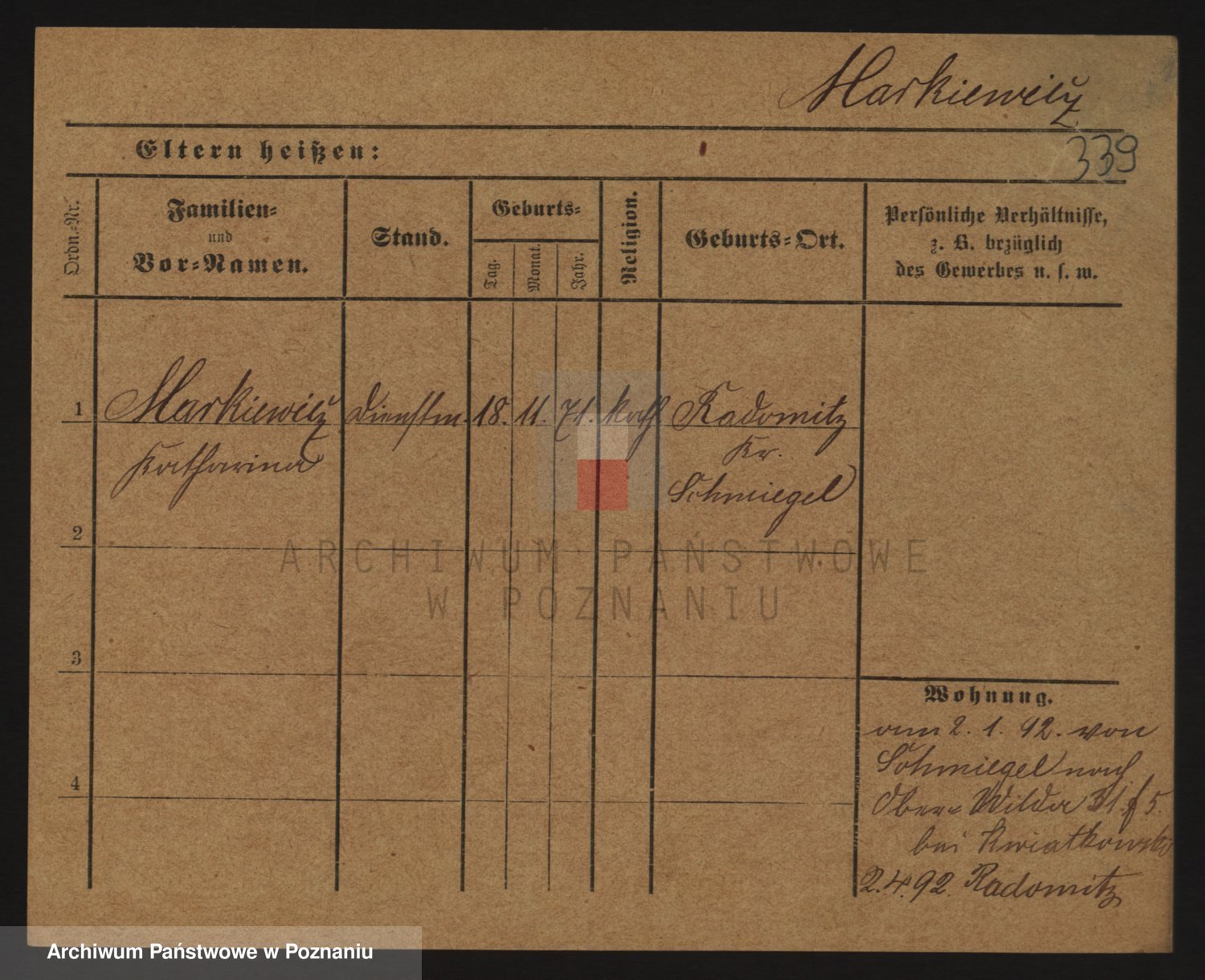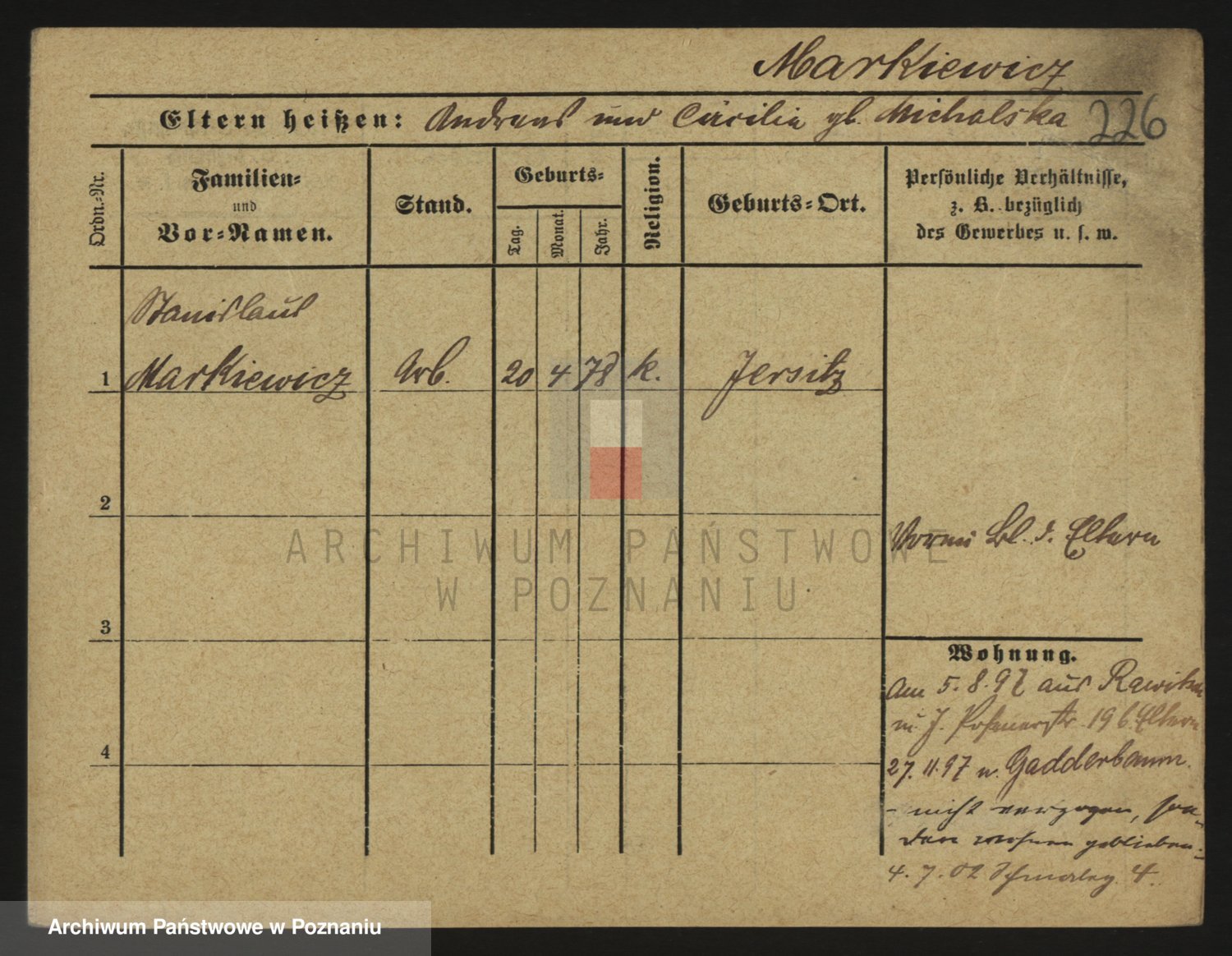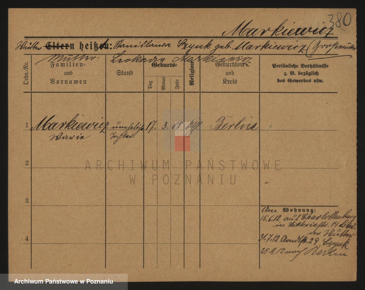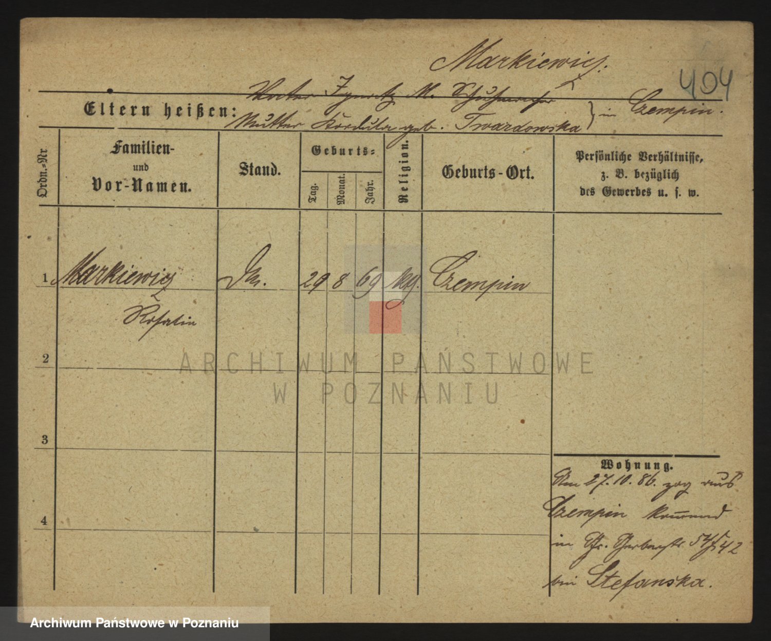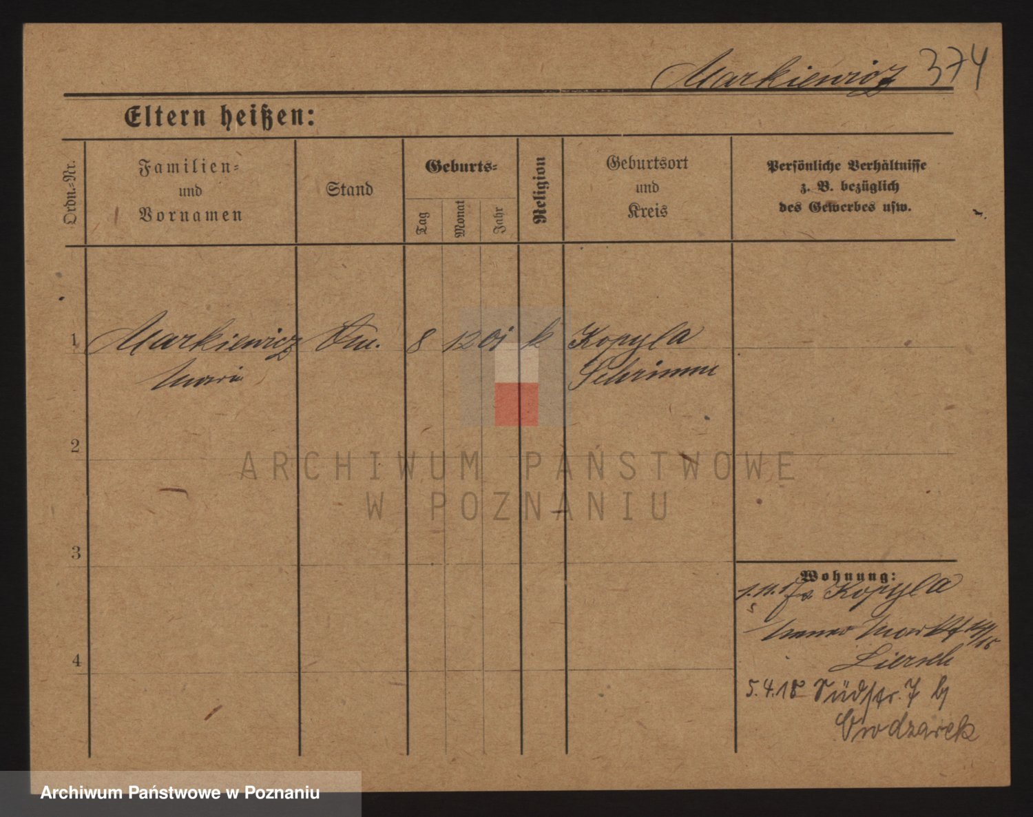 Markiewicz zd. Kopinska Iv. Schmidt IIv. Lonc, Magdalene