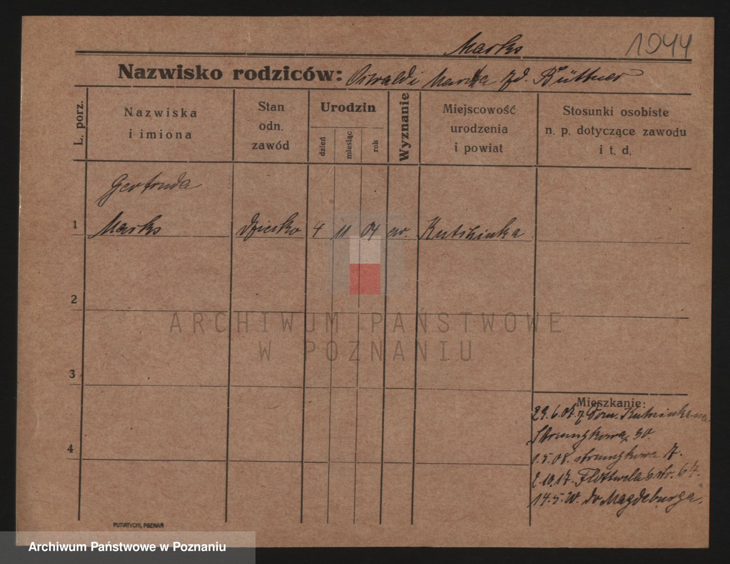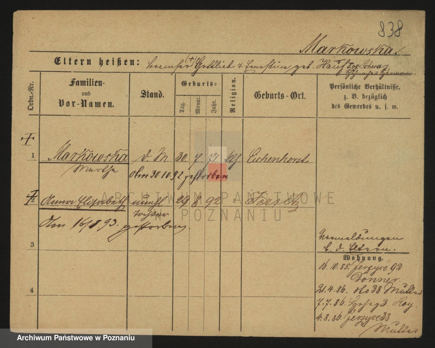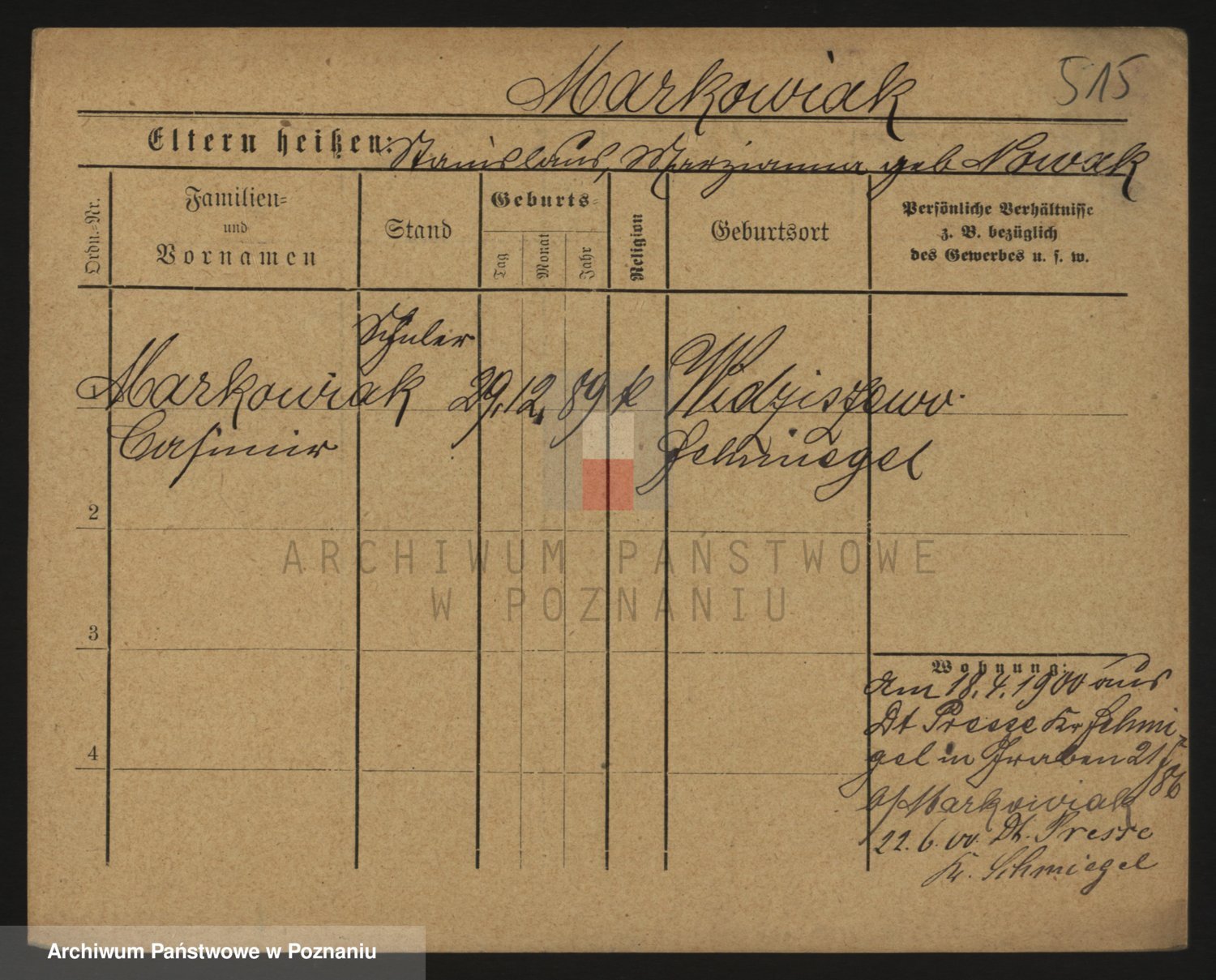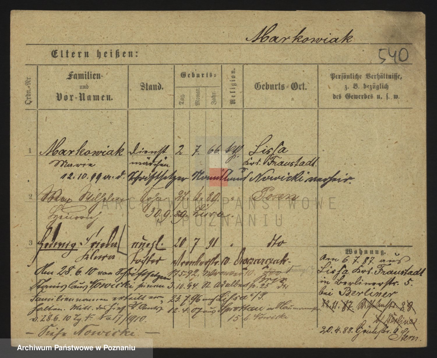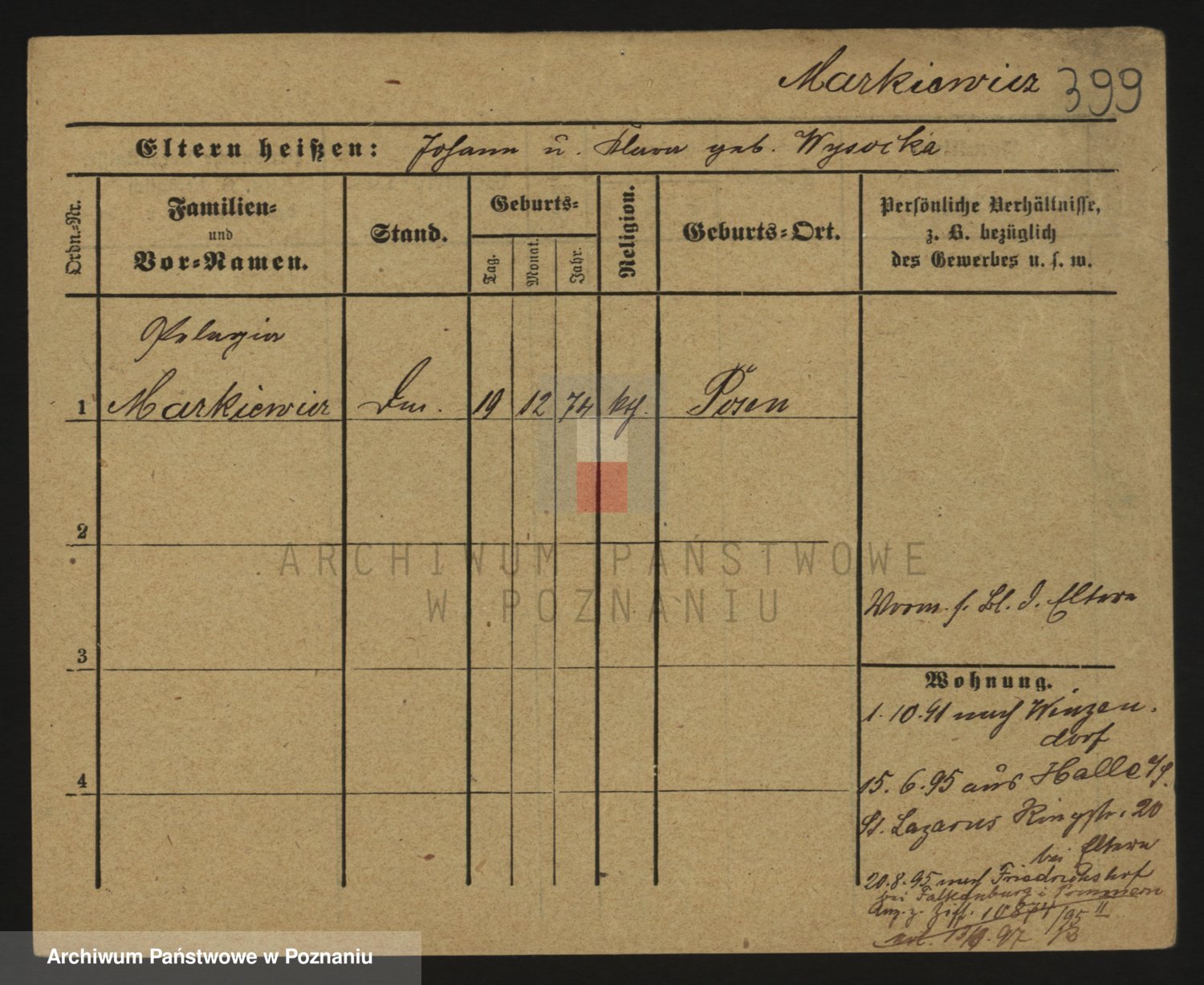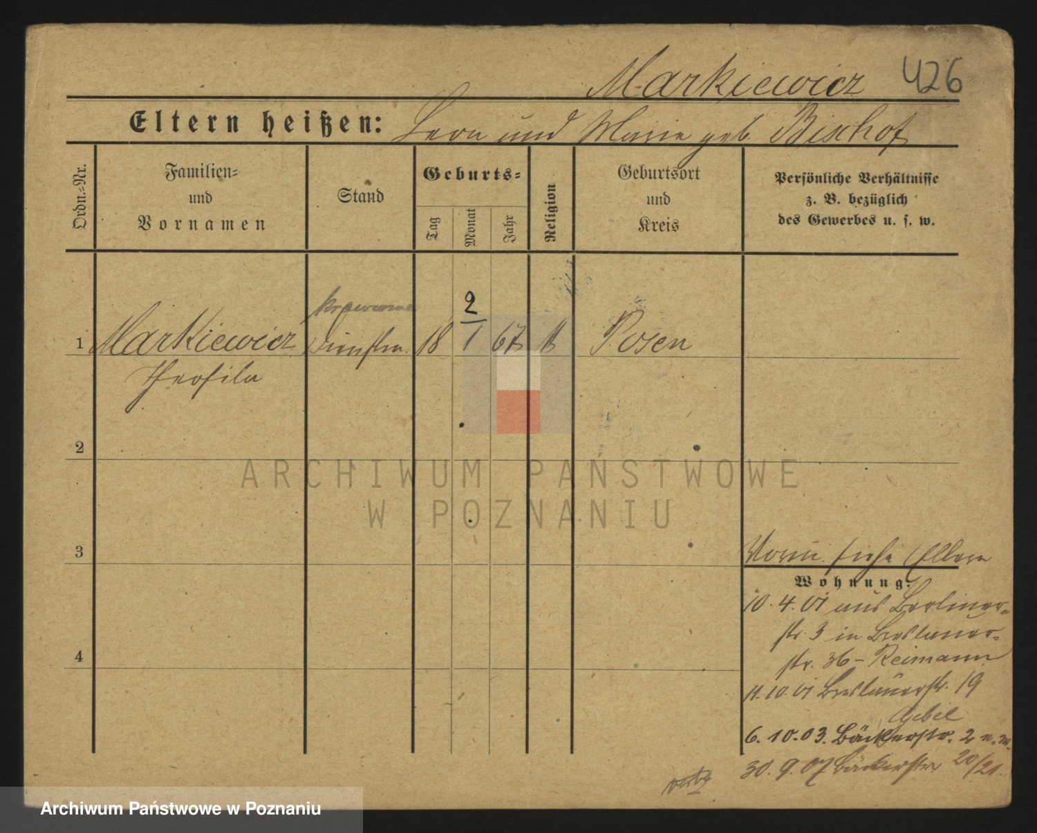 Markiewicz zd. Kopinska Iv. Schmidt IIv. Lonc, Magdalene