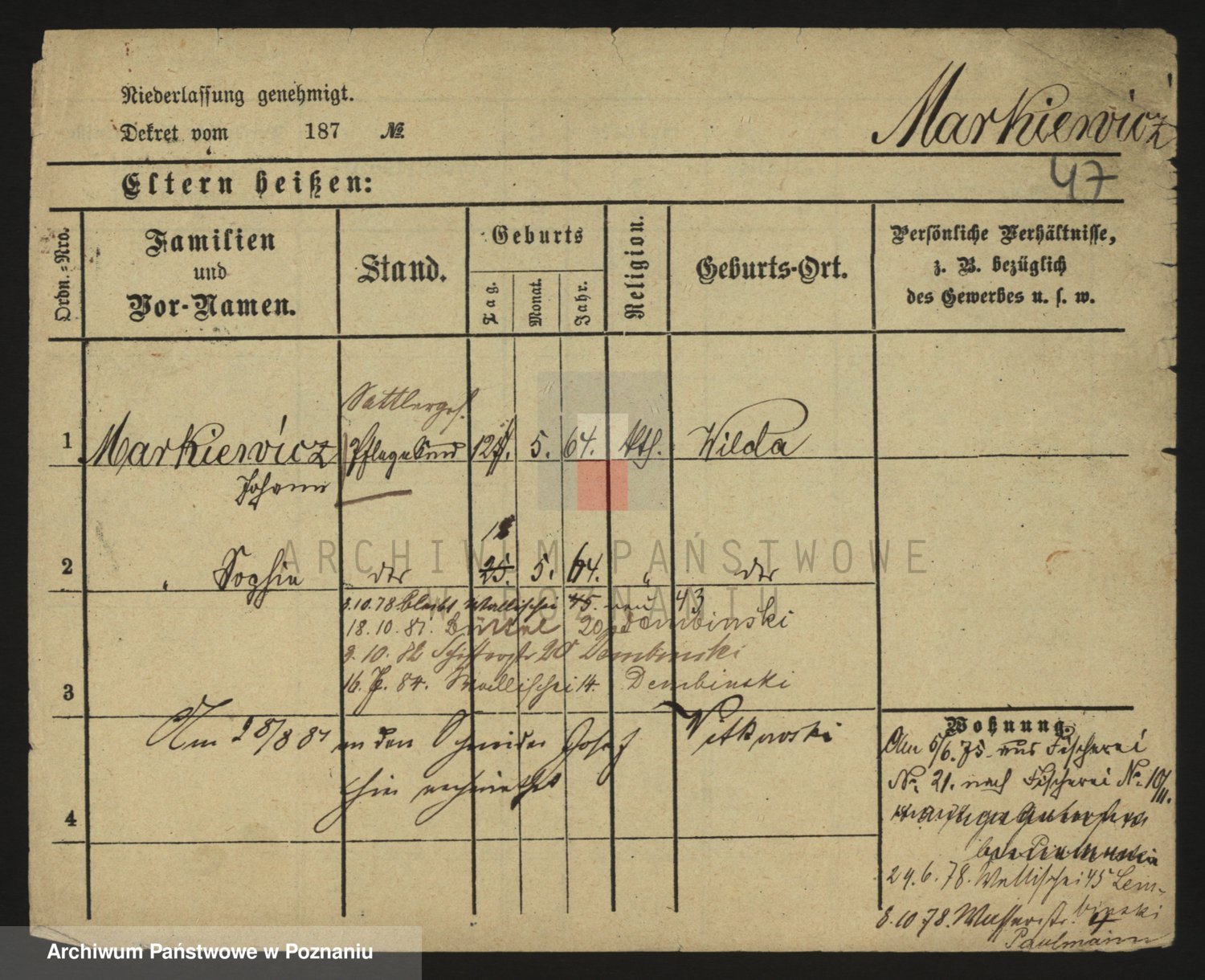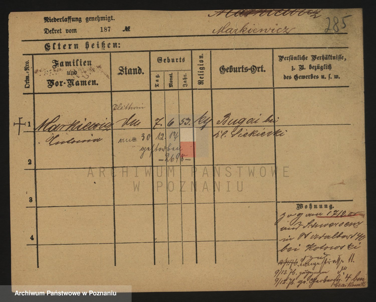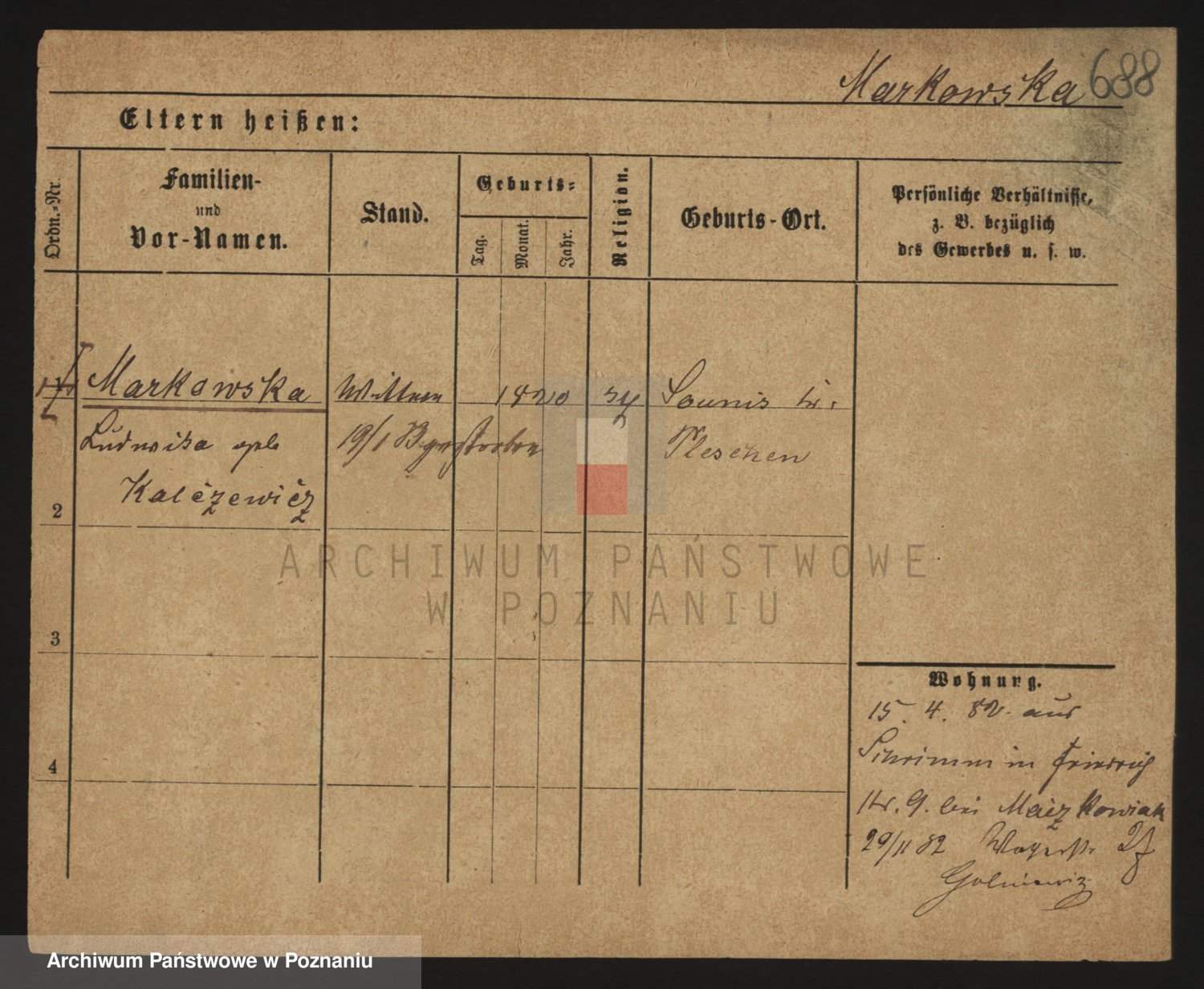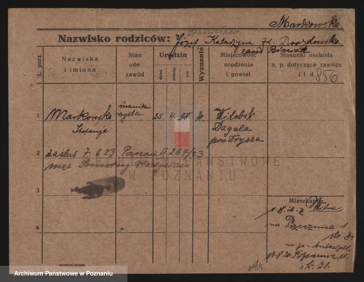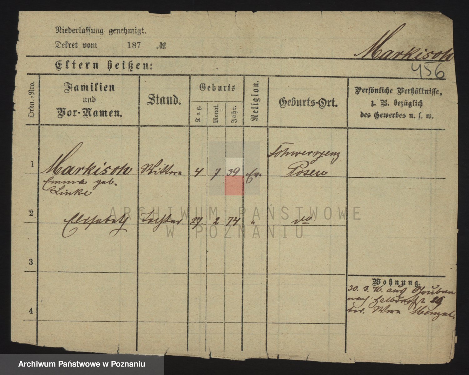 Markiewicz zd. Kopinska Iv. Schmidt IIv. Lonc, Magdalene