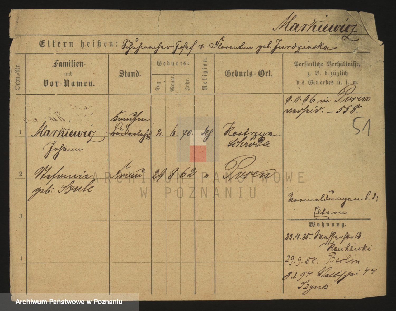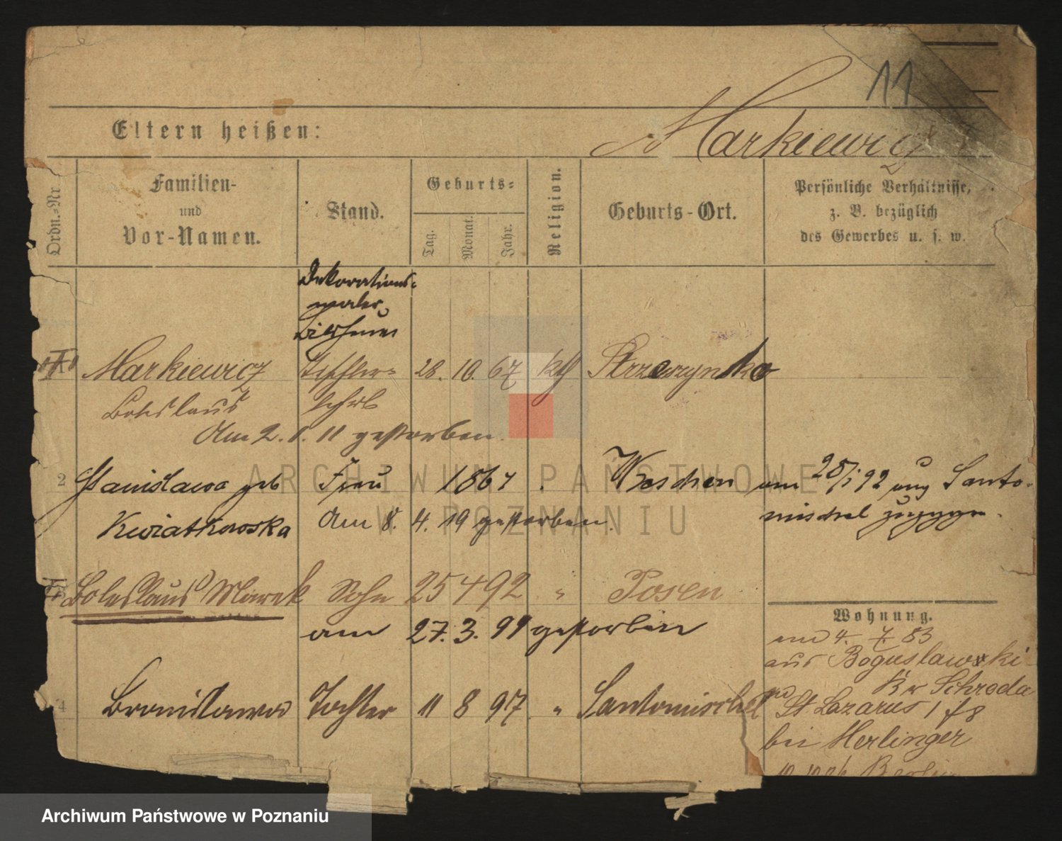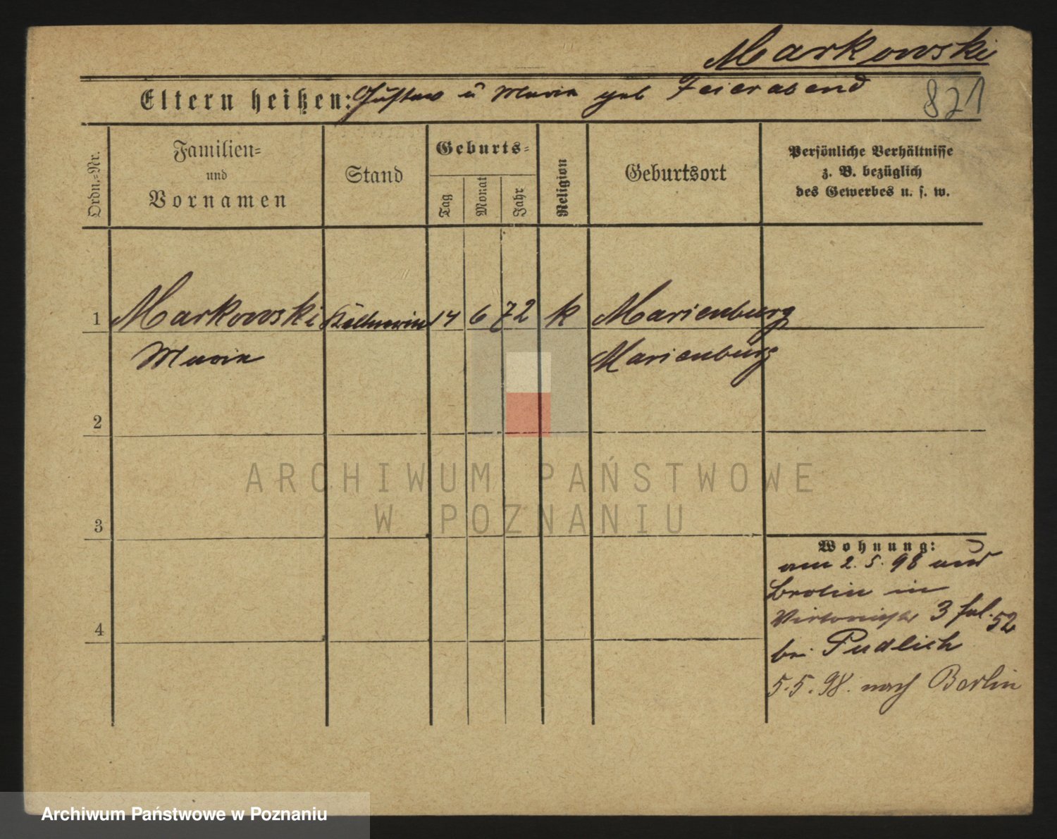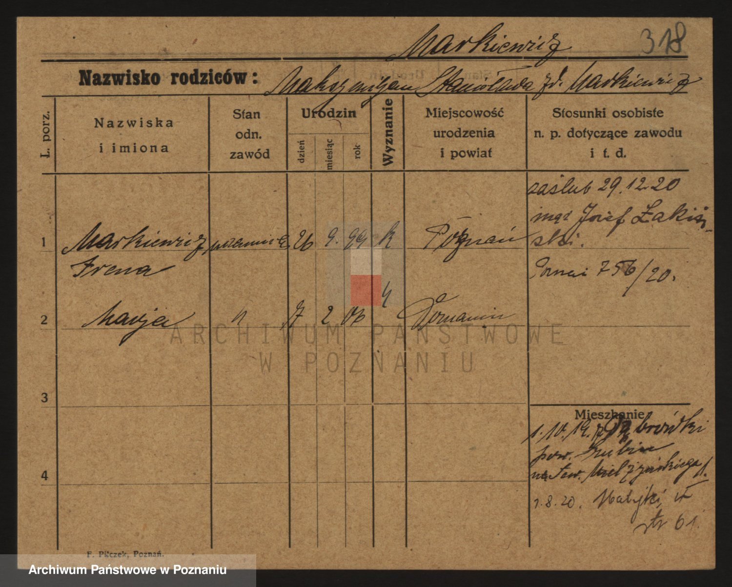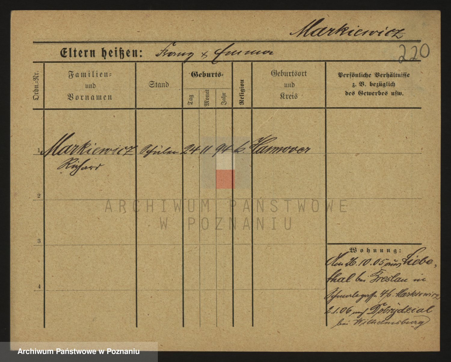 Markiewicz zd. Kopinska Iv. Schmidt IIv. Lonc, Magdalene