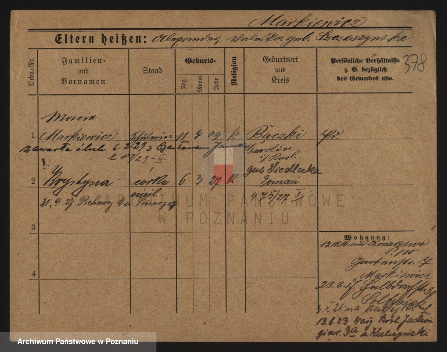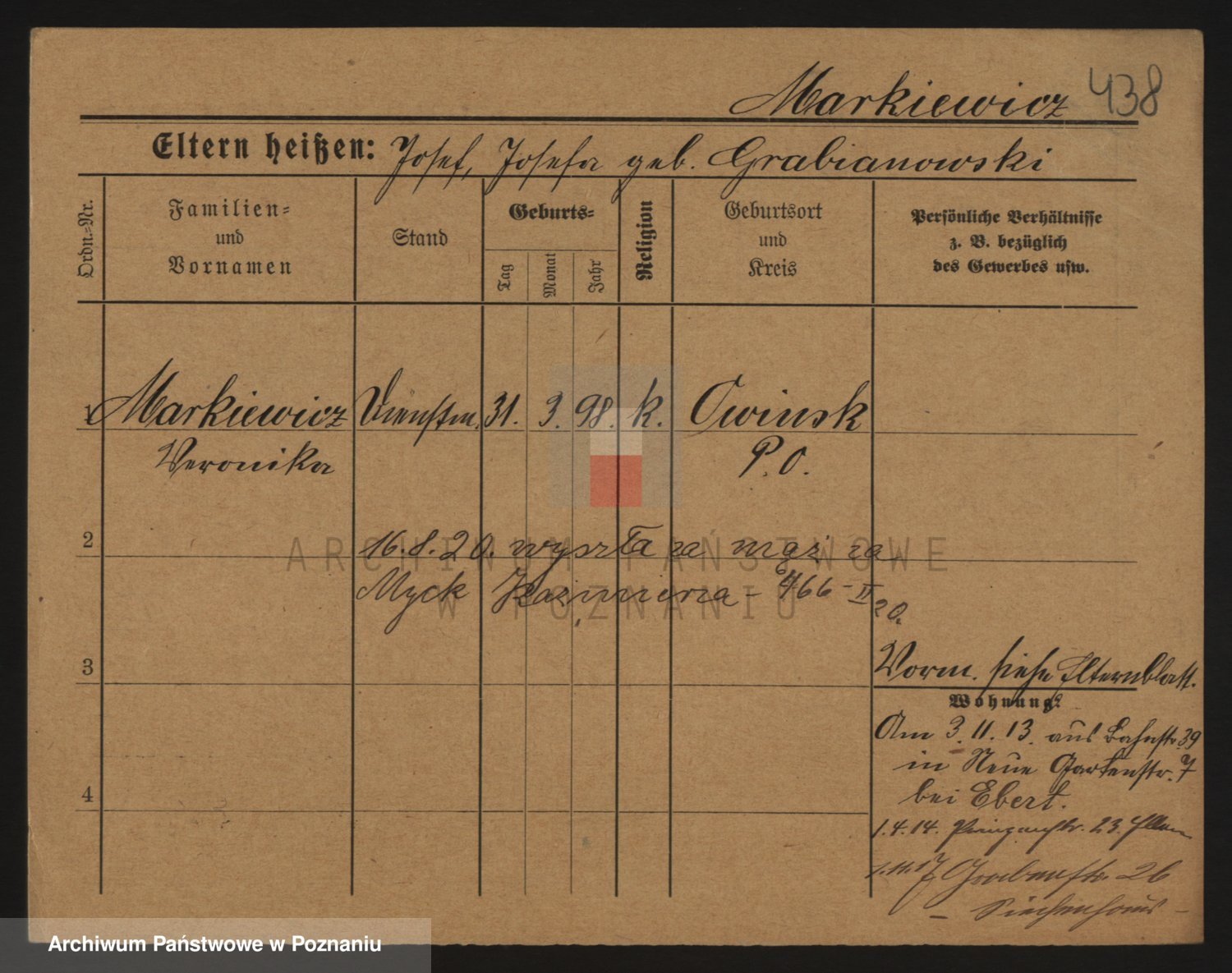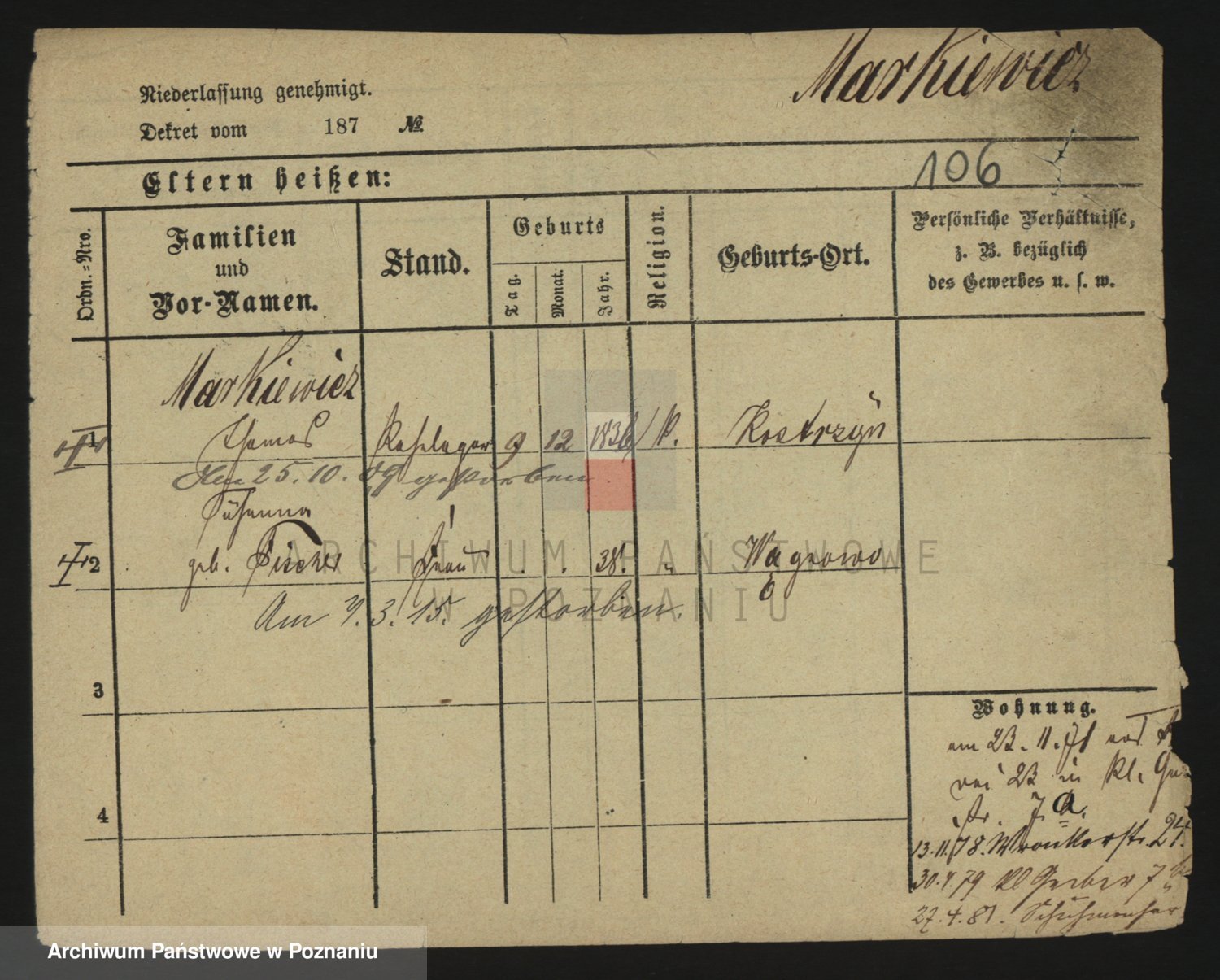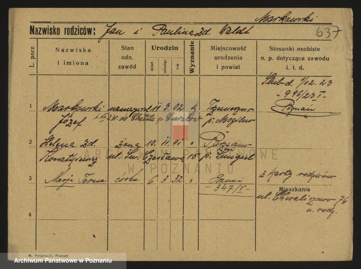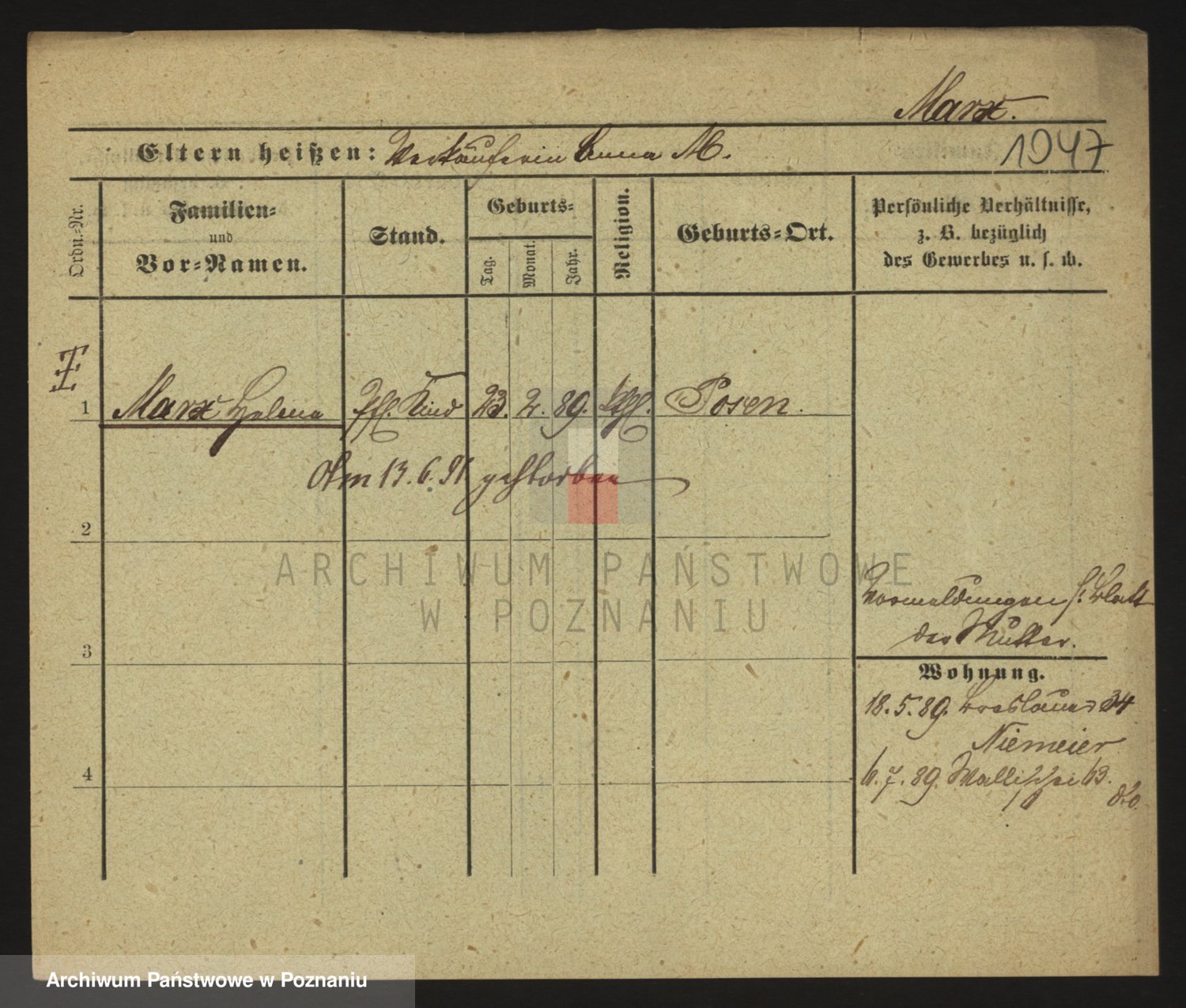 Markiewicz zd. Kopinska Iv. Schmidt IIv. Lonc, Magdalene