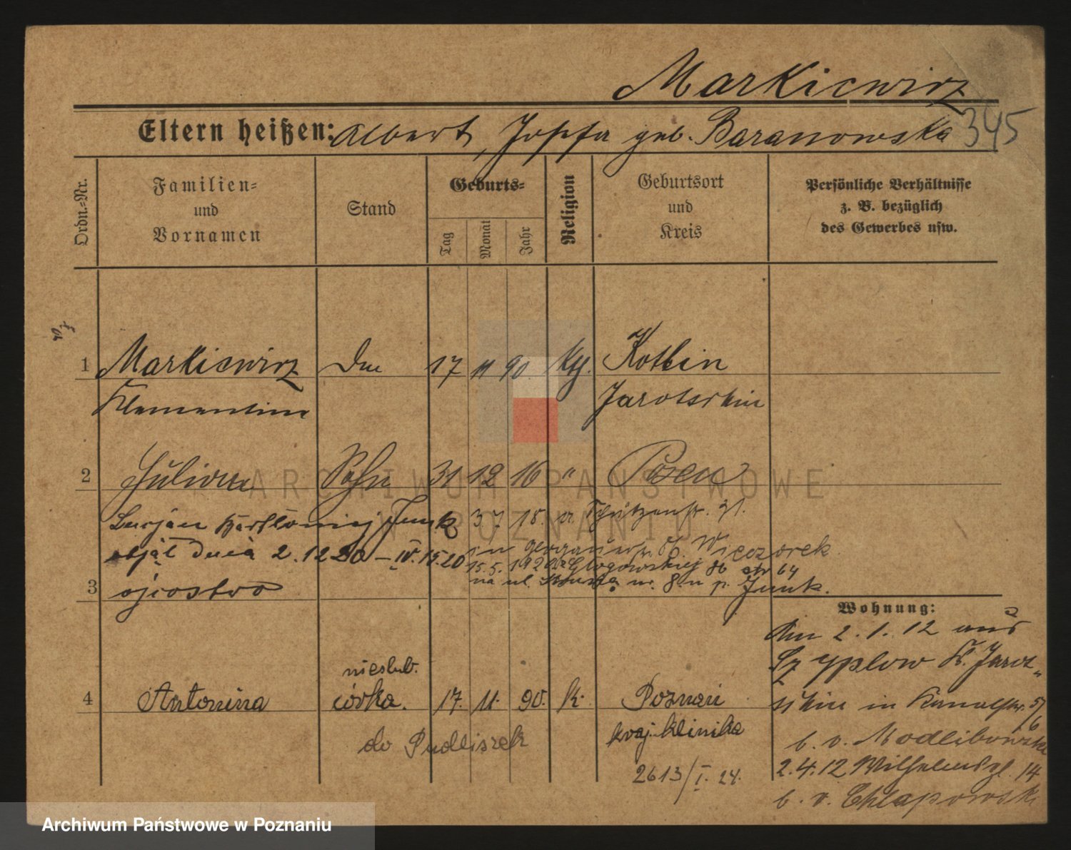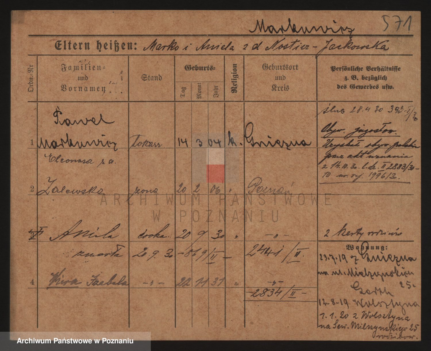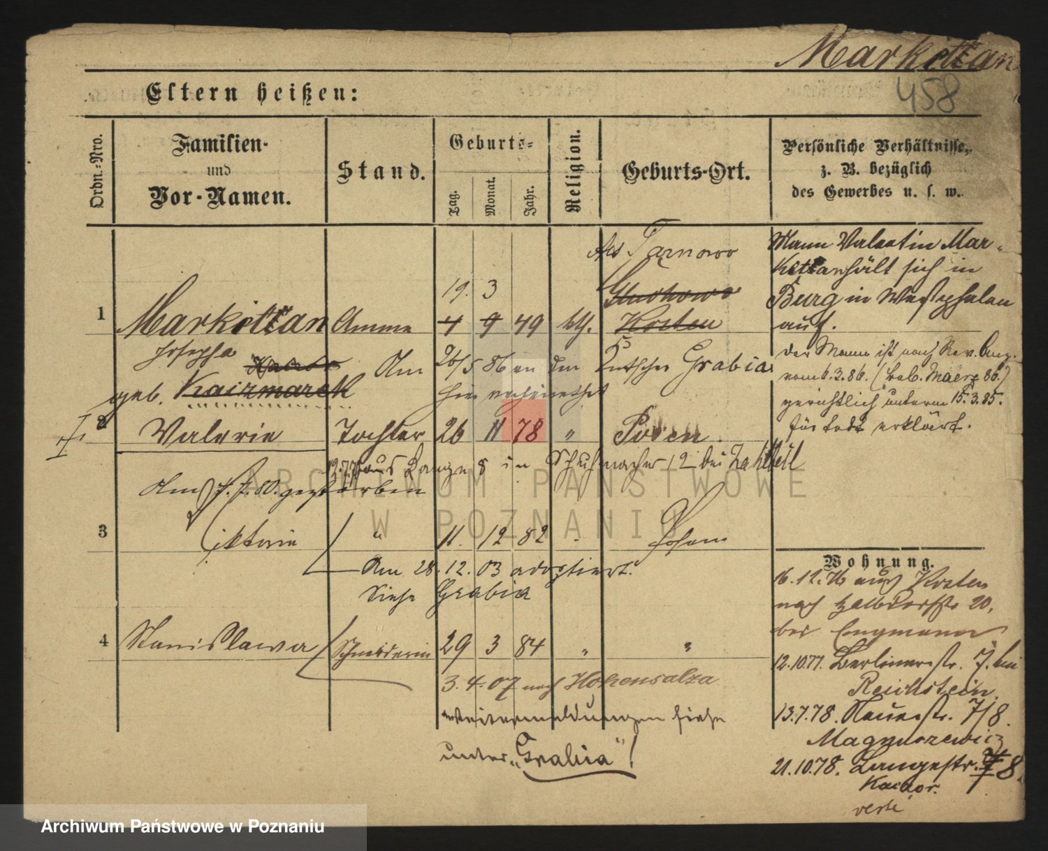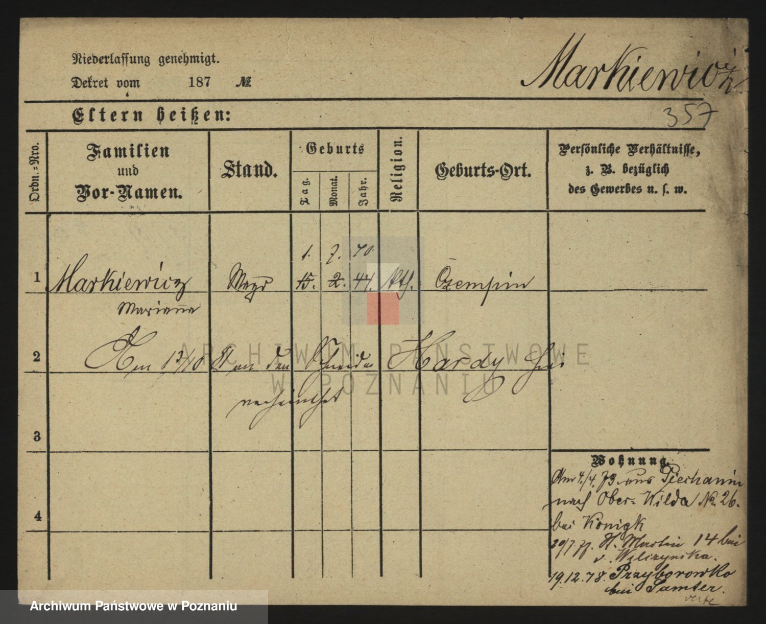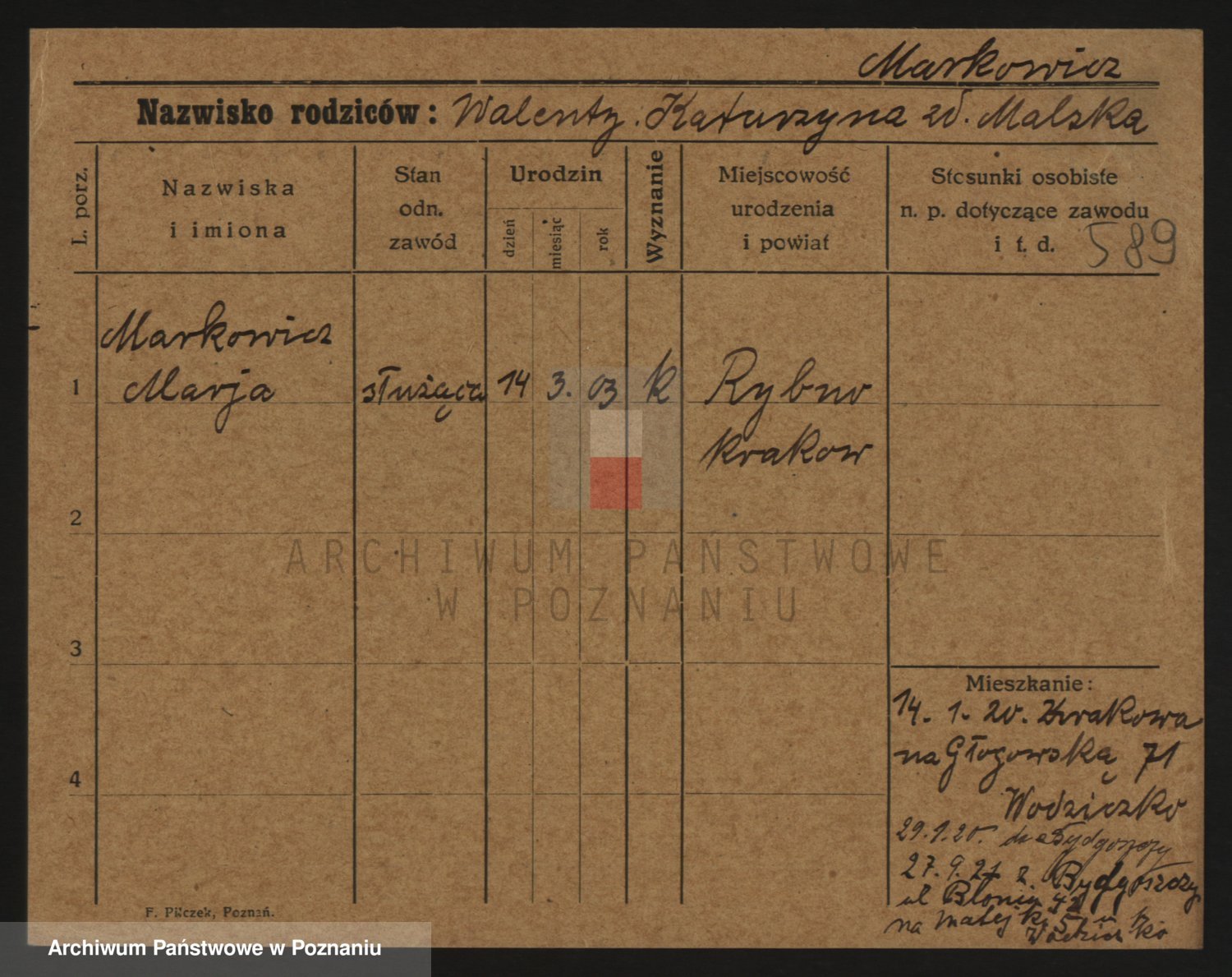 Markiewicz zd. Kopinska Iv. Schmidt IIv. Lonc, Magdalene