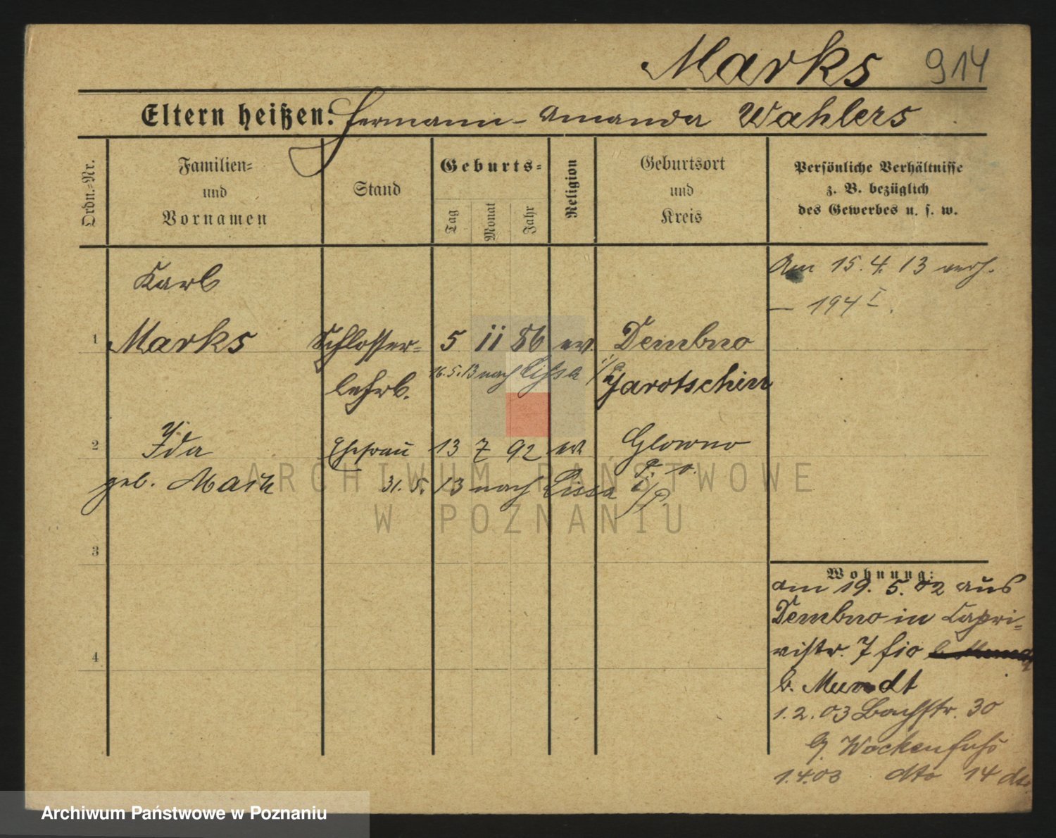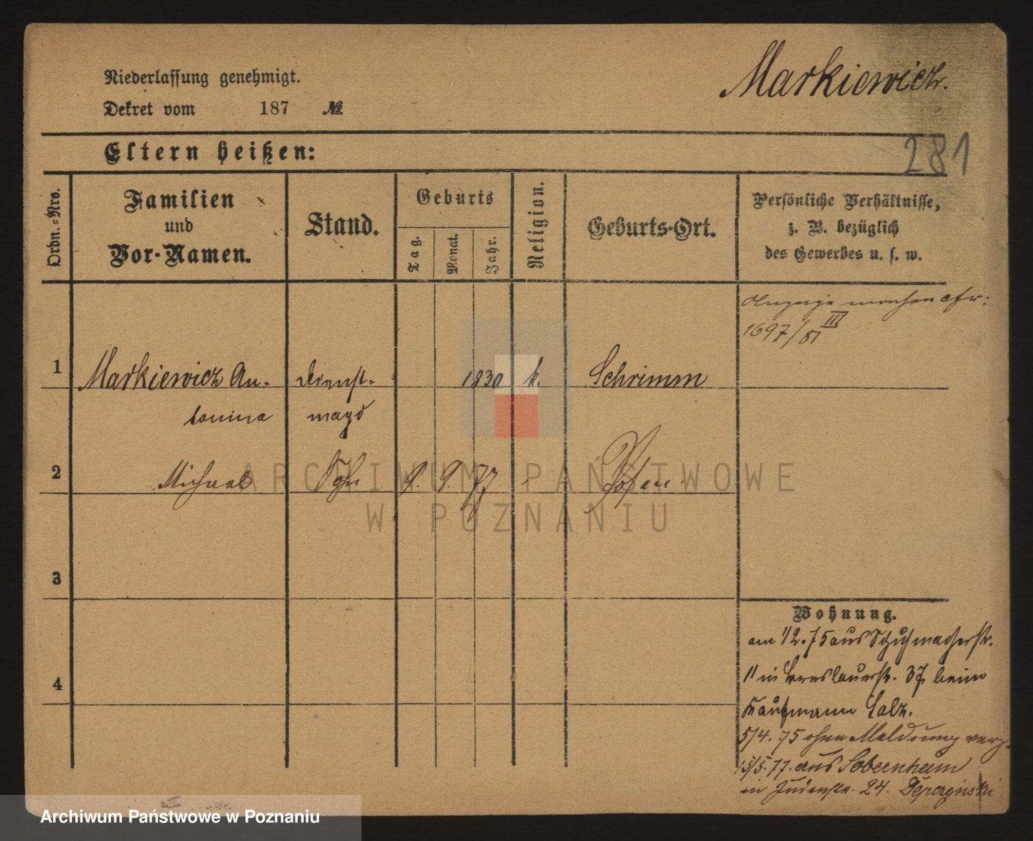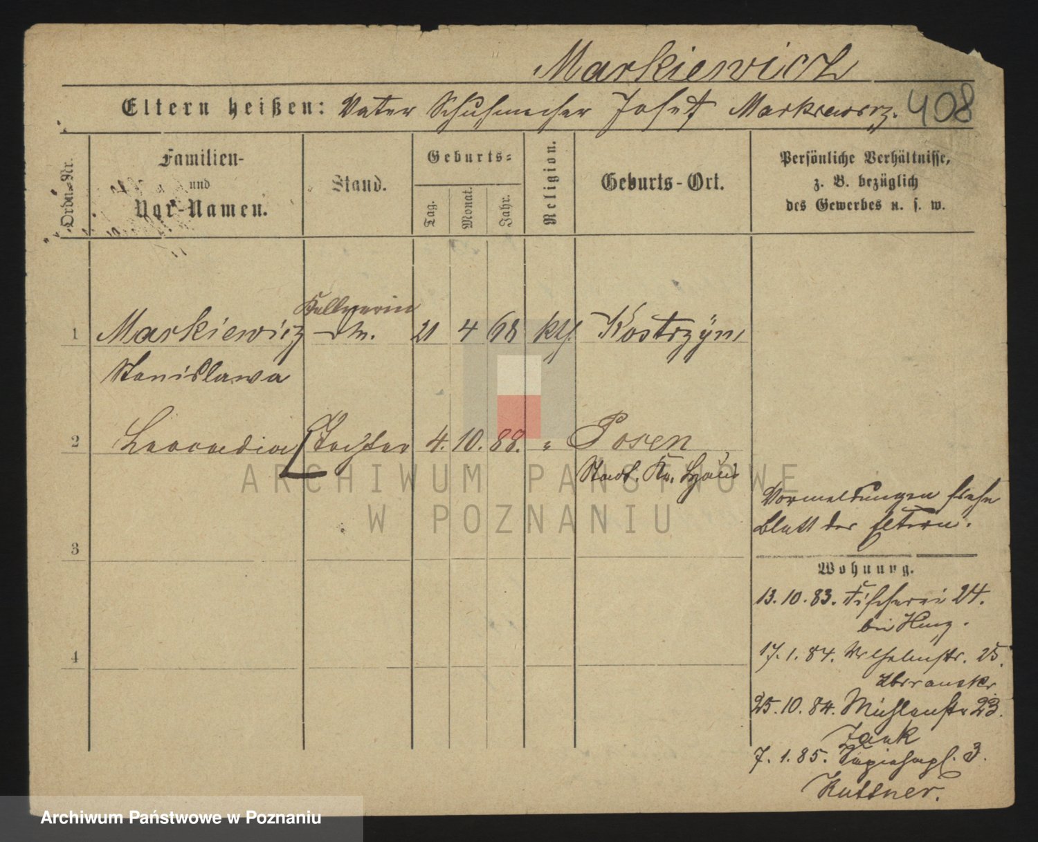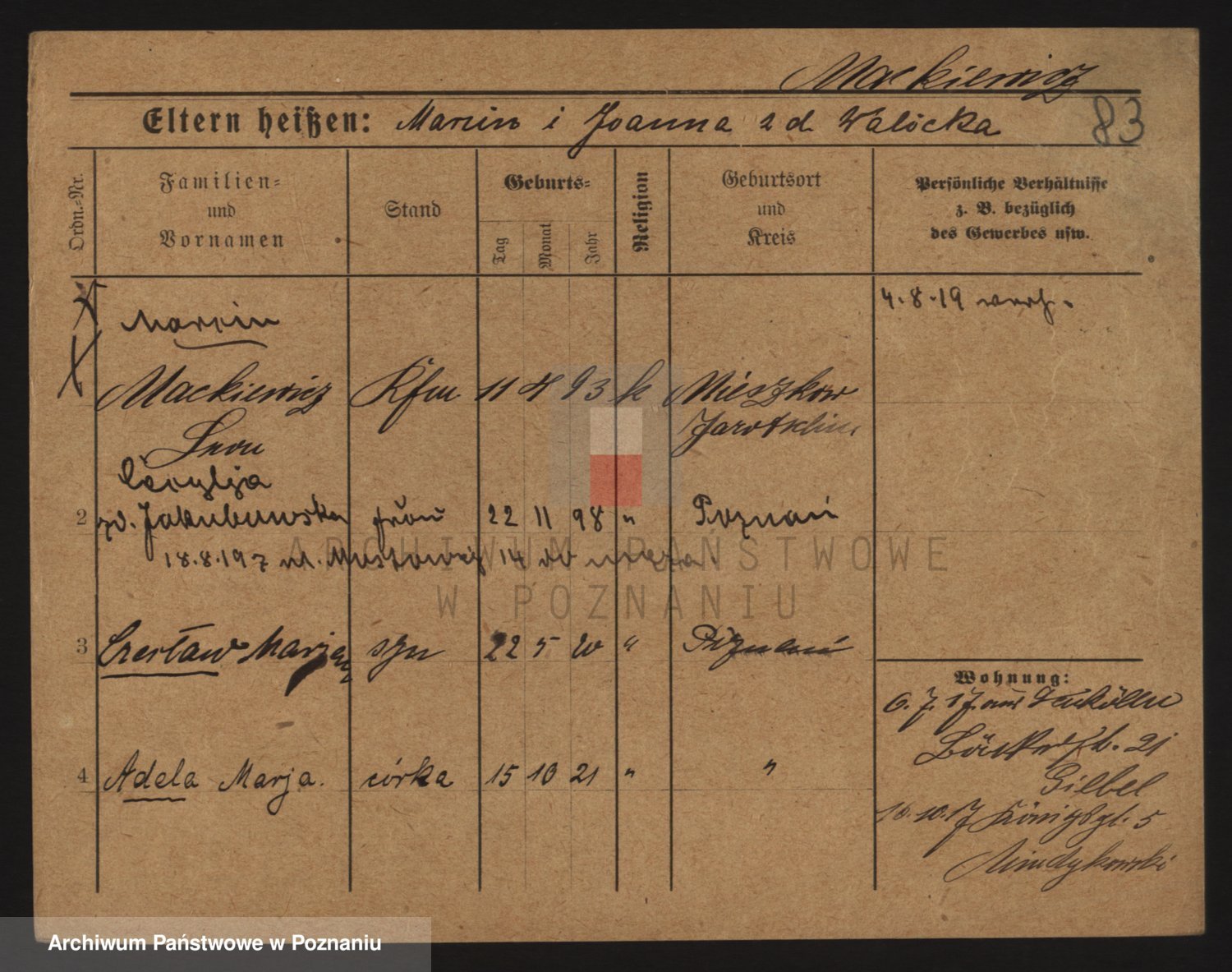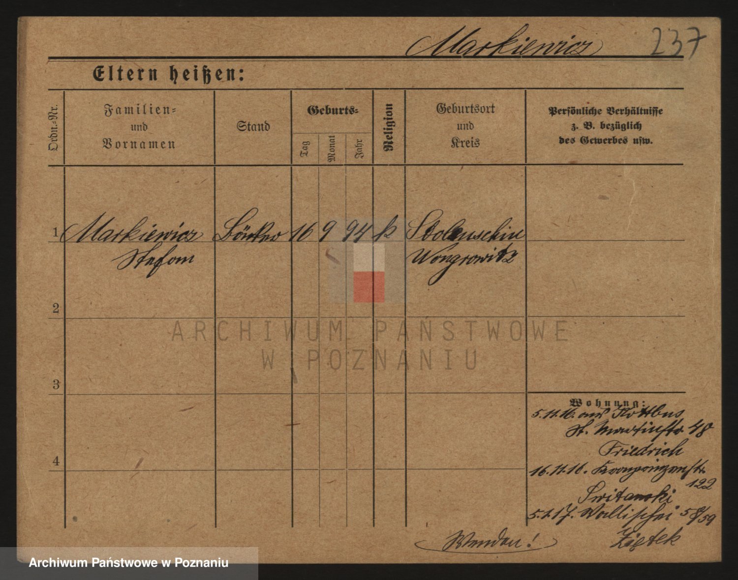 Markiewicz zd. Kopinska Iv. Schmidt IIv. Lonc, Magdalene