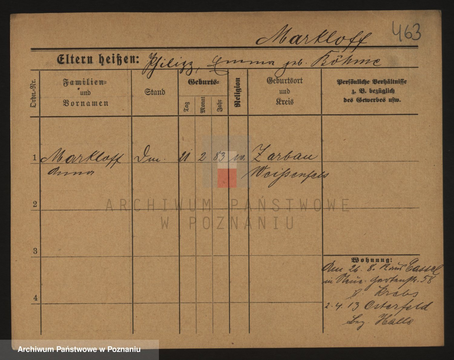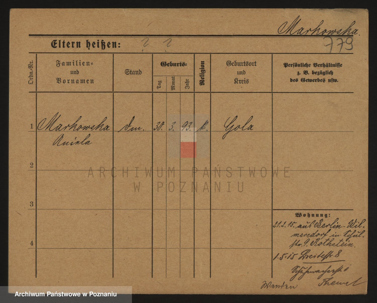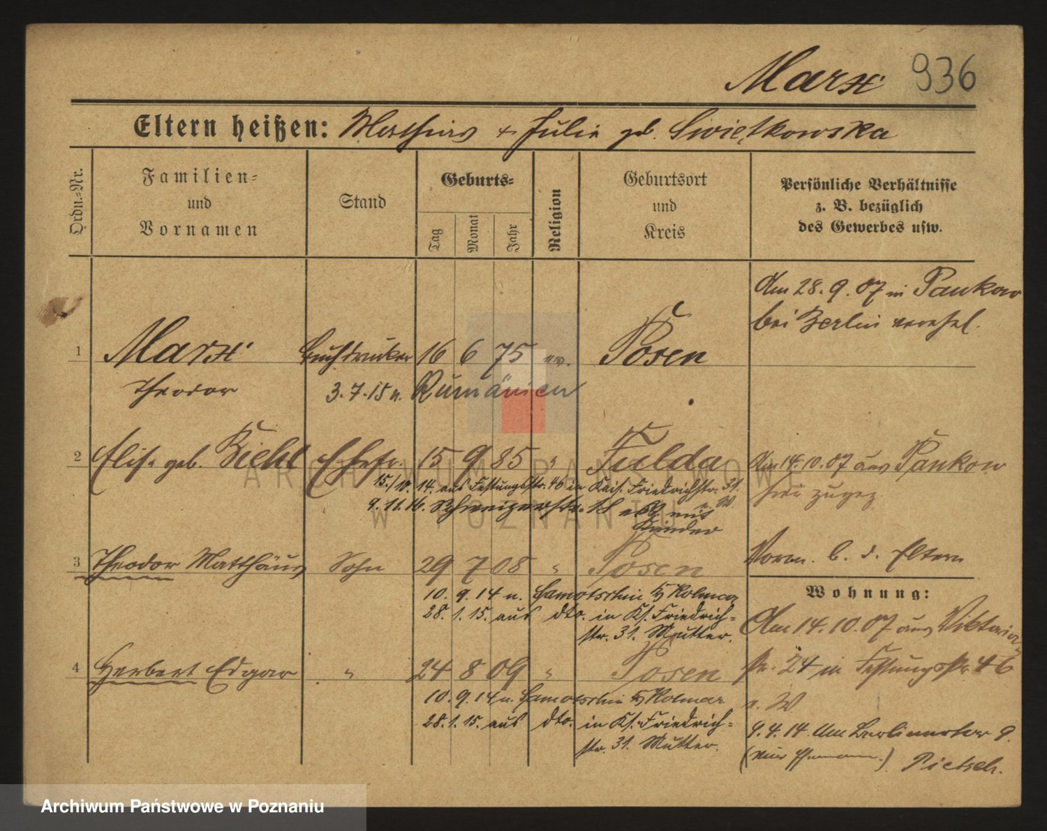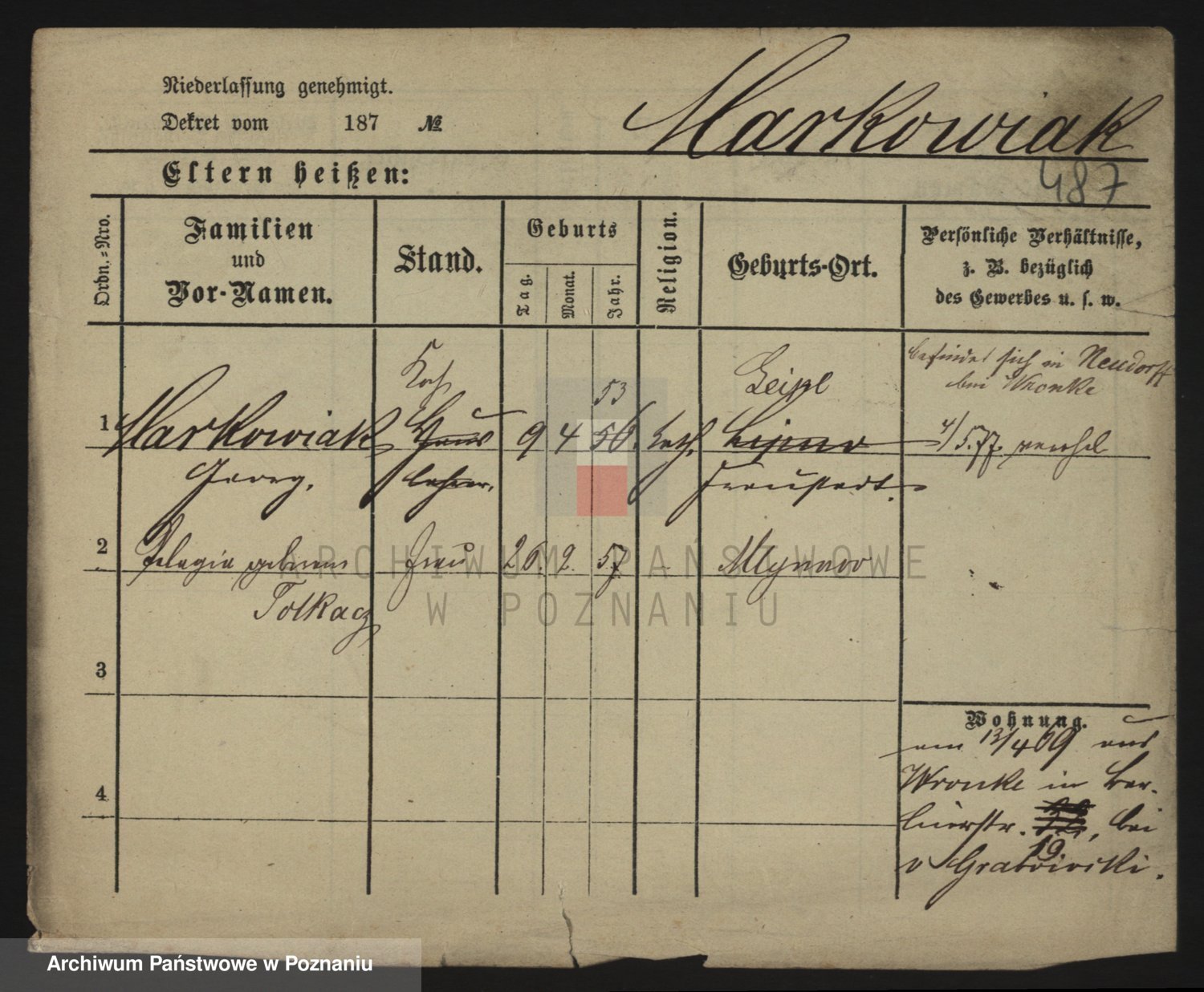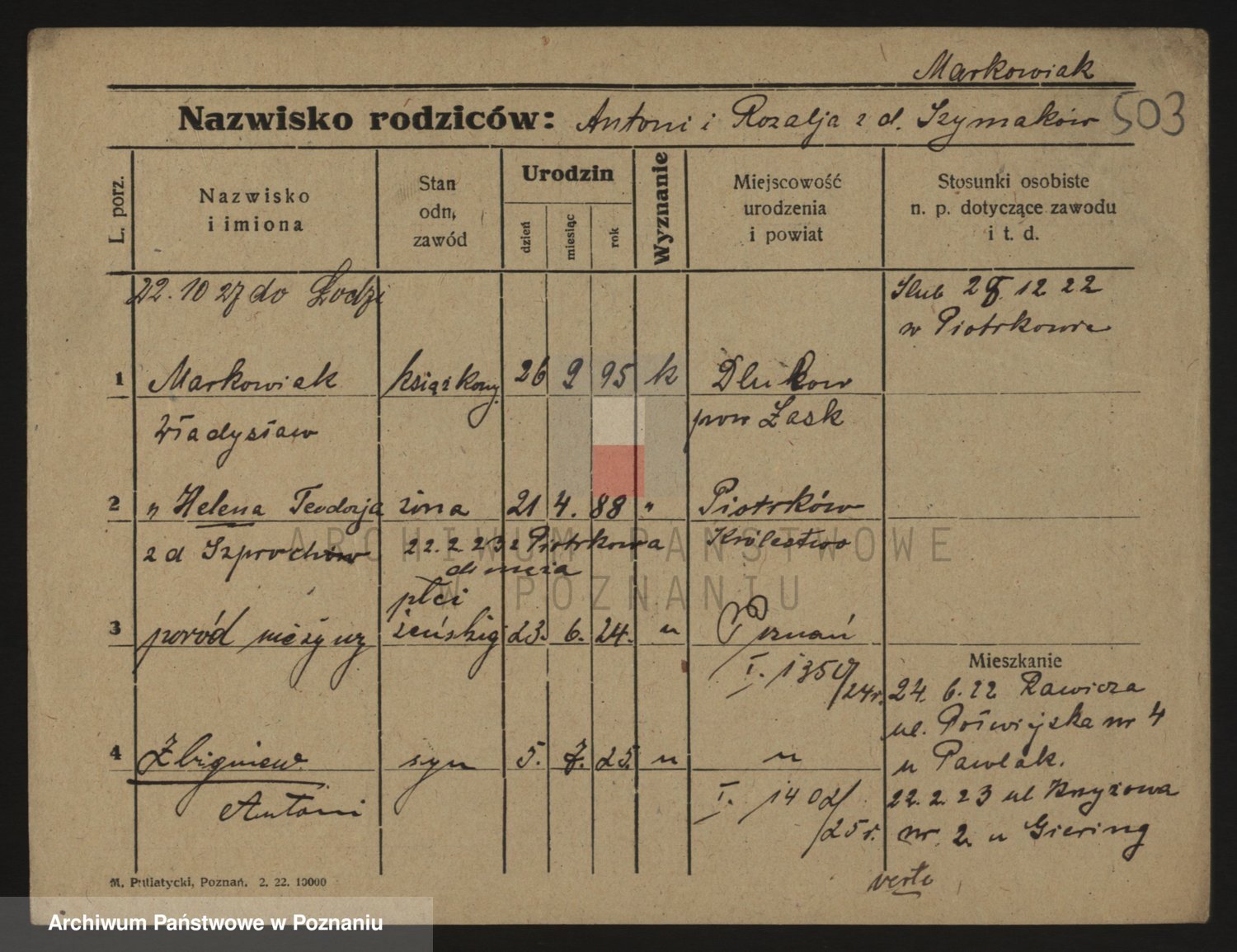 Markiewicz zd. Kopinska Iv. Schmidt IIv. Lonc, Magdalene