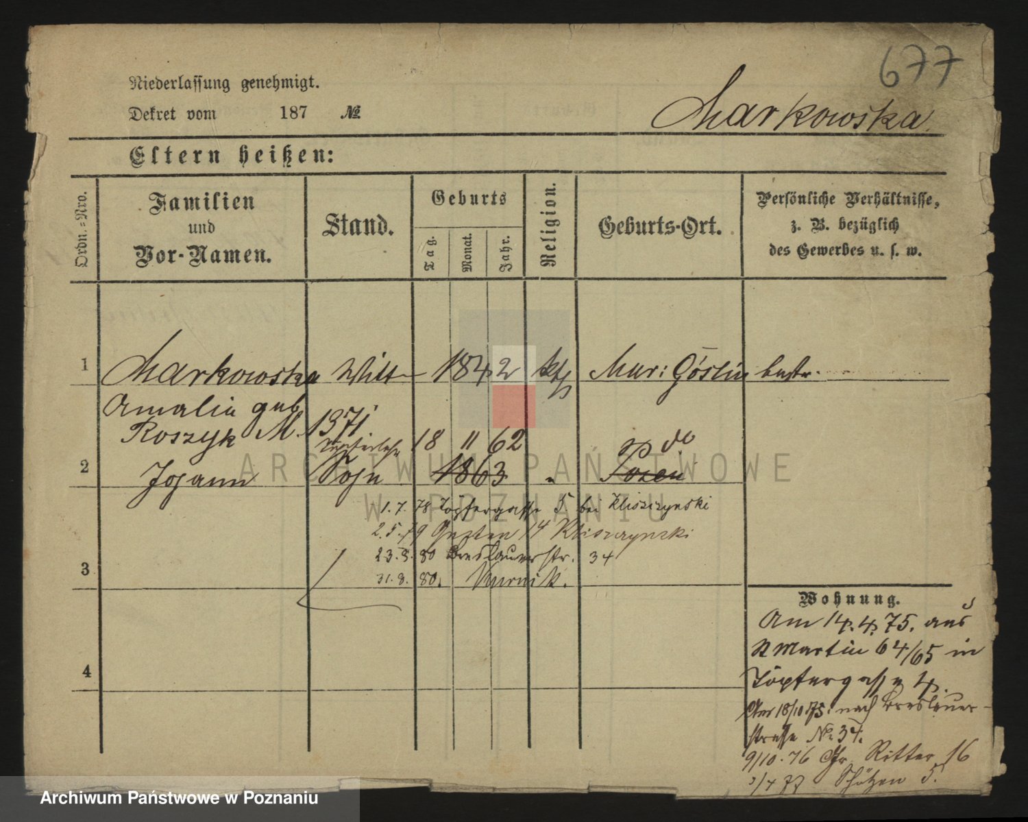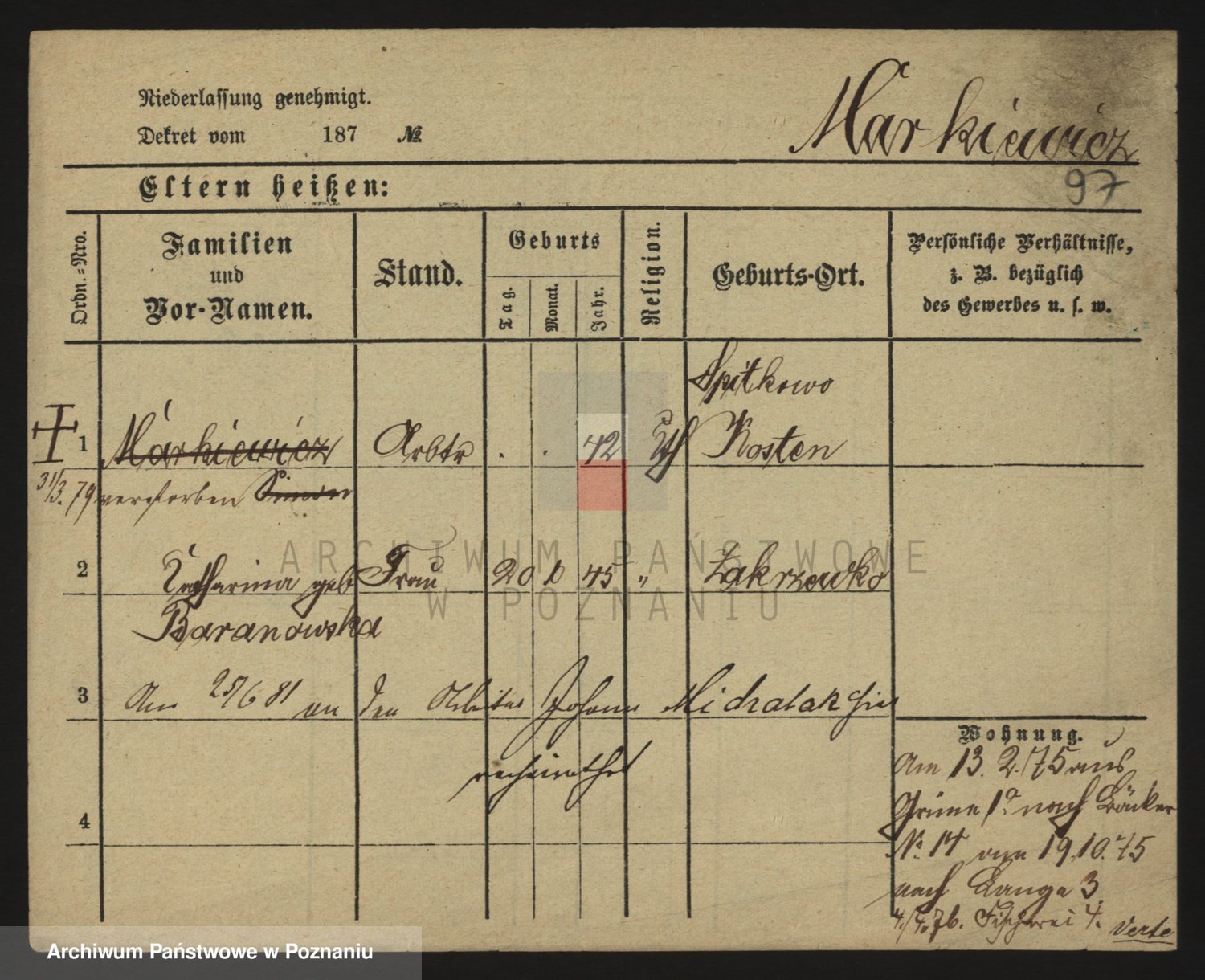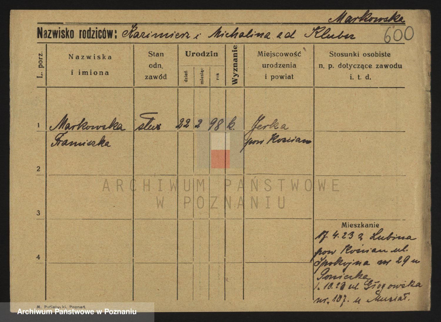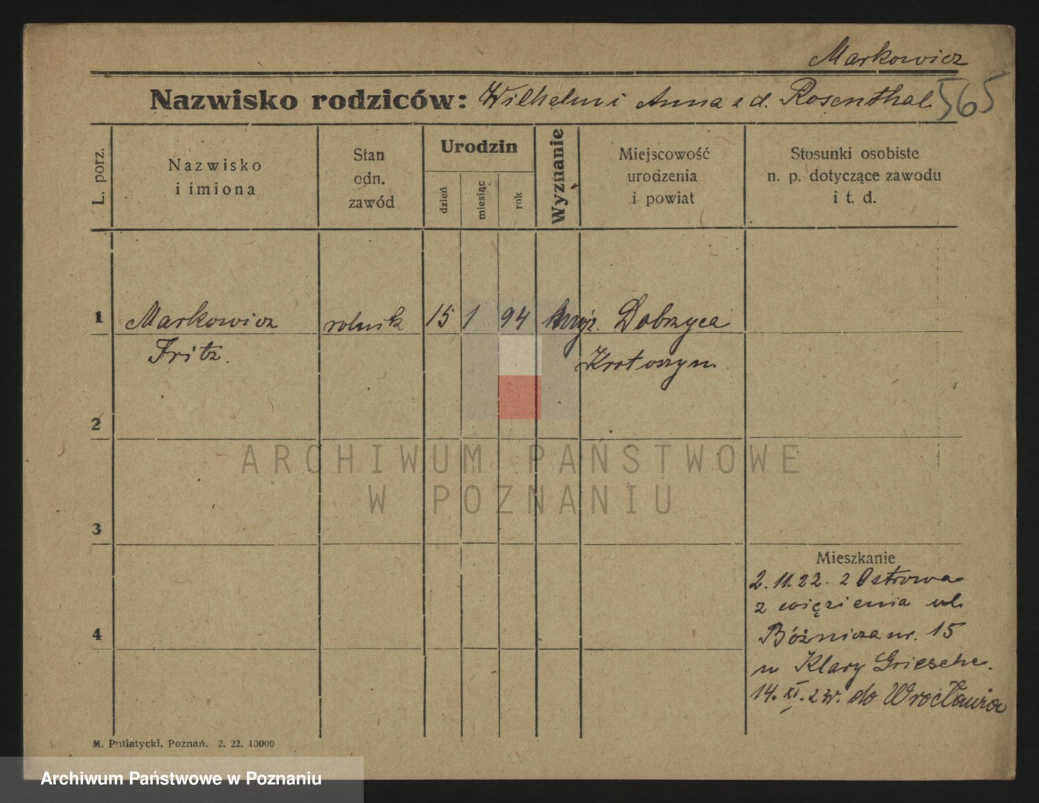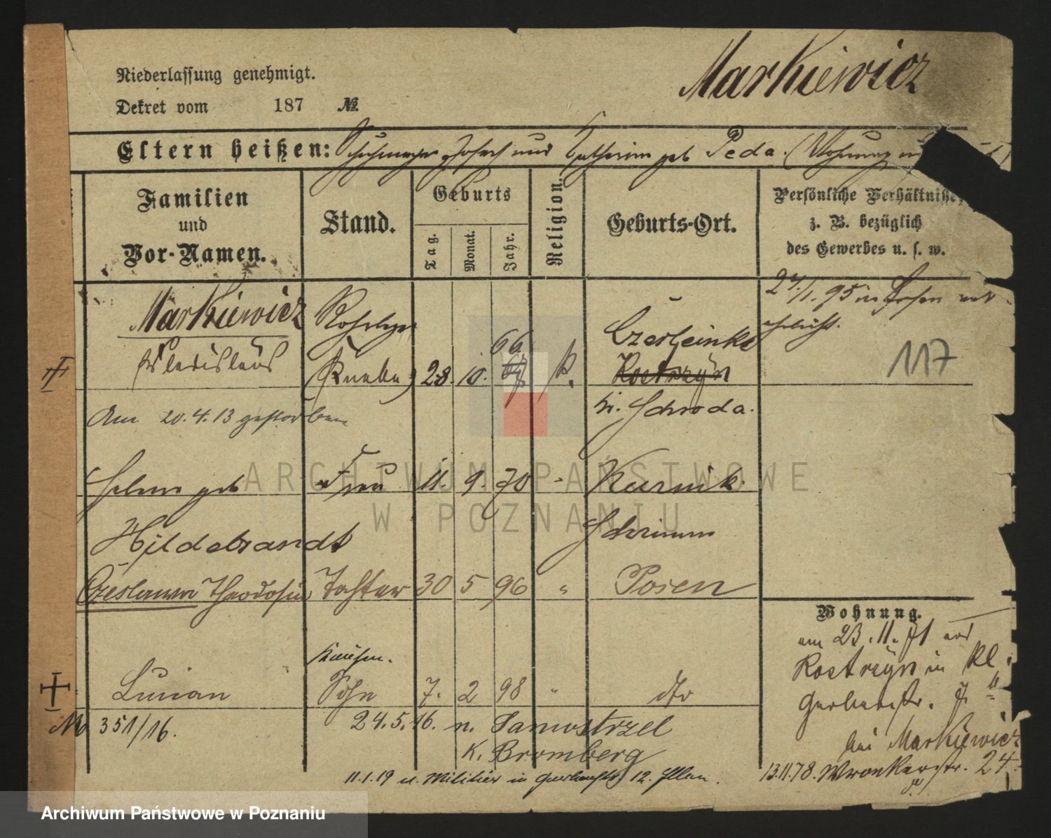Markiewicz zd. Kopinska Iv. Schmidt IIv. Lonc, Magdalene