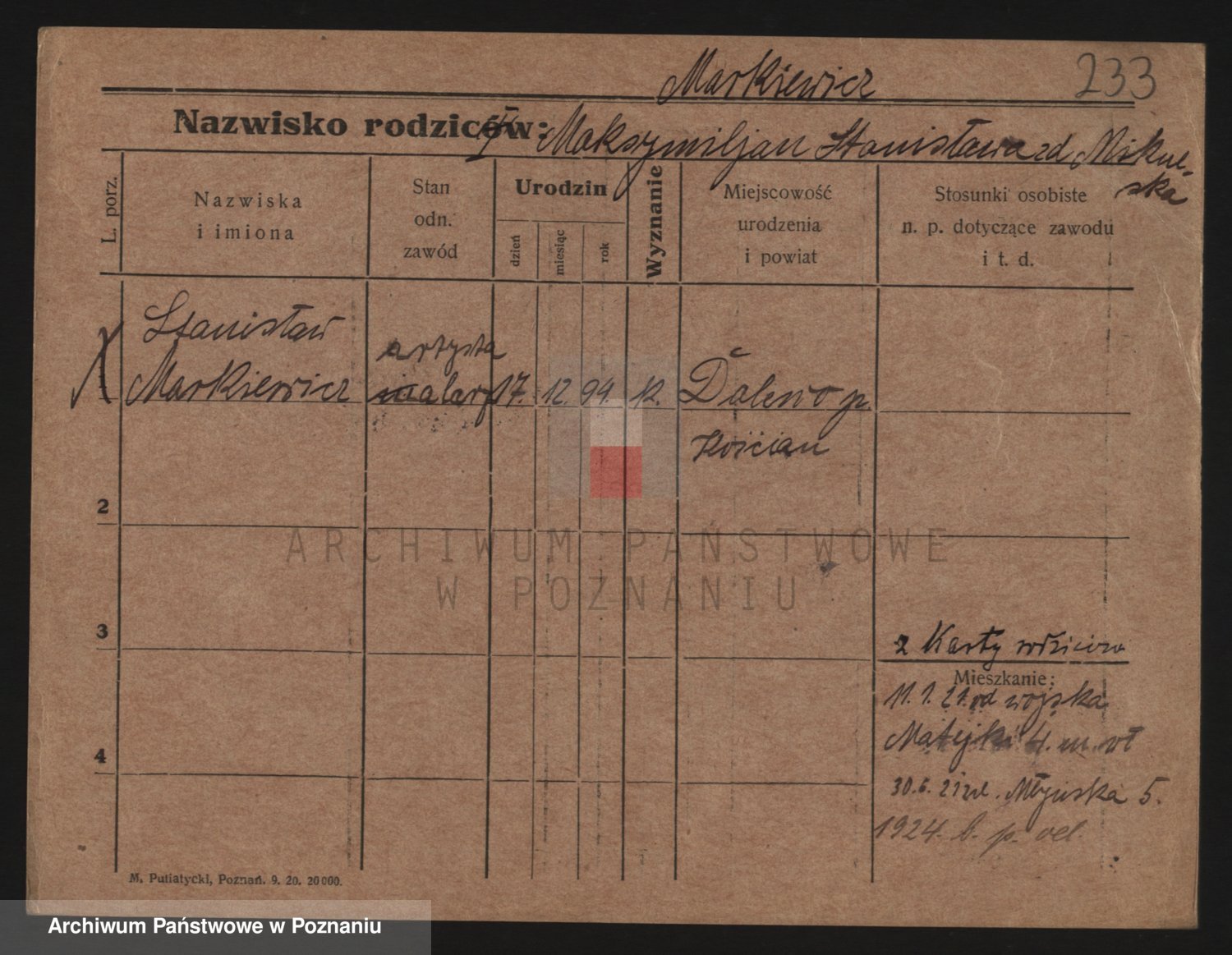 Markiewicz, Stanislaus