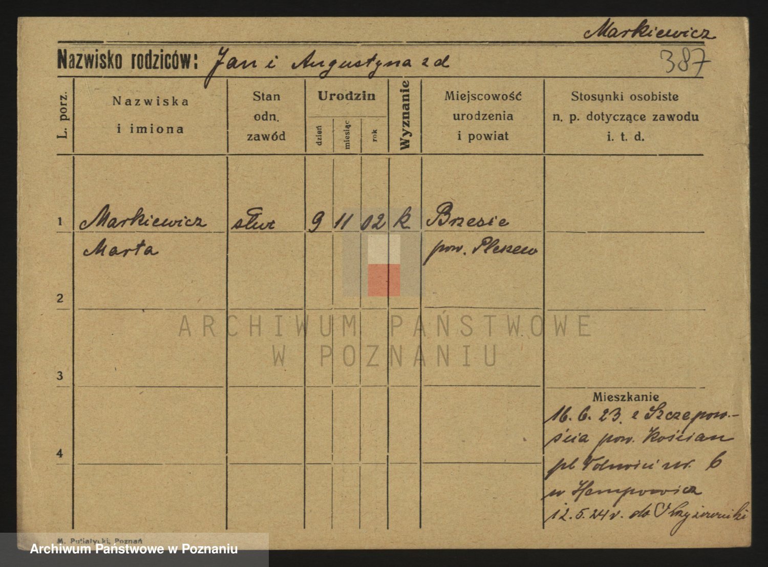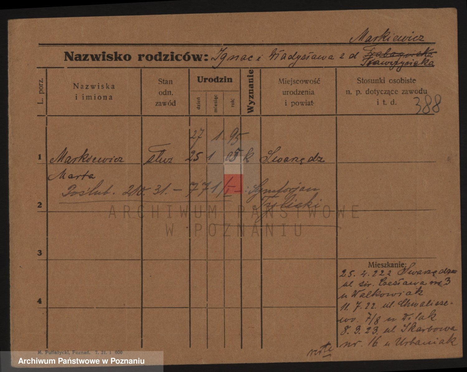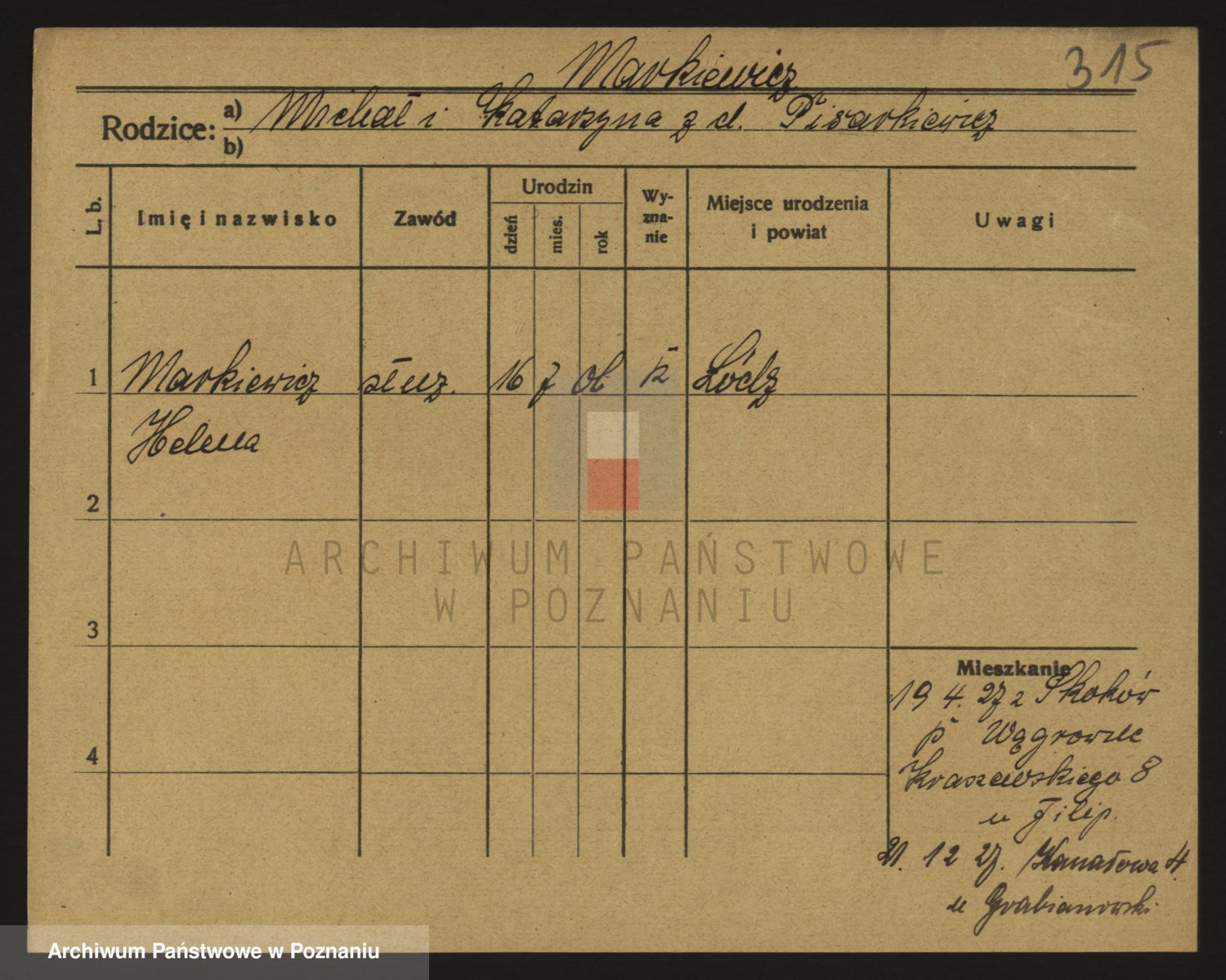 Markiewicz zd. Kwiatkowska, Stanislawa