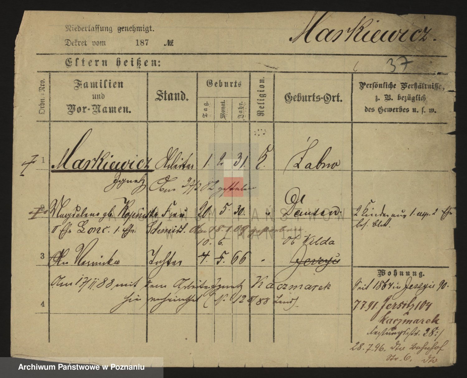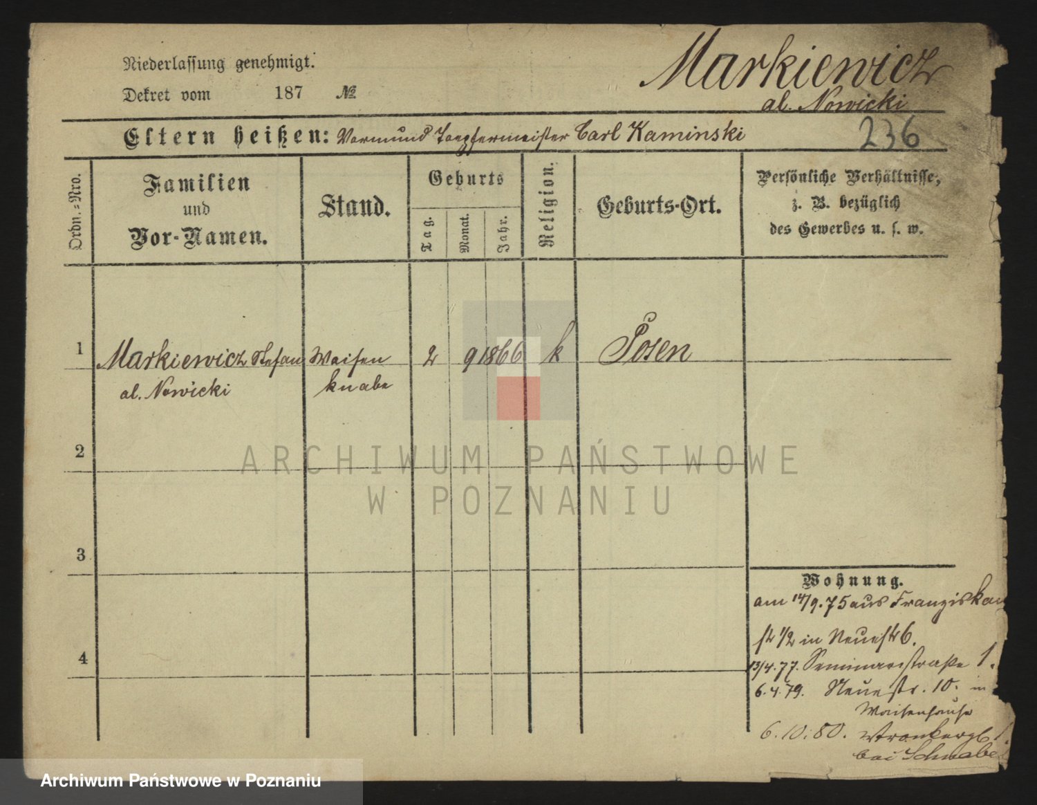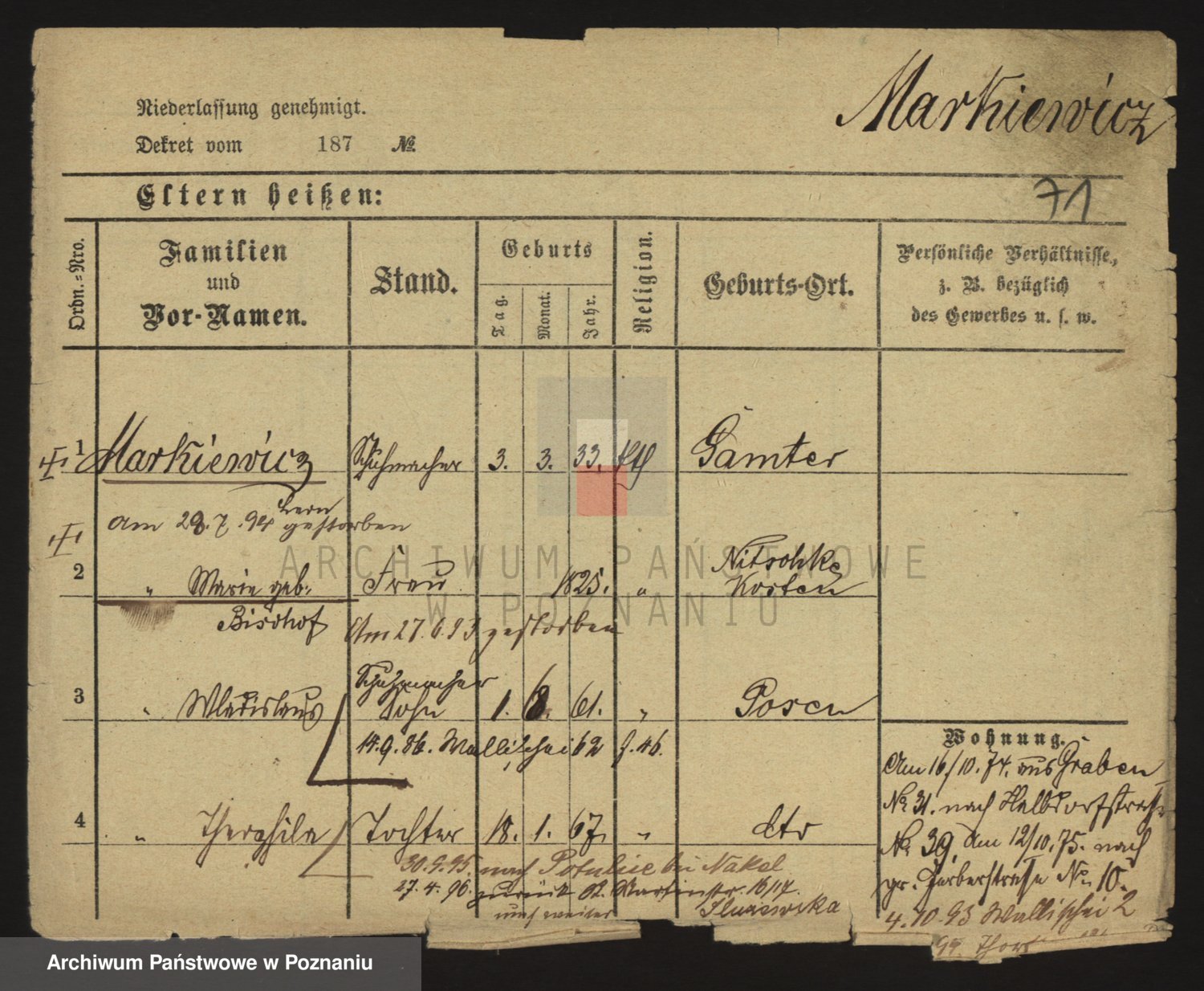 Markiewicz, Johann Witold Adam