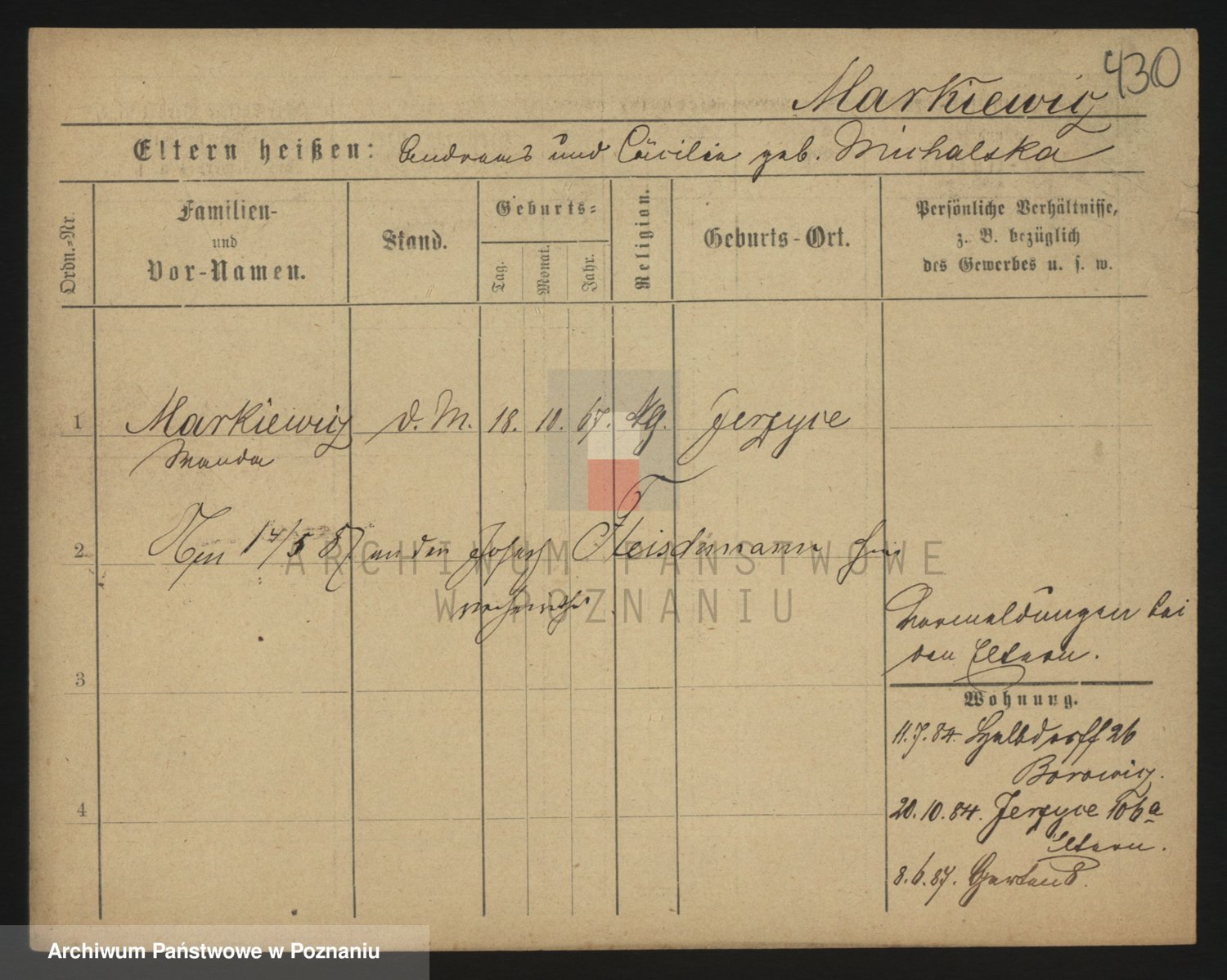 Markiewicz zd. Michalska, Cäcilie