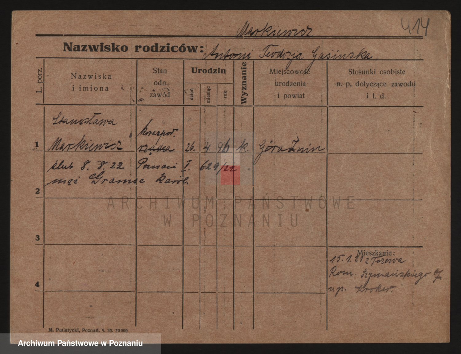 Markiewicz zd. Gasinska, Theodosia