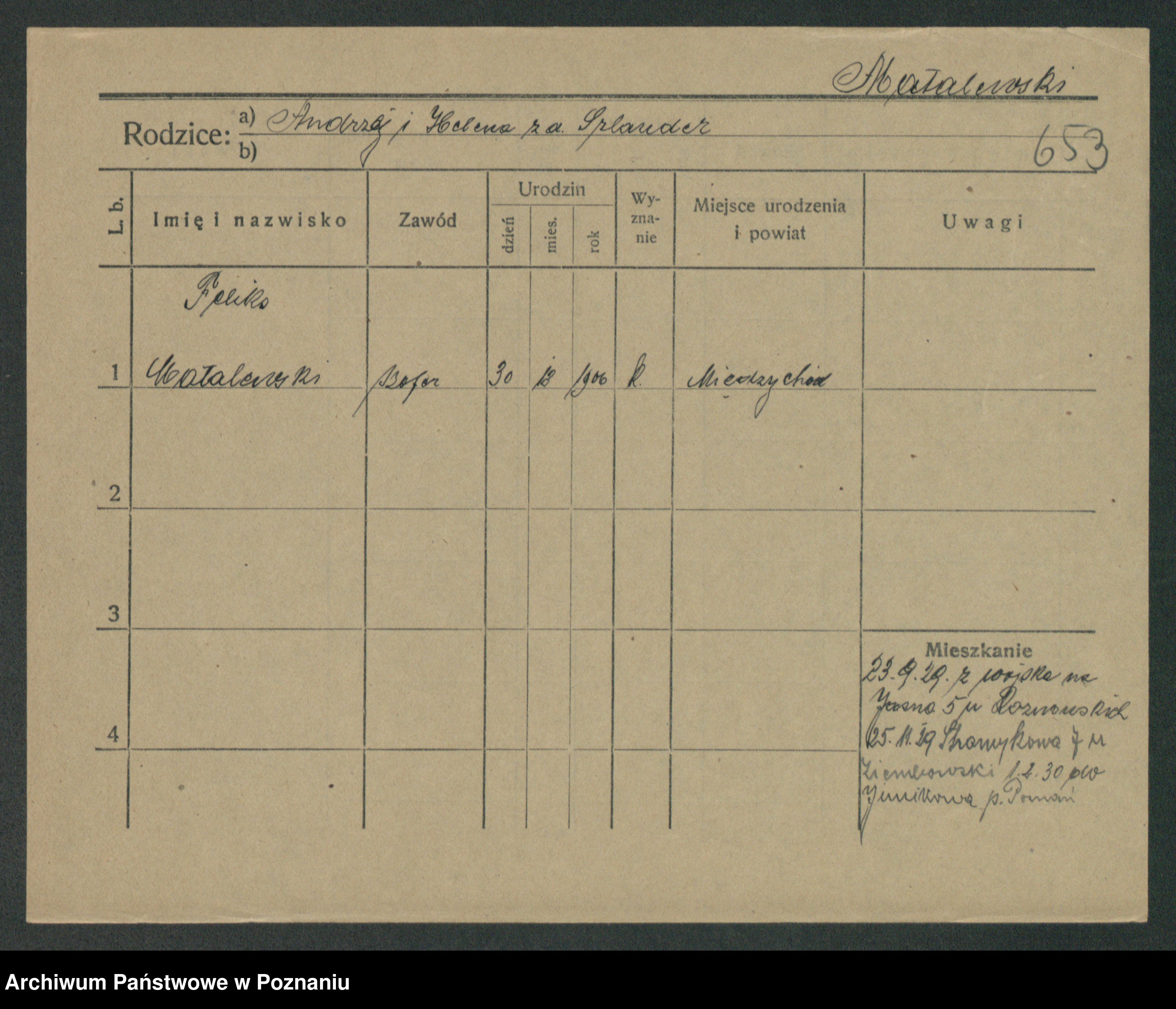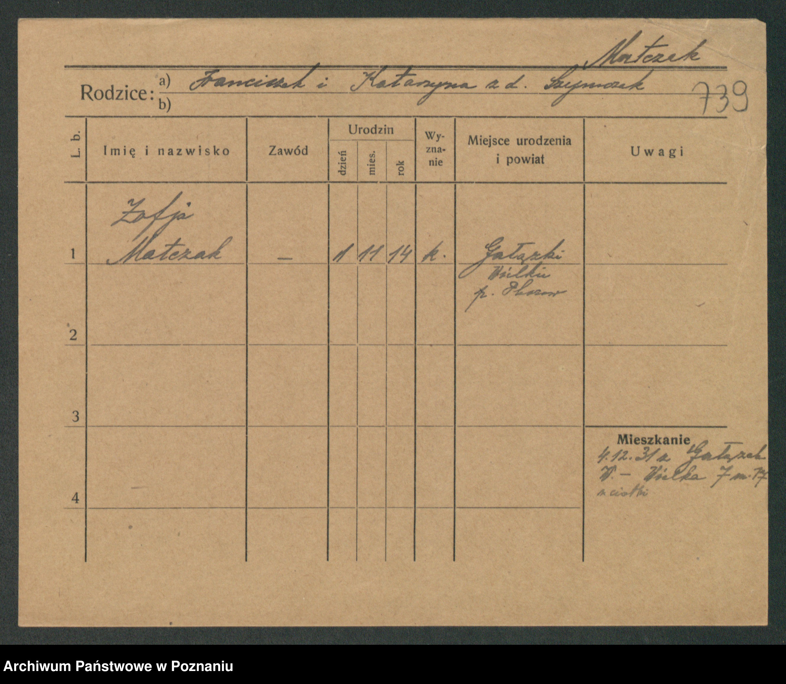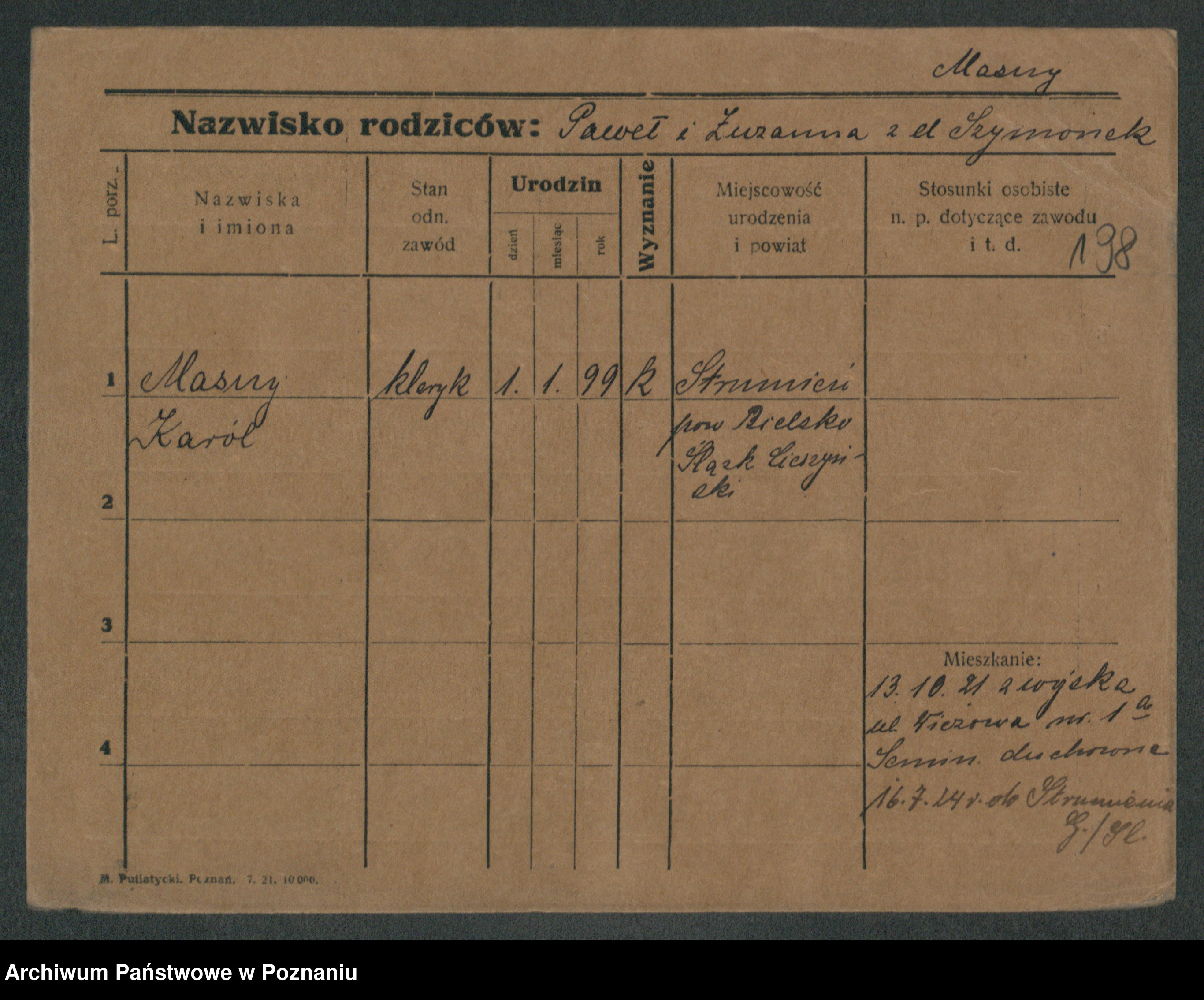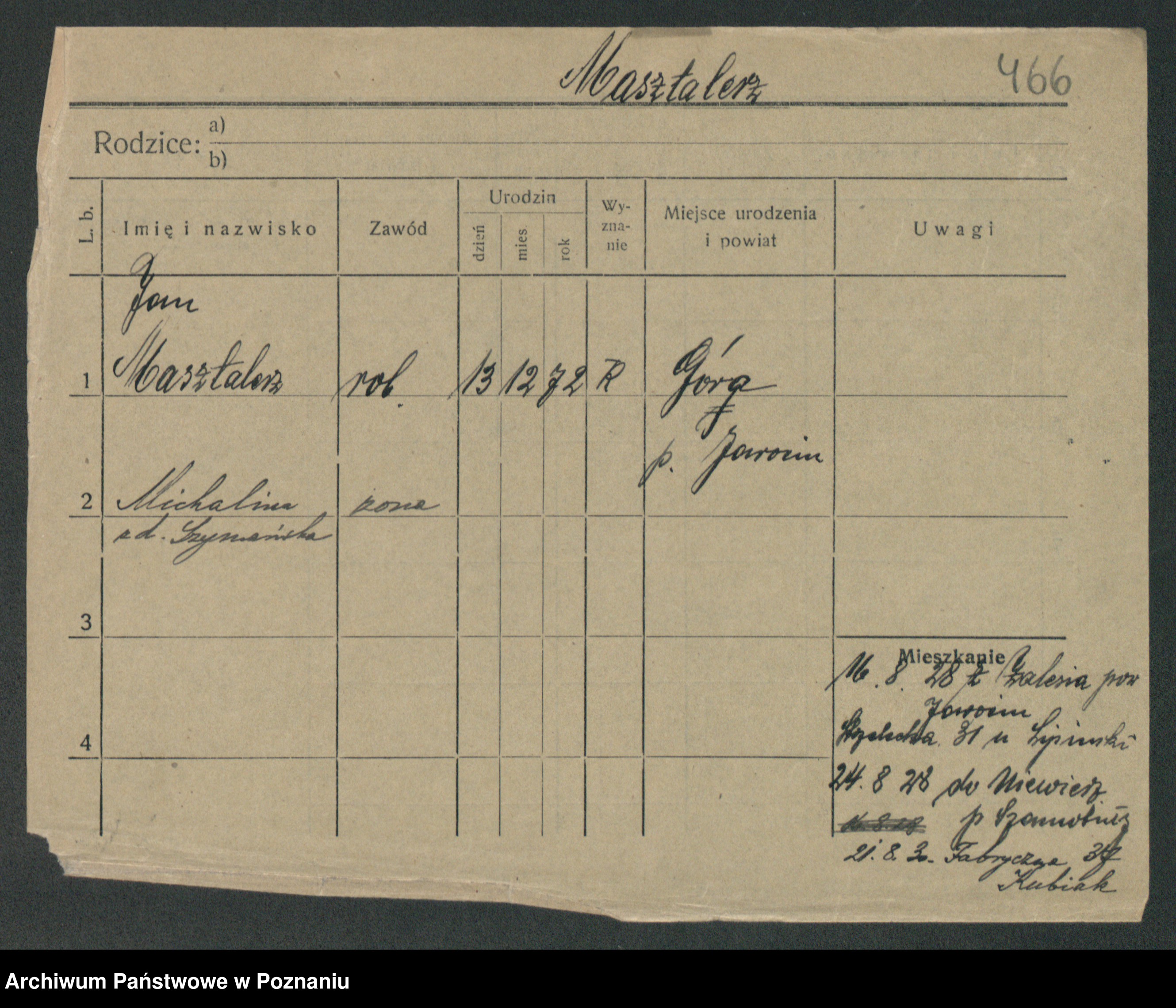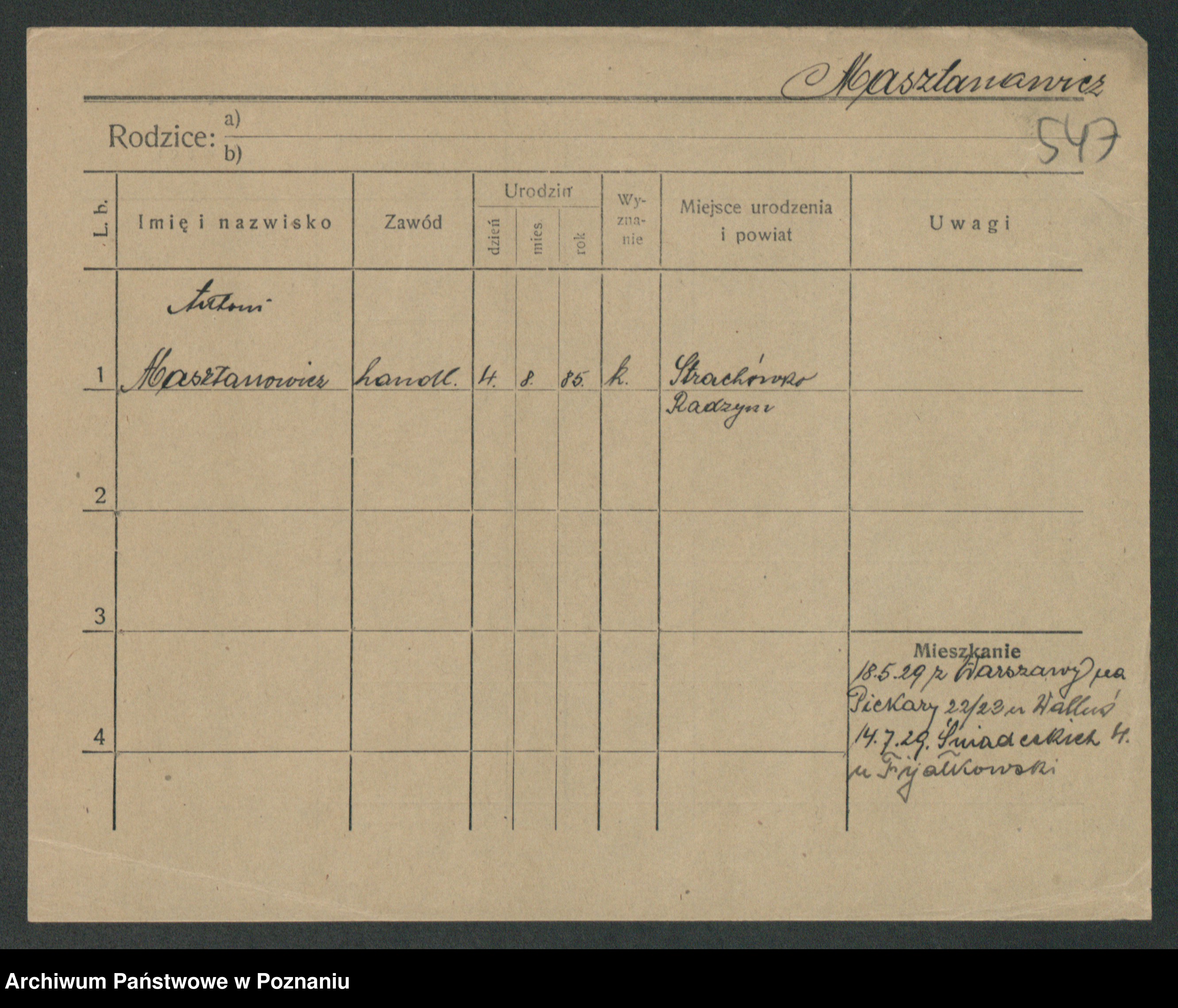 Podgląd karty osobowej dostępny jest po kliknięciu na nazwisko lub ikonkę karty. Można dokonywać powiększenia (ikony na górze) lub przechodzić między kolejnymi skanami (strzałki po bokach).