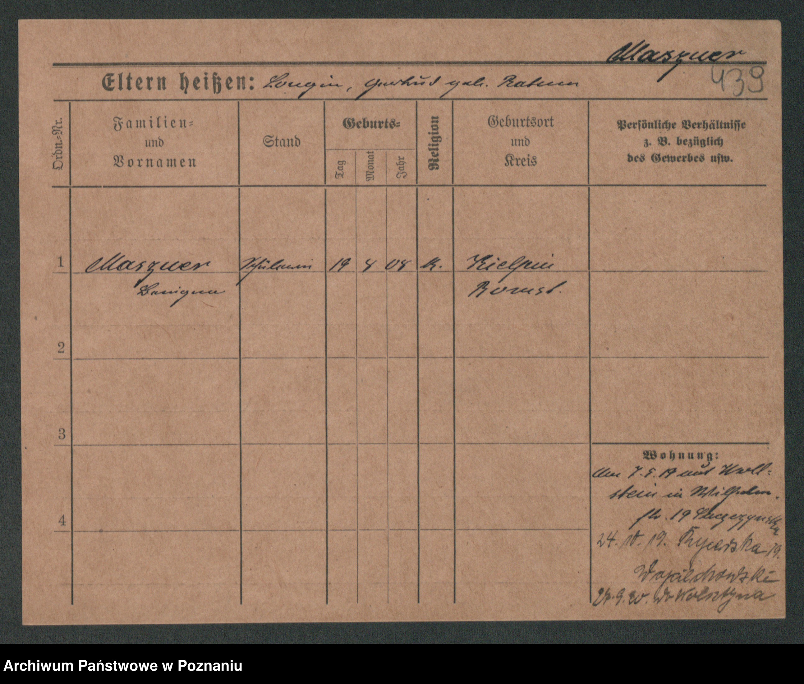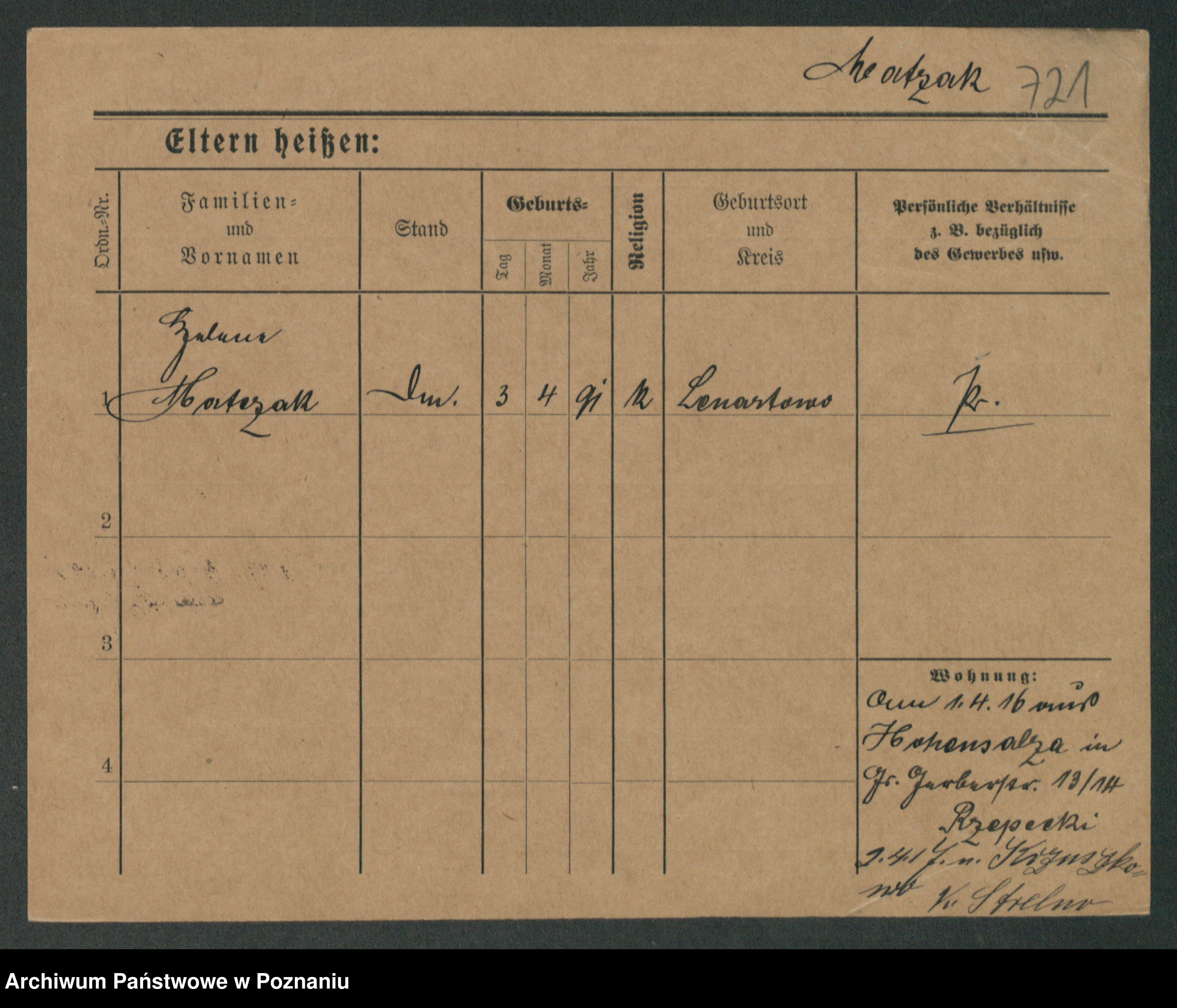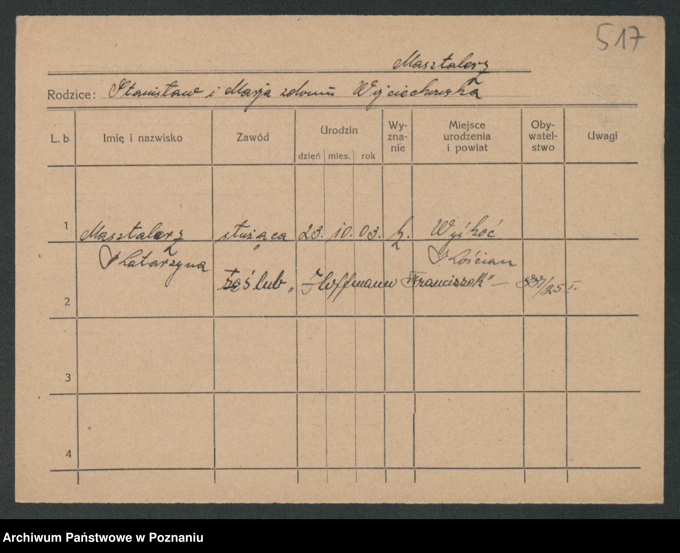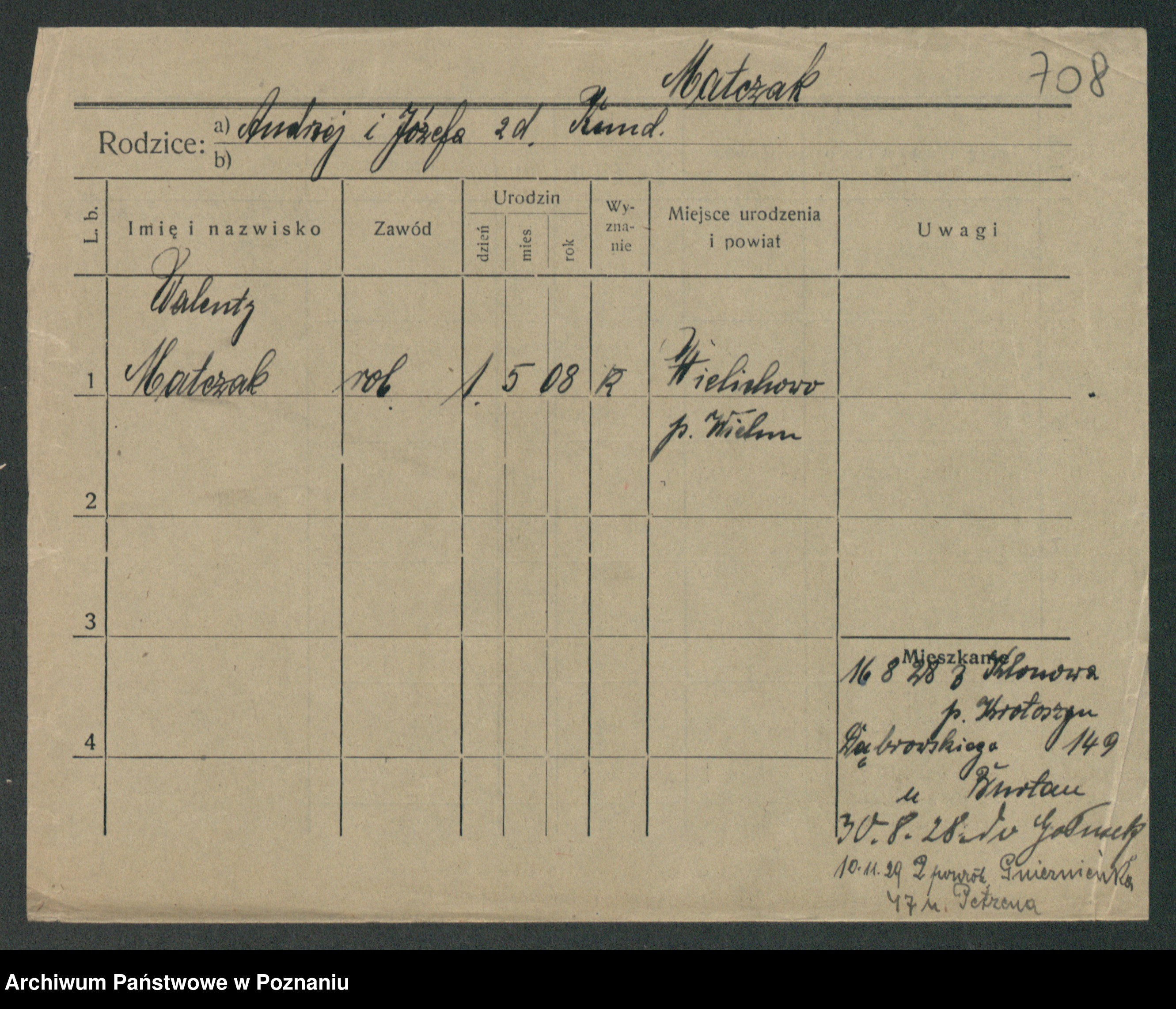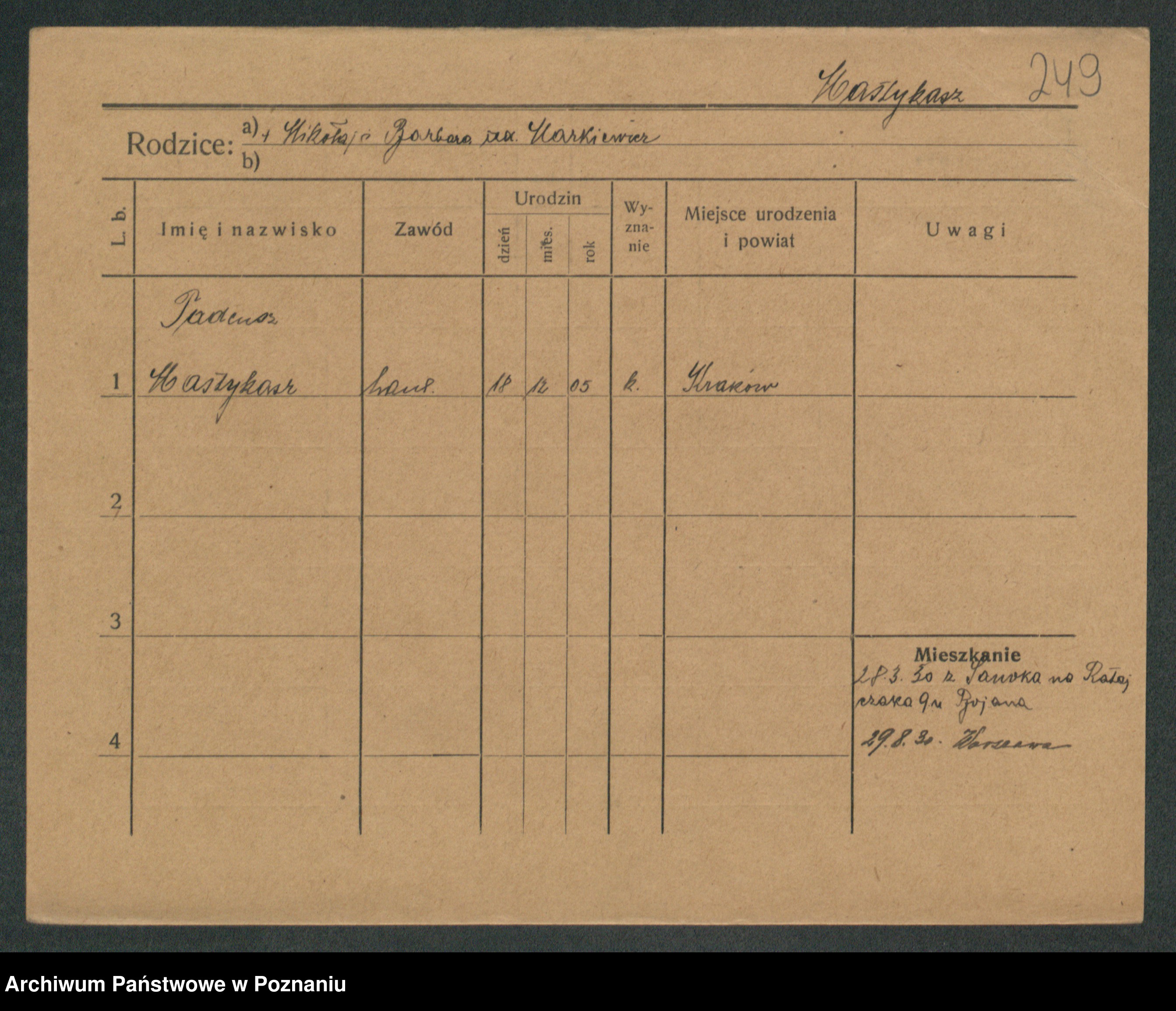 Podgląd karty osobowej dostępny jest po kliknięciu na nazwisko lub ikonkę karty. Można dokonywać powiększenia (ikony na górze) lub przechodzić między kolejnymi skanami (strzałki po bokach).