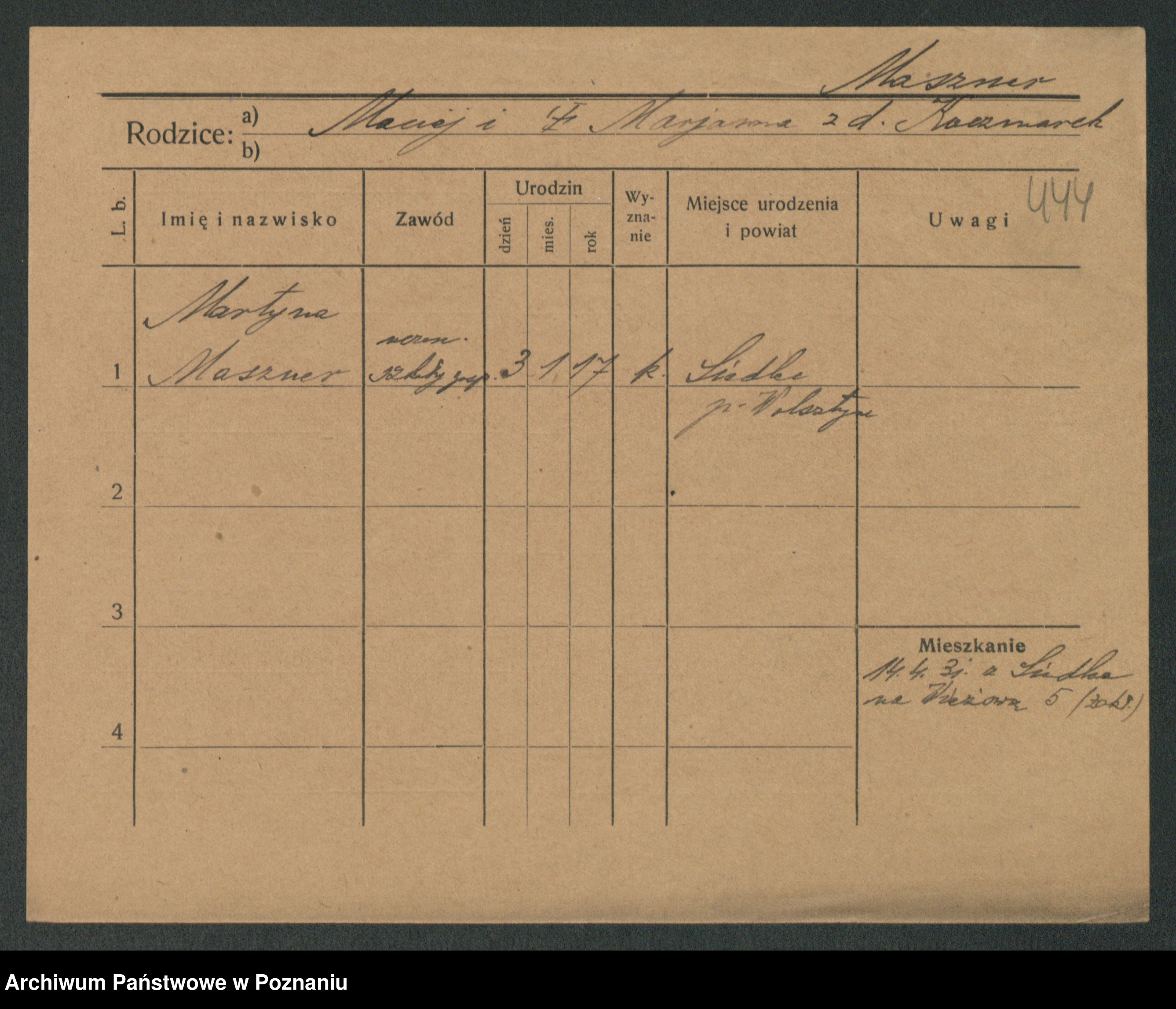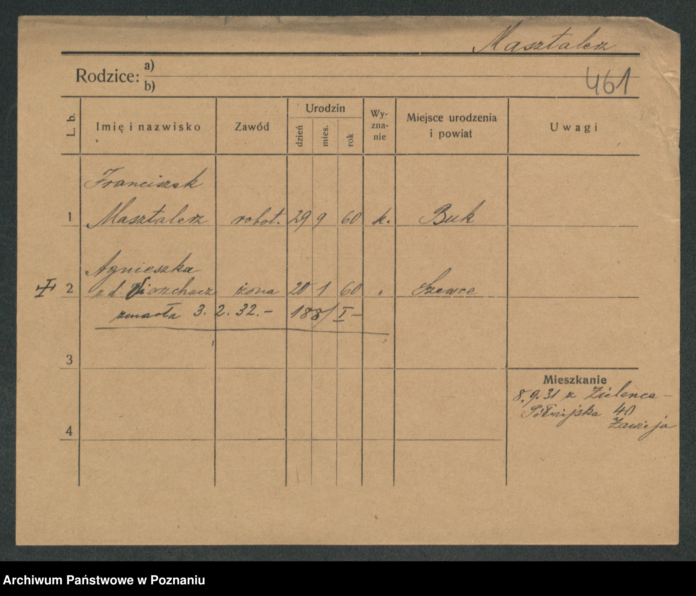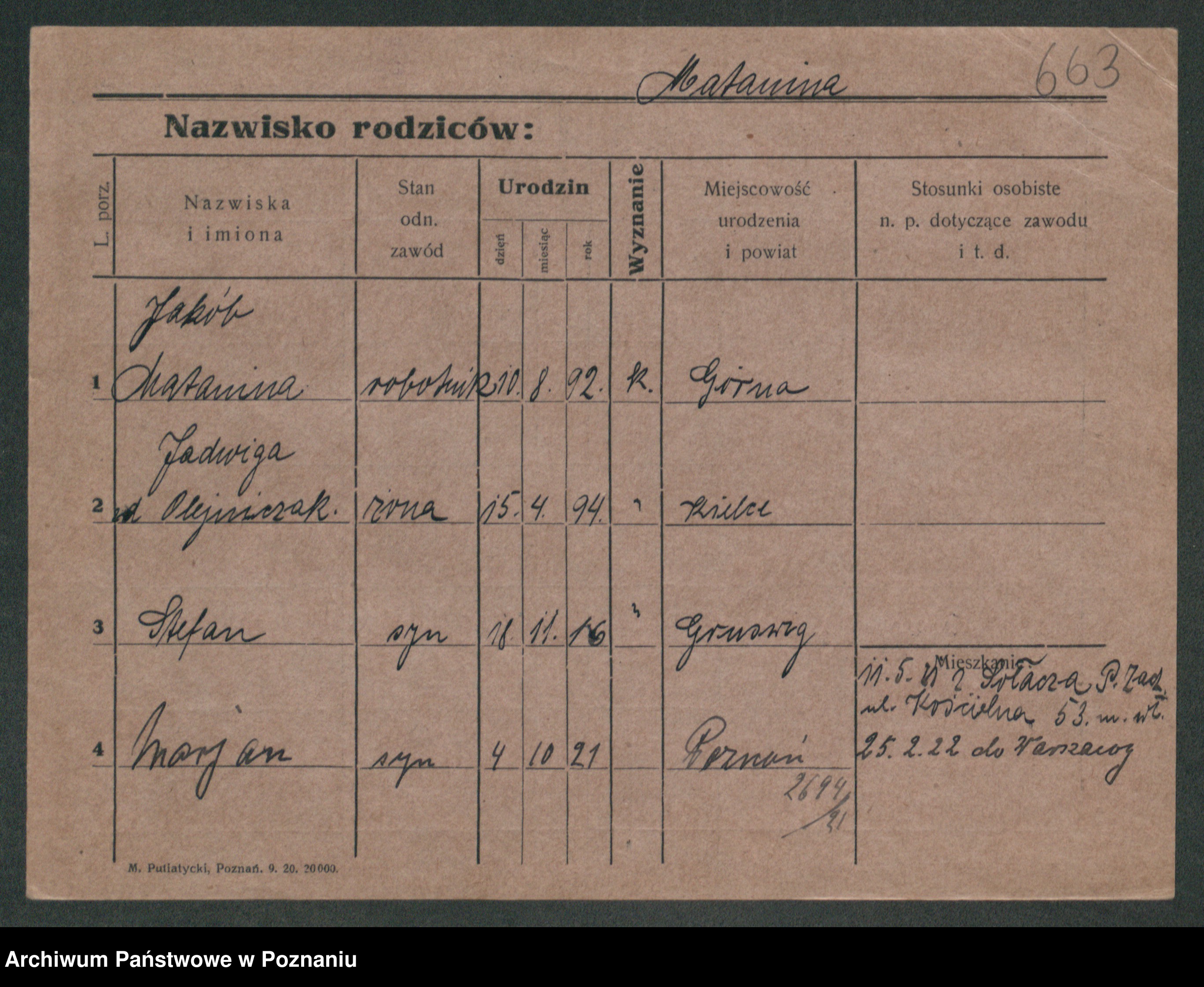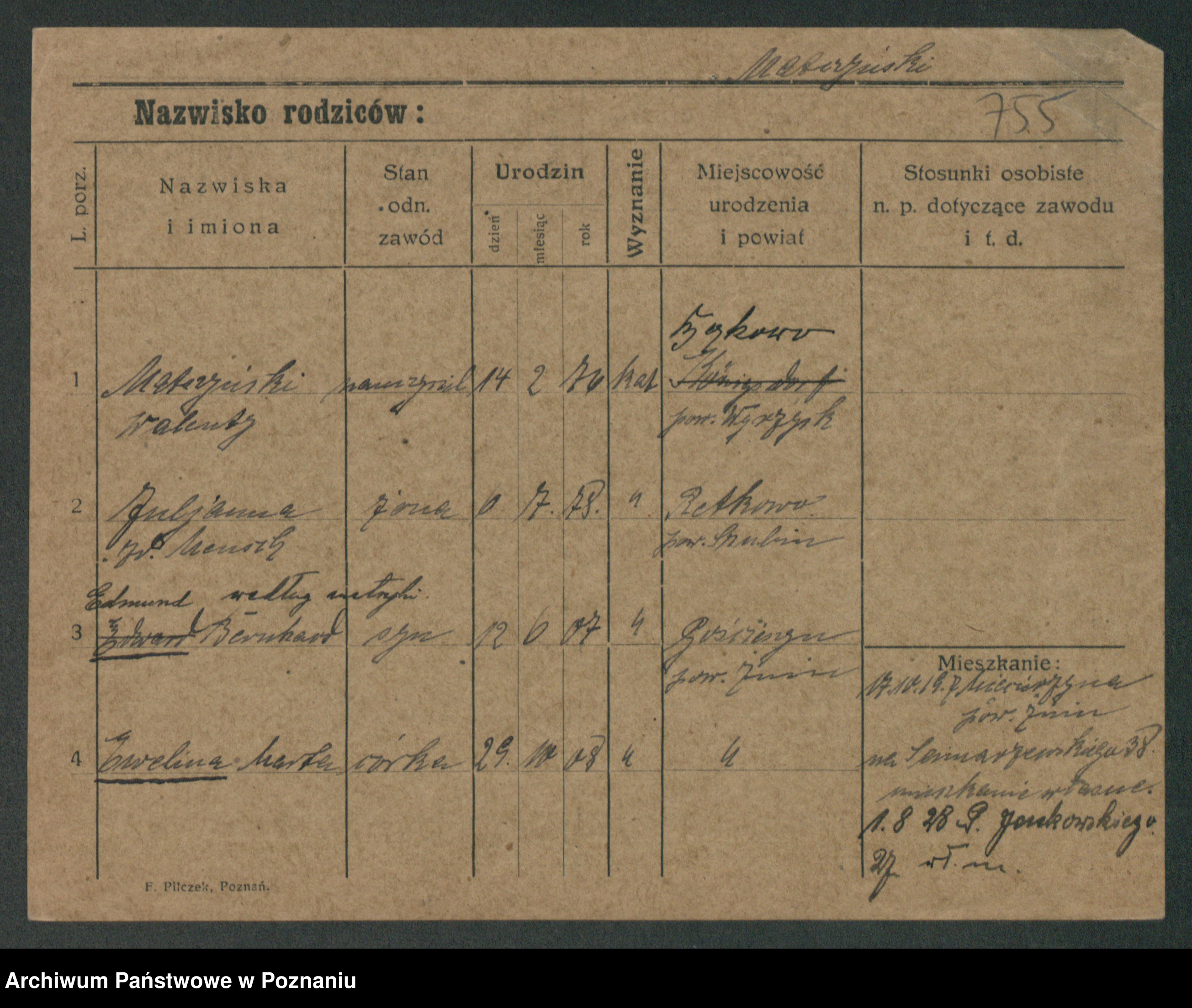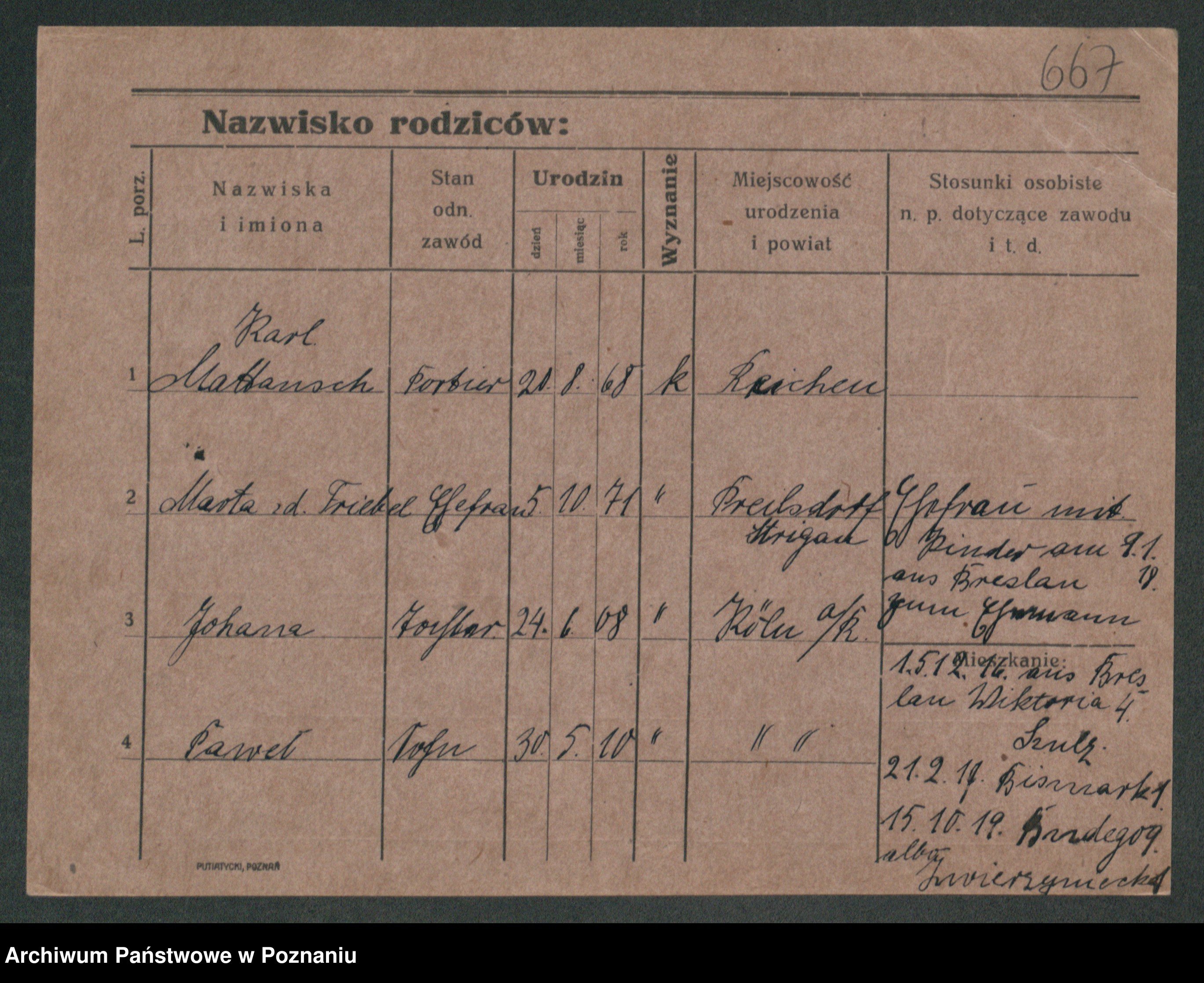 Podgląd karty osobowej dostępny jest po kliknięciu na nazwisko lub ikonkę karty. Można dokonywać powiększenia (ikony na górze) lub przechodzić między kolejnymi skanami (strzałki po bokach).