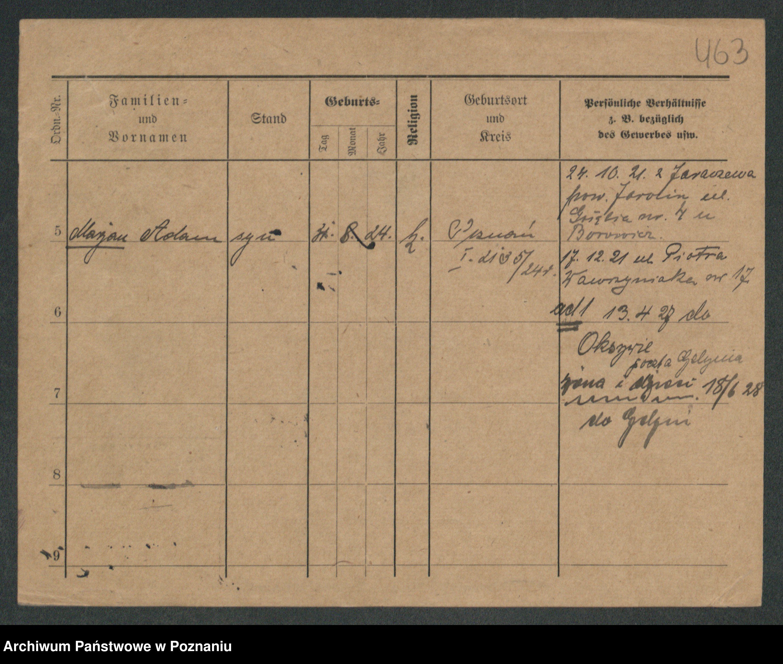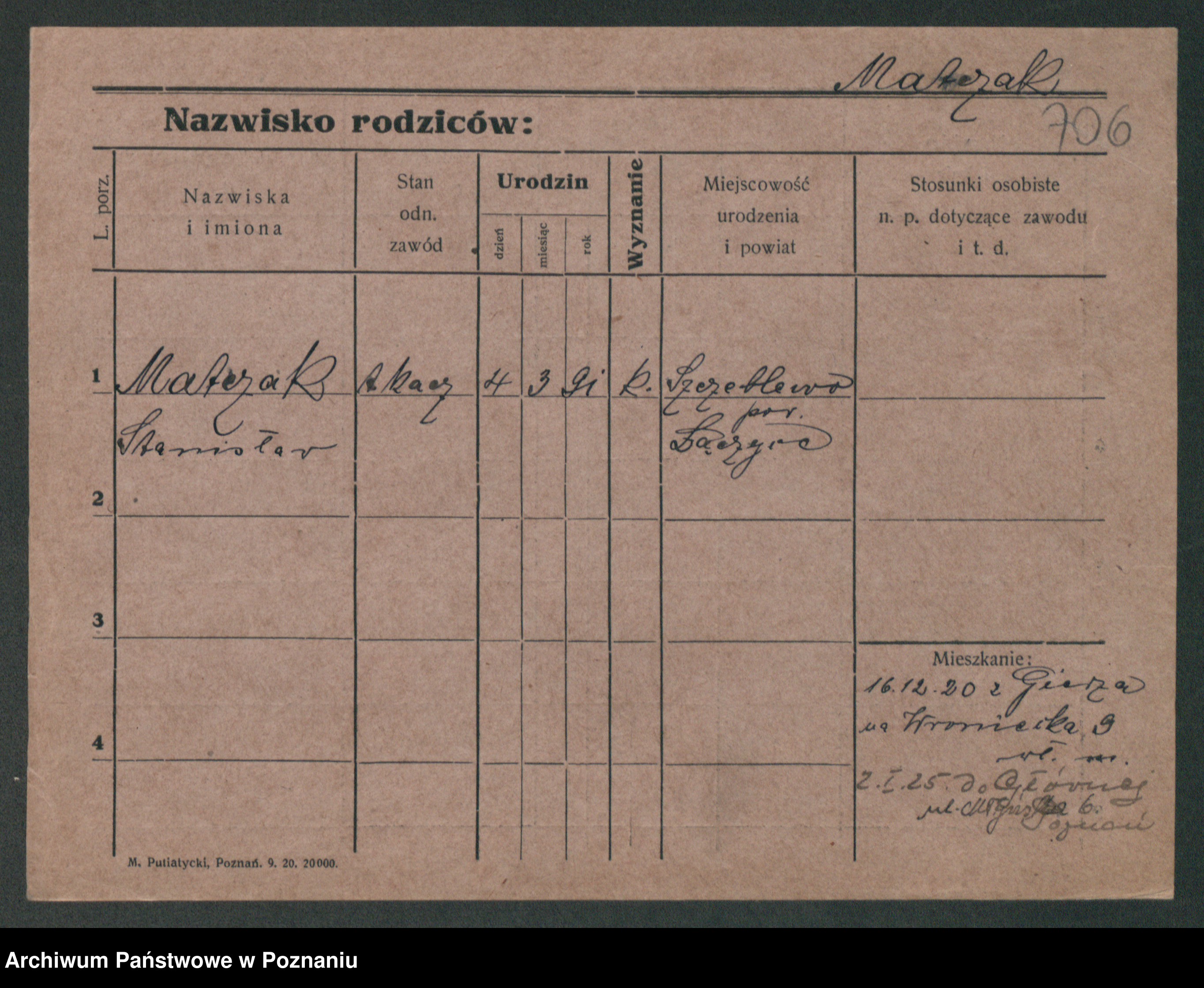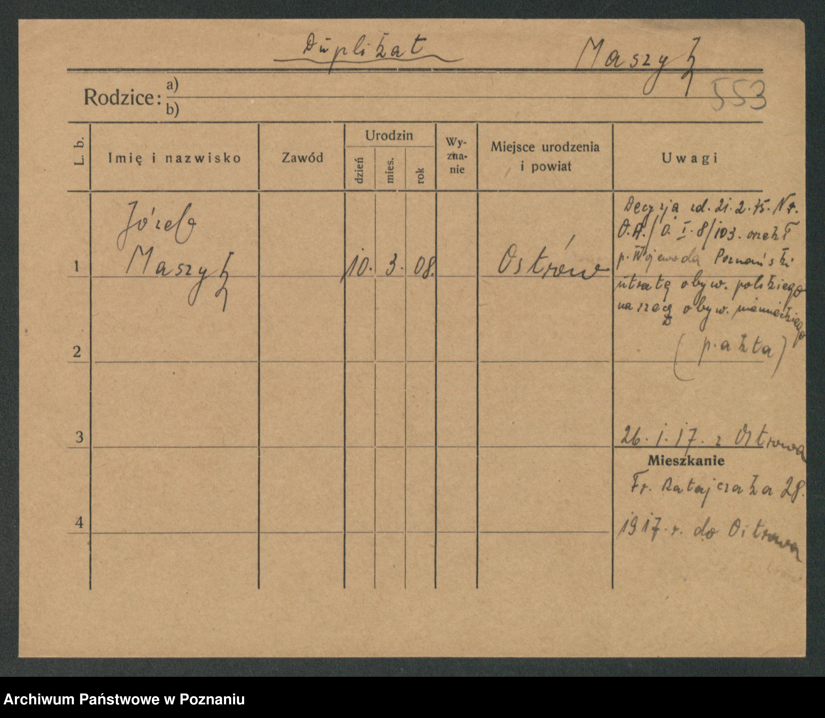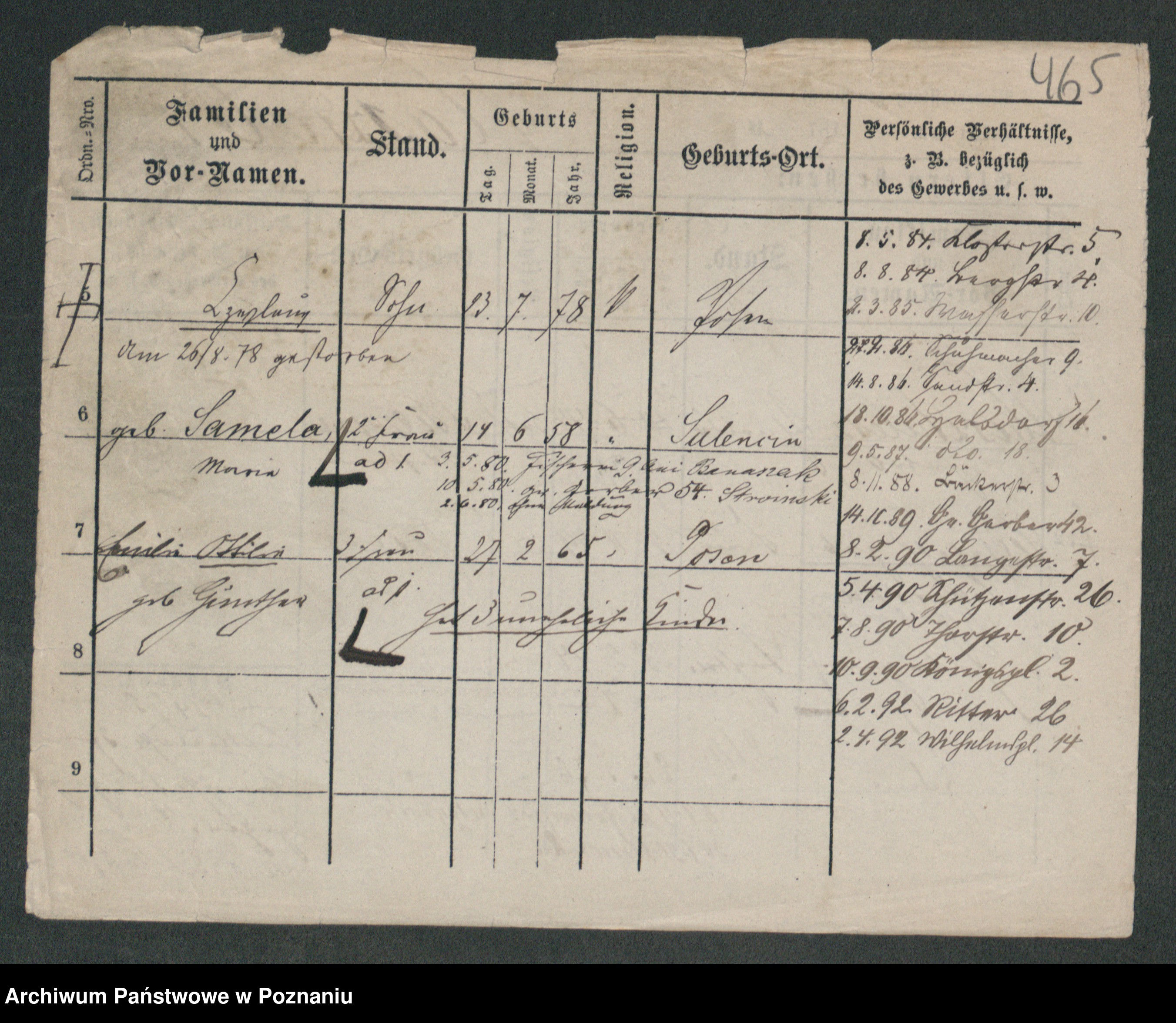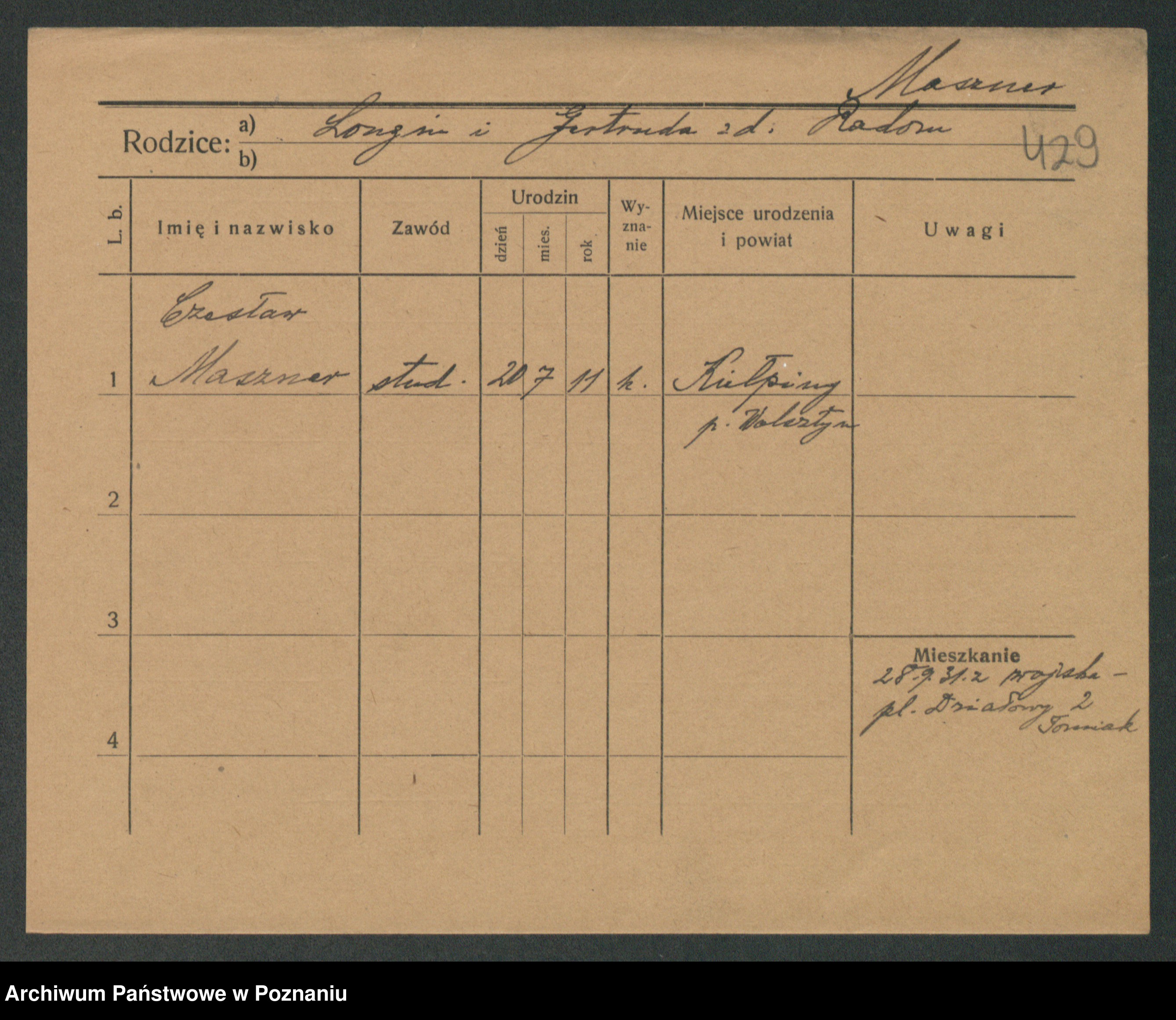 Podgląd karty osobowej dostępny jest po kliknięciu na nazwisko lub ikonkę karty. Można dokonywać powiększenia (ikony na górze) lub przechodzić między kolejnymi skanami (strzałki po bokach).