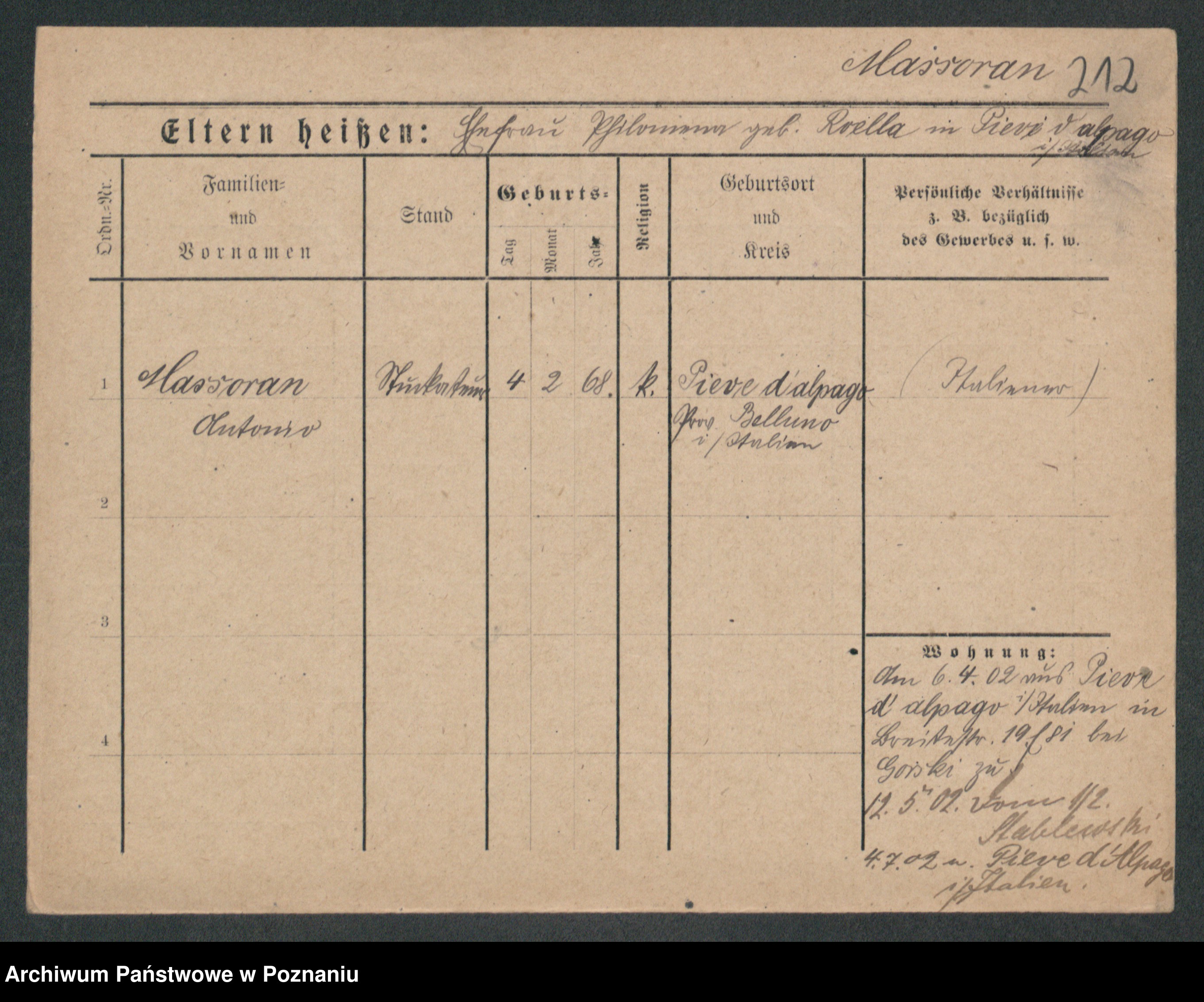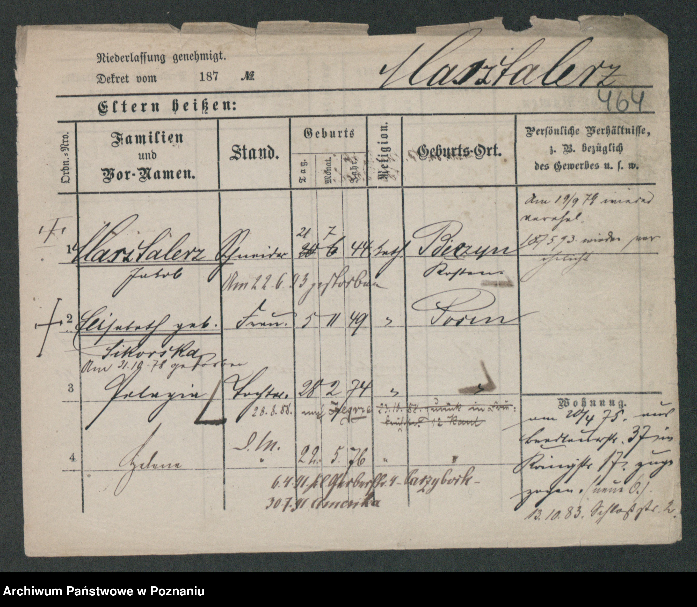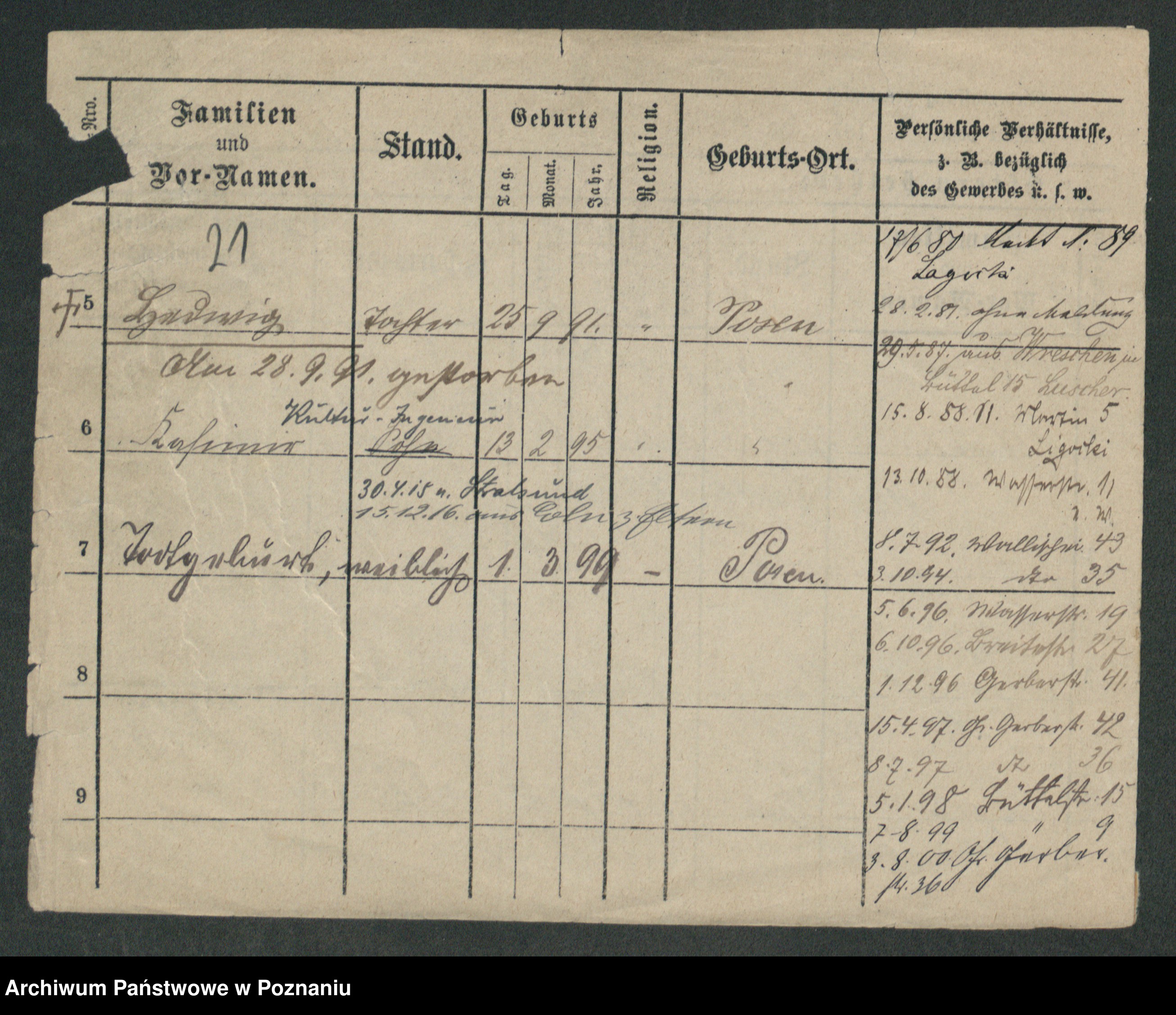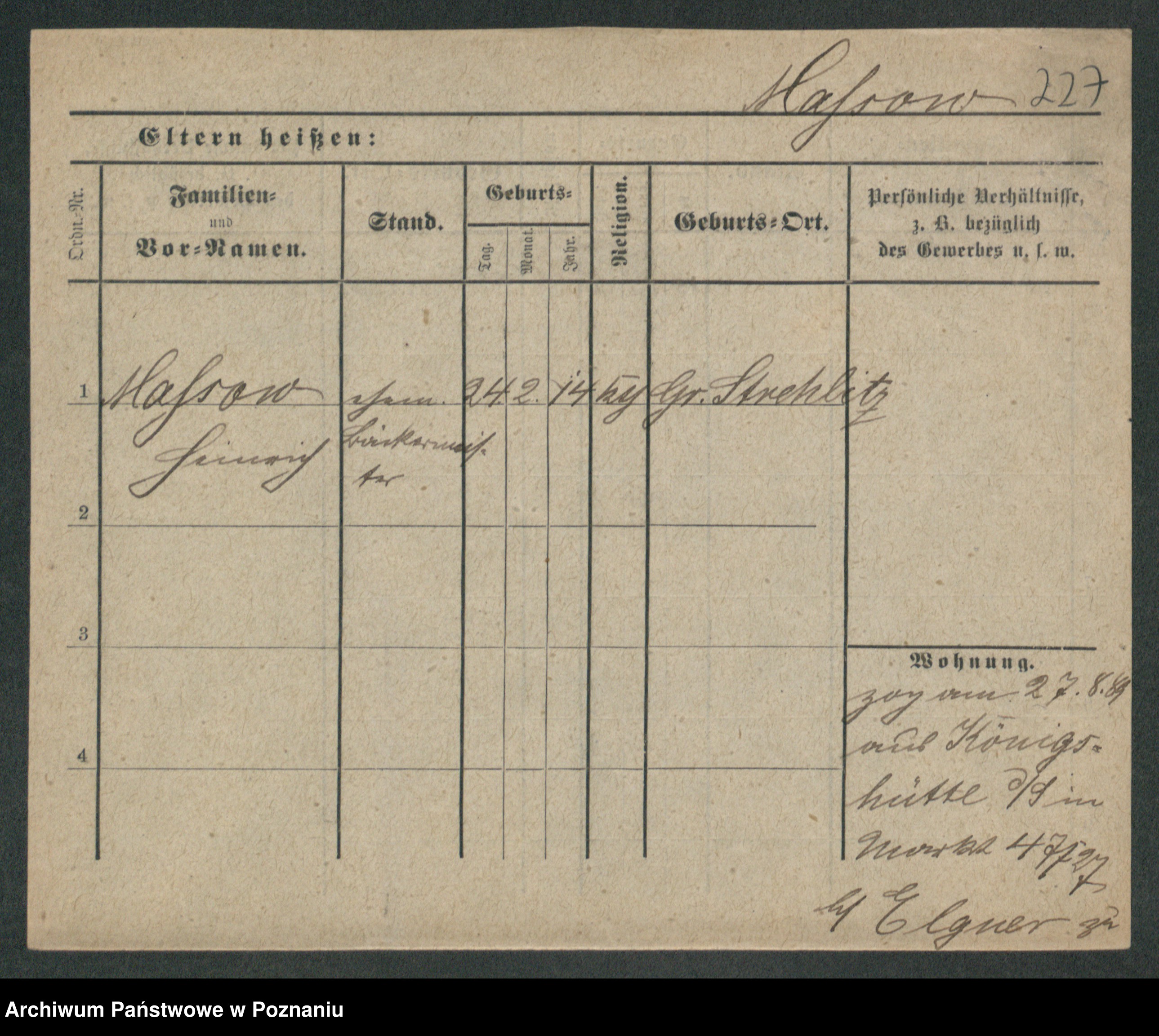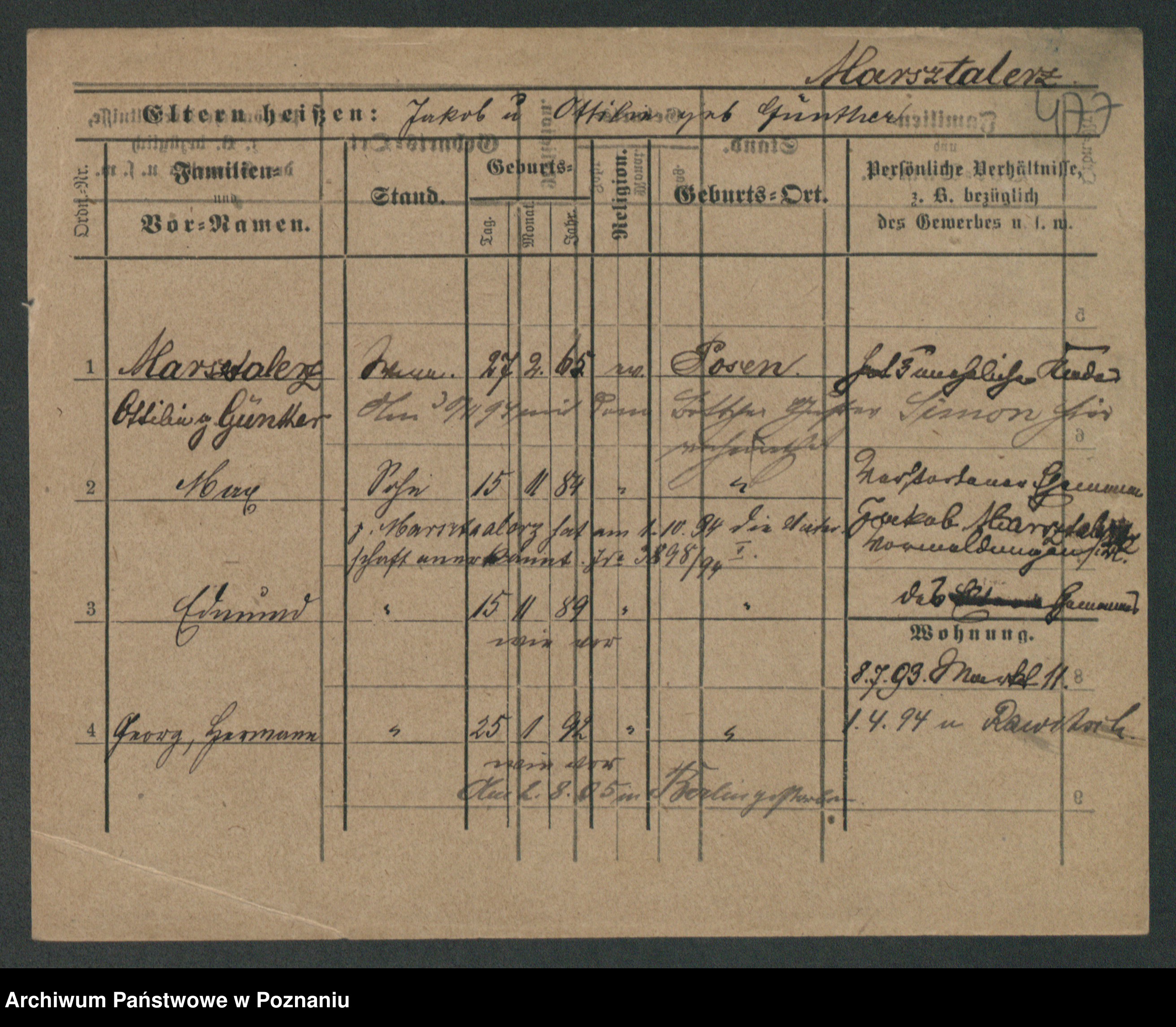 Podgląd karty osobowej dostępny jest po kliknięciu na nazwisko lub ikonkę karty. Można dokonywać powiększenia (ikony na górze) lub przechodzić między kolejnymi skanami (strzałki po bokach).